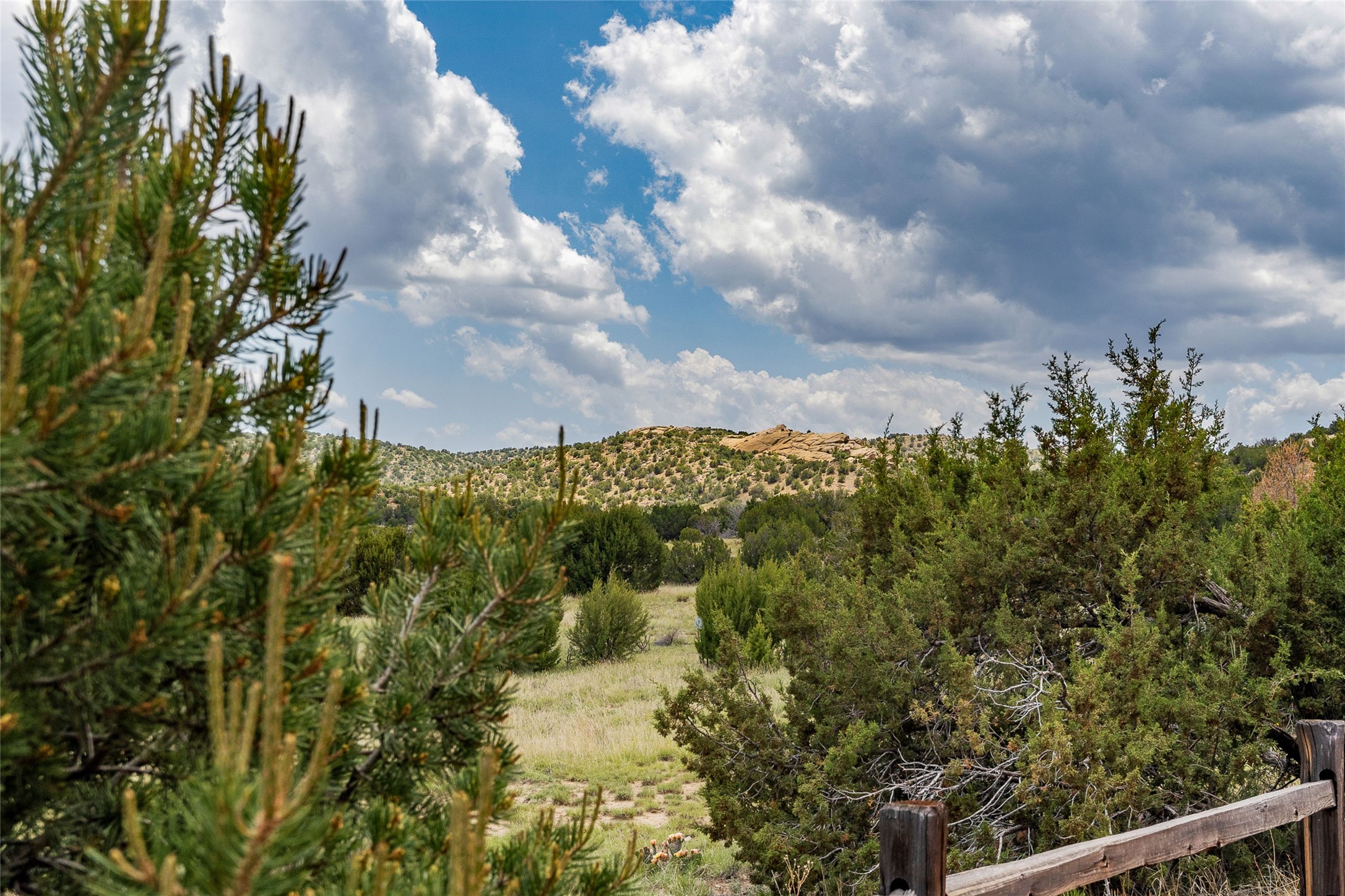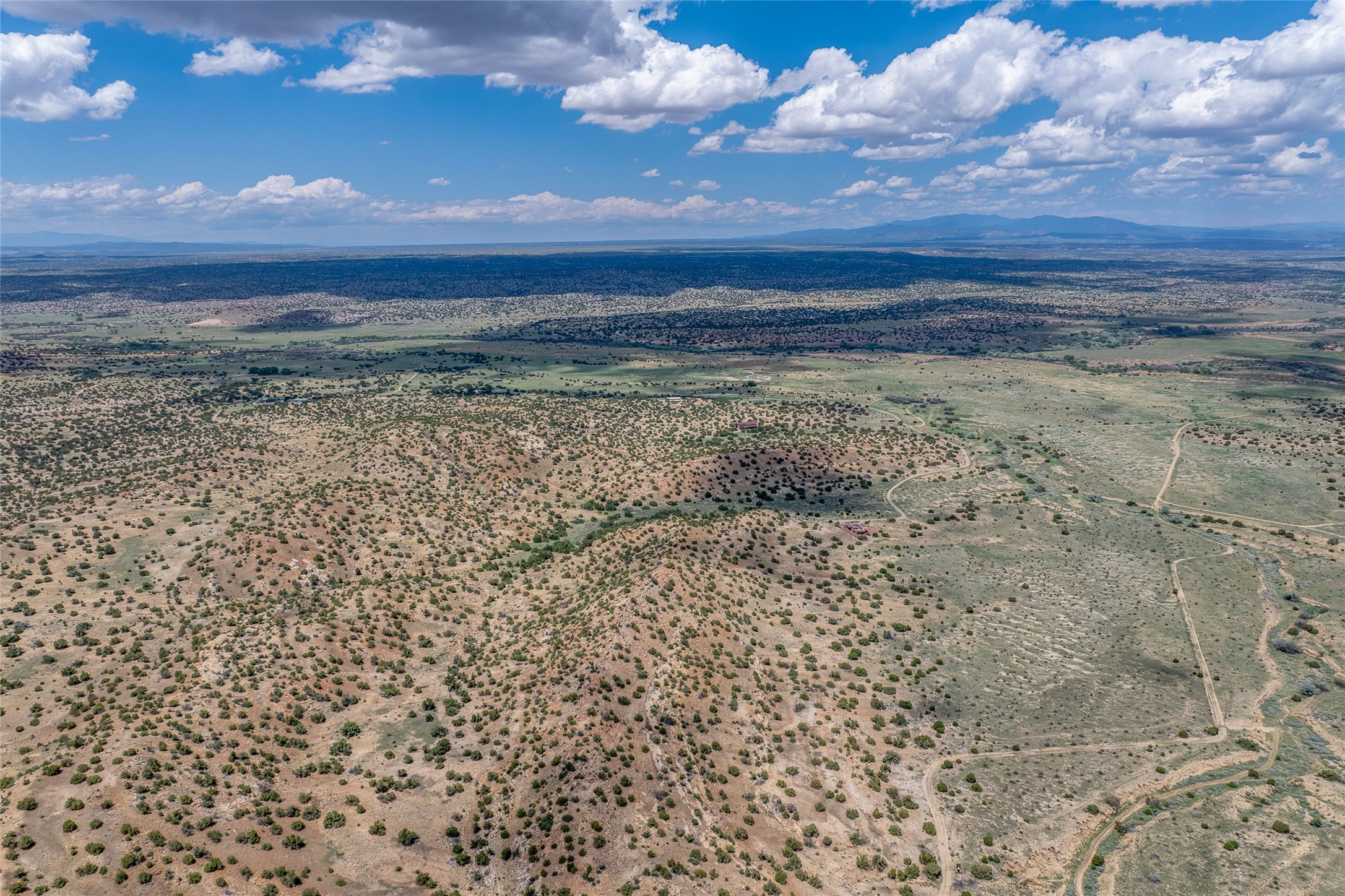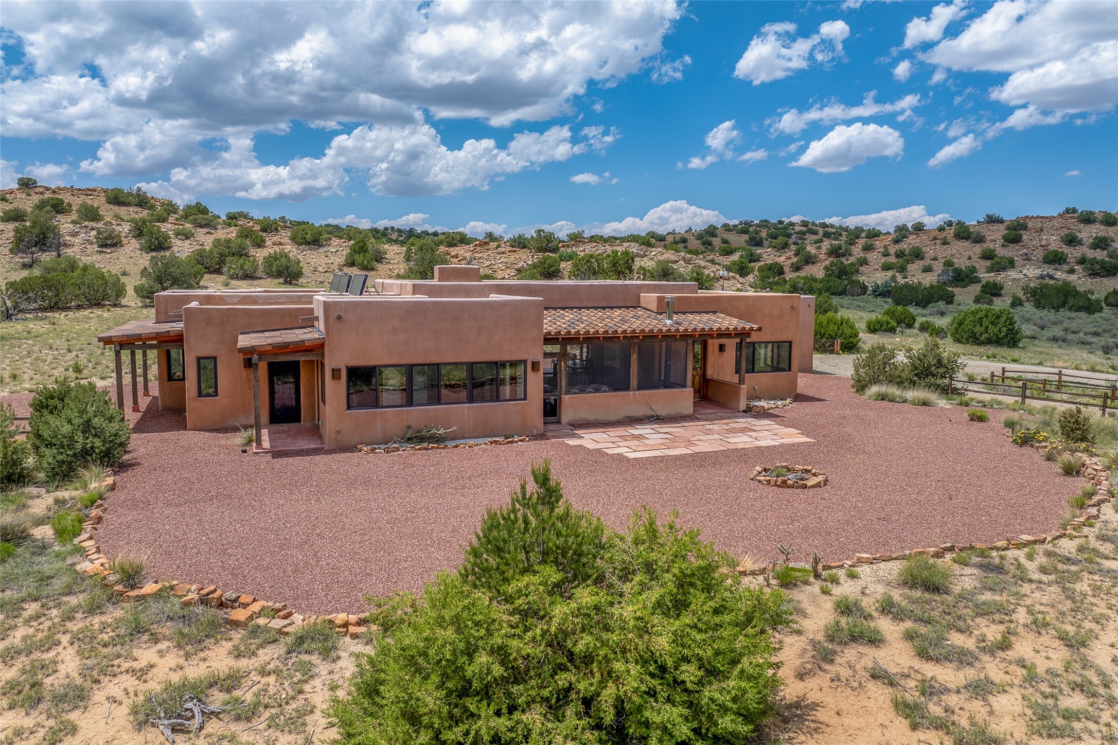 Nestled on 140 acres off the breathtaking scenic Turquoise Trail, this exceptional home blends modern elegance with serene pastoral beauty. Surrounded by expansive ranch land, it offers privacy and tranquility, where horses are welcome. The sweeping views, stunning rock formations, and pristine night skies create a truly peaceful retreat. Built in 2017, this "smart" home is designed for efficiency and comfort, featuring solar electric panels, solar radiant heating, and a grid connection. Mini-splits provide heating and cooling throughout, while stained concrete floors, handmade doors and beams from La Puerta Originals, and sleek design elements enhance the home's tranquil, minimalist aesthetic. The third bedroom, full of natural light, presents a perfect space for an artist's studio. The generously sized living area boasts an open floor plan, an inviting eat-in kitchen with sophisticated wine cooler, and a cozy kiva fireplace. Seamless indoor-outdoor living is achieved with multiple patios--both open and enclosed--including a screened-in dining space with a wood stove and patio heaters, along with an outdoor shower. Located south of Santa Fe, this rural haven offers convenient access to both Santa Fe and Albuquerque. It's also near the charming and historic villages of Madrid and Cerrillos, where vibrant restaurants, art galleries, summer farmers' markets, and two general stores bring local culture to life.