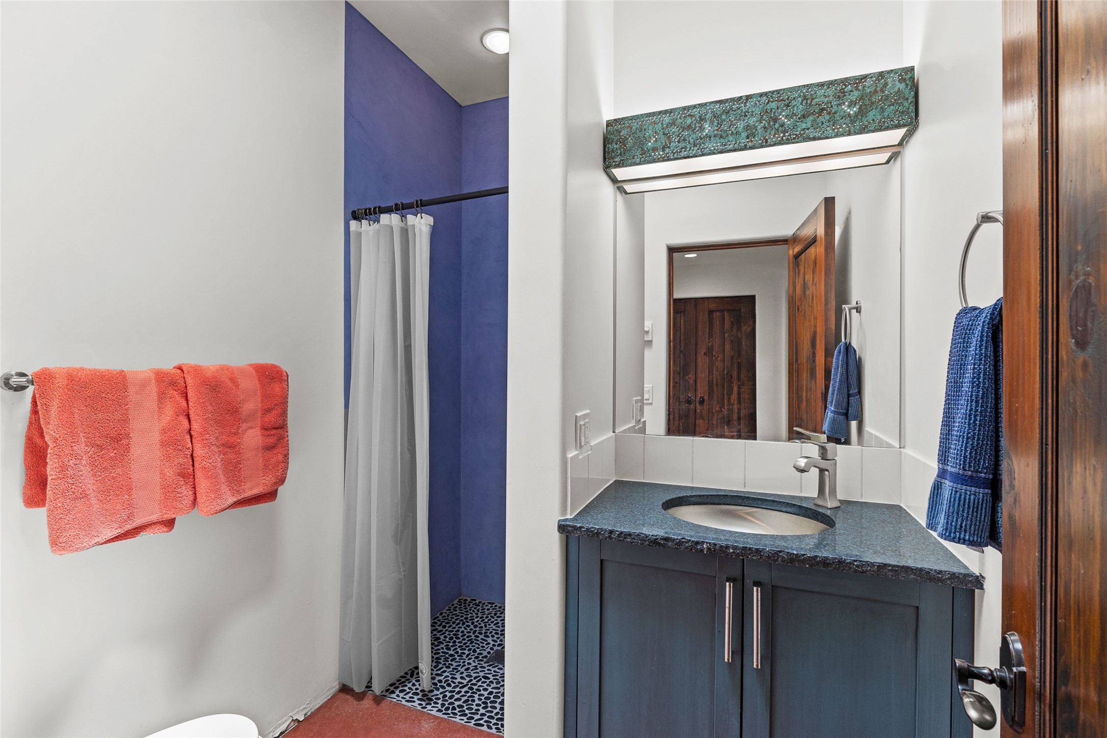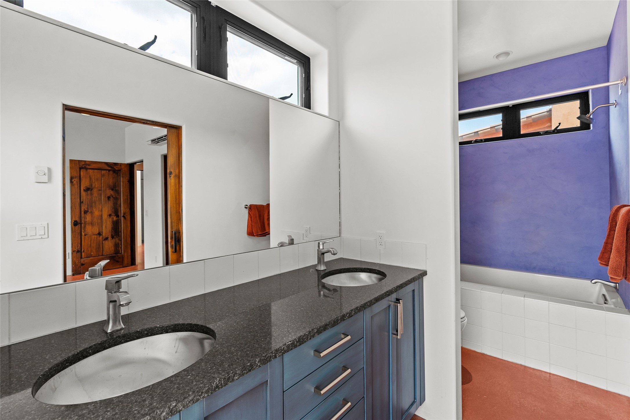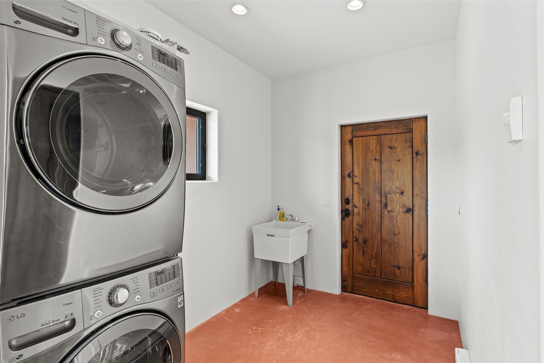 Nestled on 140 acres off the breathtaking scenic Turquoise Trail, this exceptional home blends modern elegance with serene pastoral beauty. Surrounded by expansive ranch land, it offers privacy and tranquility, where horses are welcome. The sweeping views, stunning rock formations, and pristine night skies create a truly peaceful retreat. Built in 2017, this "smart" home is designed for efficiency and comfort, featuring solar electric panels, solar radiant heating, and a grid connection. Mini-splits provide heating and cooling throughout, while stained concrete floors, handmade doors and beams from La Puerta Originals, and sleek design elements enhance the home's tranquil, minimalist aesthetic. The third bedroom, full of natural light, presents a perfect space for an artist's studio. The generously sized living area boasts an open floor plan, an inviting eat-in kitchen with sophisticated wine cooler, and a cozy kiva fireplace. Seamless indoor-outdoor living is achieved with multiple patios--both open and enclosed--including a screened-in dining space with a wood stove and patio heaters, along with an outdoor shower. Located south of Santa Fe, this rural haven offers convenient access to both Santa Fe and Albuquerque. It's also near the charming and historic villages of Madrid and Cerrillos, where vibrant restaurants, art galleries, summer farmers' markets, and two general stores bring local culture to life.