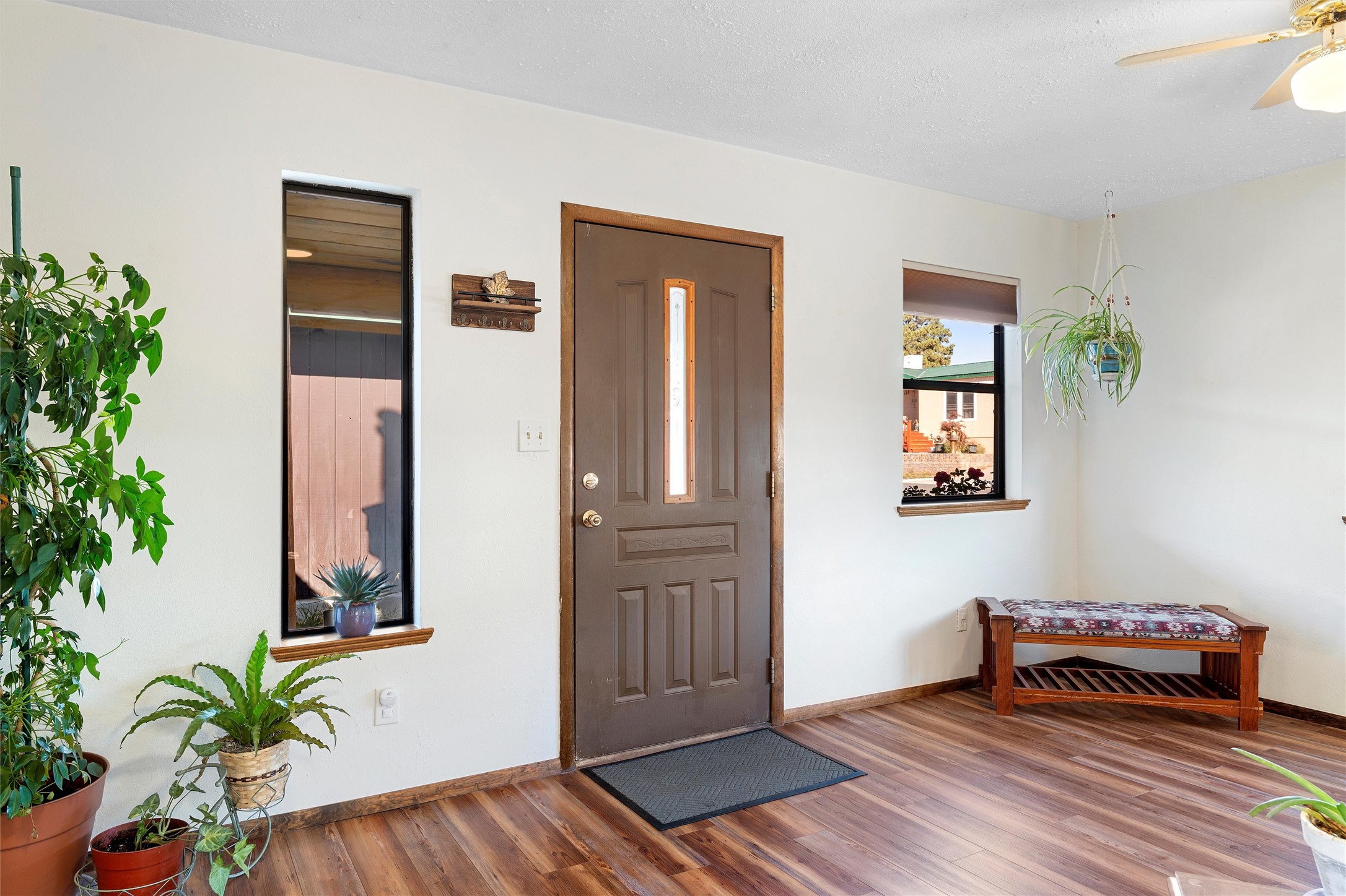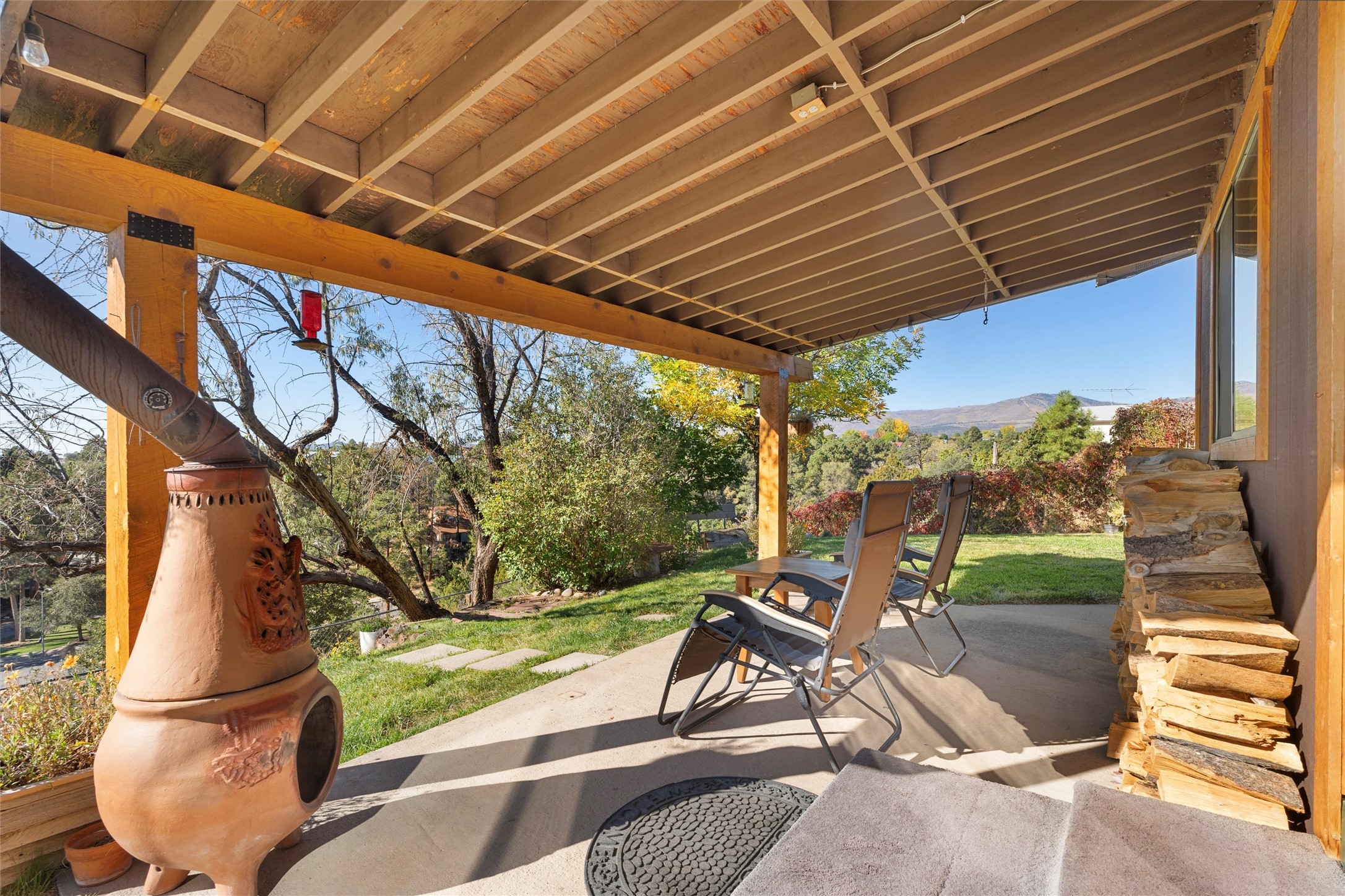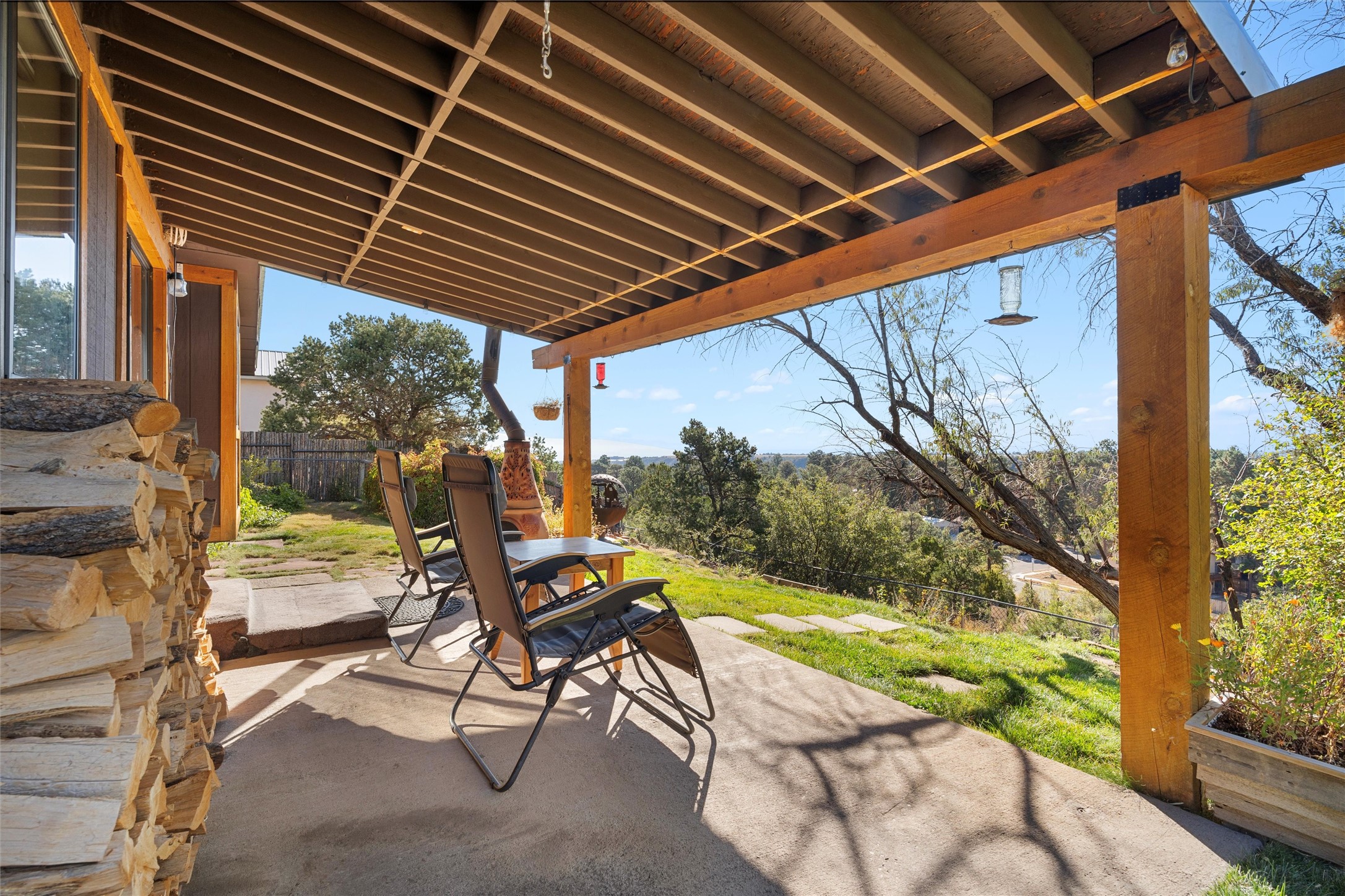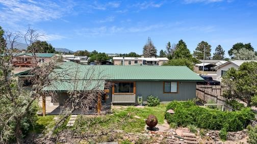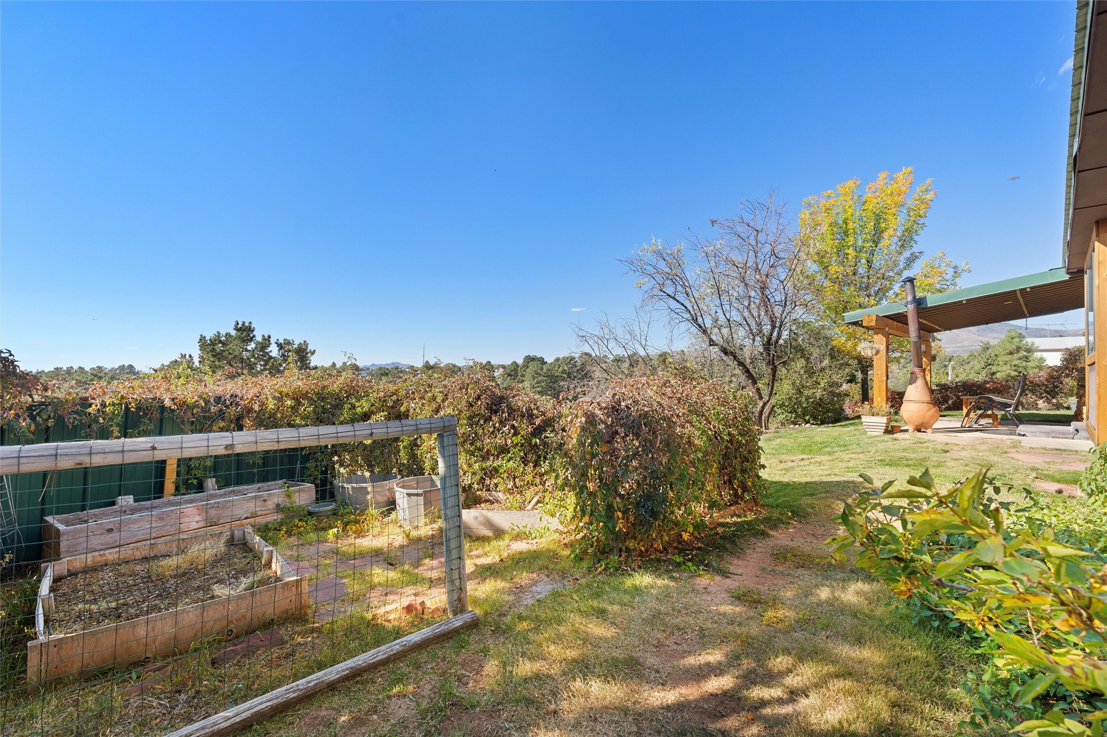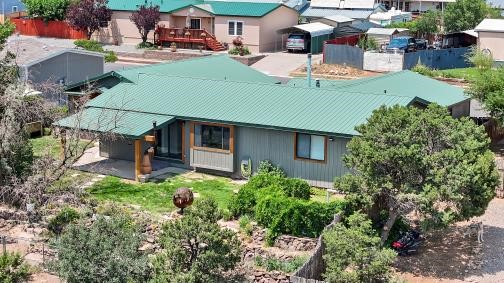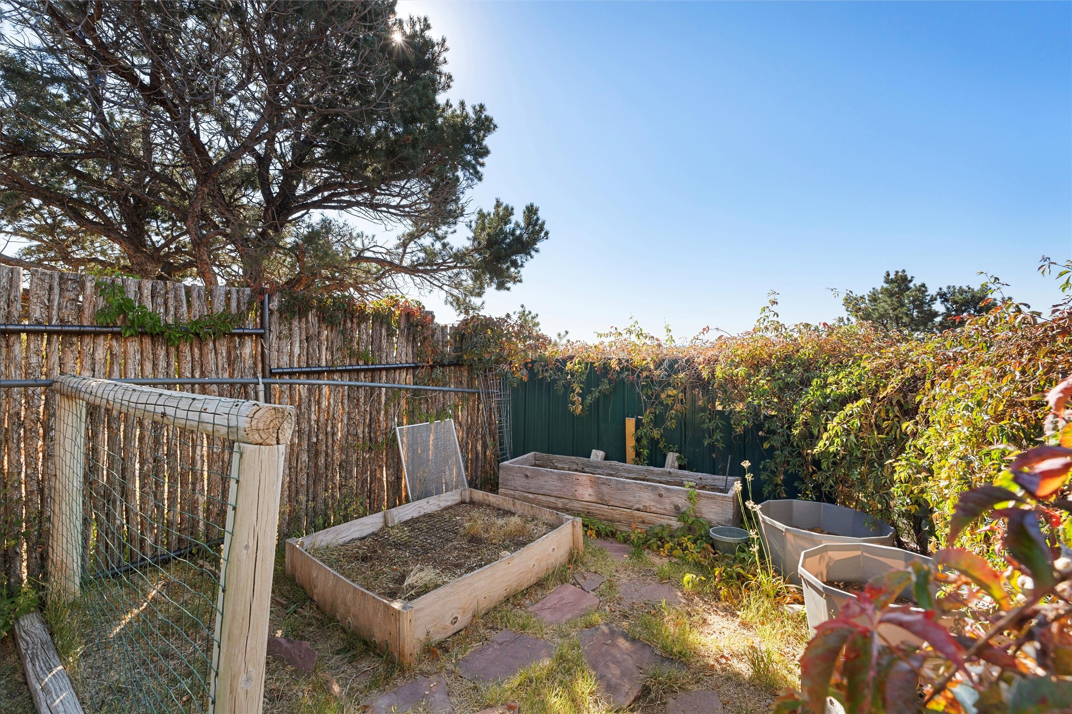 Welcome to this beautifully maintained 3-bedroom, 2-bath single-level home on North Mesa. Enjoy unobstructed views of the Sangre de Cristo and Pajarito Mountains from your lush backyard sanctuary, featuring green grass, vibrant perennials, and a spacious covered patio--perfect for relaxing or entertaining. Inside, the sun-filled living room boasts stylish laminate flooring, while the renovated open kitchen offers granite countertops and ample space for culinary creativity. The primary suite features an en suite bath and a custom birch wood closet system. Two guest bedrooms and a full bath are thoughtfully located on the opposite wing for privacy. Additional highlights include a convenient laundry area off the kitchen, a 2-car garage, a separate workshop with built-in workbench and shelving, and a hide-away office with a custom butcher block desk. With no neighbors behind you, this peaceful retreat is truly one-of-a-kind! Don't miss your chance to call 1043 Cheyenne home--schedule your showing today!