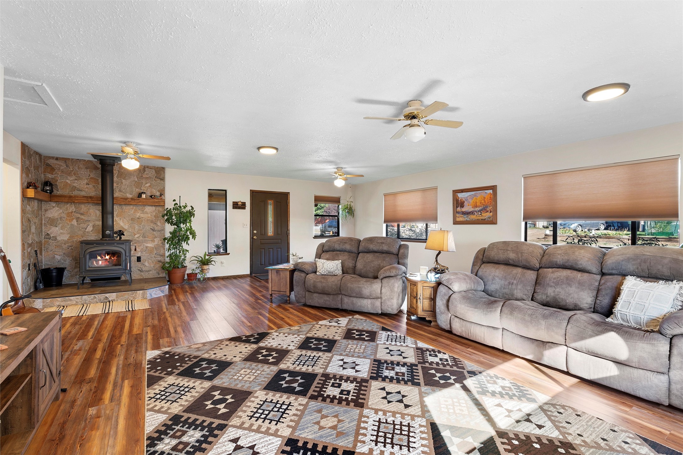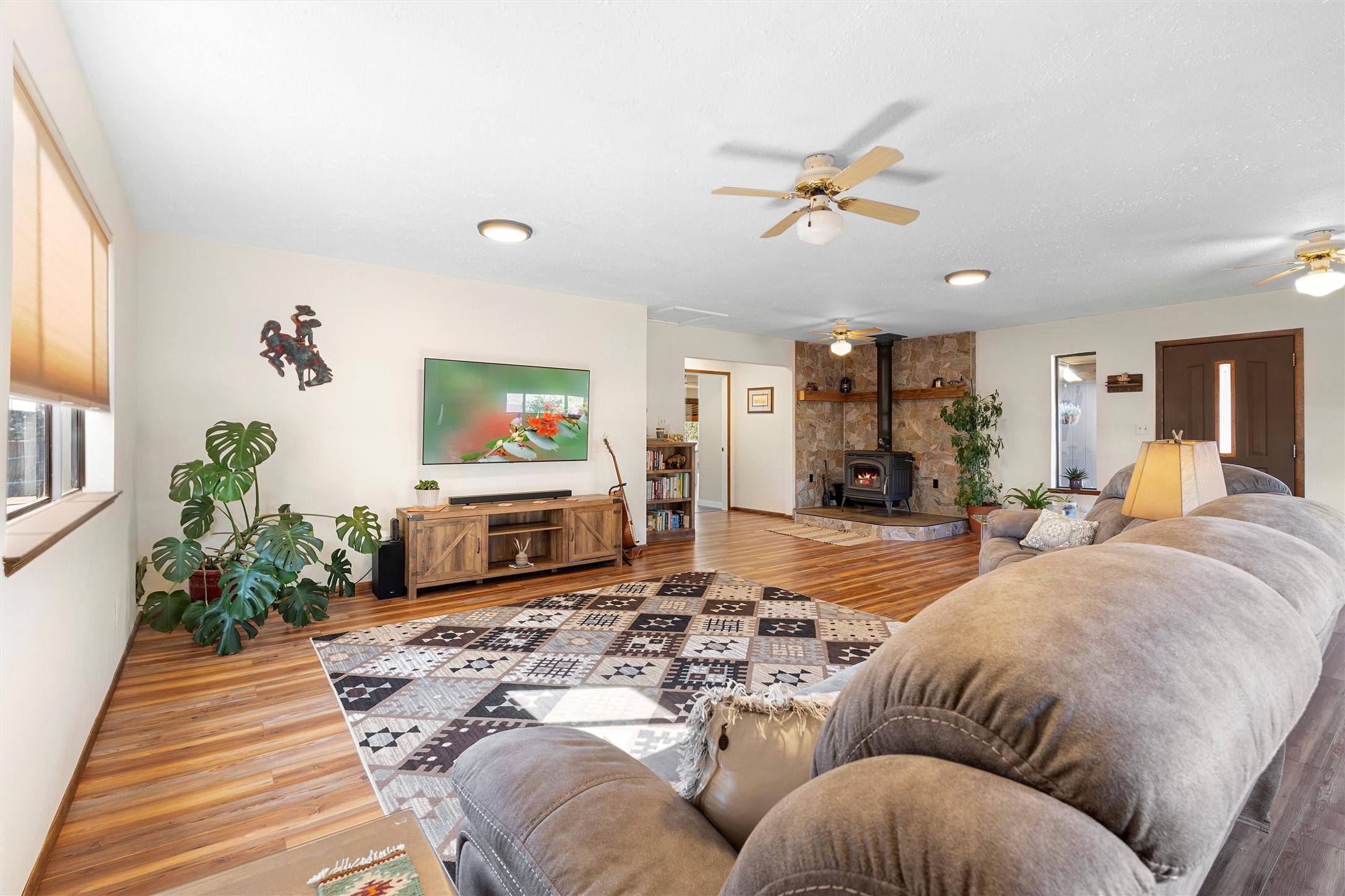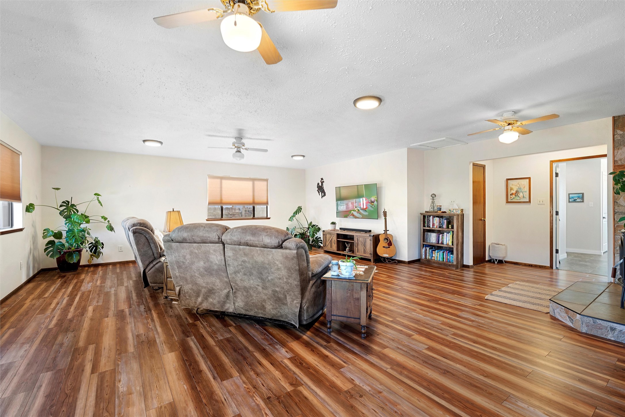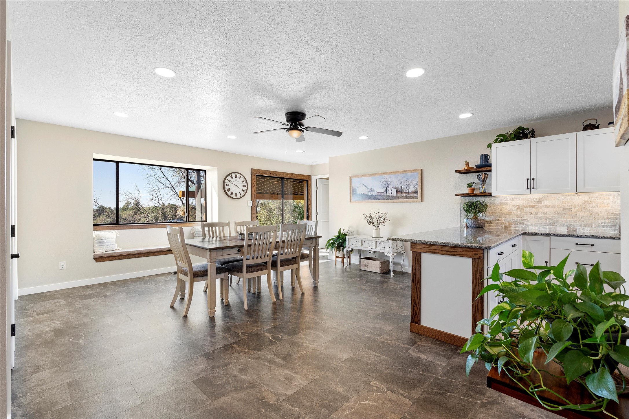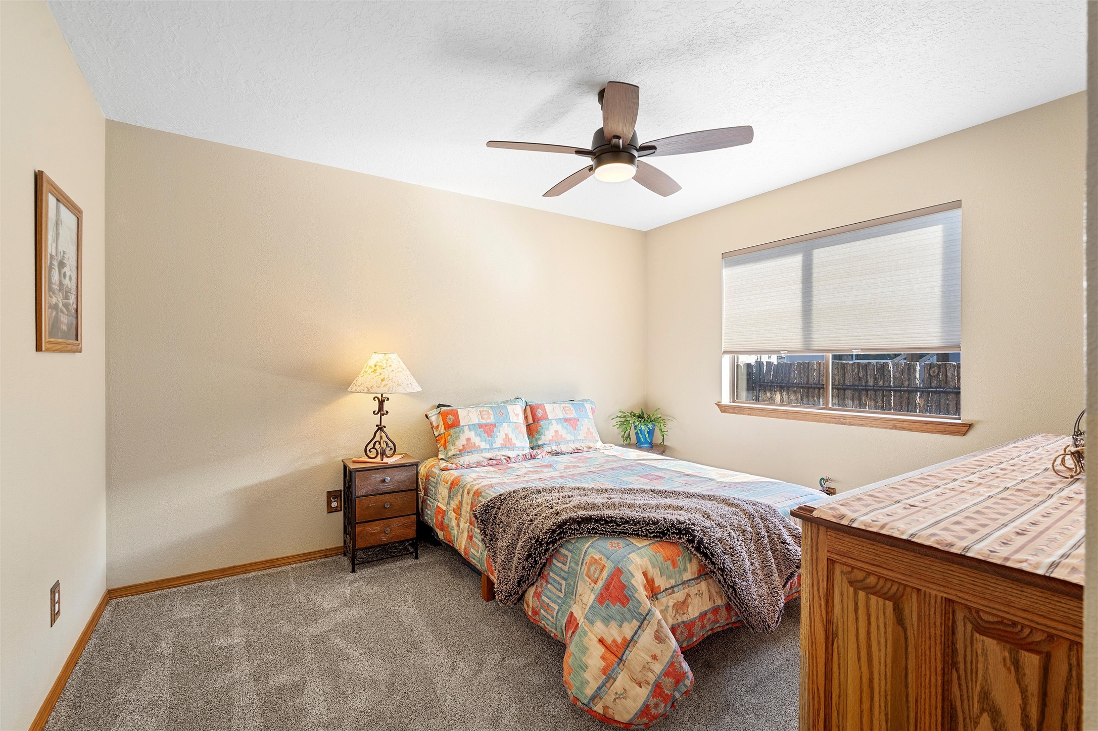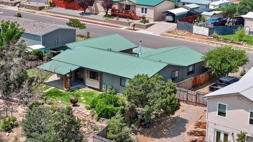 Welcome to this beautifully maintained 3-bedroom, 2-bath single-level home on North Mesa. Enjoy unobstructed views of the Sangre de Cristo and Pajarito Mountains from your lush backyard sanctuary, featuring green grass, vibrant perennials, and a spacious covered patio--perfect for relaxing or entertaining. Inside, the sun-filled living room boasts stylish laminate flooring, while the renovated open kitchen offers granite countertops and ample space for culinary creativity. The primary suite features an en suite bath and a custom birch wood closet system. Two guest bedrooms and a full bath are thoughtfully located on the opposite wing for privacy. Additional highlights include a convenient laundry area off the kitchen, a 2-car garage, a separate workshop with built-in workbench and shelving, and a hide-away office with a custom butcher block desk. With no neighbors behind you, this peaceful retreat is truly one-of-a-kind! Don't miss your chance to call 1043 Cheyenne home--schedule your showing today!