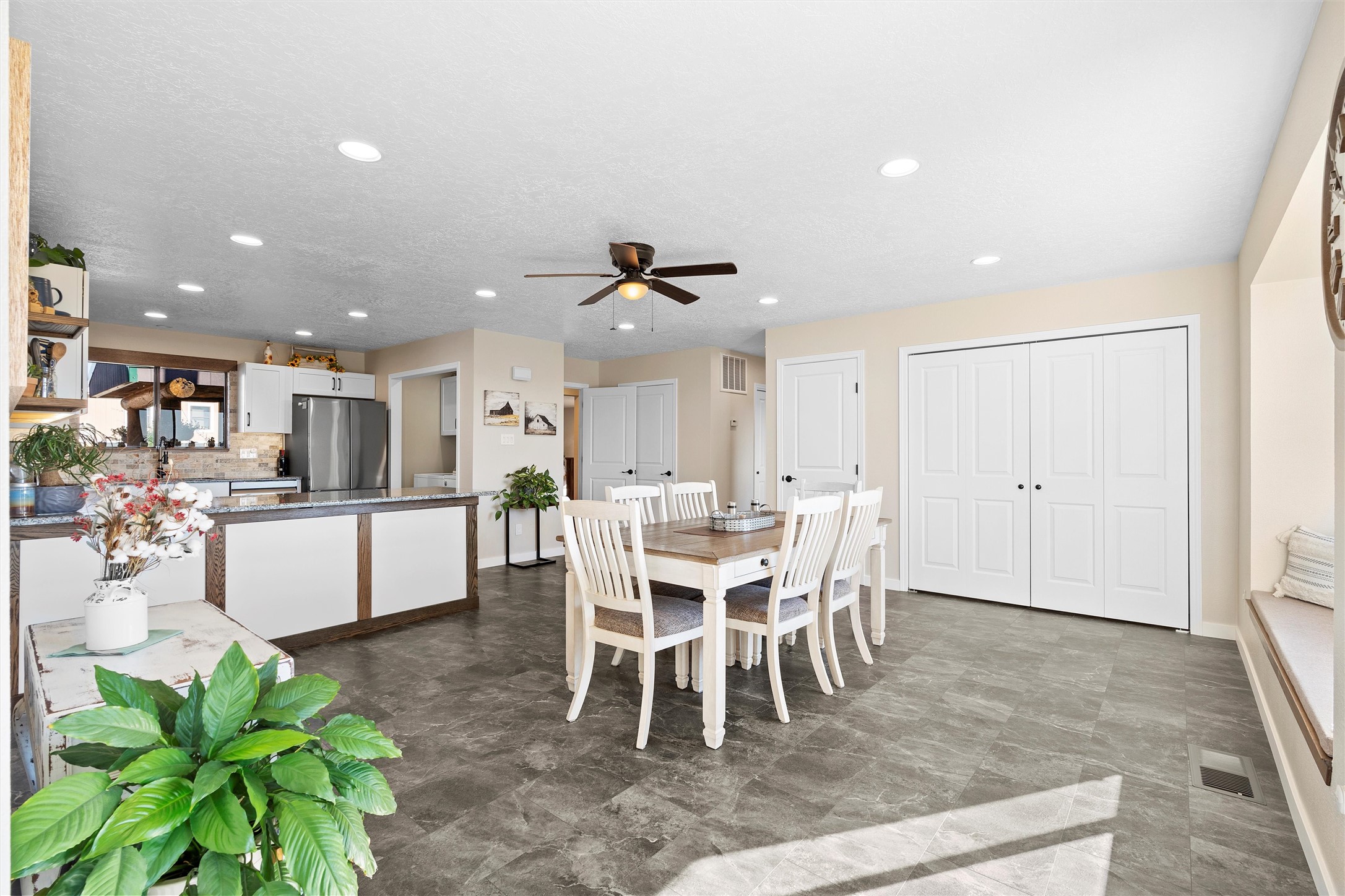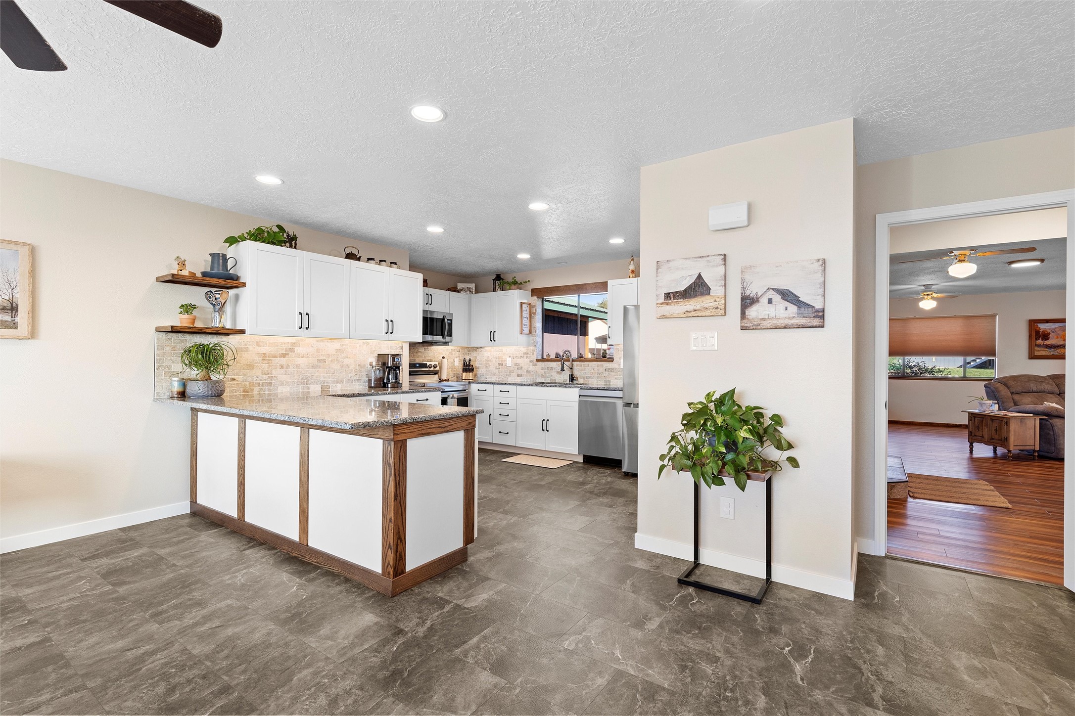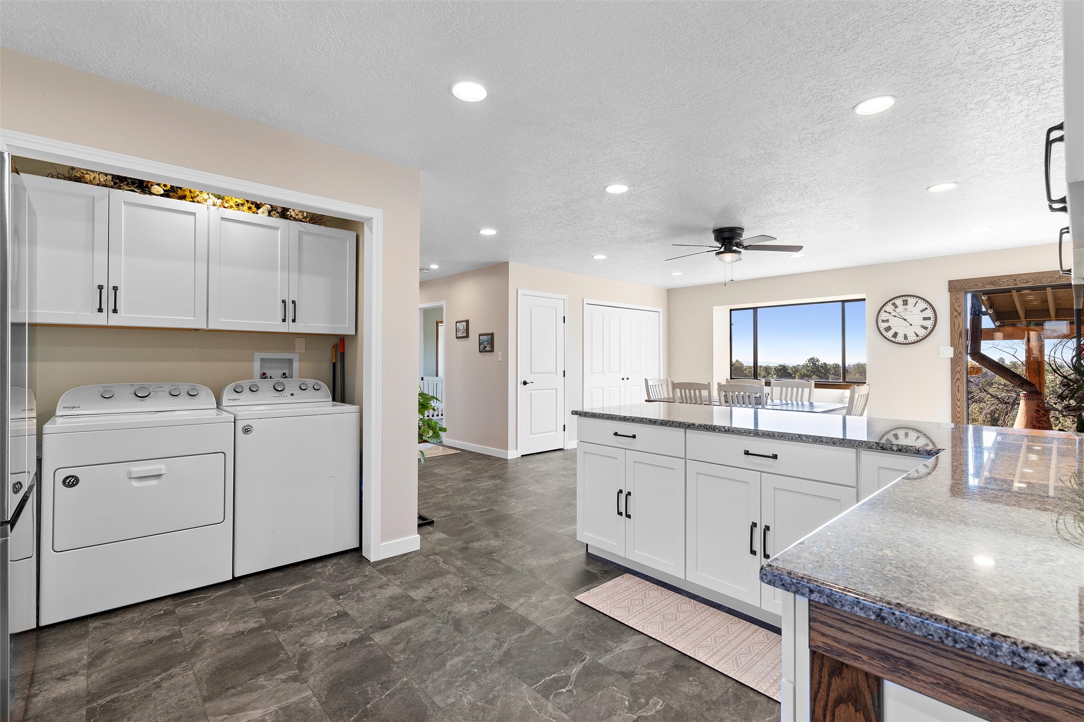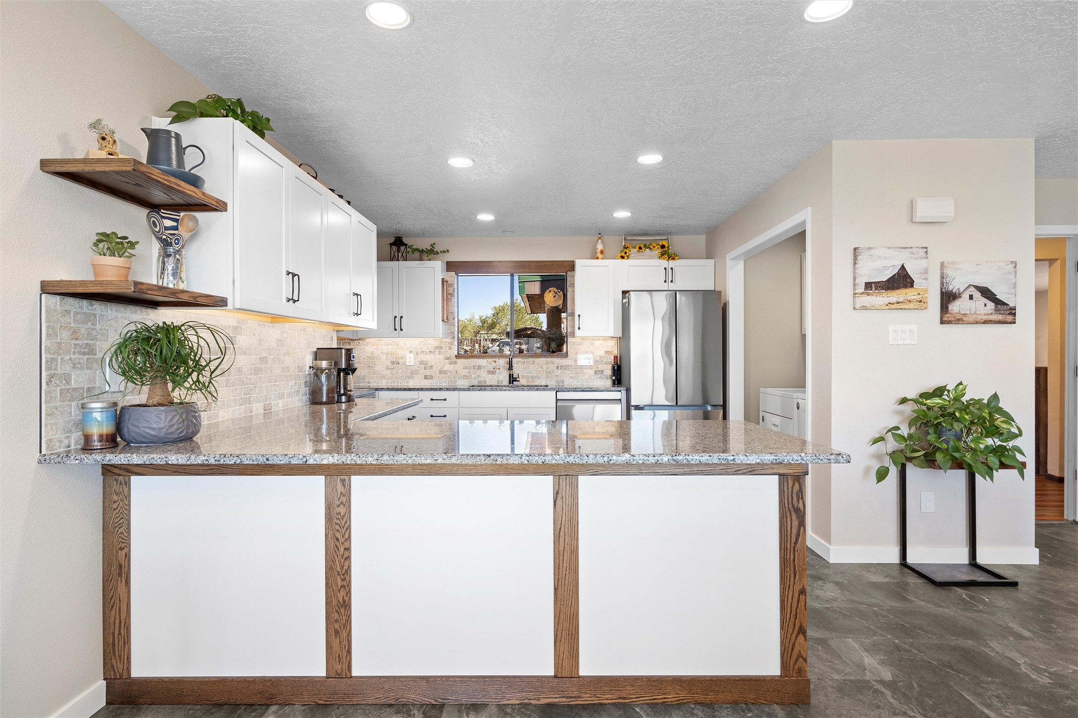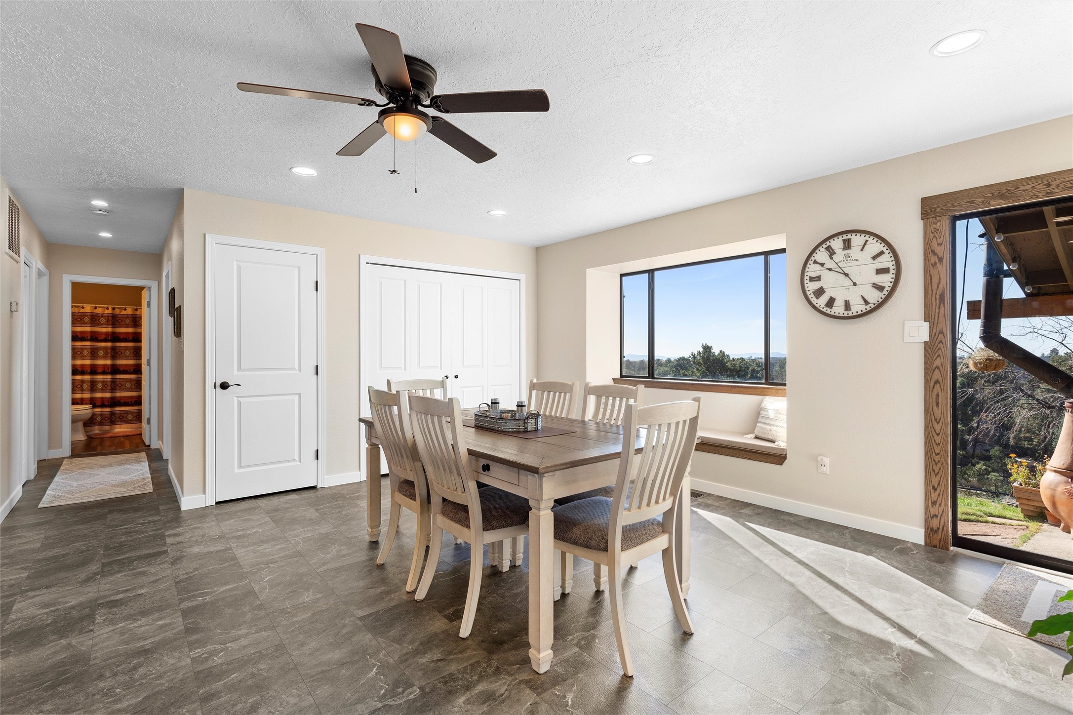 Welcome to this beautifully maintained 3-bedroom, 2-bath single-level home on North Mesa. Enjoy unobstructed views of the Sangre de Cristo and Pajarito Mountains from your lush backyard sanctuary, featuring green grass, vibrant perennials, and a spacious covered patio--perfect for relaxing or entertaining. Inside, the sun-filled living room boasts stylish laminate flooring, while the renovated open kitchen offers granite countertops and ample space for culinary creativity. The primary suite features an en suite bath and a custom birch wood closet system. Two guest bedrooms and a full bath are thoughtfully located on the opposite wing for privacy. Additional highlights include a convenient laundry area off the kitchen, a 2-car garage, a separate workshop with built-in workbench and shelving, and a hide-away office with a custom butcher block desk. With no neighbors behind you, this peaceful retreat is truly one-of-a-kind! Don't miss your chance to call 1043 Cheyenne home--schedule your showing today!