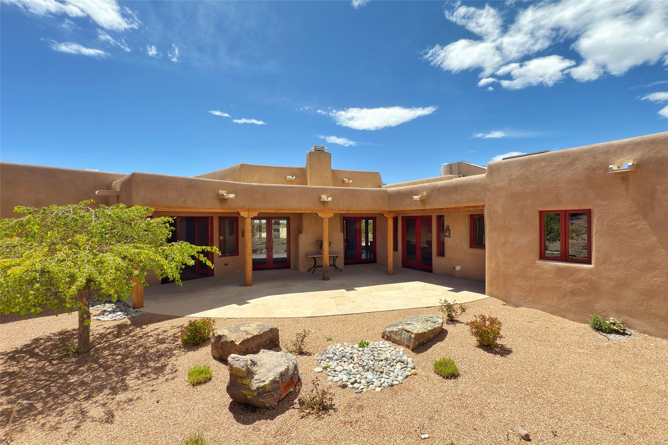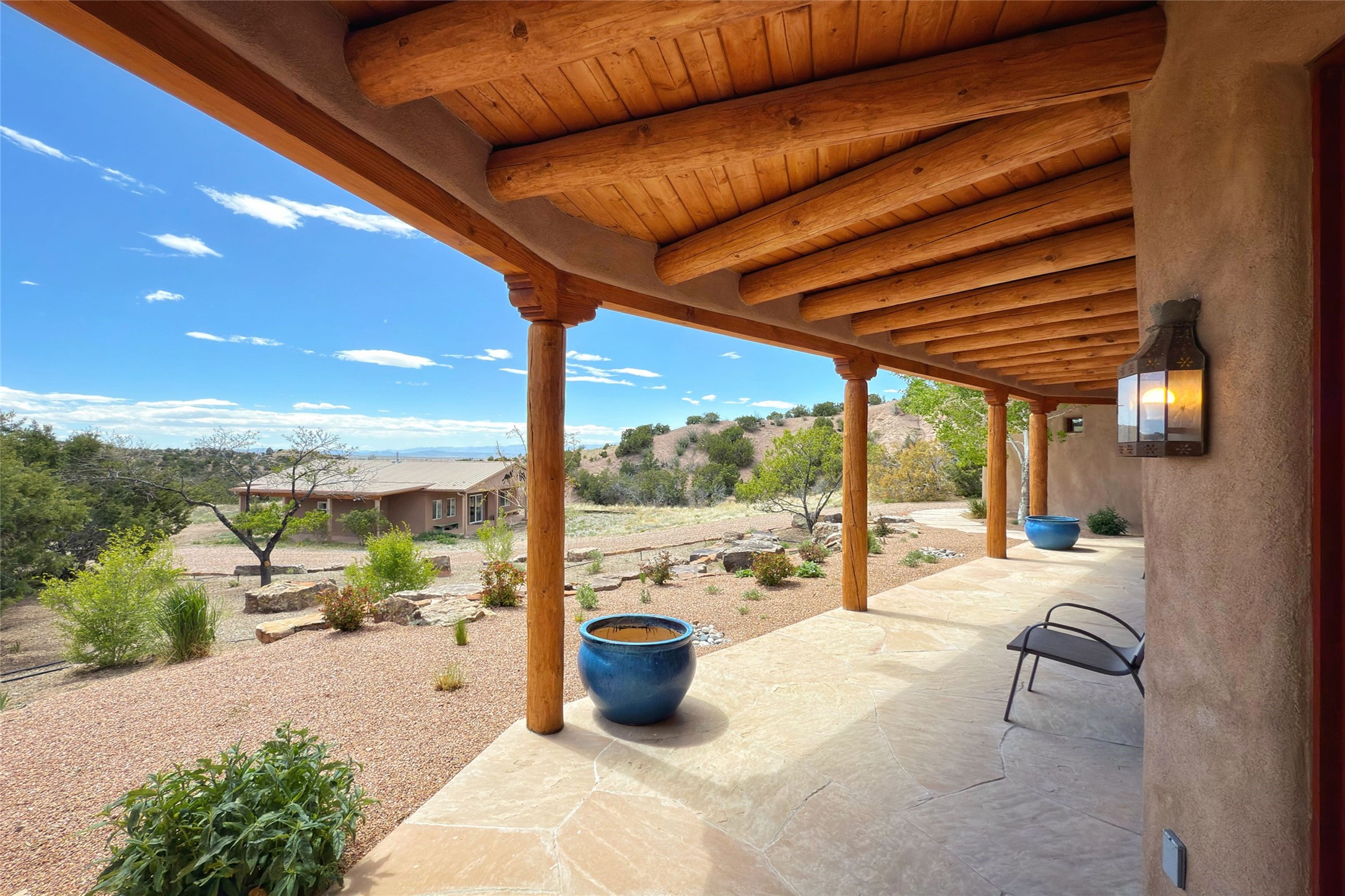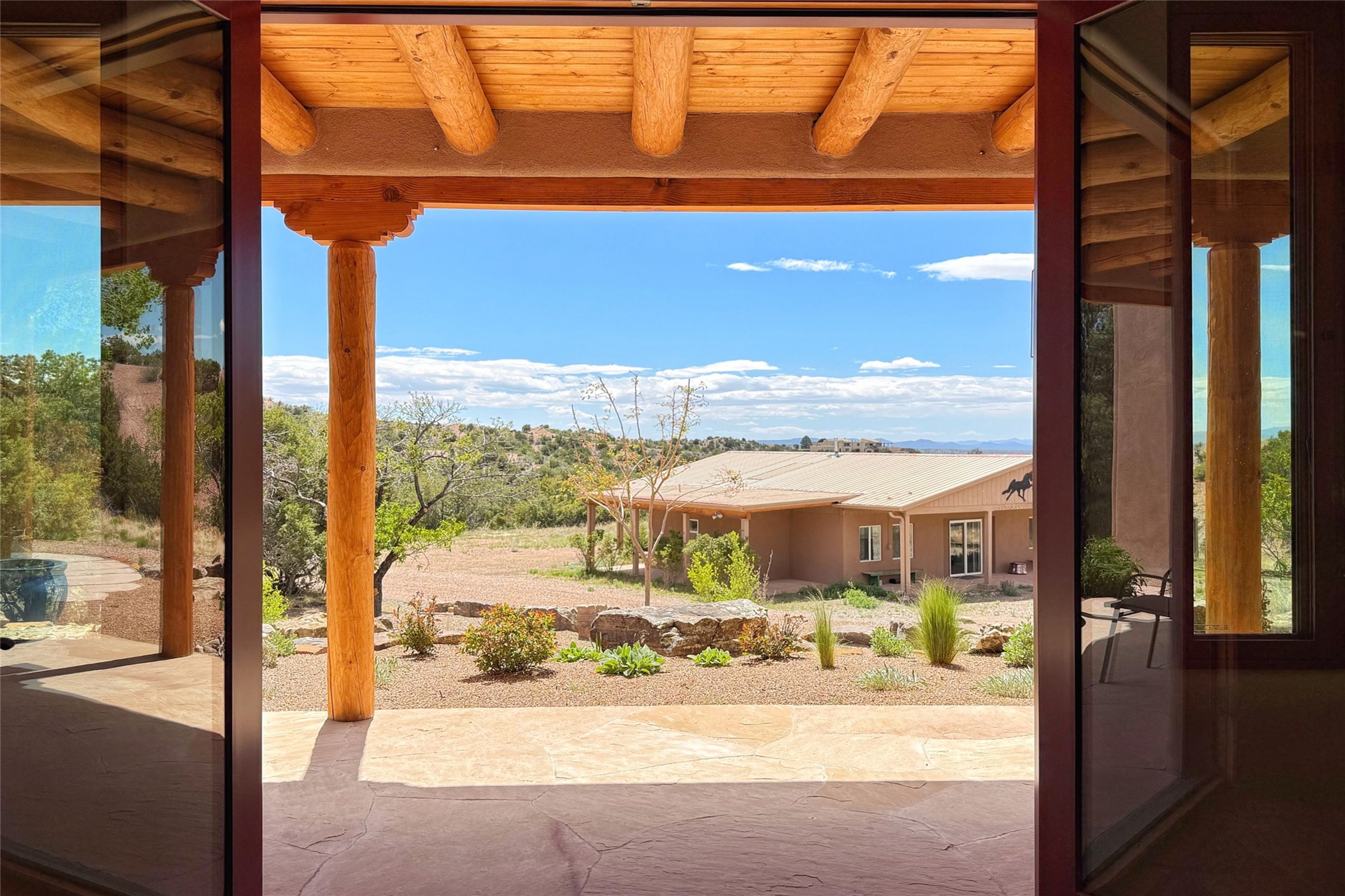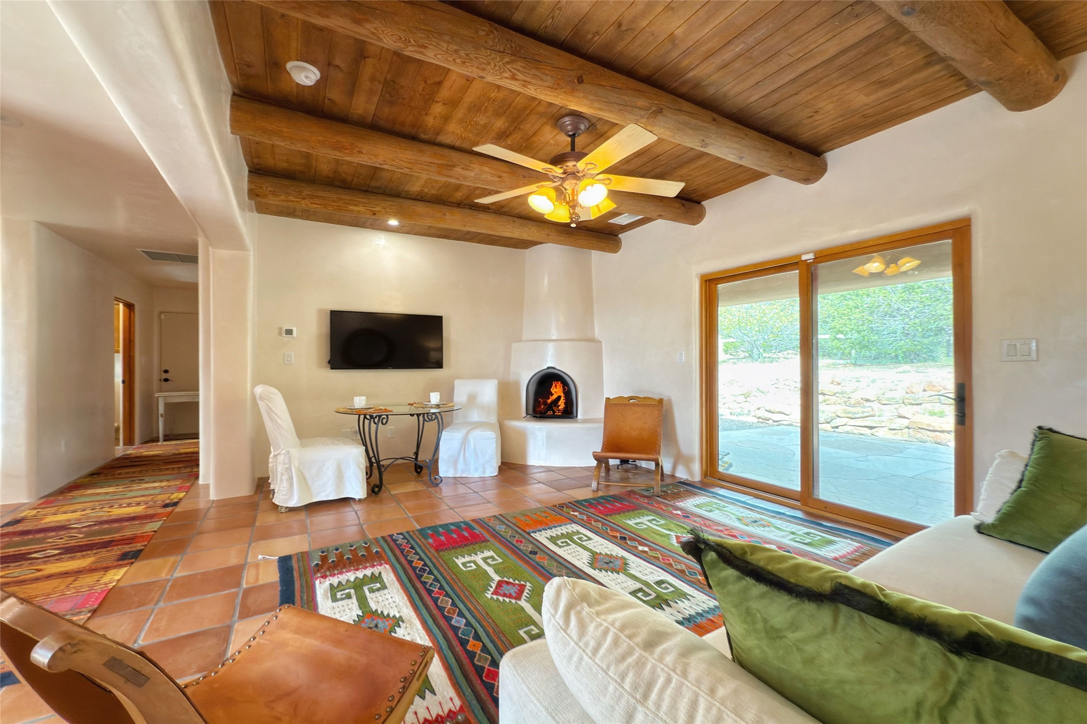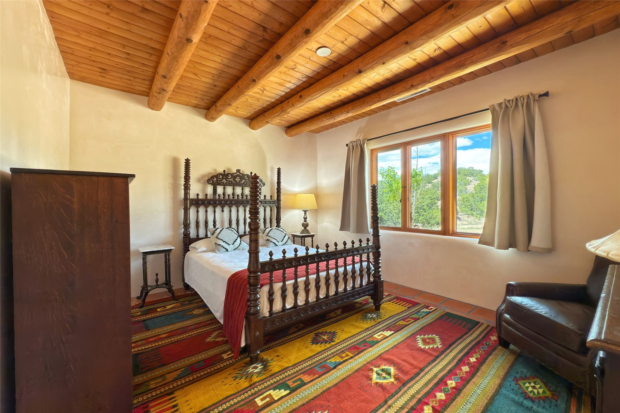 Southwest Elegance Meets Modern Luxury - Tesuque Estate Near Santa FeExperience timeless charm and refined upgrades in this exceptional Tesuque estate just 15 minutes from downtown Santa Fe. The property includes a beautifully renovated main house, a private guesthouse, and a versatile third structure ideal as a studio, barn, or additional guest quarters.The main residence showcases superior craftsmanship with diamond plaster walls, Loewen windows and doors, and Saltillo tile floors. The chef's kitchen features SubZero and Wolf appliances, an Asko dishwasher, an imported porcelain farmhouse sink, and striking Taj Mahal quartz countertops. The great room impresses with soaring ceilings, dual chandeliers, a wood-burning fireplace, and expansive western views, flowing onto two covered flagstone patios--perfect for indoor-outdoor living.The primary suite offers a luxurious retreat with its own fireplace, a spa-like bath with soaking tub, walk-in shower, dual pedestal sinks, and an adjacent study with fireplace and patio access. Two additional bedrooms complete the home--one with ensuite bath, the other with access to a nearby half bath. Comforts include radiant floor heating and central A/C.The guesthouse offers two bedrooms and two baths, with upgrades mirroring the main home: diamond plaster walls, quartz countertops, radiant heating, central A/C, and Loewen windows. Its primary suite features a kiva fireplace, soaking tub, and walk-in shower, while the second bedroom enjoys tranquil western views. A cozy living/dining area with kiva fireplace and a private flagstone patio complete the space.Set on a beautifully landscaped lot with mature junipers, fenced areas, and irrigated gardens, this private estate offers peace and elegance just minutes from the heart of Santa Fe.