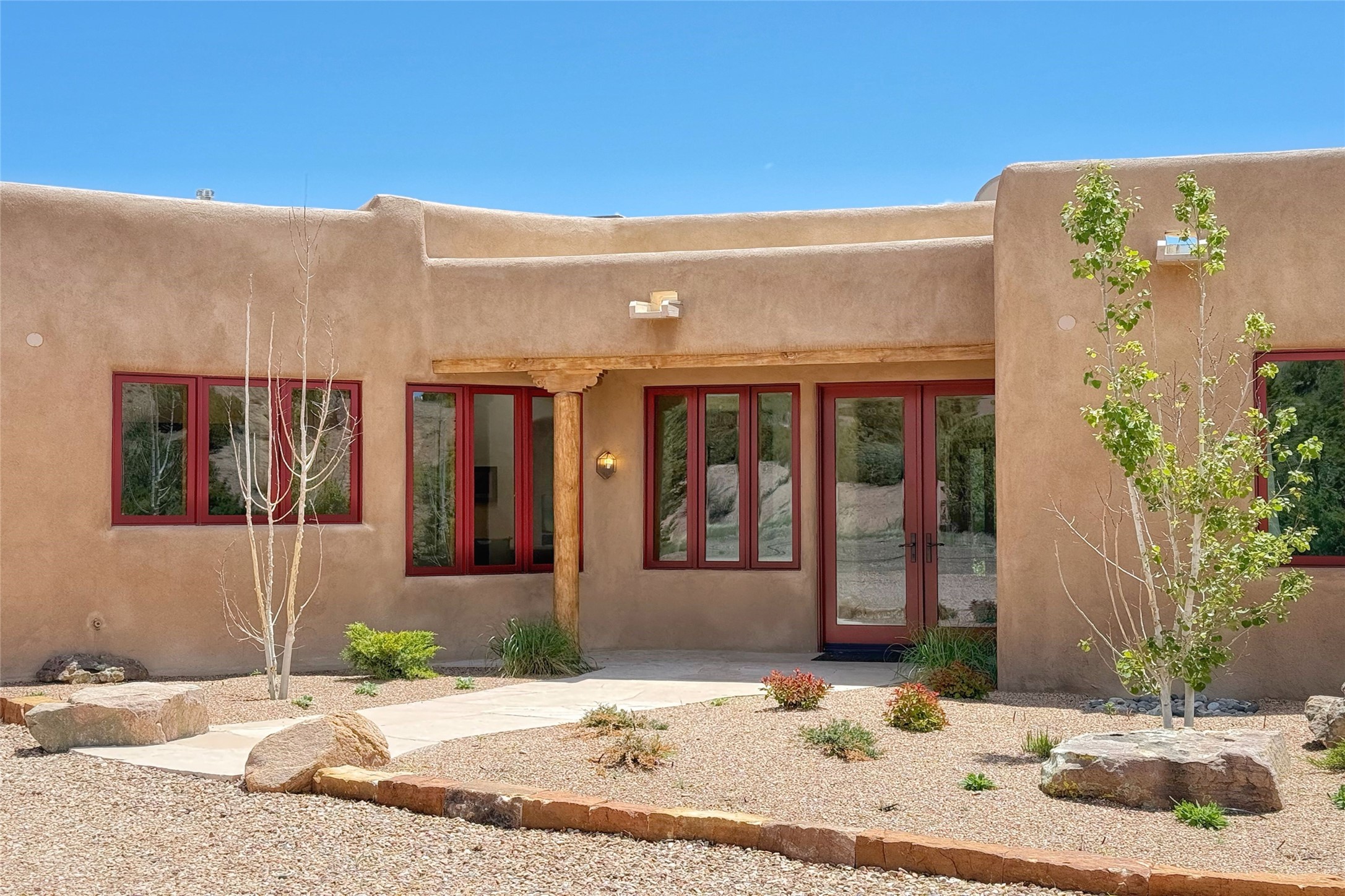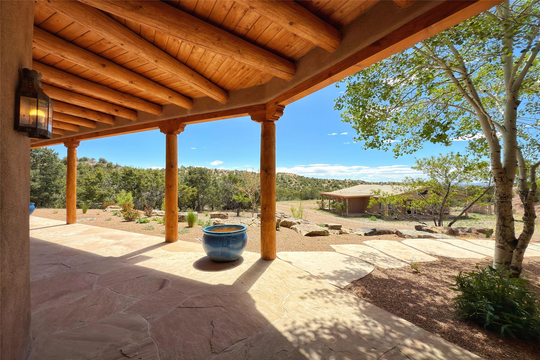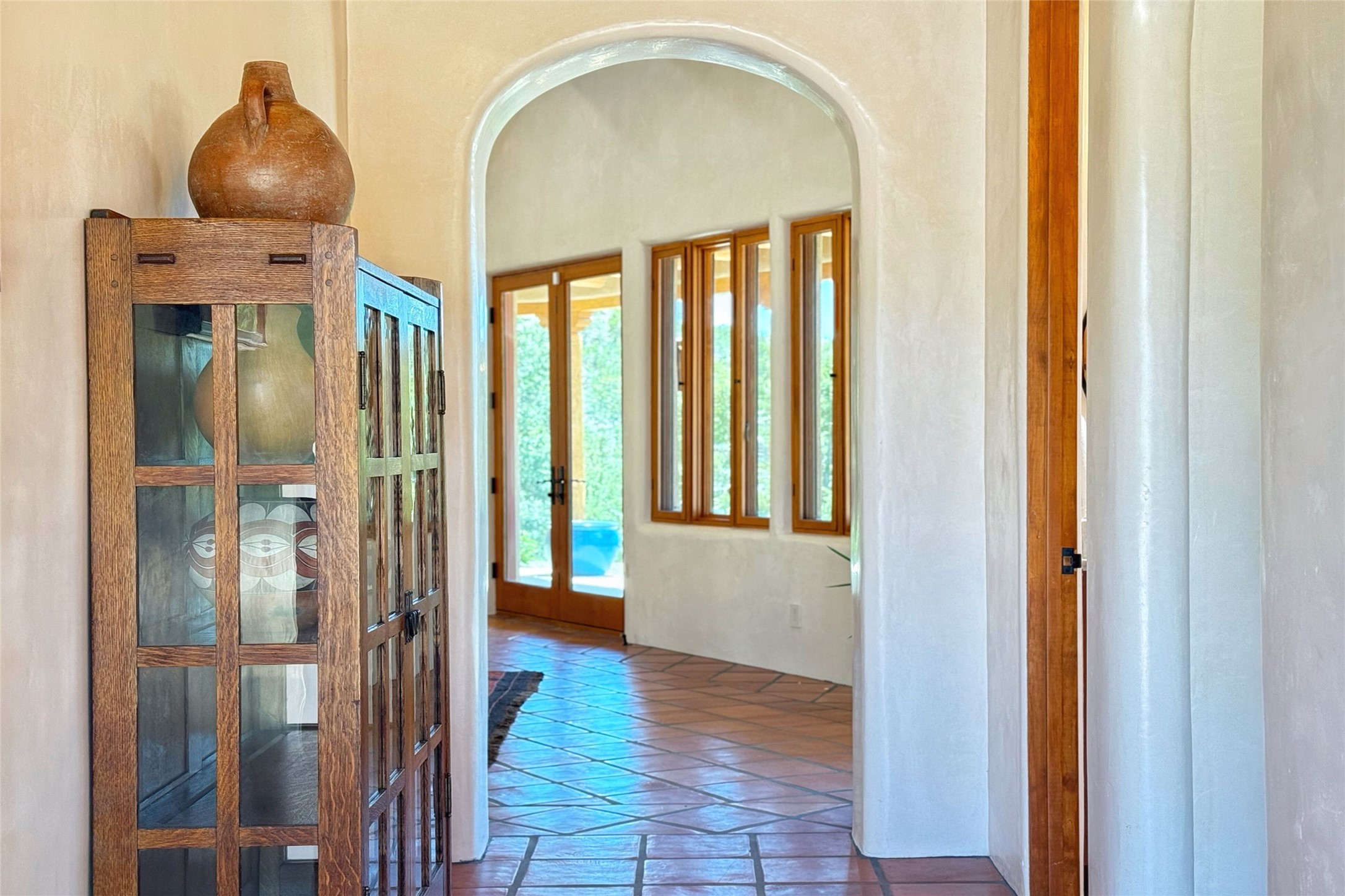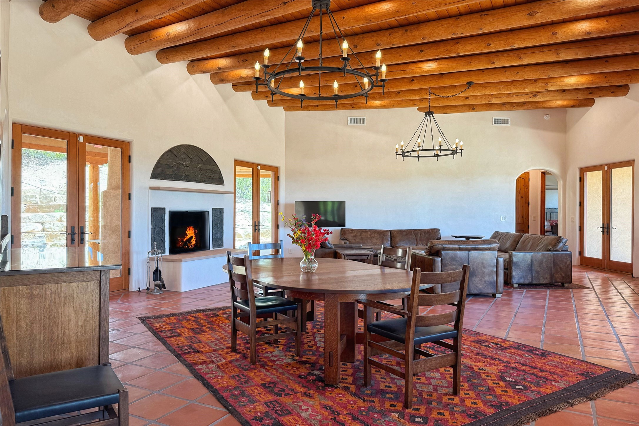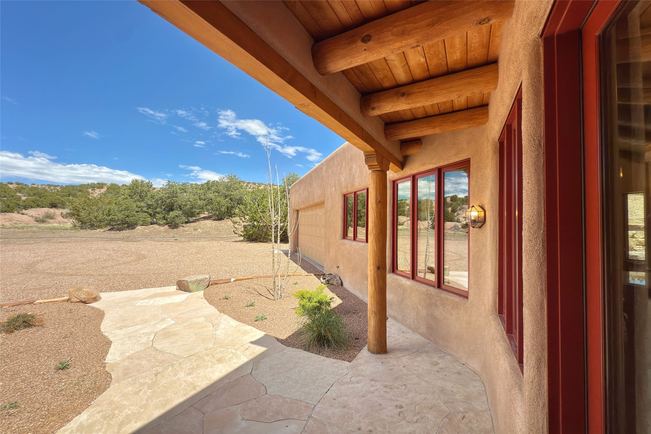 Southwest Elegance Meets Modern Luxury - Tesuque Estate Near Santa FeExperience timeless charm and refined upgrades in this exceptional Tesuque estate just 15 minutes from downtown Santa Fe. The property includes a beautifully renovated main house, a private guesthouse, and a versatile third structure ideal as a studio, barn, or additional guest quarters.The main residence showcases superior craftsmanship with diamond plaster walls, Loewen windows and doors, and Saltillo tile floors. The chef's kitchen features SubZero and Wolf appliances, an Asko dishwasher, an imported porcelain farmhouse sink, and striking Taj Mahal quartz countertops. The great room impresses with soaring ceilings, dual chandeliers, a wood-burning fireplace, and expansive western views, flowing onto two covered flagstone patios--perfect for indoor-outdoor living.The primary suite offers a luxurious retreat with its own fireplace, a spa-like bath with soaking tub, walk-in shower, dual pedestal sinks, and an adjacent study with fireplace and patio access. Two additional bedrooms complete the home--one with ensuite bath, the other with access to a nearby half bath. Comforts include radiant floor heating and central A/C.The guesthouse offers two bedrooms and two baths, with upgrades mirroring the main home: diamond plaster walls, quartz countertops, radiant heating, central A/C, and Loewen windows. Its primary suite features a kiva fireplace, soaking tub, and walk-in shower, while the second bedroom enjoys tranquil western views. A cozy living/dining area with kiva fireplace and a private flagstone patio complete the space.Set on a beautifully landscaped lot with mature junipers, fenced areas, and irrigated gardens, this private estate offers peace and elegance just minutes from the heart of Santa Fe.