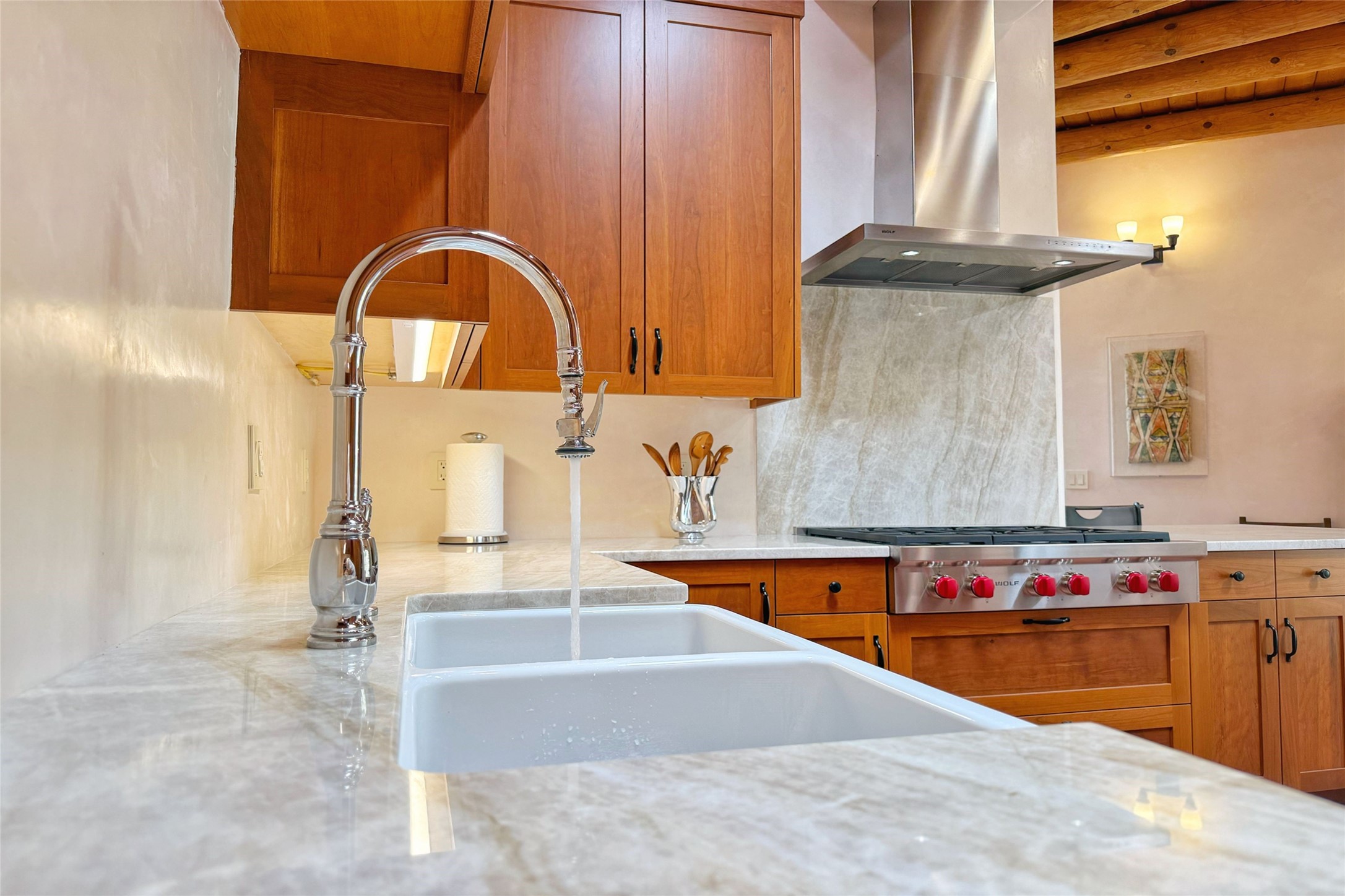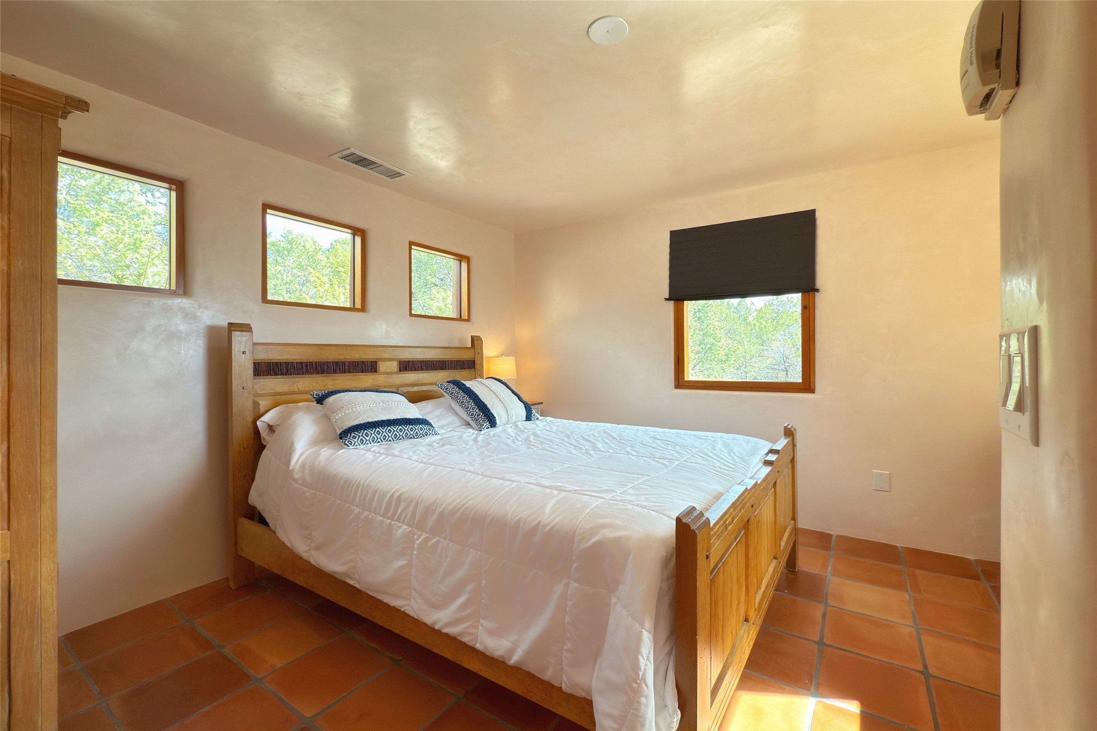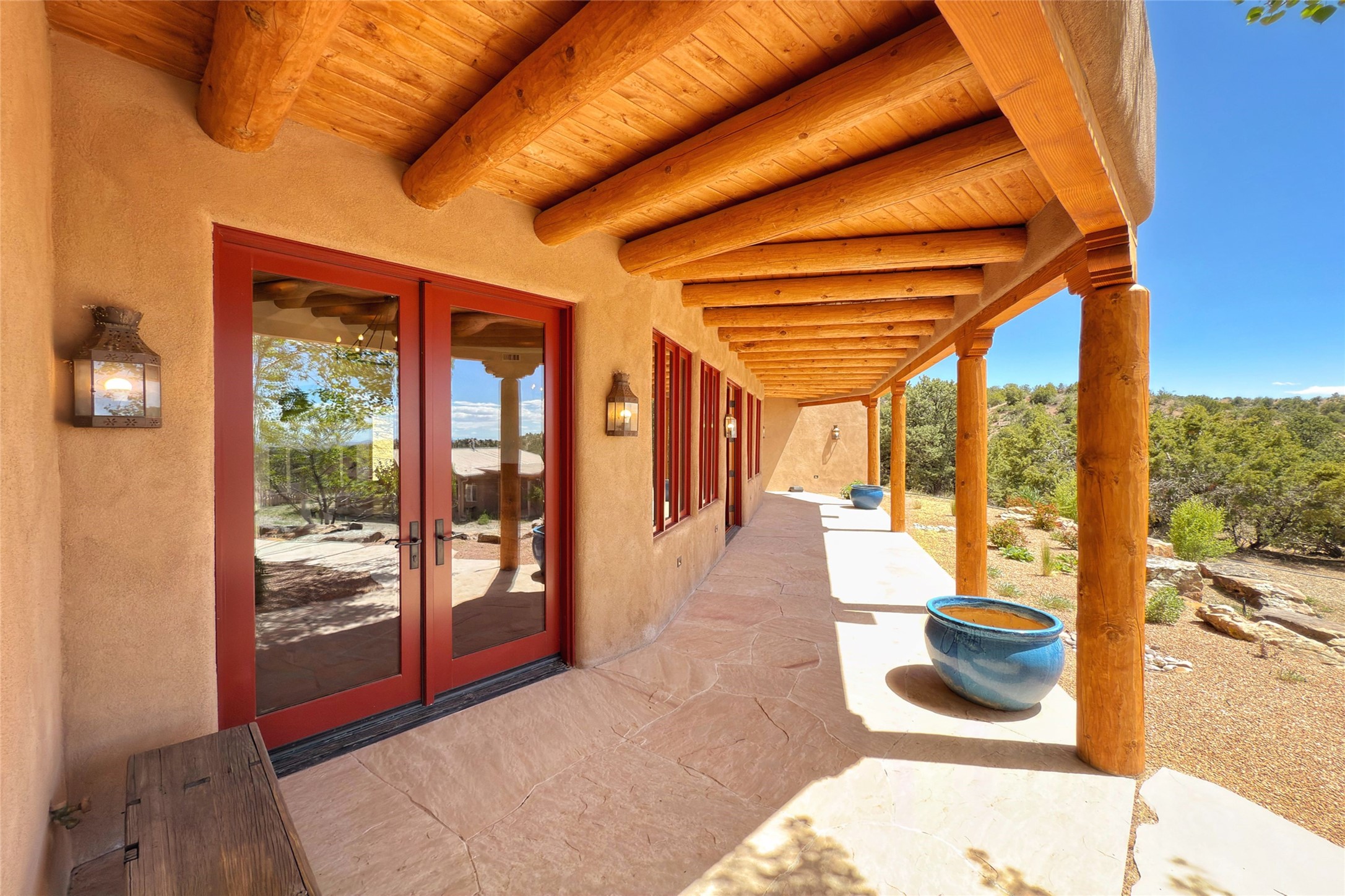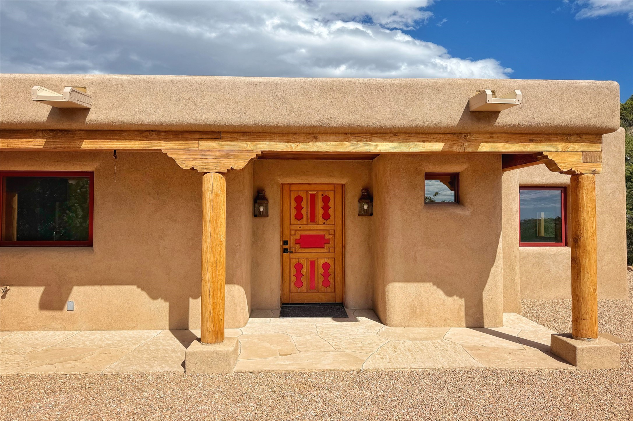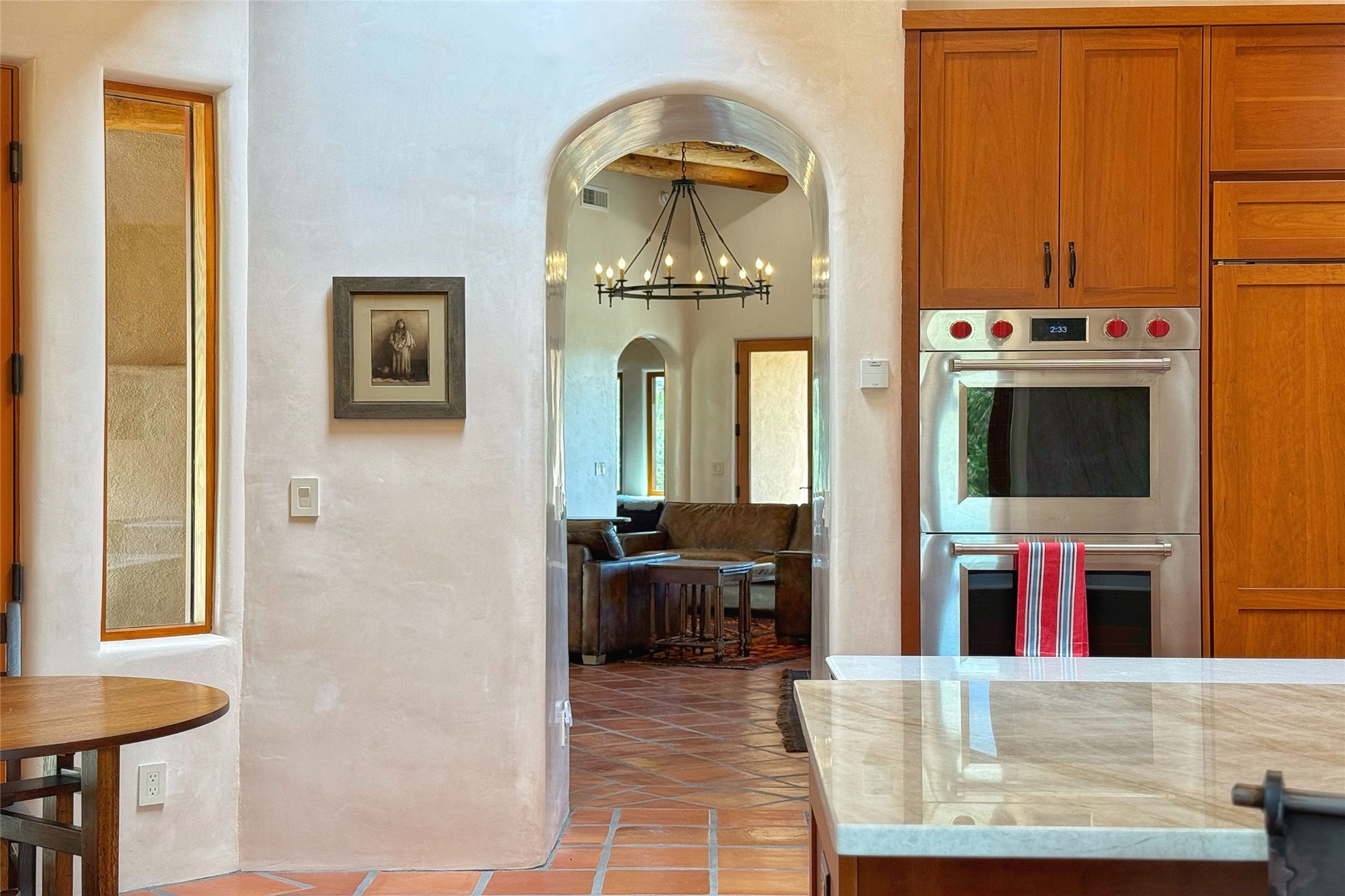 Southwest Elegance Meets Modern Luxury - Tesuque Estate Near Santa FeExperience timeless charm and refined upgrades in this exceptional Tesuque estate just 15 minutes from downtown Santa Fe. The property includes a beautifully renovated main house, a private guesthouse, and a versatile third structure ideal as a studio, barn, or additional guest quarters.The main residence showcases superior craftsmanship with diamond plaster walls, Loewen windows and doors, and Saltillo tile floors. The chef's kitchen features SubZero and Wolf appliances, an Asko dishwasher, an imported porcelain farmhouse sink, and striking Taj Mahal quartz countertops. The great room impresses with soaring ceilings, dual chandeliers, a wood-burning fireplace, and expansive western views, flowing onto two covered flagstone patios--perfect for indoor-outdoor living.The primary suite offers a luxurious retreat with its own fireplace, a spa-like bath with soaking tub, walk-in shower, dual pedestal sinks, and an adjacent study with fireplace and patio access. Two additional bedrooms complete the home--one with ensuite bath, the other with access to a nearby half bath. Comforts include radiant floor heating and central A/C.The guesthouse offers two bedrooms and two baths, with upgrades mirroring the main home: diamond plaster walls, quartz countertops, radiant heating, central A/C, and Loewen windows. Its primary suite features a kiva fireplace, soaking tub, and walk-in shower, while the second bedroom enjoys tranquil western views. A cozy living/dining area with kiva fireplace and a private flagstone patio complete the space.Set on a beautifully landscaped lot with mature junipers, fenced areas, and irrigated gardens, this private estate offers peace and elegance just minutes from the heart of Santa Fe.