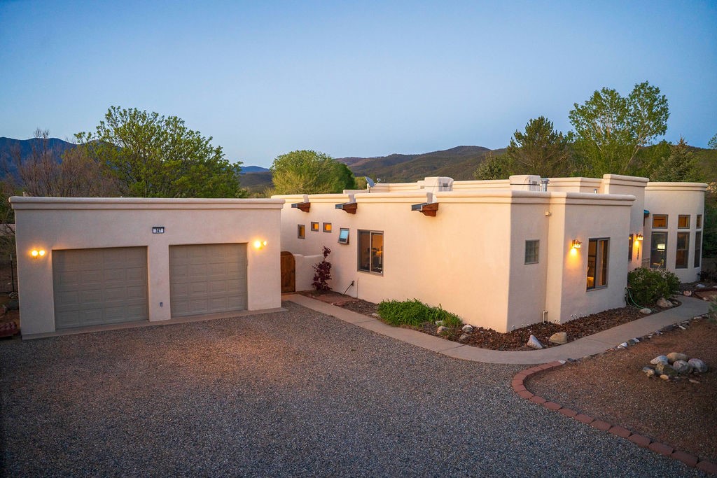 Welcome to this beautiful well maintained home in the Vegas de Taos Subdivision discover comfort and community in this desirable neighborhood with spectacular mountain and sunset views. Enjoy municipal services, newly paved roads, sidewalks, and underground utilities in a setting that feels both peaceful and connected. This property is just five minutes from historic Taos Plaza, offering easy access to shopping, dining, art, and culture. Step inside to an open and welcoming great room with vaulted 14 foot tongue and groove ceilings and a spacious kitchen with peninsula designed for both culinary creativity and casual gatherings. A sunlit sitting area tucked into a curved nook creates an ideal space for reading, reflection, or relaxation. The home features radiant floor heating and tile throughout including closets adding comfort and ease of maintenance. The great room includes thoughtful design accents that reflect the regions Southwestern character, while built-in electrical floor outlets allow for flexible furniture placement. This well-appointed residence includes 3 bedrooms and 2.5 bathrooms, providing both functionality and privacy. The generously sized primary suite features a walk-in closet and an ensuite bathroom with a skylight, claw foot soaking tub with hand held shower, double sinks, and a separate walk in shower. The second full bathroom conveniently located between the two additional bedrooms also includes a walk in shower with a built in bench. A discreetly located powder room off the great room offers added convenience for guests. A gas fireplace in the living area enhances the cozy atmosphere during cooler seasons, while three swamp coolers help maintain comfort during warmer months. Outdoor living is effortless, with a patio that offers unobstructed views of Pueblo Peak and access from both the great room and primary bedroom. A traditional kiva fireplace invites year-round enjoyment, and a four person hot tub provides a relaxing retreat for stargazing or listening to elk bugling in the distance. The two-car garage includes ample built-in storage and an additional refrigerator/freezer, with both keypad entry and automatic openers. The fully fenced, three-quarter-acre lot is designed for low-maintenance care and is enhanced by mature trees including cottonwoods and evergreens that add privacy and natural beauty. This thoughtfully designed home offers comfort, functionality, and scenic surroundings, all within minutes of the cultural and recreational amenities of Taos. Whether you're looking for a full time residence, a mountain getaway, or an easy to maintain base in the heart of Northern New Mexico, this home offers comfort, community, and that unmistakable Taos spirit. Location, lifestyle, and livability this is Vegas de Taos.