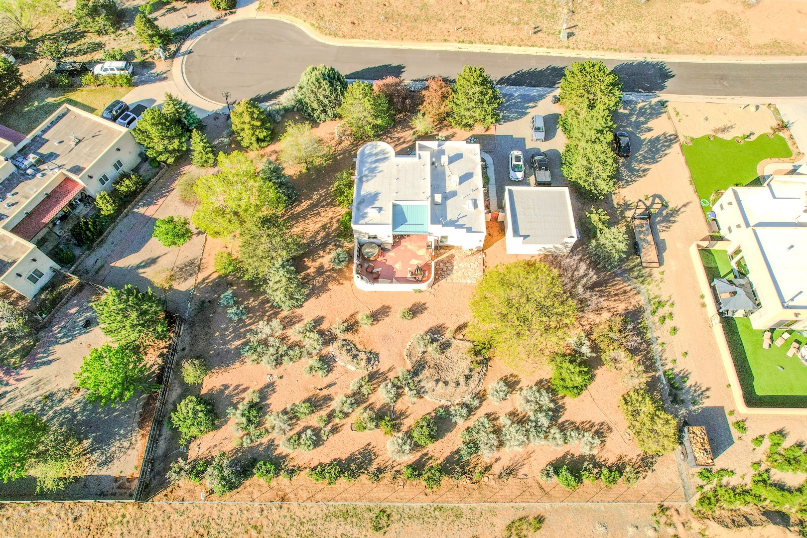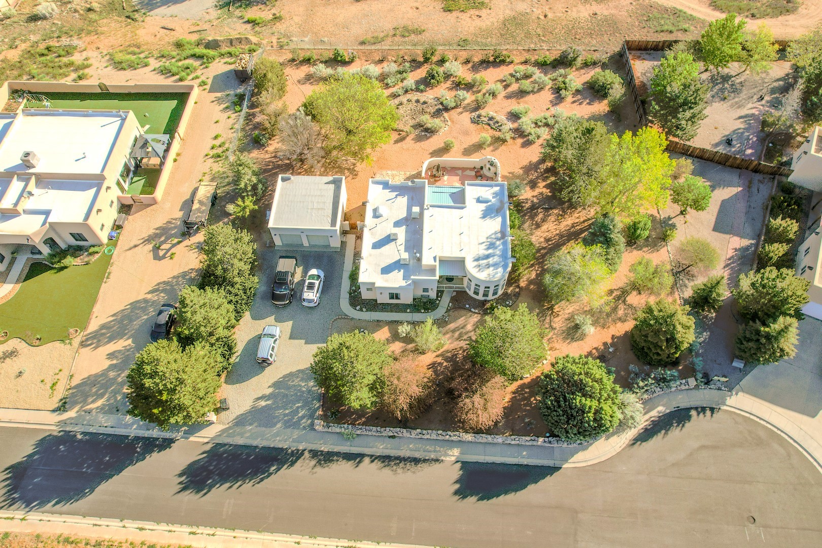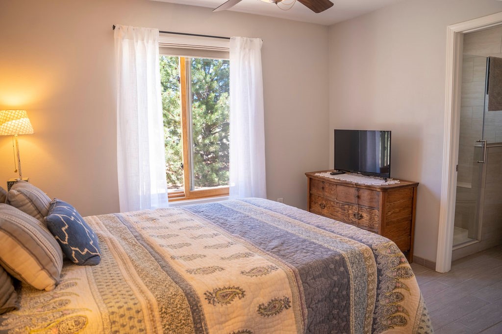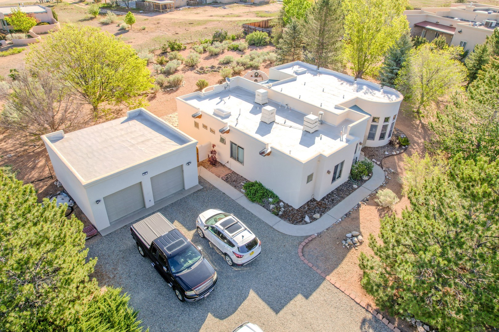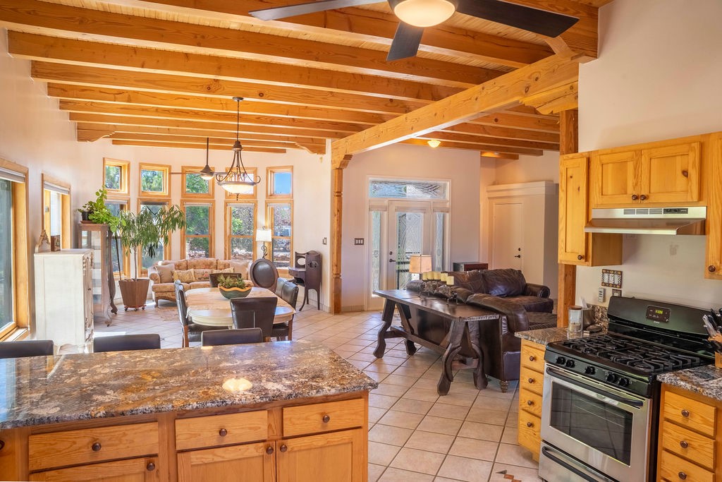 Welcome to this beautiful well maintained home in the Vegas de Taos Subdivision discover comfort and community in this desirable neighborhood with spectacular mountain and sunset views. Enjoy municipal services, newly paved roads, sidewalks, and underground utilities in a setting that feels both peaceful and connected. This property is just five minutes from historic Taos Plaza, offering easy access to shopping, dining, art, and culture. Step inside to an open and welcoming great room with vaulted 14 foot tongue and groove ceilings and a spacious kitchen with peninsula designed for both culinary creativity and casual gatherings. A sunlit sitting area tucked into a curved nook creates an ideal space for reading, reflection, or relaxation. The home features radiant floor heating and tile throughout including closets adding comfort and ease of maintenance. The great room includes thoughtful design accents that reflect the regions Southwestern character, while built-in electrical floor outlets allow for flexible furniture placement. This well-appointed residence includes 3 bedrooms and 2.5 bathrooms, providing both functionality and privacy. The generously sized primary suite features a walk-in closet and an ensuite bathroom with a skylight, claw foot soaking tub with hand held shower, double sinks, and a separate walk in shower. The second full bathroom conveniently located between the two additional bedrooms also includes a walk in shower with a built in bench. A discreetly located powder room off the great room offers added convenience for guests. A gas fireplace in the living area enhances the cozy atmosphere during cooler seasons, while three swamp coolers help maintain comfort during warmer months. Outdoor living is effortless, with a patio that offers unobstructed views of Pueblo Peak and access from both the great room and primary bedroom. A traditional kiva fireplace invites year-round enjoyment, and a four person hot tub provides a relaxing retreat for stargazing or listening to elk bugling in the distance. The two-car garage includes ample built-in storage and an additional refrigerator/freezer, with both keypad entry and automatic openers. The fully fenced, three-quarter-acre lot is designed for low-maintenance care and is enhanced by mature trees including cottonwoods and evergreens that add privacy and natural beauty. This thoughtfully designed home offers comfort, functionality, and scenic surroundings, all within minutes of the cultural and recreational amenities of Taos. Whether you're looking for a full time residence, a mountain getaway, or an easy to maintain base in the heart of Northern New Mexico, this home offers comfort, community, and that unmistakable Taos spirit. Location, lifestyle, and livability this is Vegas de Taos.