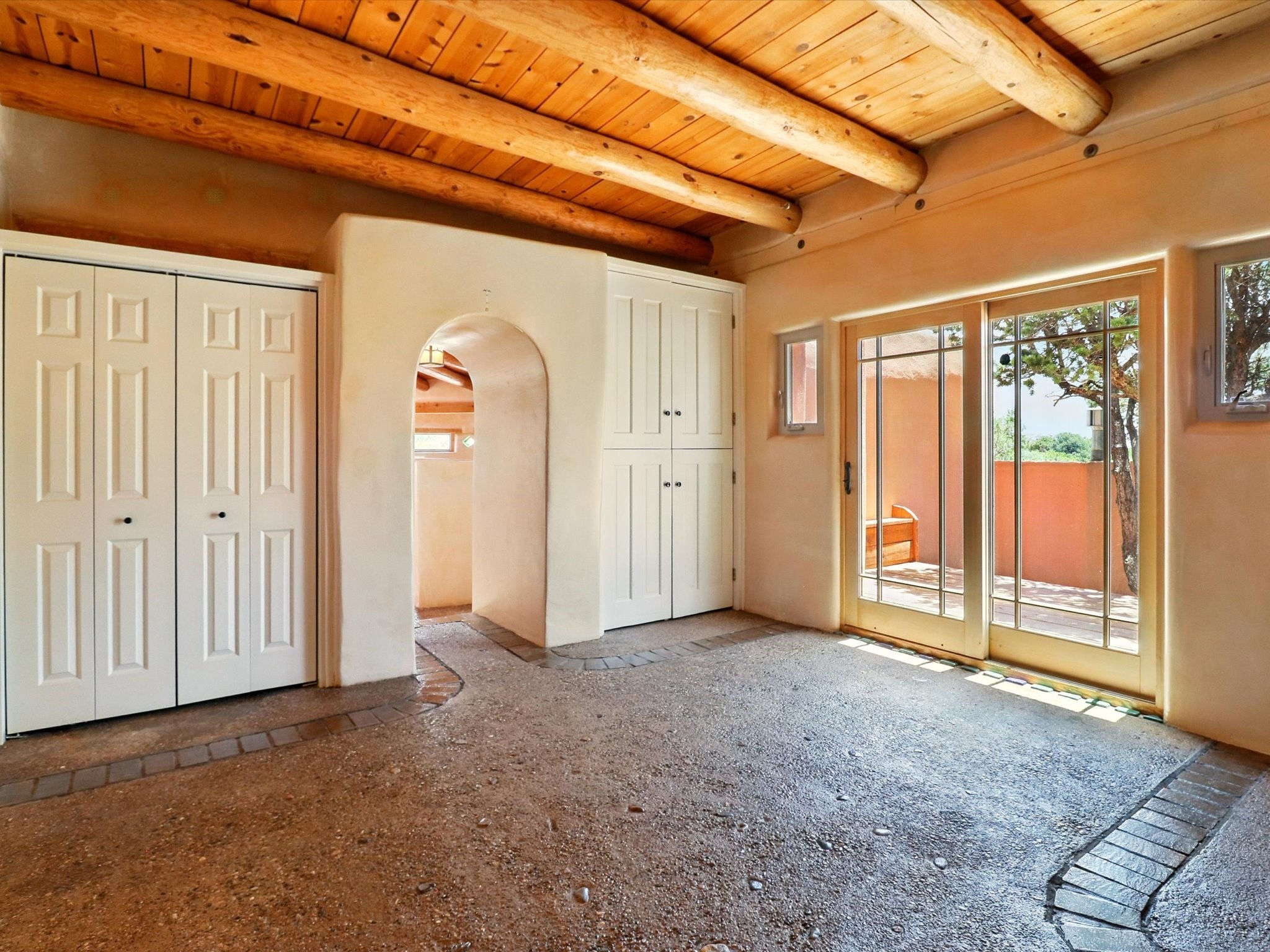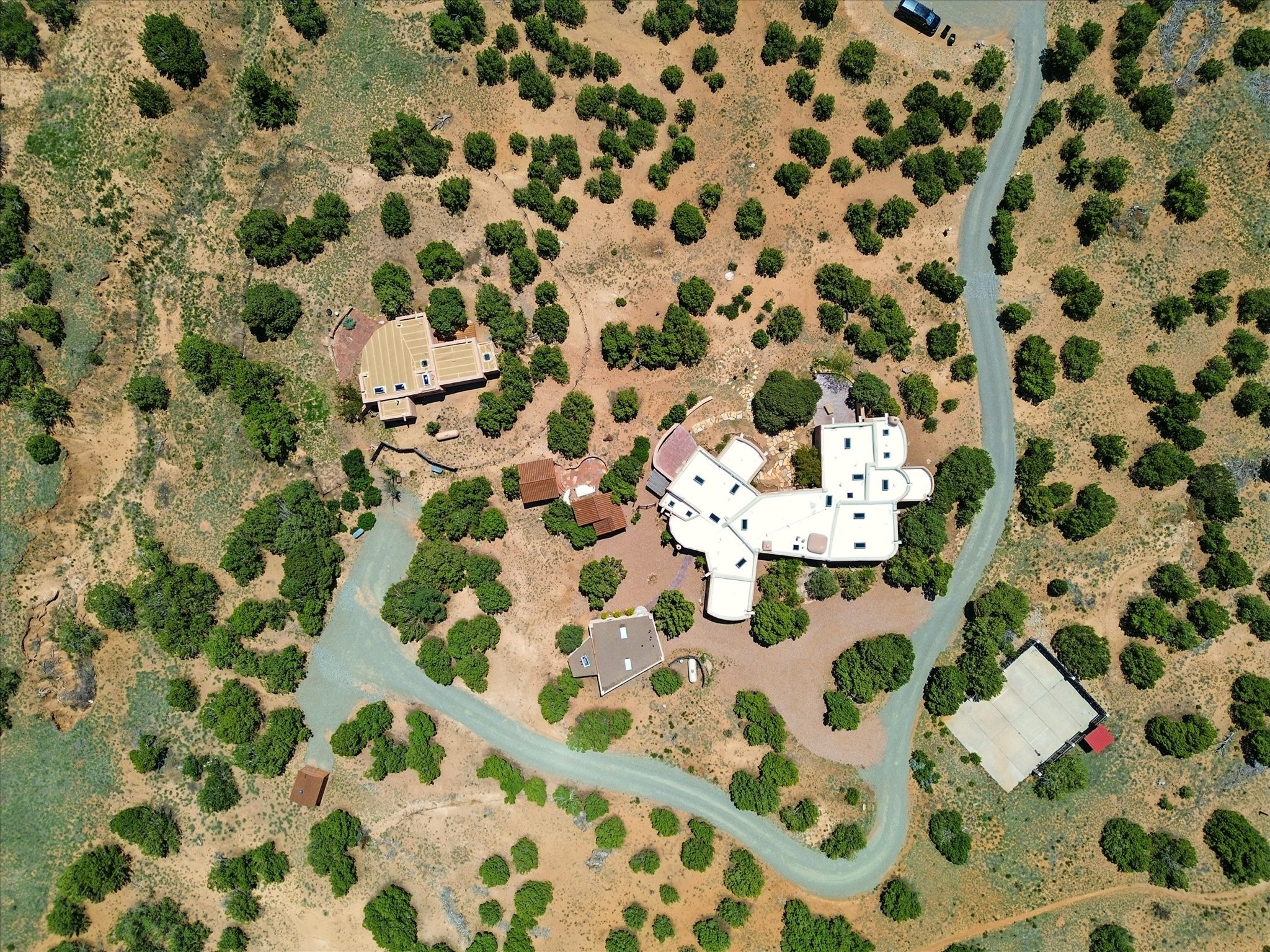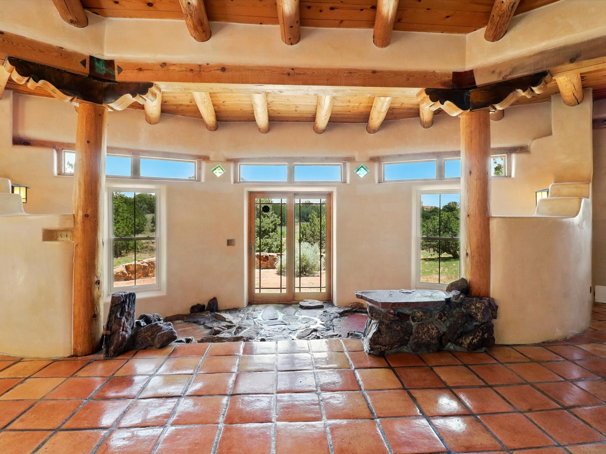 Enchanting Adobe Retreat with Guest Casita on 5 Private Acres - A timeless sanctuary nestled in the foothills of Santa Fe, where every sunrise brings serenity and every sunset invites reflection. For over three decades, this property has been cherished and curated, blending rich Santa Fe tradition with European influences.Begin your mornings on the covered kitchen patio, coffee in hand, as the sun rises over the Sangre De Cristo Mountains. Inside, the heart of the home unfolds with a kitchen island overlooking the living room's doors and windows -- framing an ornamental cherry tree and a 300-year-old pion tree.This custom adobe overflows with craftsmanship. Hand-carved beams, herringbone latillas, corbels, nichos, and structolite plastered walls speak to the region's architectural heritage. Thoughtful design details elevate the space: Venetian glass lighting, custom fixtures crafted by local artisans, and elegant Italian porcelain baths with satin nickel finishes from "Santa Fe by Design."Enjoy year-round comfort thanks to thick adobe walls, Marvin doors and windows, and radiant in-floor heating throughout the home. As the day winds down, indulge in a soak in the luxurious 6-foot clawfoot tub, gazing out the large picture window by sunset.Multiple portals -- two attached and two detached -- offer peaceful spots to unwind, each with its own perspective of the lush 5-acre grounds. Designed as an equestrian property, the land is both functional and magical, offering serenity, privacy, and space to explore.Included is a charming and fully private custom adobe guest house -- perfect for guests or as a proven income-generating rental.31 A&B Hondo Trail is more than a home; it's a living piece of art, a place of beauty, peace, and purpose. Come experience the enchantment for yourself.MAIN HOME HAS A NEW ROOF INSTALLED MAY 2025