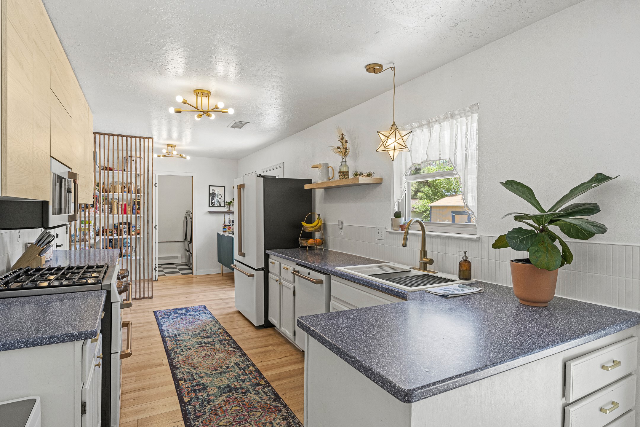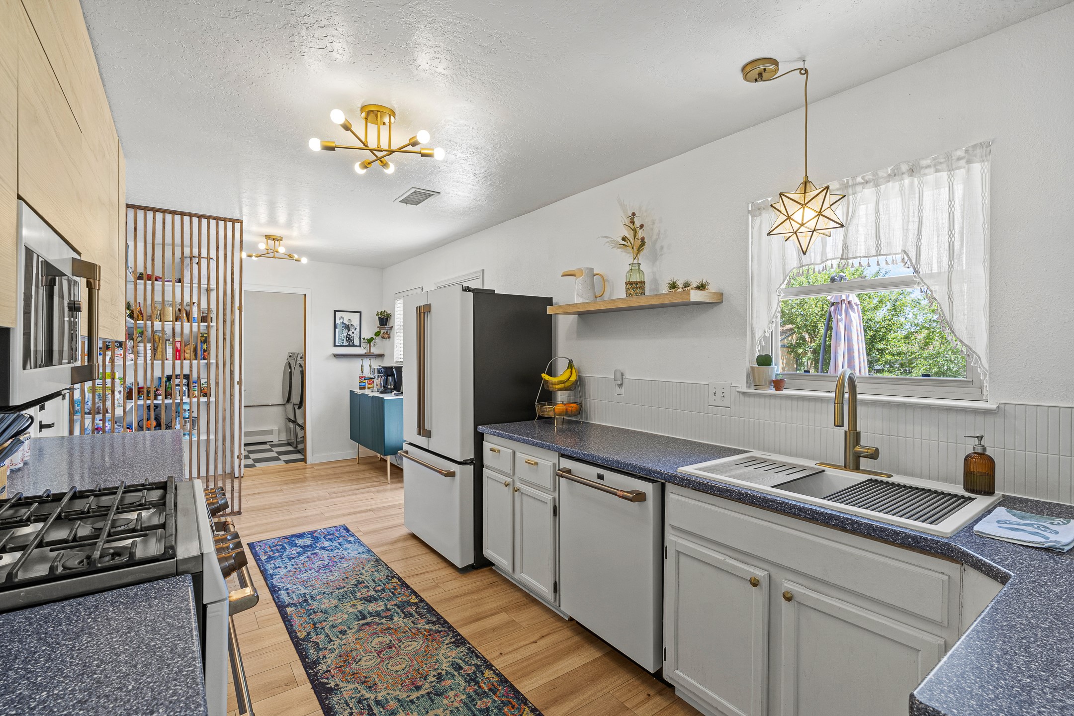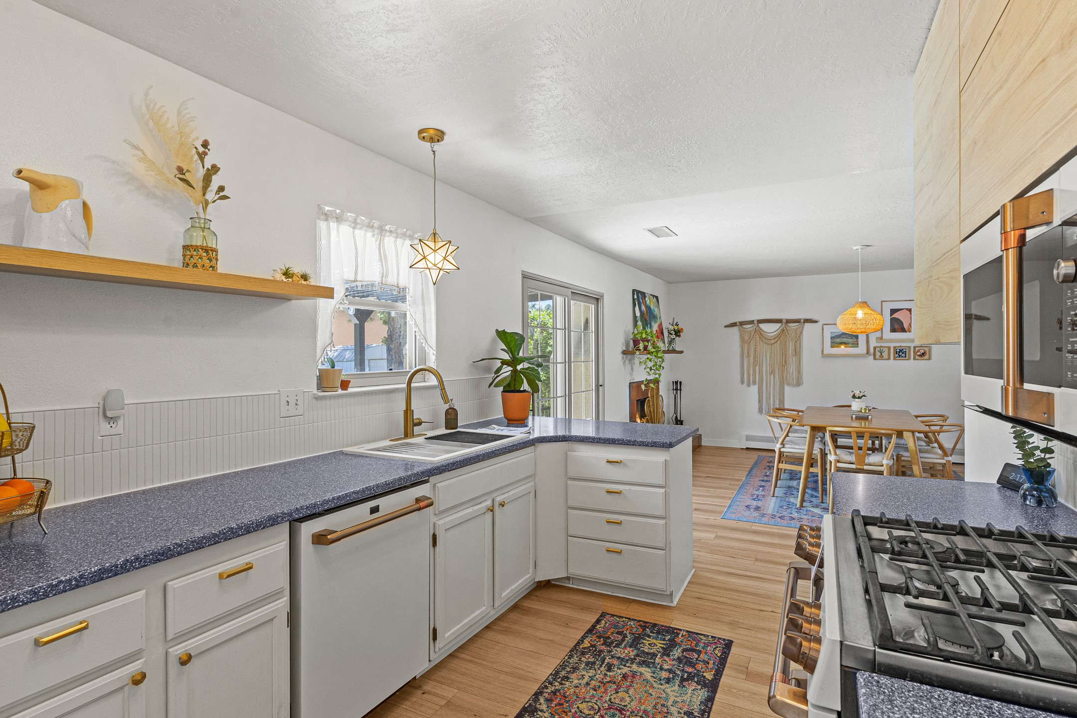 Updated Single-Level White Rock Home with Air Conditioning, 4 Bedrooms, Updated Kitchen with Smart GE Caf Appliances, Updated Bathrooms, Updated Flooring, Landscaped Back Yard with Built-in Pizza Oven, 2 Car Garage, RV Parking, and More! Welcome to 349 Garver Lane!The large, 2061 sq ft home sits on a beautiful 0.29+ acre lot that is beautifully landscaped and is ready to become your next sanctuary. You'll notice the updates immediately as you are greeted by a stylish front door with sidelites, with fresh new flooring awaiting your entrance across the threshold. The large living room is adjacent to the front door, and it opens to the dining room and kitchen beyond for a functional, open floor plan that still provides you with some noise separation. The stunning kitchen features solid surface countertops, matching smart GE Caf appliances with connectivity, and a vertical subway tile backsplash that finishes the look. A large pantry and coffee bar are located towards the back of the kitchen, and a separate laundry room awaits you at the back of the house. The washer and dryer are also smart appliances and allow for convenient programming and notifications through an app.The bedroom wing provides separation from the living spaces and includes a large primary suite. The primary bedroom is roughly 12 feet by 15.5 feet and faces the back yard for privacy. The en suite bathroom includes dual vanities and a beautifully-tiled walk-in shower. Three additional bedrooms and an updated full bathroom with soaking tub complete the bedroom wing, and the full bathroom is directly accessible from the largest of the guest bedrooms, providing the feeling of an additional en suite bathroom. Outside, you'll find a fully-fenced back yard with a pergola-covered deck, a custom built-in pizza oven for outdoor entertaining, two large sheds, and a beautiful lawn and garden beds to complete your dream home. Your new home also features central air conditioning to keep you cool throughout the summer months, a two-car garage to protect your vehicles, and RV parking for your home away from home. This truly move-in ready property will move quickly, so schedule your showing today! The sellers will review offers on Tuesday, June 3, so be sure you don't miss out!