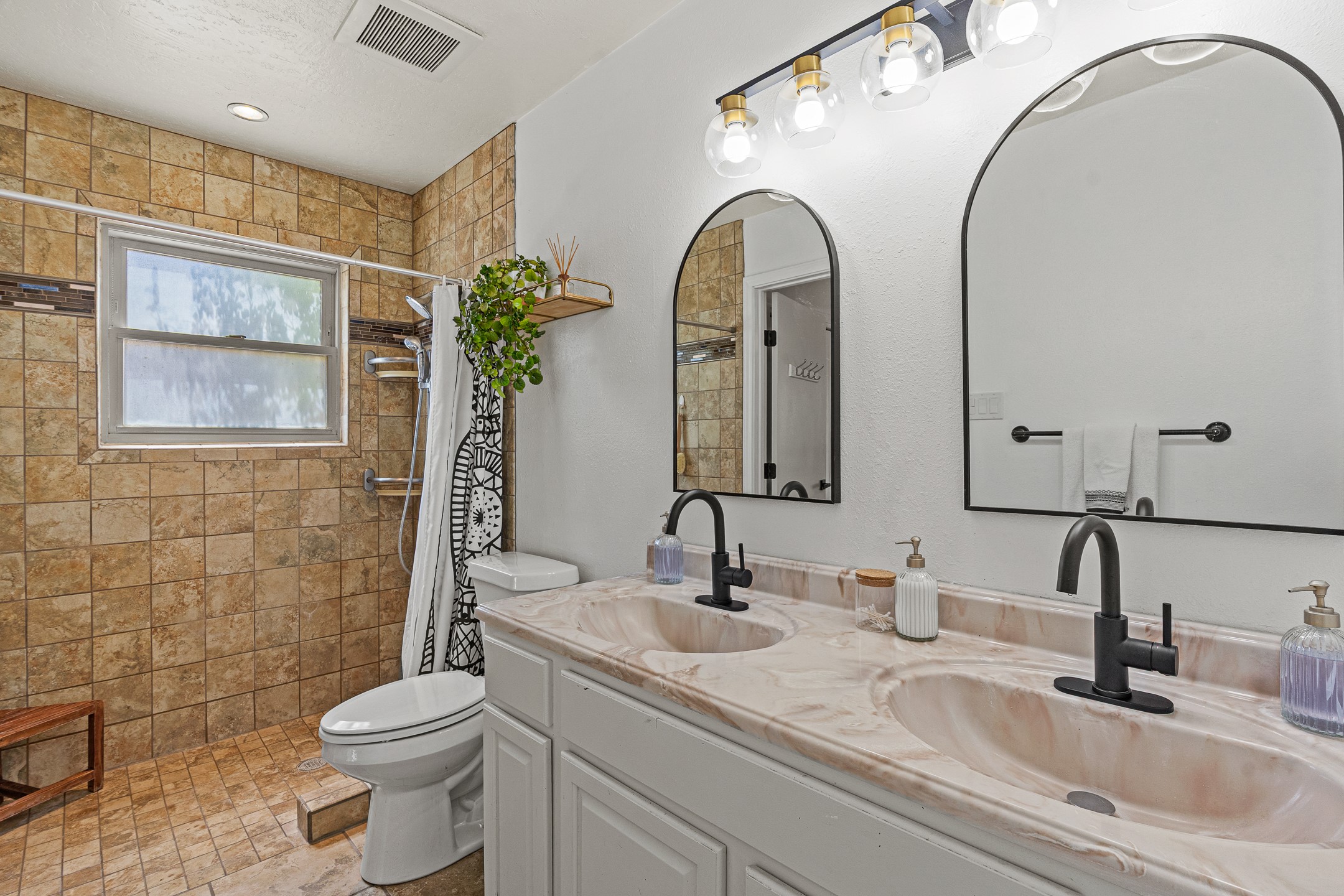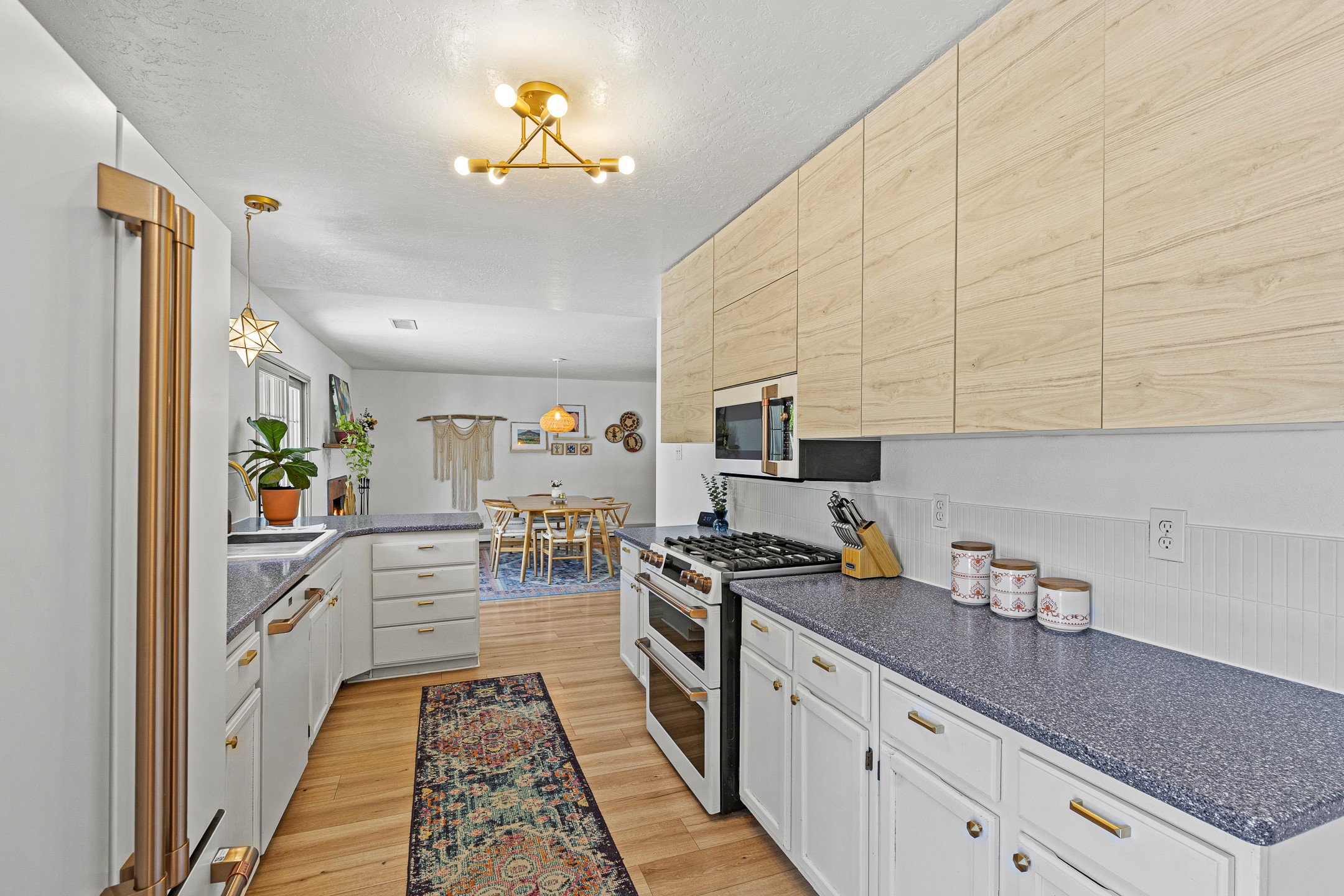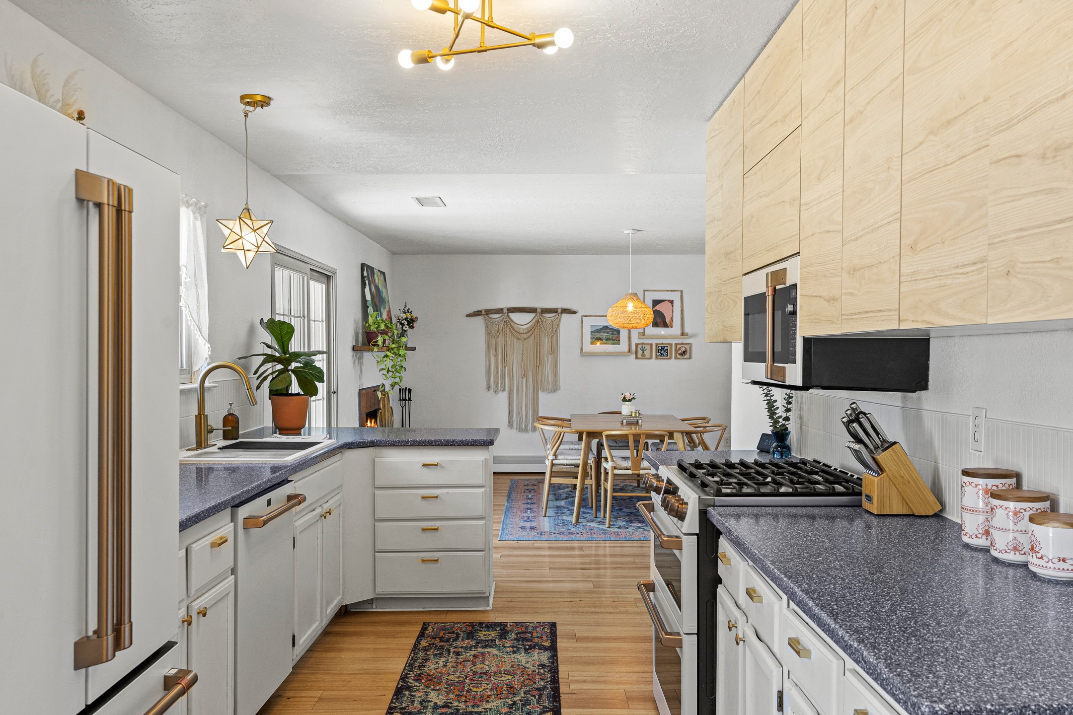 Updated Single-Level White Rock Home with Air Conditioning, 4 Bedrooms, Updated Kitchen with Smart GE Caf Appliances, Updated Bathrooms, Updated Flooring, Landscaped Back Yard with Built-in Pizza Oven, 2 Car Garage, RV Parking, and More! Welcome to 349 Garver Lane!The large, 2061 sq ft home sits on a beautiful 0.29+ acre lot that is beautifully landscaped and is ready to become your next sanctuary. You'll notice the updates immediately as you are greeted by a stylish front door with sidelites, with fresh new flooring awaiting your entrance across the threshold. The large living room is adjacent to the front door, and it opens to the dining room and kitchen beyond for a functional, open floor plan that still provides you with some noise separation. The stunning kitchen features solid surface countertops, matching smart GE Caf appliances with connectivity, and a vertical subway tile backsplash that finishes the look. A large pantry and coffee bar are located towards the back of the kitchen, and a separate laundry room awaits you at the back of the house. The washer and dryer are also smart appliances and allow for convenient programming and notifications through an app.The bedroom wing provides separation from the living spaces and includes a large primary suite. The primary bedroom is roughly 12 feet by 15.5 feet and faces the back yard for privacy. The en suite bathroom includes dual vanities and a beautifully-tiled walk-in shower. Three additional bedrooms and an updated full bathroom with soaking tub complete the bedroom wing, and the full bathroom is directly accessible from the largest of the guest bedrooms, providing the feeling of an additional en suite bathroom. Outside, you'll find a fully-fenced back yard with a pergola-covered deck, a custom built-in pizza oven for outdoor entertaining, two large sheds, and a beautiful lawn and garden beds to complete your dream home. Your new home also features central air conditioning to keep you cool throughout the summer months, a two-car garage to protect your vehicles, and RV parking for your home away from home. This truly move-in ready property will move quickly, so schedule your showing today! The sellers will review offers on Tuesday, June 3, so be sure you don't miss out!