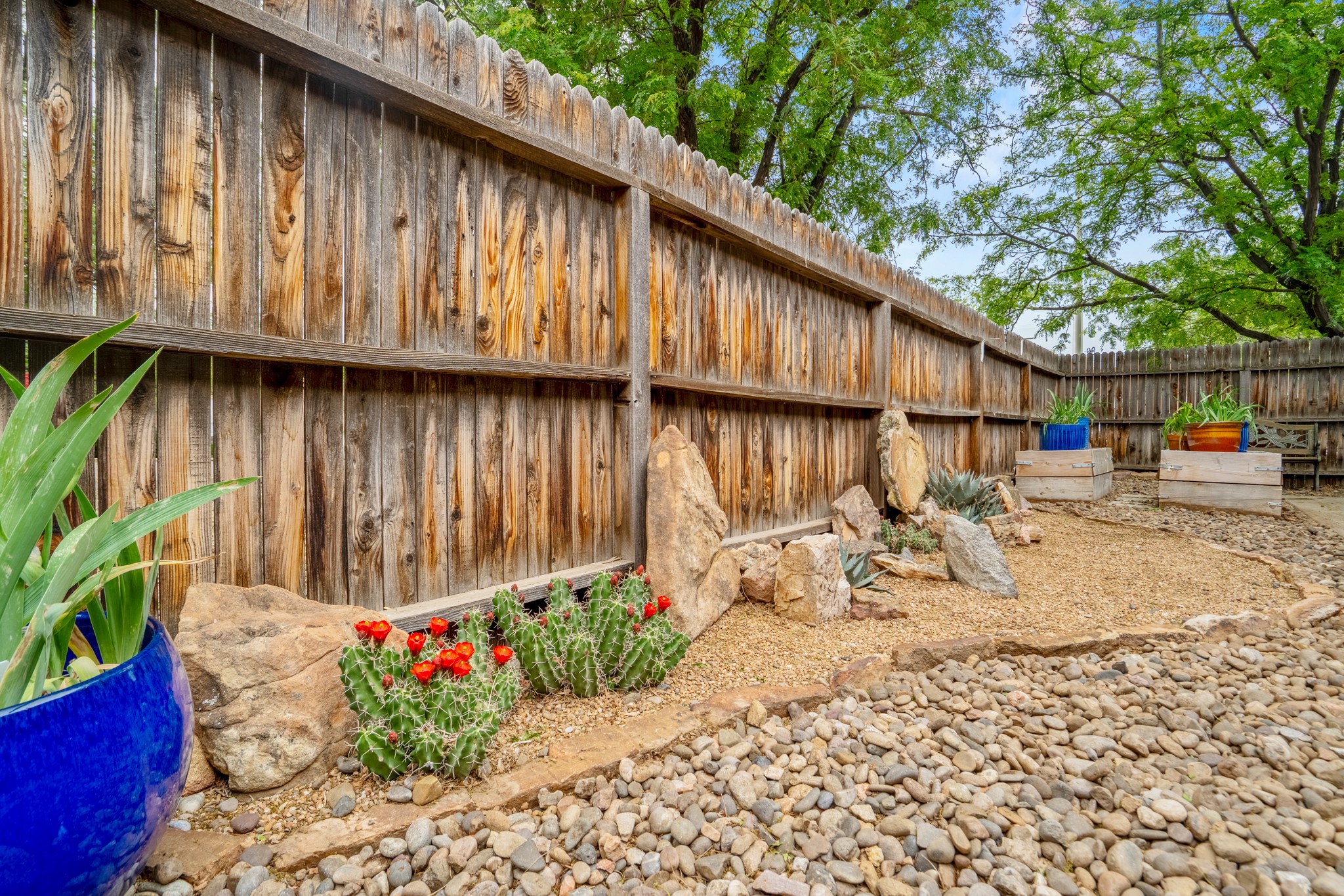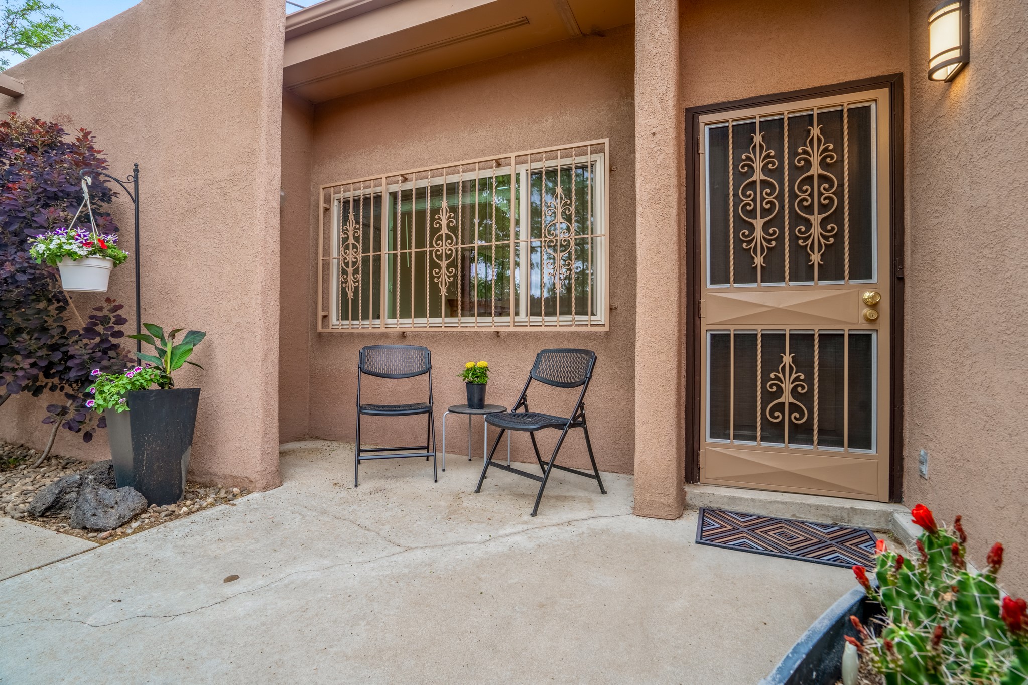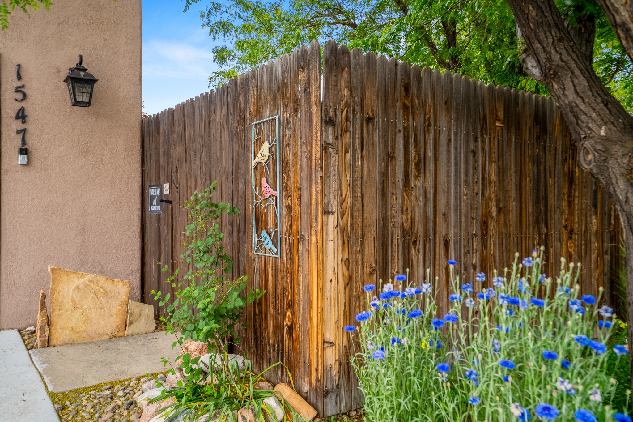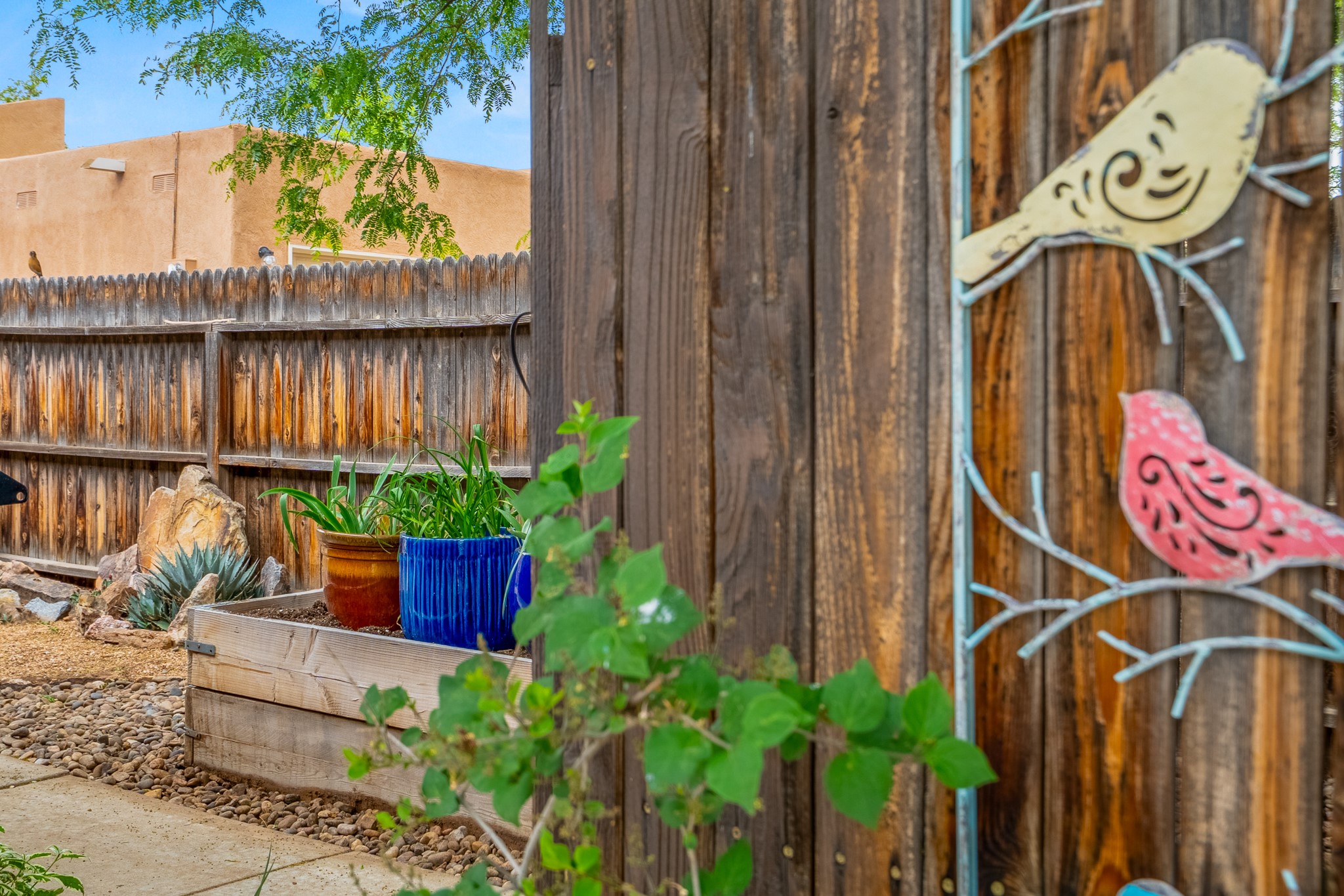 Tucked away on a centrally located cul-de-sac in the desirable La Resolana community, this charming 2-bedroom, 2-bathroom home offers approximately 1,276 square feet of comfort and style--plus a dedicated office that could easily be converted into a third bedroom and a spacious 2-car garage. The beautifully landscaped property features exquisite gardens, multiple mature trees, and a private cedar wood-fenced yard with a pergola and patio, perfect for peaceful outdoor living and entertaining. Inside, you'll find a light-filled open layout with fresh paint, granite countertops in both the kitchen and updated bathroom vanities, updated appliances, and new energy-efficient windows added in 2024. Additional improvements include a replaced flat portion of the roof (2021), central air cooling, offering both comfort and practicality. Additional highlights include seller-provided building plans and unbeatable convenience with easy access to nearby parks, major shopping centers, and the internationally acclaimed Meow Wolf. Don't miss this rare opportunity to own a lovingly maintained home with lush landscaping and exceptional curb appeal in one of Santa Fe's most central and established neighborhoods.