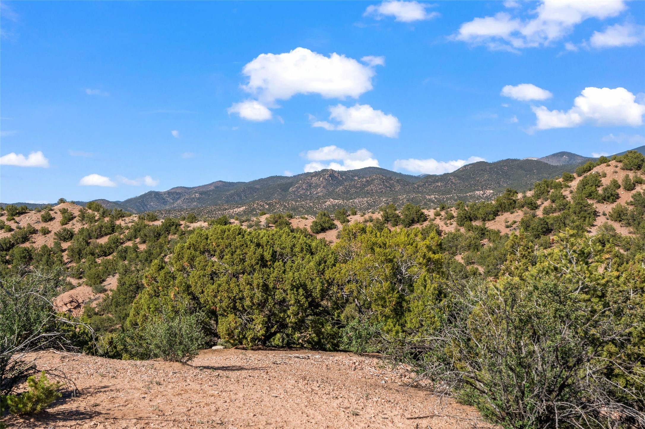 Embrace the essence of high desert living in Tesuque with this remarkable 5-acre RES-F Residential Fringe lot. Offering sweeping views of the majestic Sangre de Cristo mountains to the east, this parcel invites you to imagine a life framed by nature's grandeur. Situated on a private, well-maintained road within a small, gated community, it blends privacy with a sense of belonging. The terrain presents an easy building site, allowing for creative architectural possibilities that can harmonize with the stunning surroundings. Shared well in place.Just moments away, the Tesuque Village Market serves as a vibrant gathering hub, while the iconic El Nido restaurant tantalizes with its culinary delights. In minutes, you can access the historic Santa Fe Plaza, explore Canyon Road's artistic landscape, and immerse yourself in the cultural offerings of Museum Hill.This is not just land; it's a canvas for your vision, a place where the rhythm of nature meets the heartbeat of community.