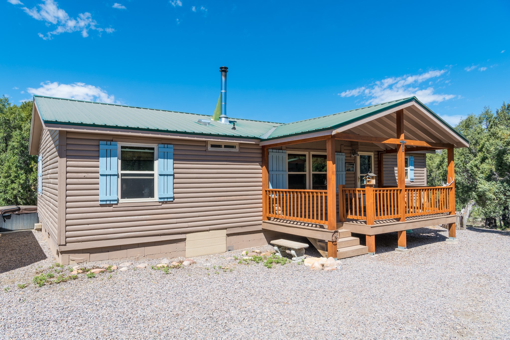Welcome to your peaceful mountain retreat located in the tranquil Pinon Ridge subdivision of Los Ojos, NM. Situated on an acre, this single level, 3 bedroom, 2 bath home offers a harmonious blend of comfort and nature. This well-thought out split floor plan is spacious and inviting with a view from every room. Enjoy the breathtaking views of El Vado Reservoir from your north and south facing decks, while providing ample space to relax, entertain, and observe local wildlife in their natural habitat. Wrap up your evening enjoying the cool New Mexico temperatures while relaxing in your hot tub. This home comes equipped with a backup Generac generator and functional outbuildings including a carport and a detached, insulated and wired workshop perfect for hobbyists. Pinon Ridge amenities include a community well and maintained infrastructure. This lovingly maintained home is ready for you to embrace the peaceful mountain lifestyle. Whether you are seeking a year-round residence or a seasonal getaway, this home offers a unique opportunity to own a piece of New Mexico's natural beauty. Local amenities include the Stone House Lodge & Cafe offering dining, entertainment and social activities. The nearby, well-known community of Chama offers shopping and historic and natural monuments.
