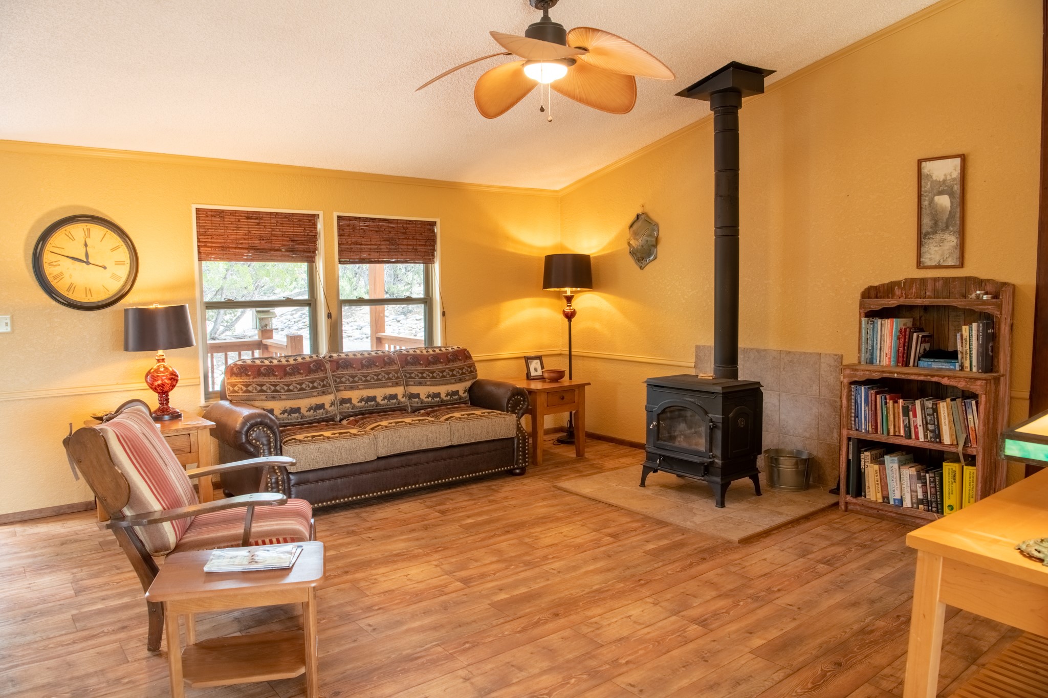 Welcome to your peaceful mountain retreat located in the tranquil Pinon Ridge subdivision of Los Ojos, NM. Situated on an acre, this single level, 3 bedroom, 2 bath home offers a harmonious blend of comfort and nature. This well-thought out split floor plan is spacious and inviting with a view from every room. Enjoy the breathtaking views of El Vado Reservoir from your north and south facing decks, while providing ample space to relax, entertain, and observe local wildlife in their natural habitat. Wrap up your evening enjoying the cool New Mexico temperatures while relaxing in your hot tub. This home comes equipped with a backup Generac generator and functional outbuildings including a carport and a detached, insulated and wired workshop perfect for hobbyists. Pinon Ridge amenities include a community well and maintained infrastructure. This lovingly maintained home is ready for you to embrace the peaceful mountain lifestyle. Whether you are seeking a year-round residence or a seasonal getaway, this home offers a unique opportunity to own a piece of New Mexico's natural beauty. Local amenities include the Stone House Lodge & Cafe offering dining, entertainment and social activities. The nearby, well-known community of Chama offers shopping and historic and natural monuments.