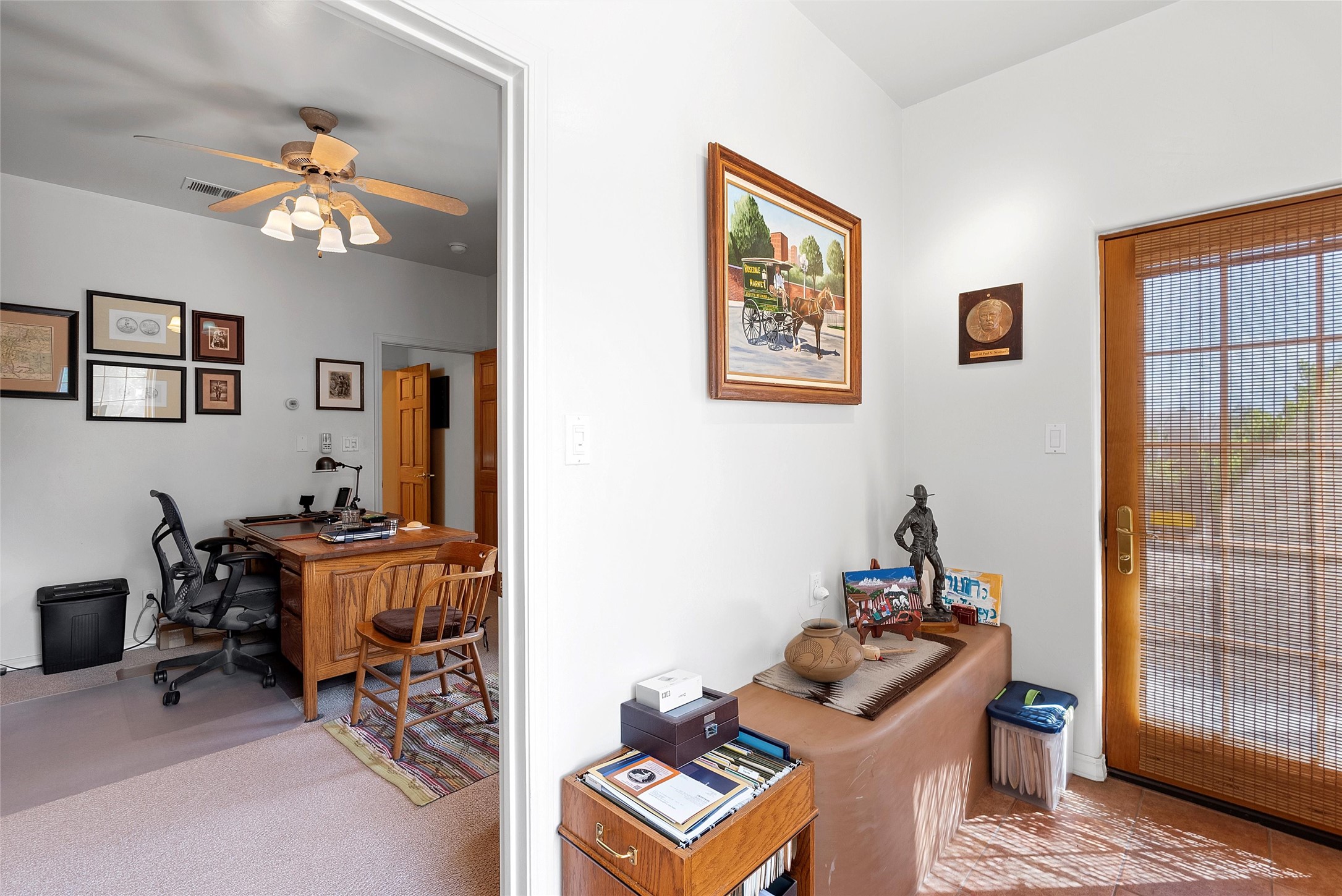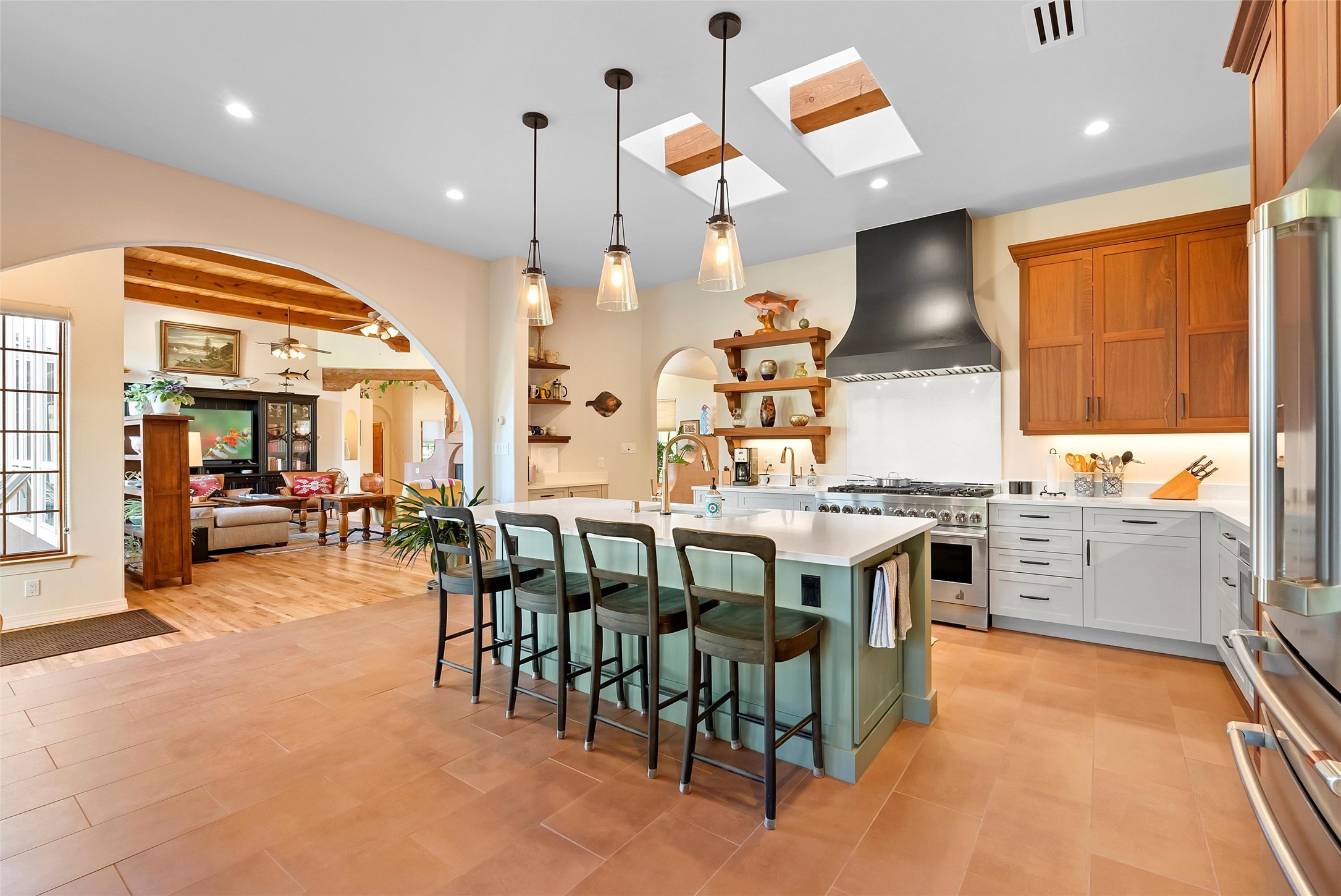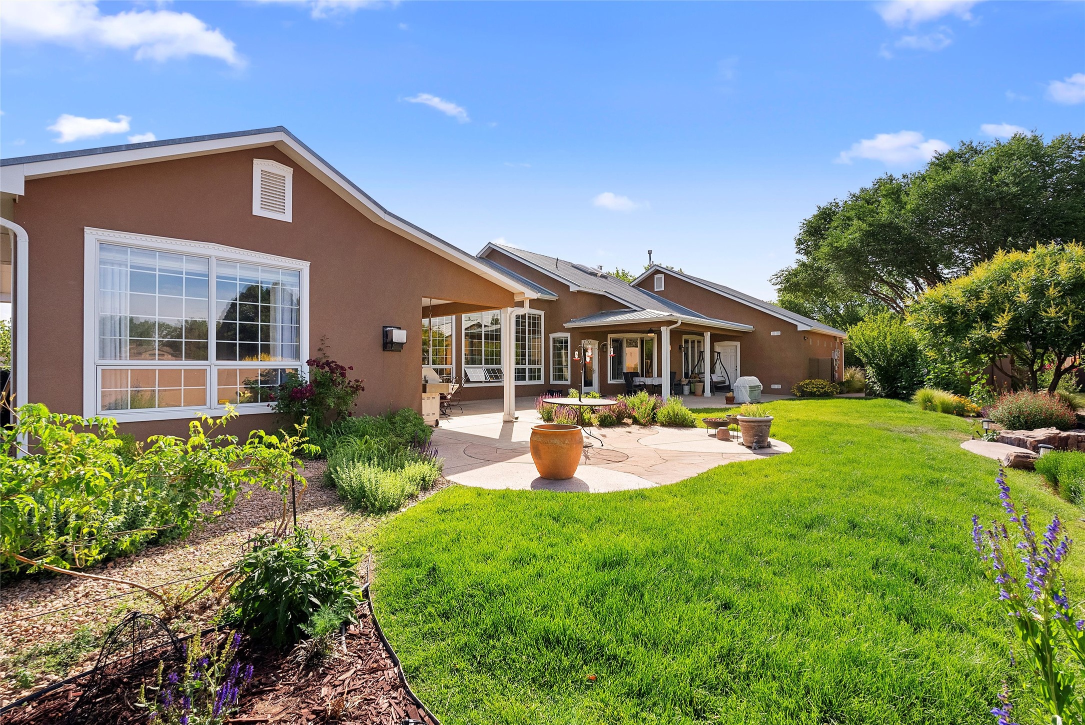 Experience refined desert living in this custom estate, nestled on 1.17 acres of artfully curated gardens and tranquil outdoor spaces. Recently renovated, the main residence blends timeless design with thoughtful upgrades--vaulted ceilings, built-ins, radiant heat, dual ovens, and a stunning remodeled kitchen with custom cabinetry and coffee nook. The fully equipped casita is ADA-compliant and ideal for guests or multigenerational living. Owned solar, deep well, epoxy garage, and extensive landscaping--every detail reflects care. This property is complete with a workshop, greenhouse and fenced in garden area, perfect for your hobbies! A rare blend of privacy, sustainability, and elegance.