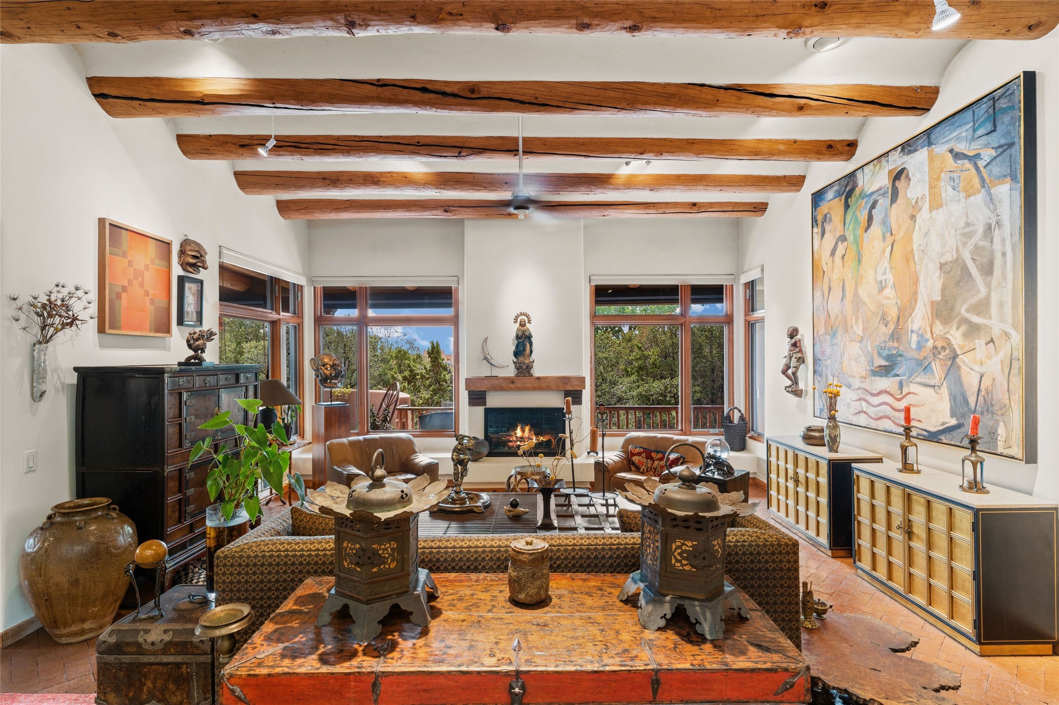 Delightful 3-bedroom, 3-bath condo located in a private setting in the sought-after gated community of 1000 East. This single-level residence offers the convenience of no interior steps, making it accessible and easy to navigate. The interior is an art collector's dream, complete with gallery track lighting throughout to beautifully showcase your favorite pieces. The gourmet kitchen, fully updated 2.5 years ago, features elegant glass front cabinets, a KitchenAid 6-burner stove/oven, and a second oven, making it perfect for both everyday meals and special gatherings. The spacious primary bedroom is a cozy retreat, complete with a gas fireplace and a private walk-out to the beckoning back patio/portal. The recently remodeled bath features a jetted tub and a separate walk-in closet for added benefit and luxury. The front entry courtyard and covered portal provide lovely outdoor spaces for relaxation, while the back courtyard wraps around the side of the house, offering additional room for outdoor enjoyment. Designed for privacy, the property features a private wall and coyote fence, along with a recirculating fountain and a grill connected to natural gas--ideal for entertaining or unwinding in your own oasis. With a 2-car garage and an EV charger, you'll enjoy modern amenities that cater to your lifestyle. Ideally located close to downtown Santa Fe, you'll have easy access to the vibrant culture, art, and dining the city has to offer.
