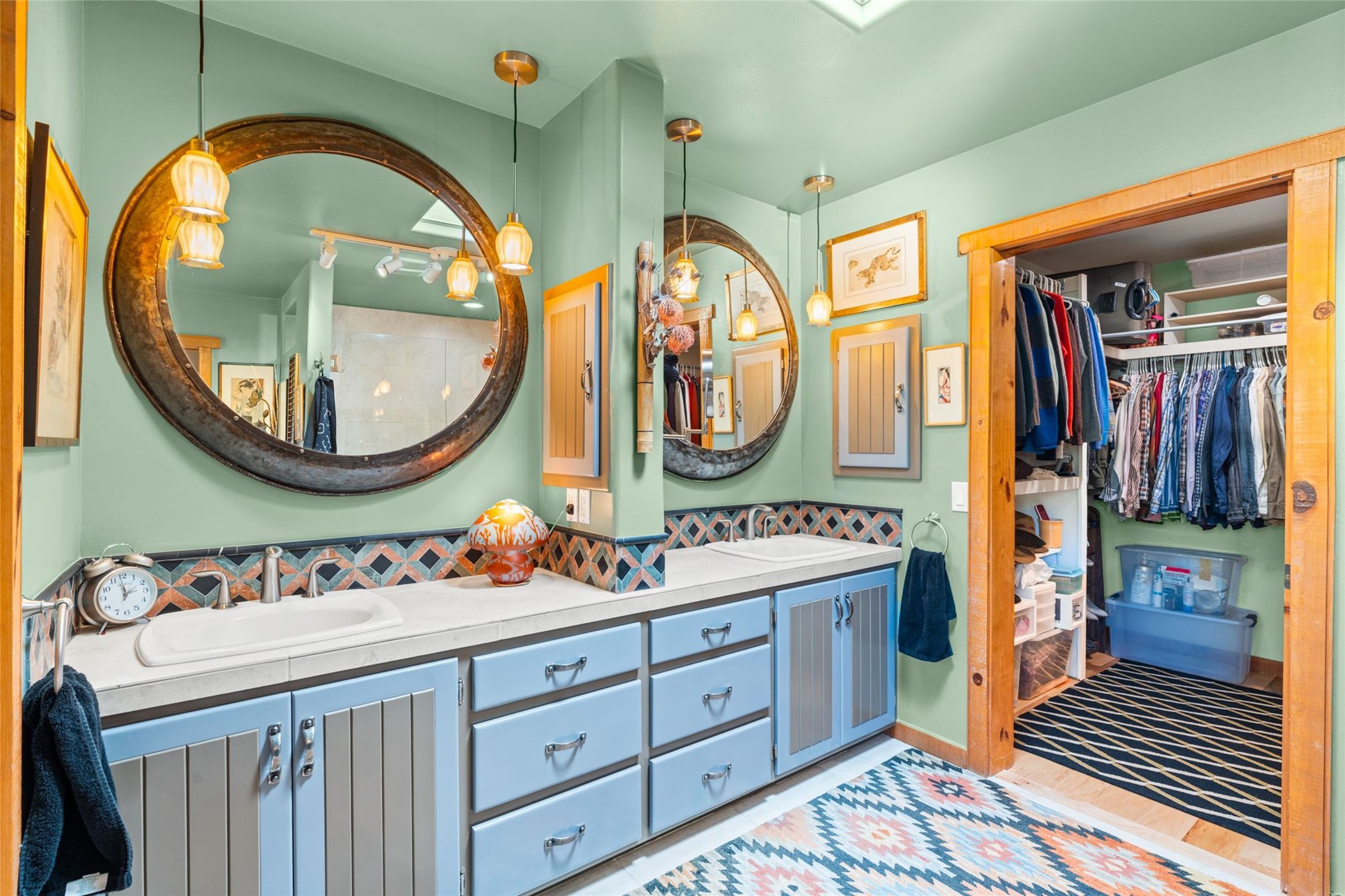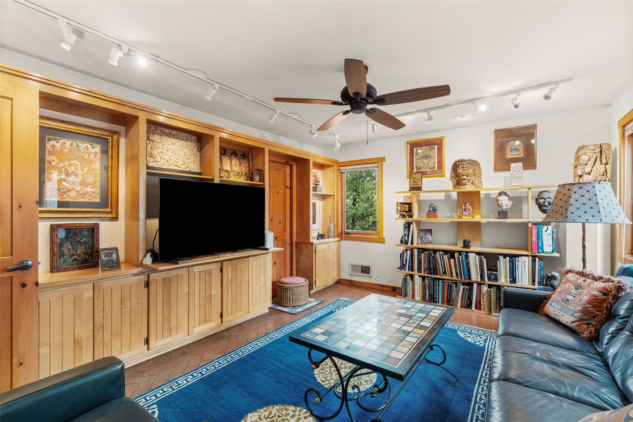 Delightful 3-bedroom, 3-bath condo located in a private setting in the sought-after gated community of 1000 East. This single-level residence offers the convenience of no interior steps, making it accessible and easy to navigate. The interior is an art collector's dream, complete with gallery track lighting throughout to beautifully showcase your favorite pieces. The gourmet kitchen, fully updated 2.5 years ago, features elegant glass front cabinets, a KitchenAid 6-burner stove/oven, and a second oven, making it perfect for both everyday meals and special gatherings. The spacious primary bedroom is a cozy retreat, complete with a gas fireplace and a private walk-out to the beckoning back patio/portal. The recently remodeled bath features a jetted tub and a separate walk-in closet for added benefit and luxury. The front entry courtyard and covered portal provide lovely outdoor spaces for relaxation, while the back courtyard wraps around the side of the house, offering additional room for outdoor enjoyment. Designed for privacy, the property features a private wall and coyote fence, along with a recirculating fountain and a grill connected to natural gas--ideal for entertaining or unwinding in your own oasis. With a 2-car garage and an EV charger, you'll enjoy modern amenities that cater to your lifestyle. Ideally located close to downtown Santa Fe, you'll have easy access to the vibrant culture, art, and dining the city has to offer.