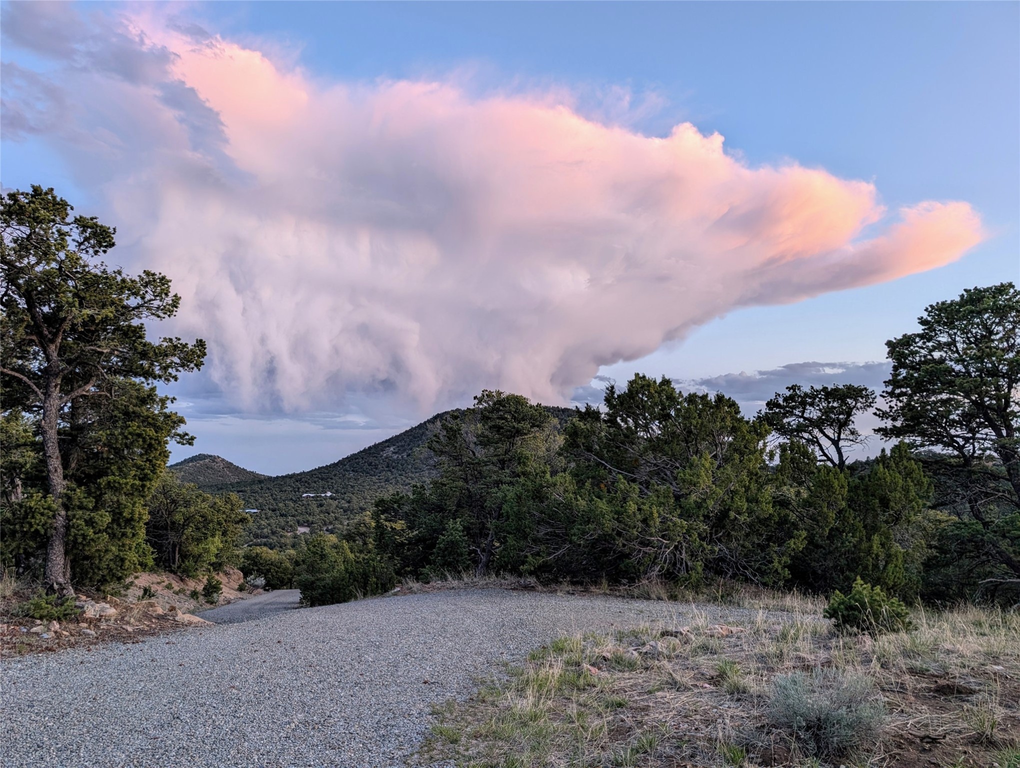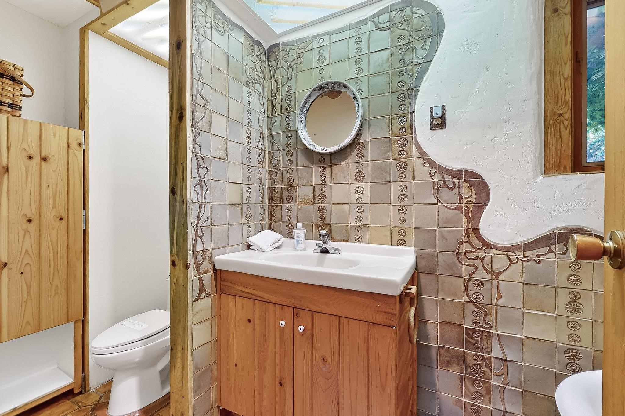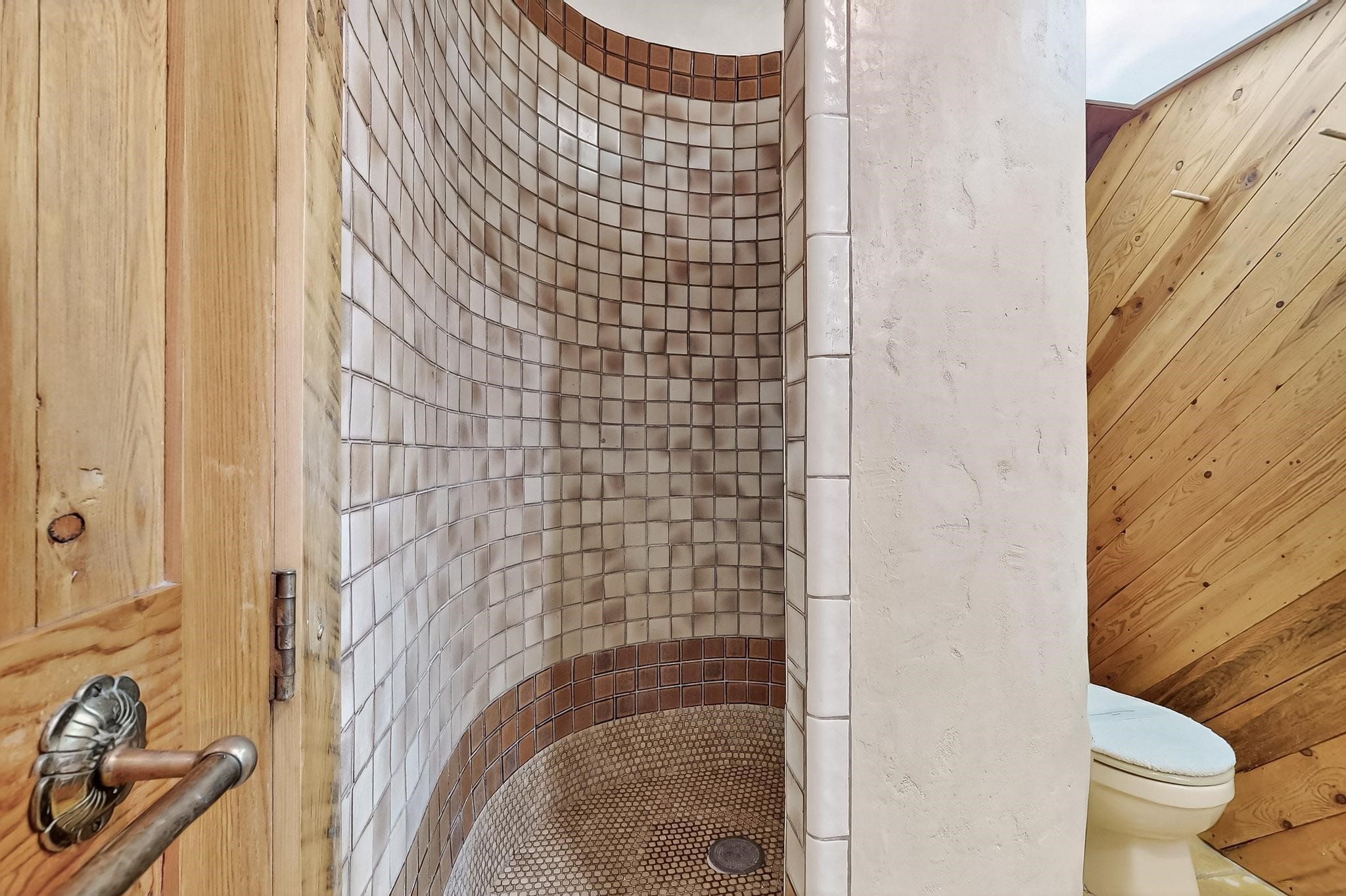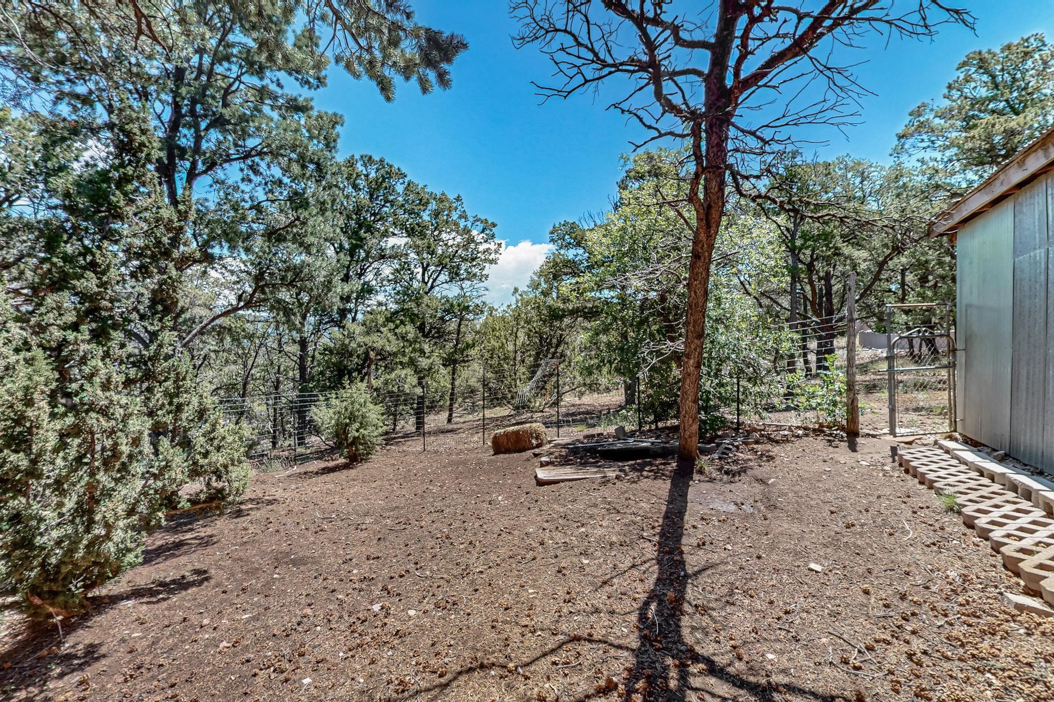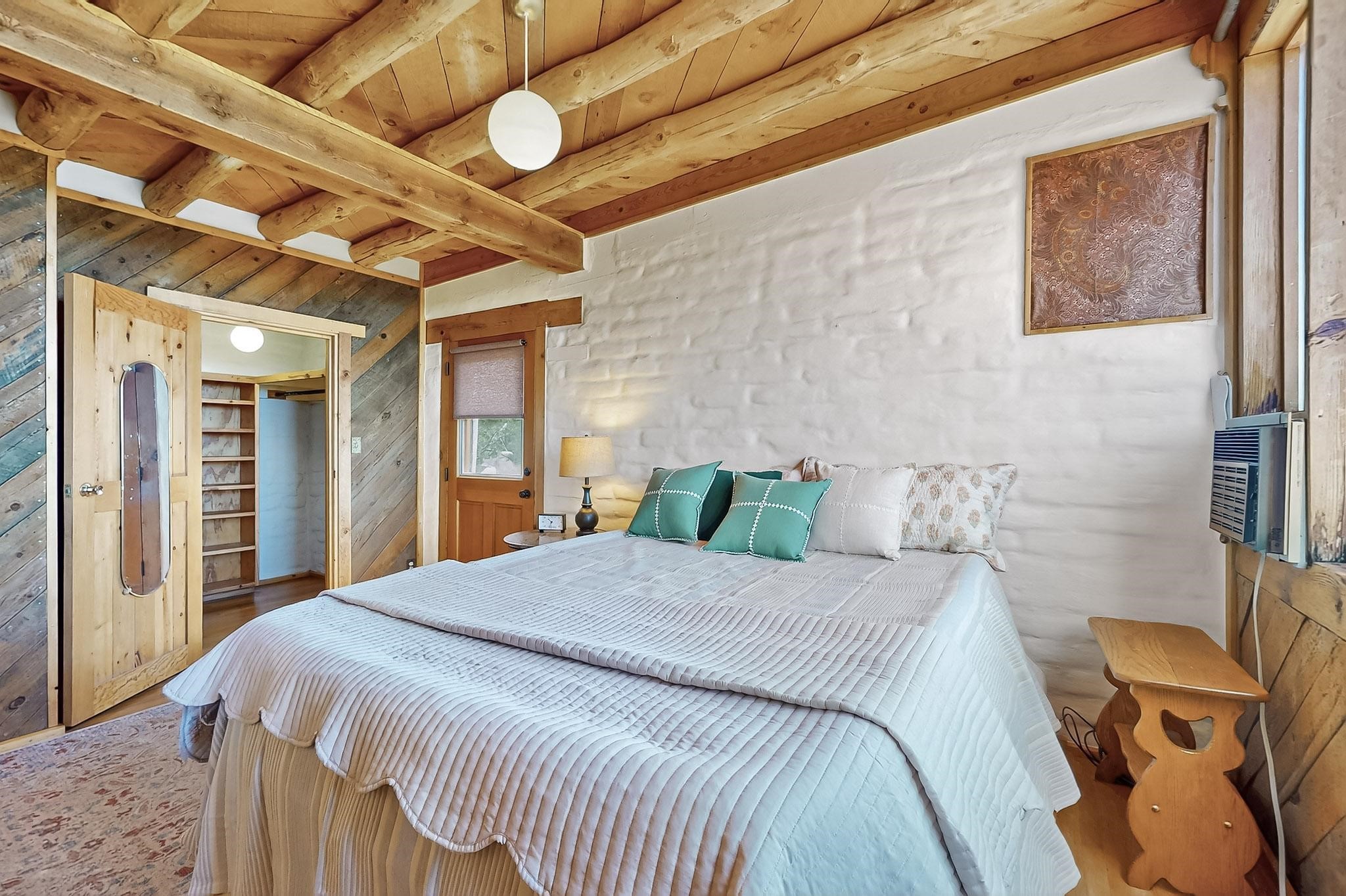 Tucked along the iconic Old Santa Fe Trail, ideal as a primary or get away residence, this enchanting adobe & frame-built appx 3147 sqft main home with an appx 480 sqft attached studio offers country living yet only 8 miles from the heart of downtown Santa Fe & close to amenities & restaurants (Harrys Rd House, El Gancho & more). Perfectly sited on 7.56 acres comprised of 4.56 acres + an additional lot of 3 acres, this property captures breathtaking panoramas of the Pecos & Galisteo Basins, Sandia & Jemez Mountains, & spectacular sunsets. Inside, you'll find a warm & inviting layout with a living room, kitchen with eat in nook, dining area, the charming "bottle" entry, a pantry, 3 bedrooms and 2.5 bathrooms, with a 3-car garage setup: a one-car attached garage w/ storage/workshop space, plus a detached two-car garage--all in an engaging split-level design full of Santa Fe charm & character with hand-crafted details including vigas, carved lintels, stain glass accents & more. The passive solar design with large south-facing windows & a pellet stove is efficient for heating, while adobe construction helps maintain comfortable indoor temperatures year-round. The wonderful appx 480-sqft studio with its own entrance, half bath, stainless steel work area, tongue & groove ceiling, sink & a propane heater--ideal as a home office, playroom, fitness or media room, or an easy guest suite conversion. Features/amenities include: NEW SEPTIC TANK, brick, tile & wood floors, kitchen with a conventional/convection oven, Bosch dishwasher & refrigerator, Pella windows, Artesanos fixtures, handmade tiles, solid wood doors, a balcony, peaceful patios, a pond, covered portals, walled courtyard, flagstone walkways, regraded and graveled driveway (no dirt) and more. There's even a dedicated "dog room" or additional storage leading to an appx 8-foot coyote-fenced enclosure. Gardeners will love the spacious greenhouse with sink & walled garden with apple trees ready for planting and harvest.