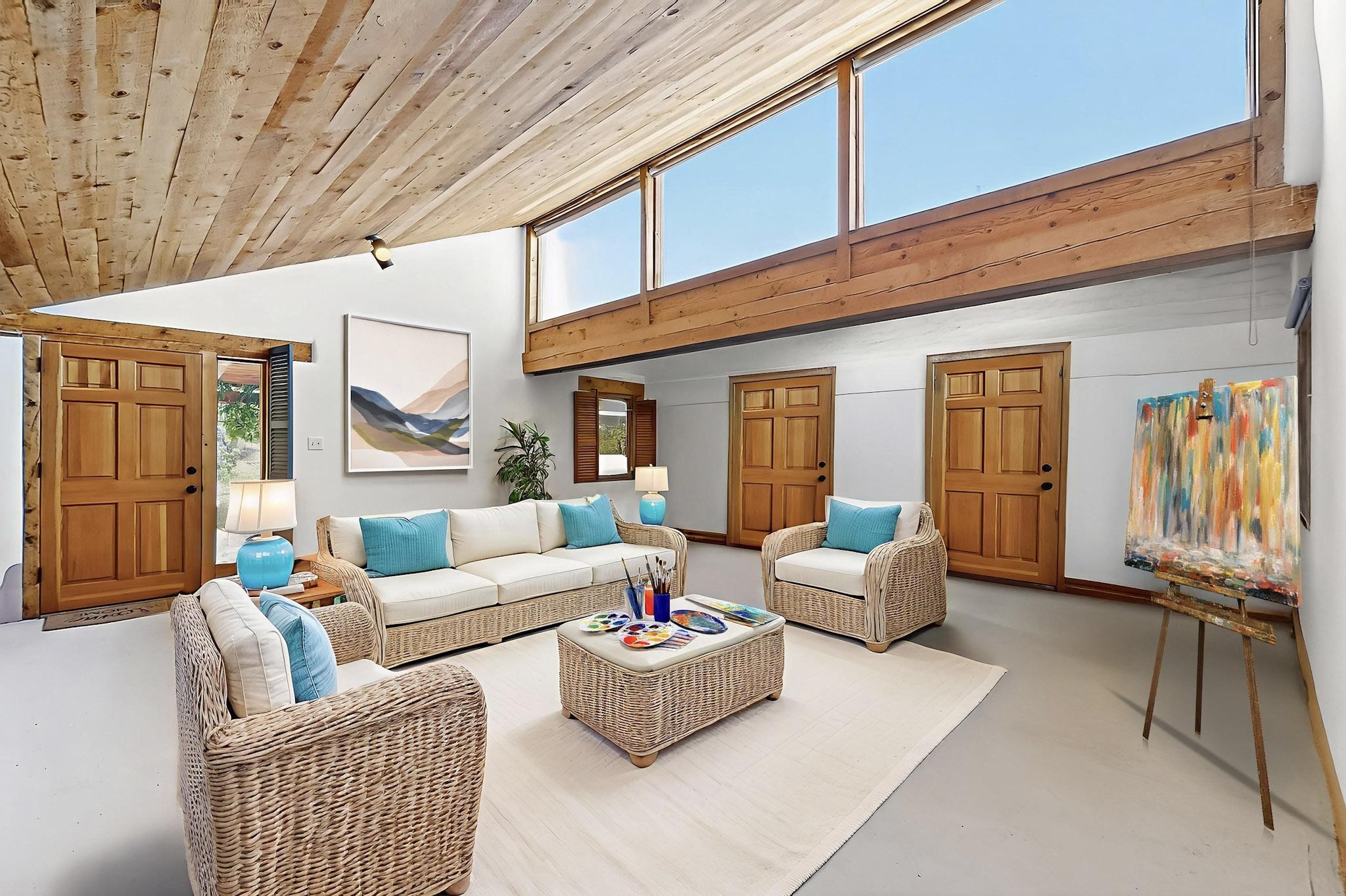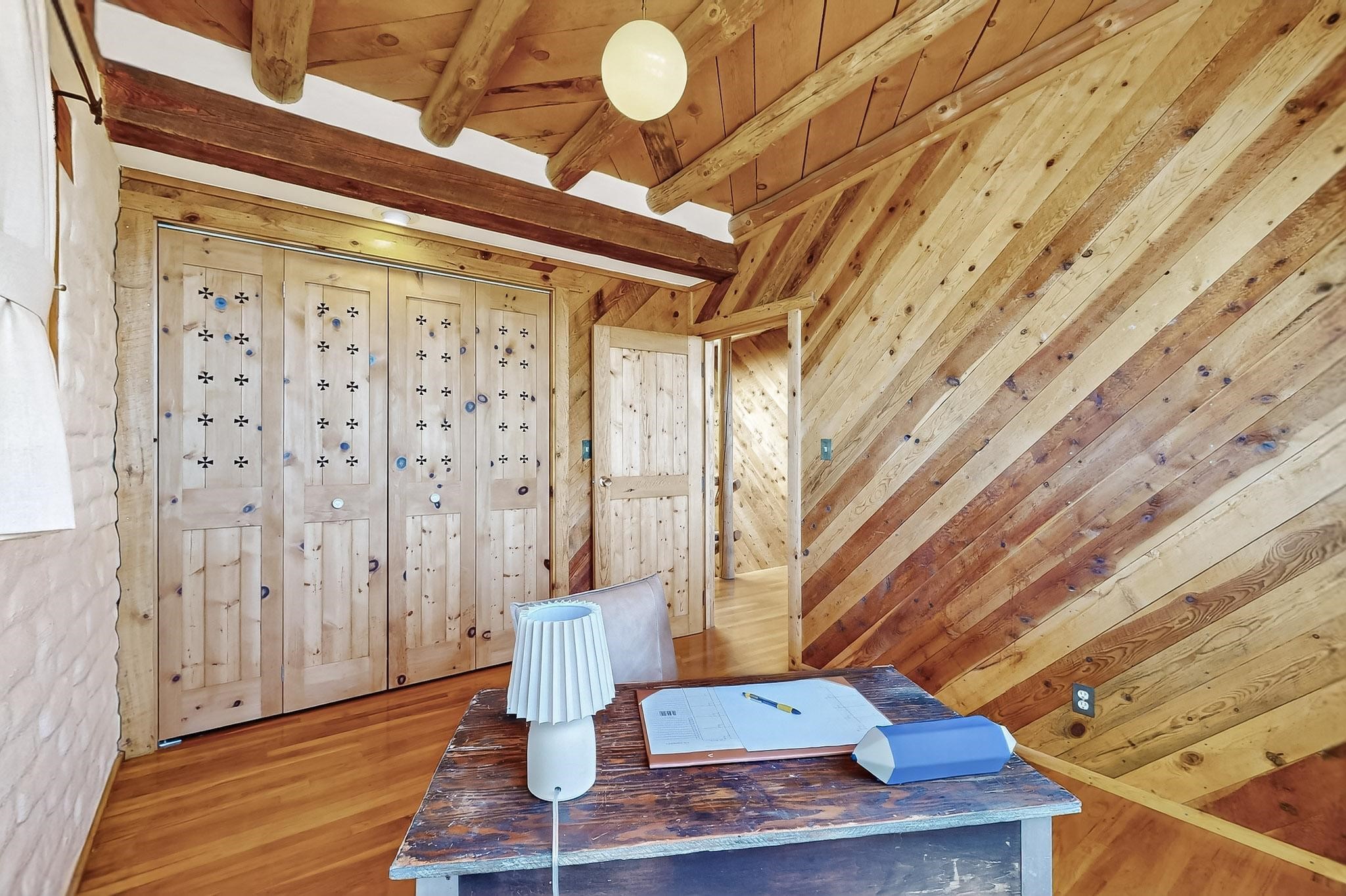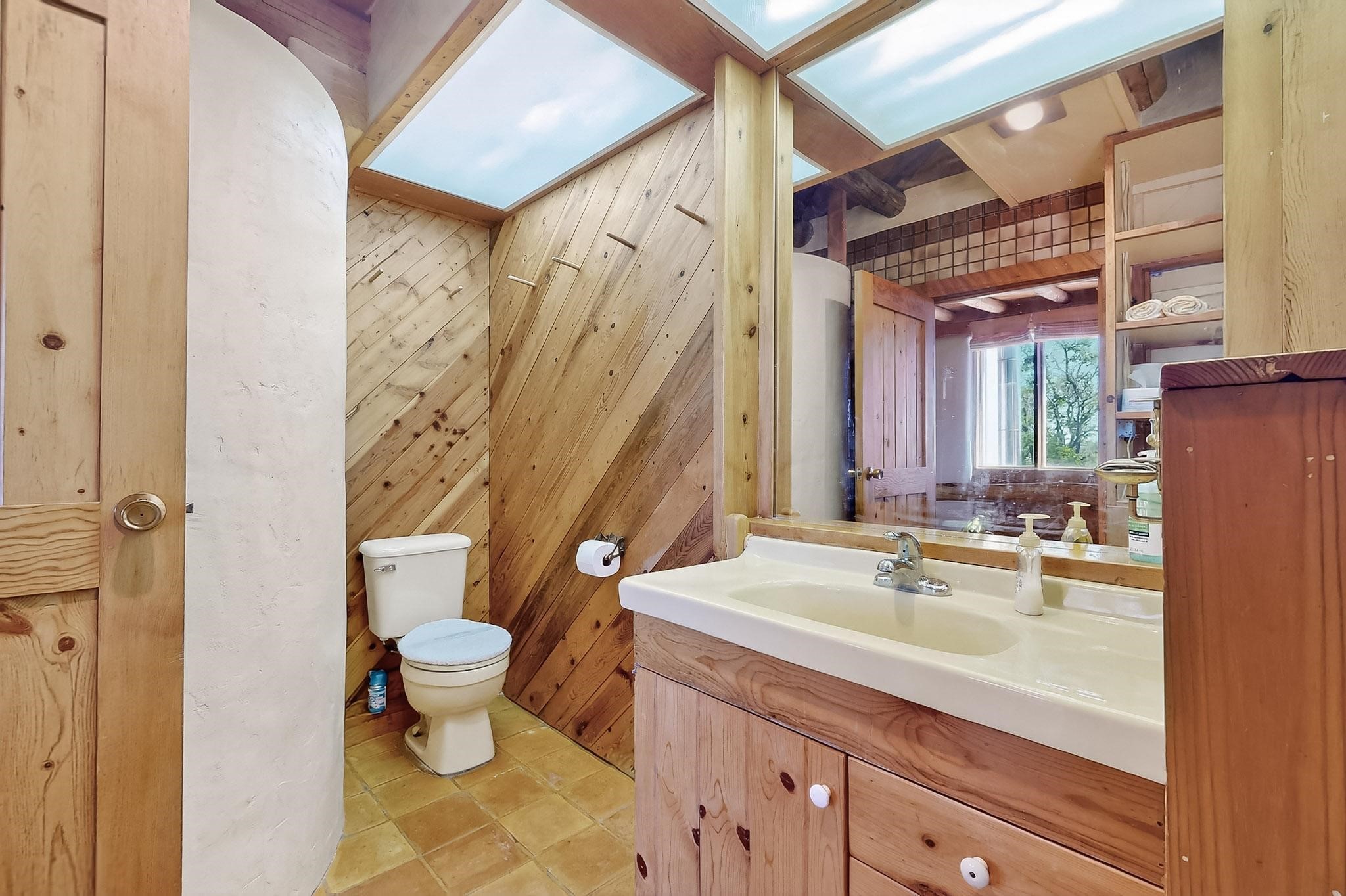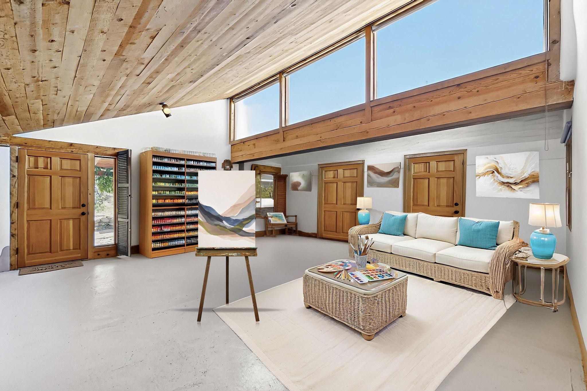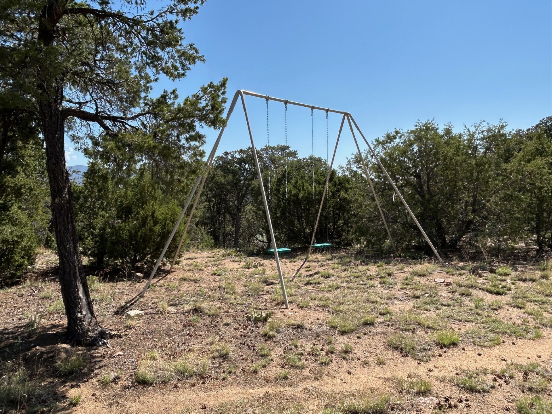 Tucked along the iconic Old Santa Fe Trail, ideal as a primary or get away residence, this enchanting adobe & frame-built appx 3147 sqft main home with an appx 480 sqft attached studio offers country living yet only 8 miles from the heart of downtown Santa Fe & close to amenities & restaurants (Harrys Rd House, El Gancho & more). Perfectly sited on 7.56 acres comprised of 4.56 acres + an additional lot of 3 acres, this property captures breathtaking panoramas of the Pecos & Galisteo Basins, Sandia & Jemez Mountains, & spectacular sunsets. Inside, you'll find a warm & inviting layout with a living room, kitchen with eat in nook, dining area, the charming "bottle" entry, a pantry, 3 bedrooms and 2.5 bathrooms, with a 3-car garage setup: a one-car attached garage w/ storage/workshop space, plus a detached two-car garage--all in an engaging split-level design full of Santa Fe charm & character with hand-crafted details including vigas, carved lintels, stain glass accents & more. The passive solar design with large south-facing windows & a pellet stove is efficient for heating, while adobe construction helps maintain comfortable indoor temperatures year-round. The wonderful appx 480-sqft studio with its own entrance, half bath, stainless steel work area, tongue & groove ceiling, sink & a propane heater--ideal as a home office, playroom, fitness or media room, or an easy guest suite conversion. Features/amenities include: NEW SEPTIC TANK, brick, tile & wood floors, kitchen with a conventional/convection oven, Bosch dishwasher & refrigerator, Pella windows, Artesanos fixtures, handmade tiles, solid wood doors, a balcony, peaceful patios, a pond, covered portals, walled courtyard, flagstone walkways, regraded and graveled driveway (no dirt) and more. There's even a dedicated "dog room" or additional storage leading to an appx 8-foot coyote-fenced enclosure. Gardeners will love the spacious greenhouse with sink & walled garden with apple trees ready for planting and harvest.