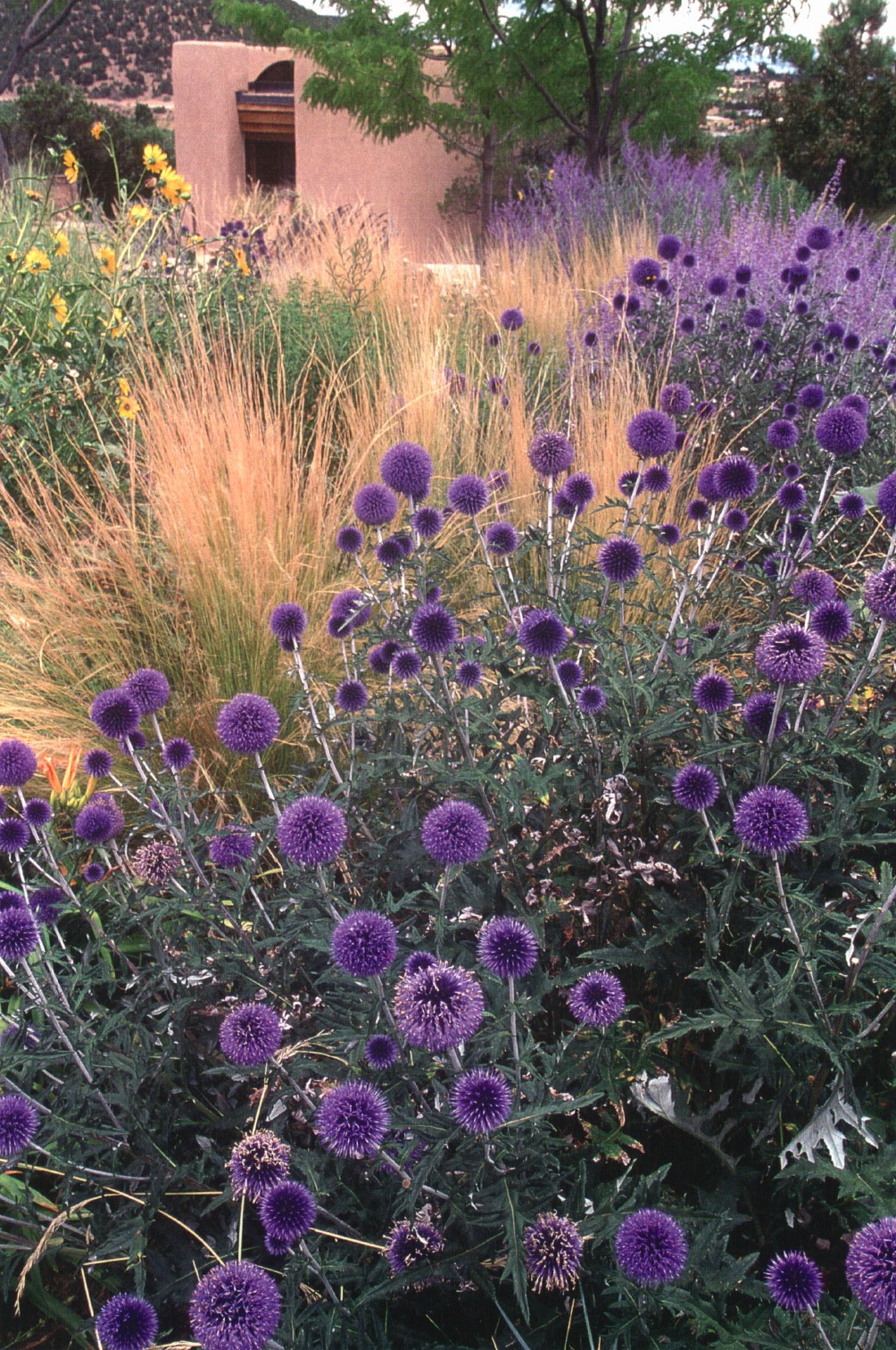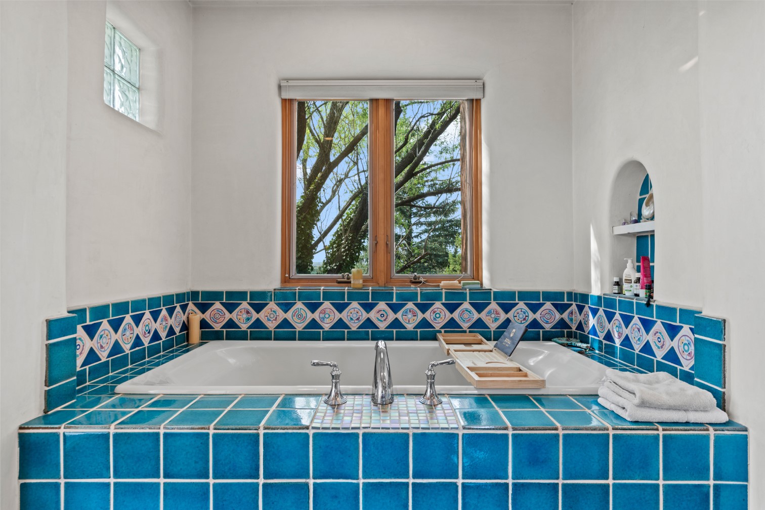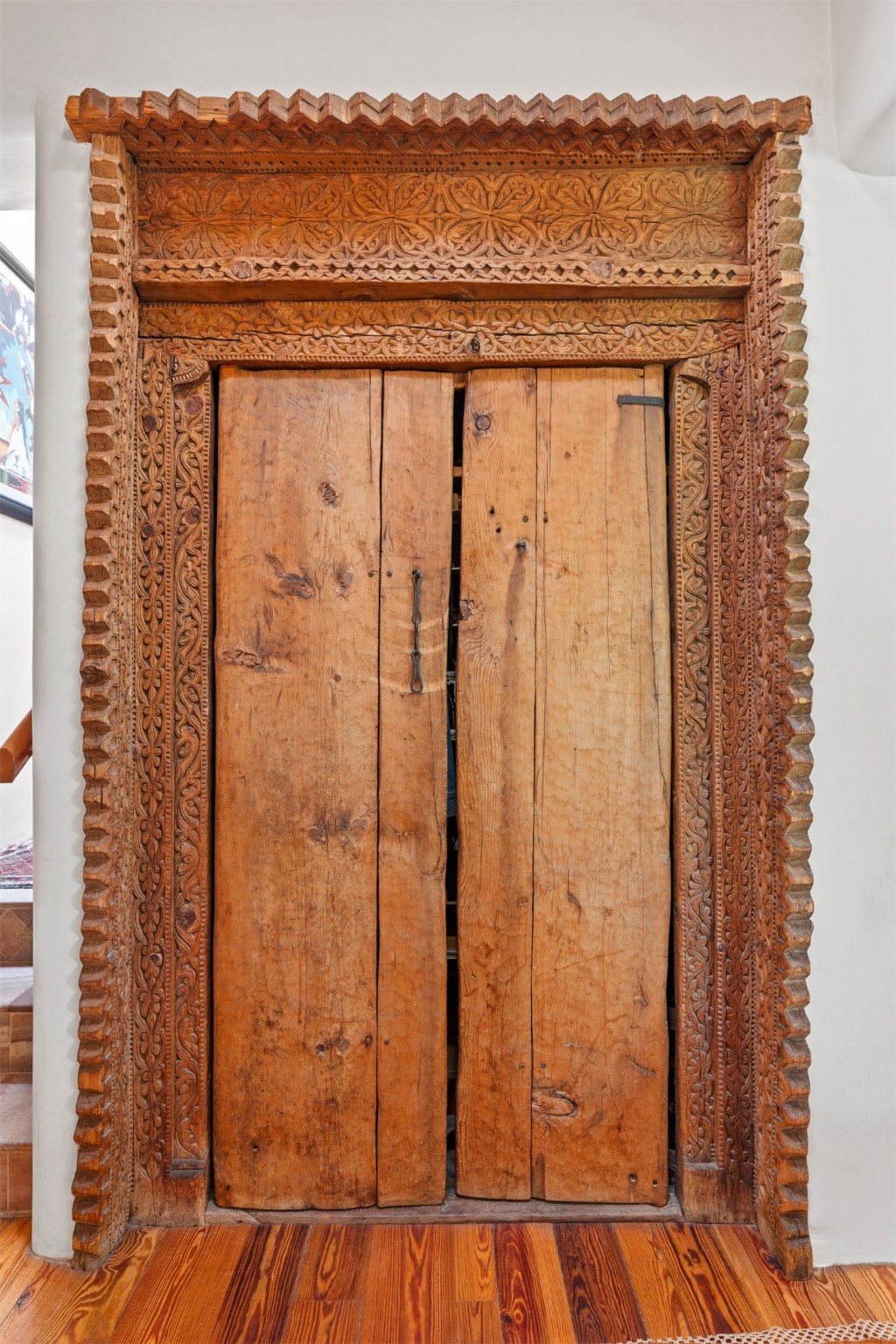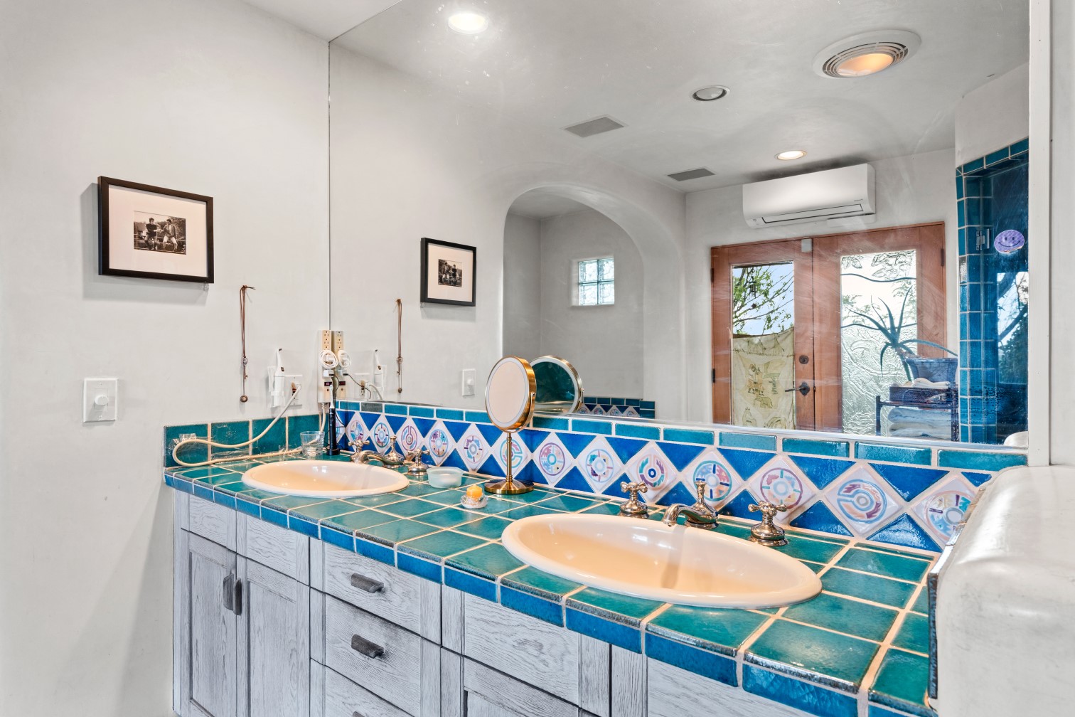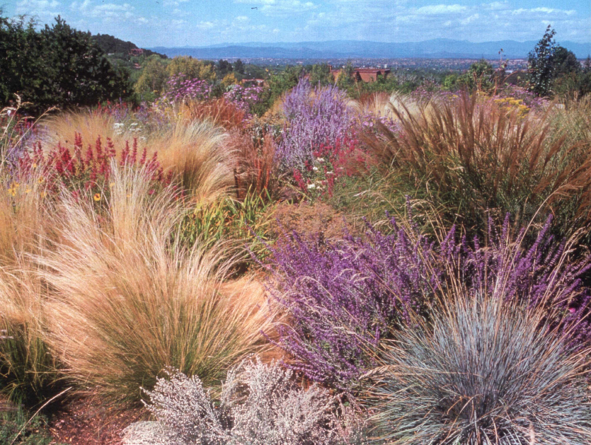 MAJESTIC UPPER EASTSIDE ESTATE - Discover the magic of this classic pueblo-style adobe compound off Upper Canyon Road - a serene oasis with magnificent views of the Sangre de Cristo and Jemez Mountains. Gated and fenced with private access to protected trails (Dorothy Stewart Trails), and on a cul-de-sac, the compound's gates swing open to reveal a stream and waterfall surrounded by day lilies, water lilies, irises, and verdant grasses embellishing extraordinary landscaping and gardens (featured in the 1997 Rizzoli book, Secret Gardens of Santa Fe). The adobe 4-bedroom main residence and 1-bedroom guest house are nestled within 1.14 acres of abundant aspens and towering blue spruce that frame the drama of distant mountains. Features of the main house include 6 fireplaces, ceilings of vigas, latillas and coves, antique doors, custom hardware, radiant under-floor heating, outdoor patios and portals, a media room, yoga studio, and 2-car garage. The upstairs primary suite includes a separate office and three outdoor spaces - a patio / portal, a separate balcony, and a spacious deck - and an elegant bath suite with a custom steam shower and whirlpool tub.