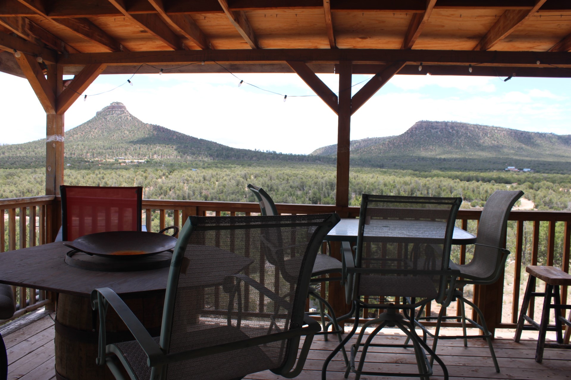Breathtaking 360 degree views, including the famous Starvation Peak, is what you will get to enjoy when you make this home yours! This immaculately maintained 4 bedroom, 2 full bathroom double wide manufactured sits on 2.86 incredibly scenic acres, with many trees and perennials. The home has too many upgrades to name including: huge wrap around covered deck, walk in pantry, en suite master bathroom with soaking garden tub, solid wood doors, newer Propanel roof with seamless gutters, 2 sheds, wood stove, solid wood louvered shutters, stainless kitchen appliances, washer and dryer, and central air conditioning. Wonderful floor plan: enter into the large living room which flows to the dining room, then kitchen with breakfast bar, tv room with wood stove, then large laundry room - all of these rooms have incredible views! From the living room you can go left to the private master bedroom and en suite bathroom, or you can go right to a hall that leads to the other full bathroom and 3 other bedrooms. Easy commute to Santa Fe or Las Vegas NM and so much recreation nearby including Montezuma Hot Springs, Hermits Peak, and Storrie Lake, but with views like this you won't want to leave home.