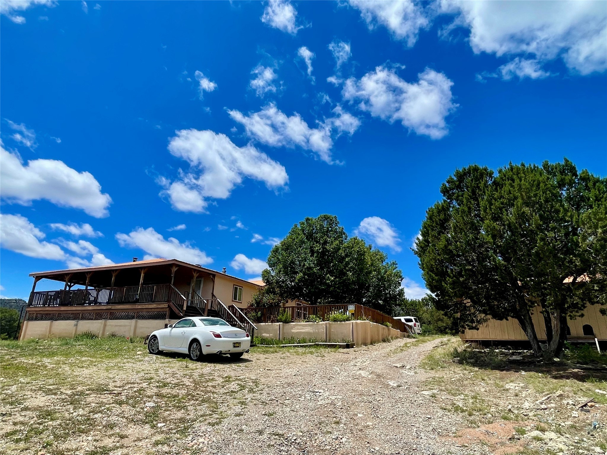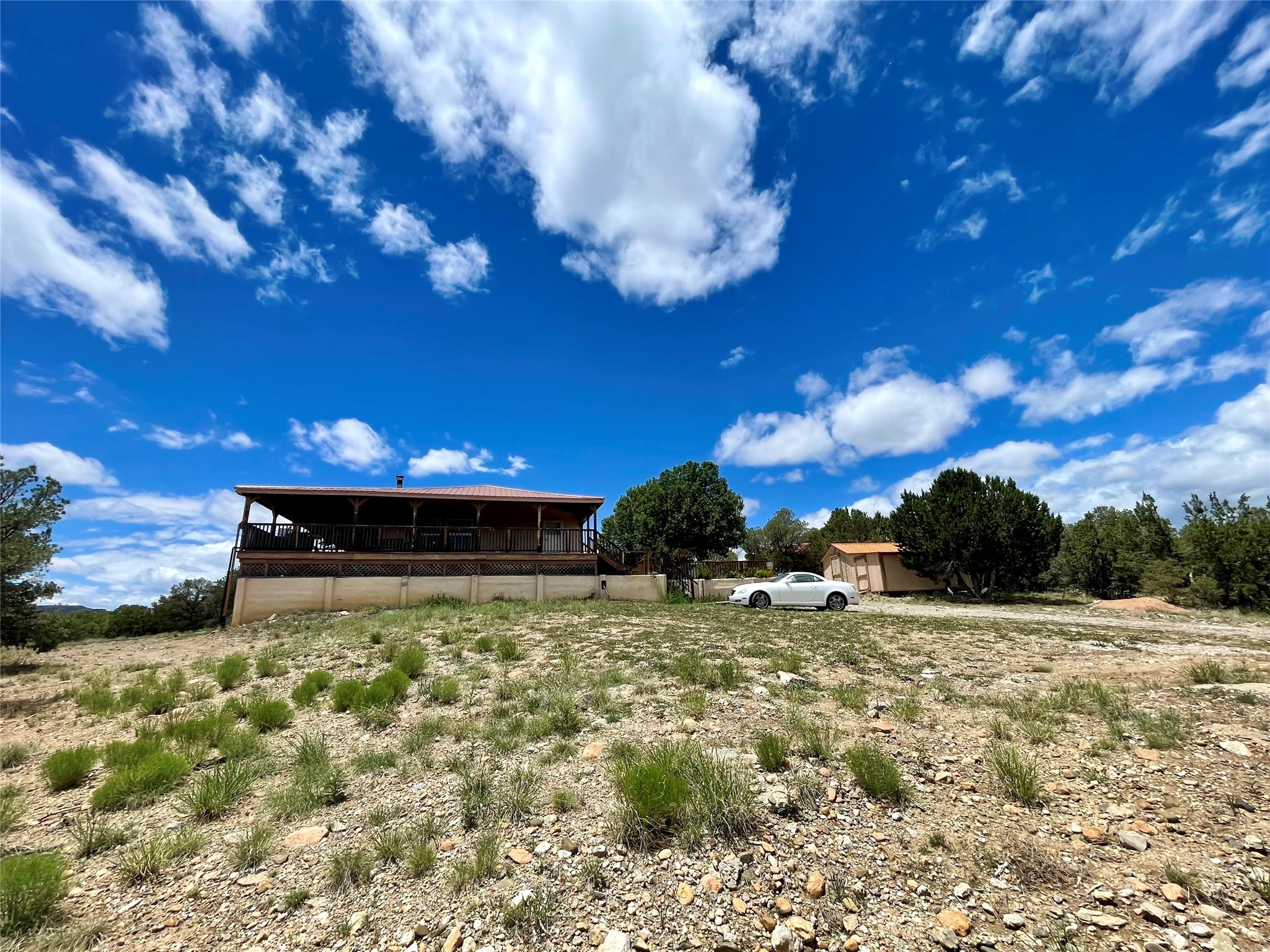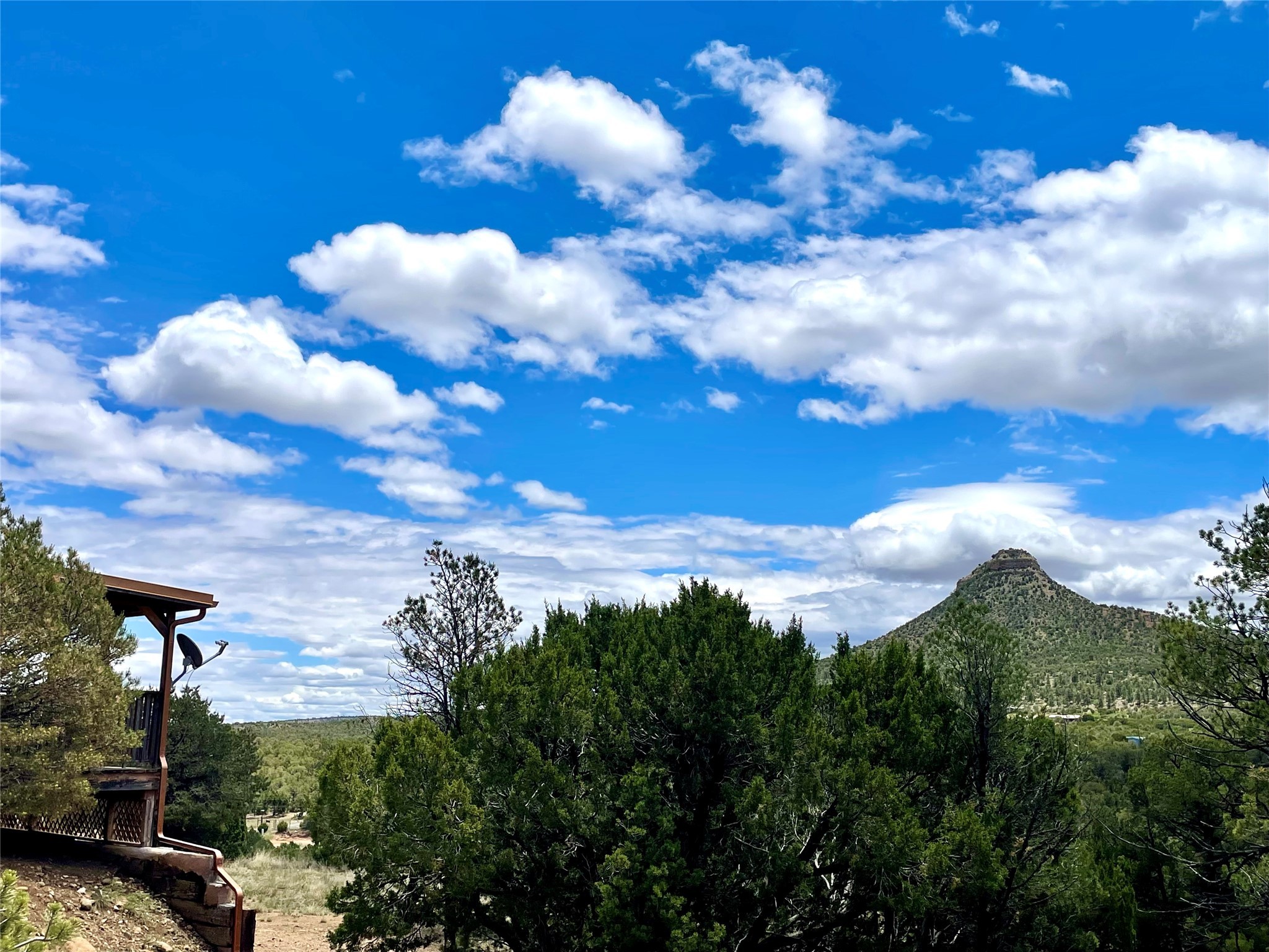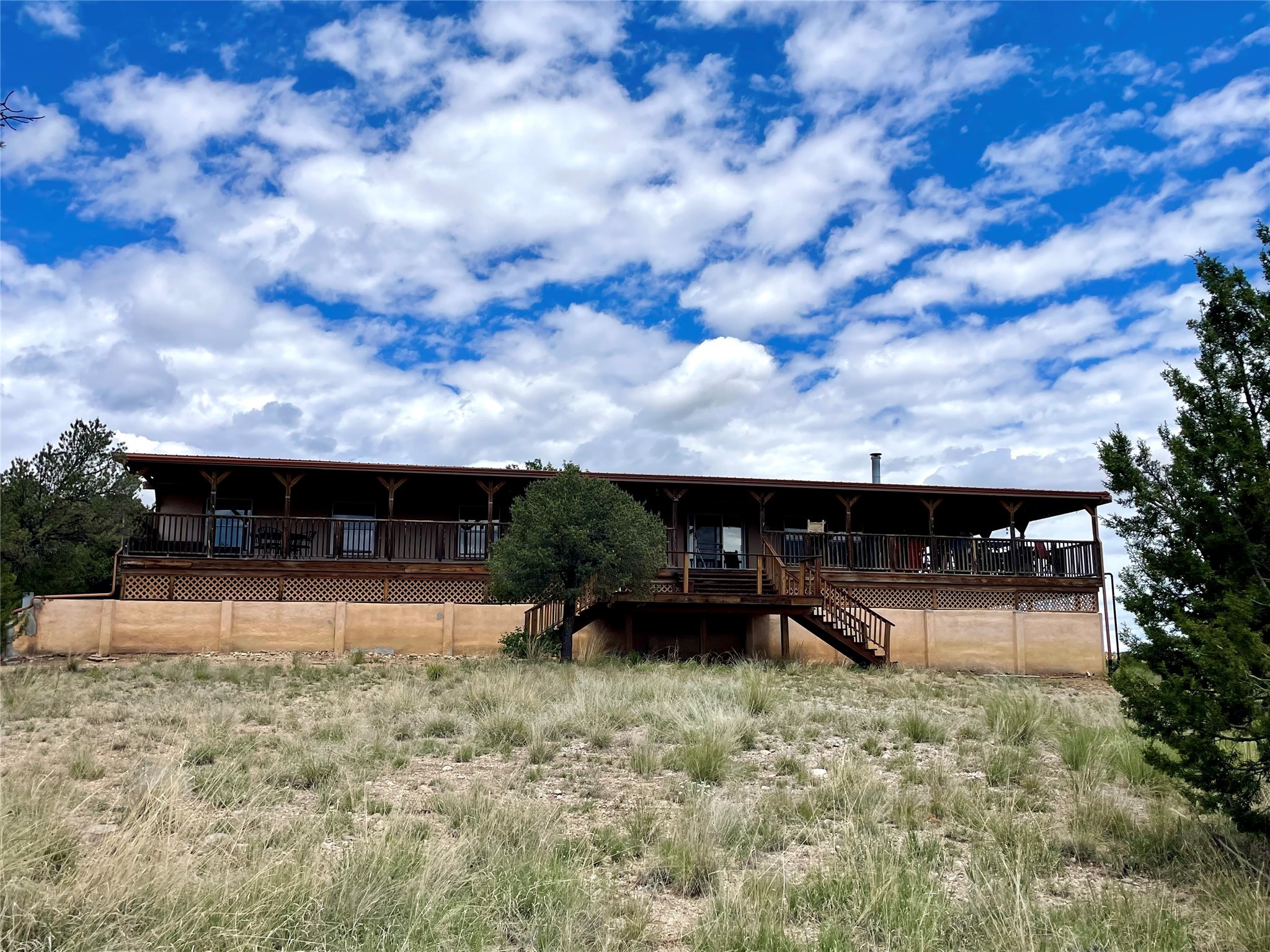 Breathtaking 360 degree views, including the famous Starvation Peak, is what you will get to enjoy when you make this home yours! This immaculately maintained 4 bedroom, 2 full bathroom double wide manufactured sits on 2.86 incredibly scenic acres, with many trees and perennials. The home has too many upgrades to name including: huge wrap around covered deck, walk in pantry, en suite master bathroom with soaking garden tub, solid wood doors, newer Propanel roof with seamless gutters, 2 sheds, wood stove, solid wood louvered shutters, stainless kitchen appliances, washer and dryer, and central air conditioning. Wonderful floor plan: enter into the large living room which flows to the dining room, then kitchen with breakfast bar, tv room with wood stove, then large laundry room - all of these rooms have incredible views! From the living room you can go left to the private master bedroom and en suite bathroom, or you can go right to a hall that leads to the other full bathroom and 3 other bedrooms. Easy commute to Santa Fe or Las Vegas NM and so much recreation nearby including Montezuma Hot Springs, Hermits Peak, and Storrie Lake, but with views like this you won't want to leave home.