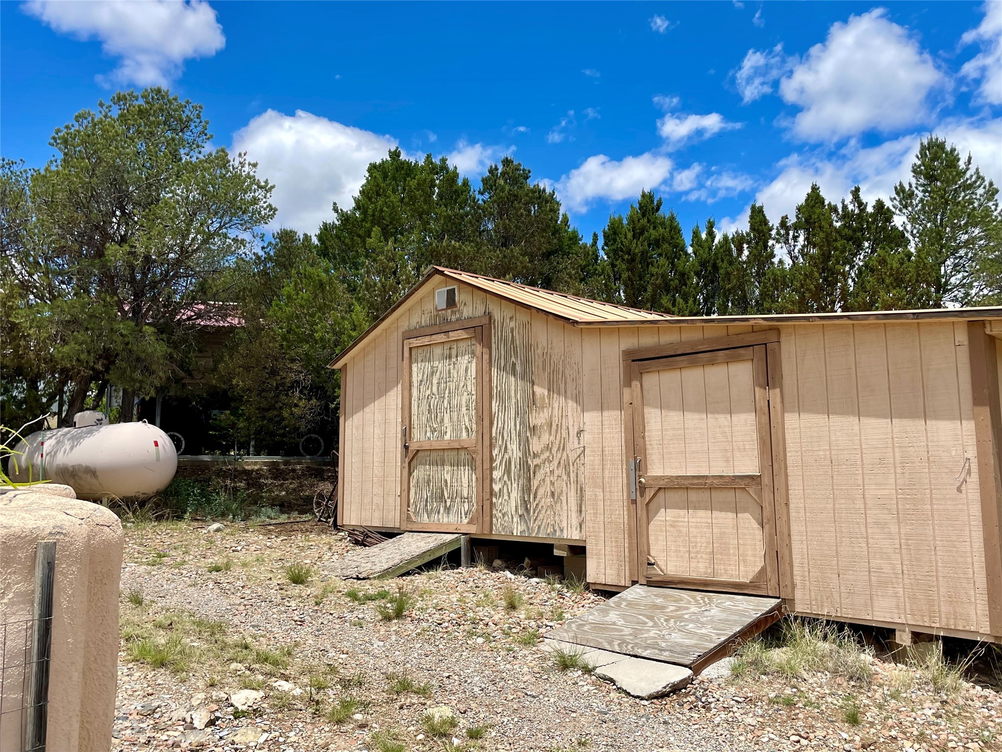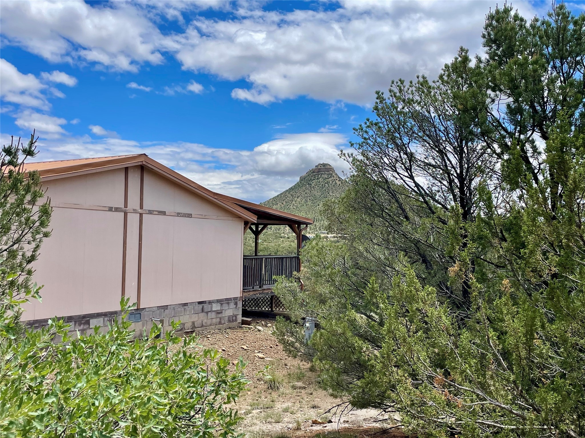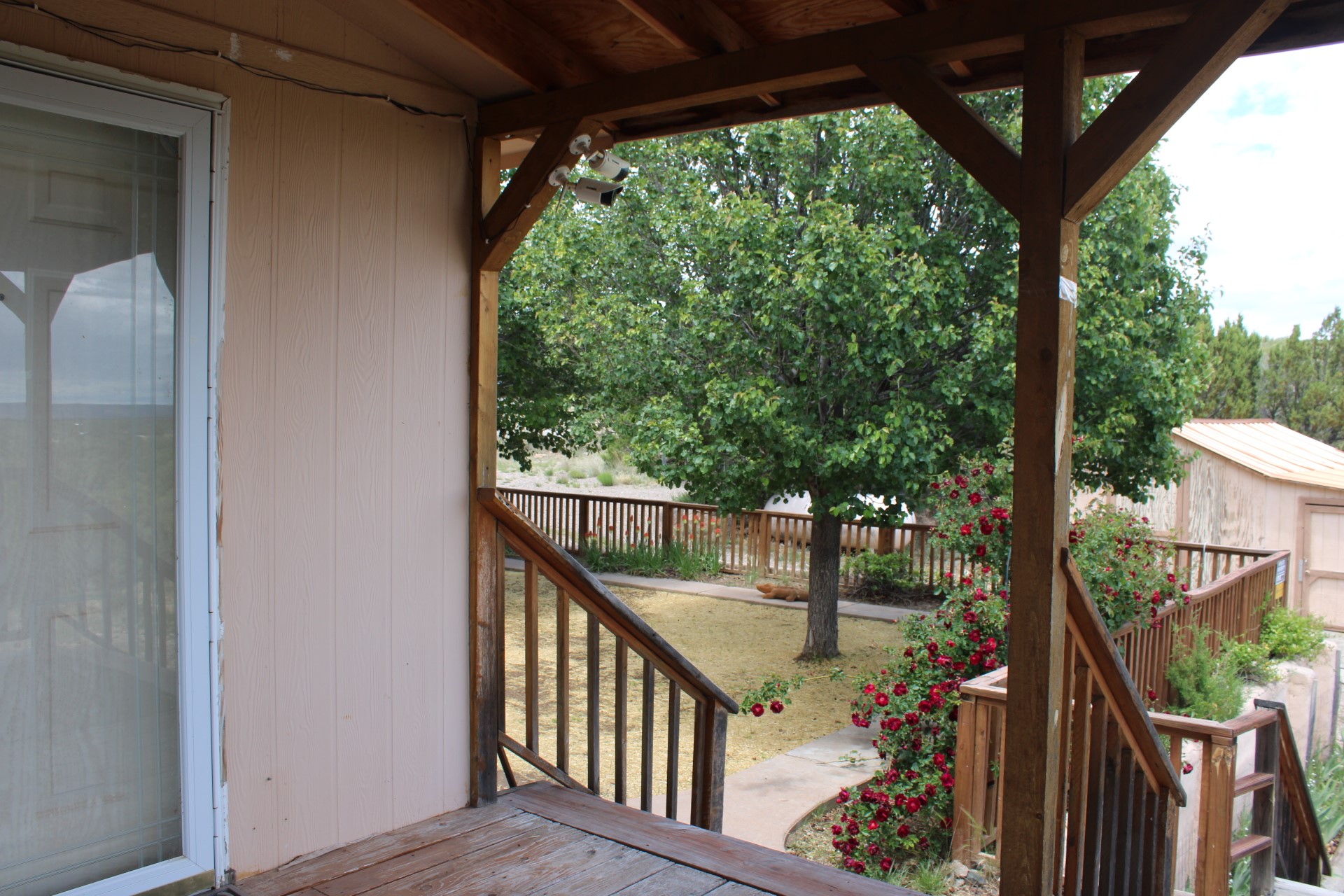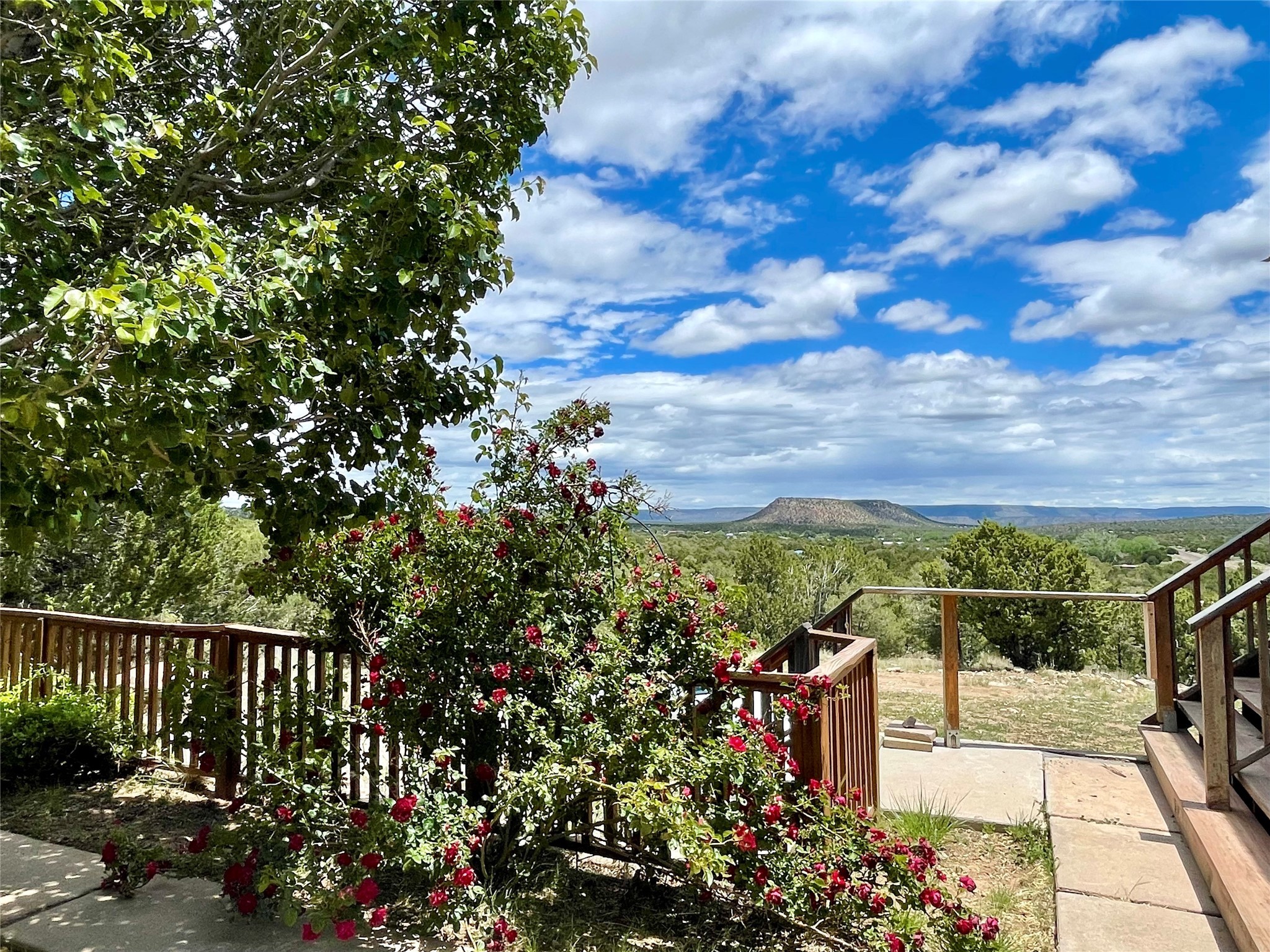 Breathtaking 360 degree views, including the famous Starvation Peak, is what you will get to enjoy when you make this home yours! This immaculately maintained 4 bedroom, 2 full bathroom double wide manufactured sits on 2.86 incredibly scenic acres, with many trees and perennials. The home has too many upgrades to name including: huge wrap around covered deck, walk in pantry, en suite master bathroom with soaking garden tub, solid wood doors, newer Propanel roof with seamless gutters, 2 sheds, wood stove, solid wood louvered shutters, stainless kitchen appliances, washer and dryer, and central air conditioning. Wonderful floor plan: enter into the large living room which flows to the dining room, then kitchen with breakfast bar, tv room with wood stove, then large laundry room - all of these rooms have incredible views! From the living room you can go left to the private master bedroom and en suite bathroom, or you can go right to a hall that leads to the other full bathroom and 3 other bedrooms. Easy commute to Santa Fe or Las Vegas NM and so much recreation nearby including Montezuma Hot Springs, Hermits Peak, and Storrie Lake, but with views like this you won't want to leave home.