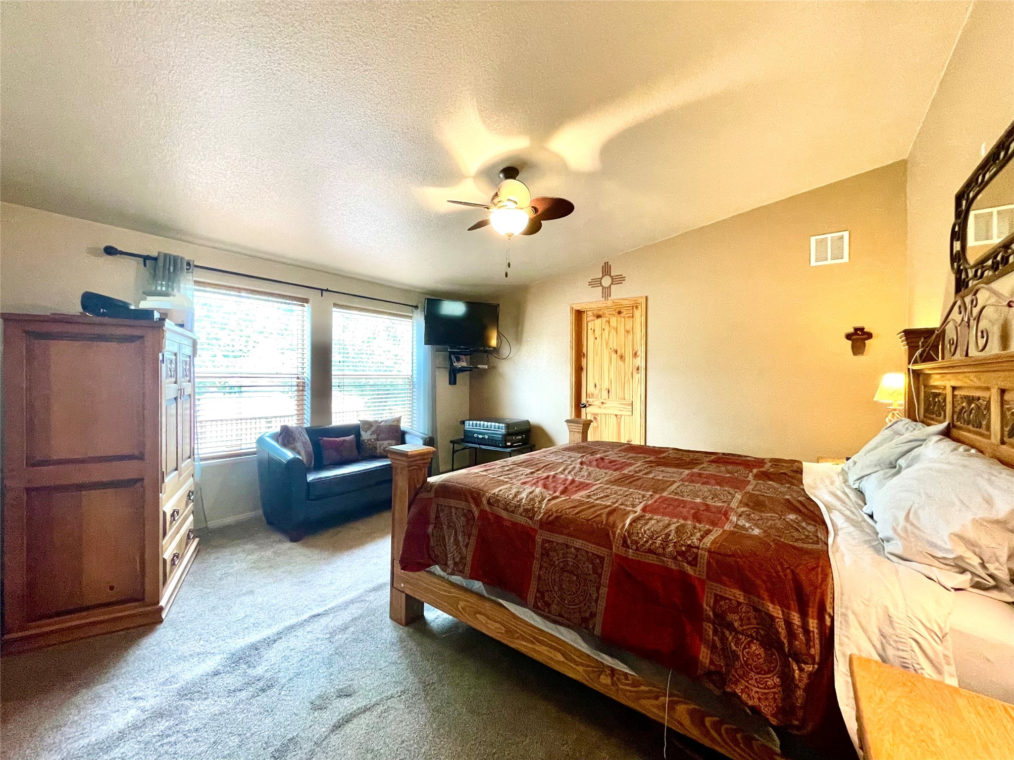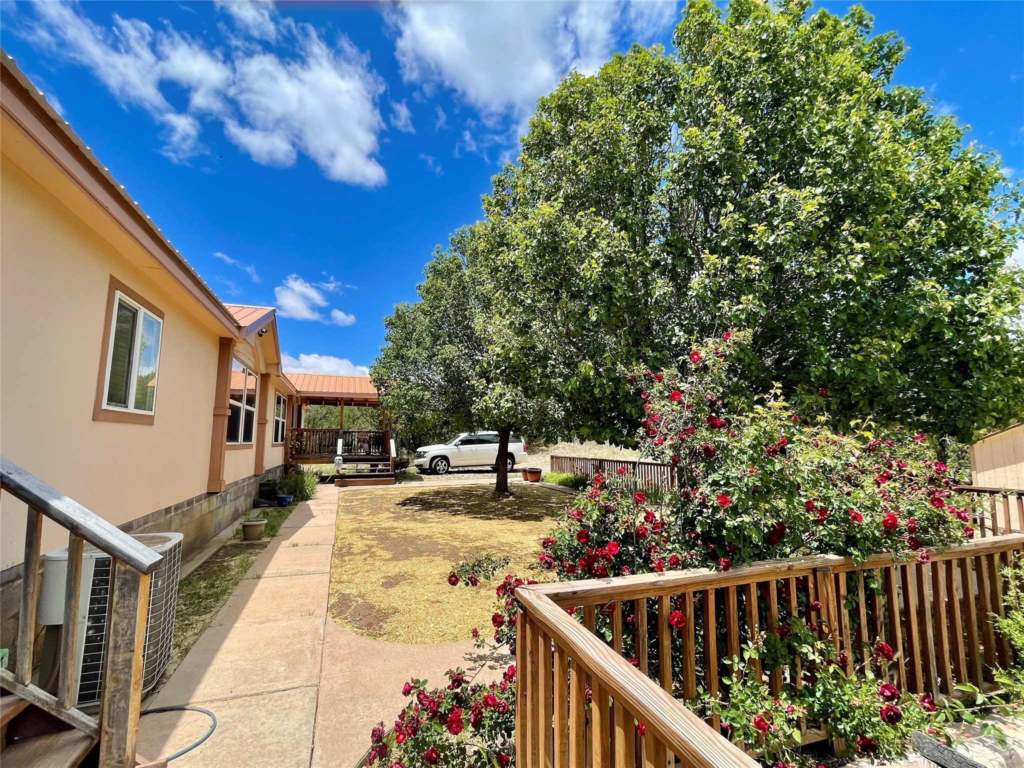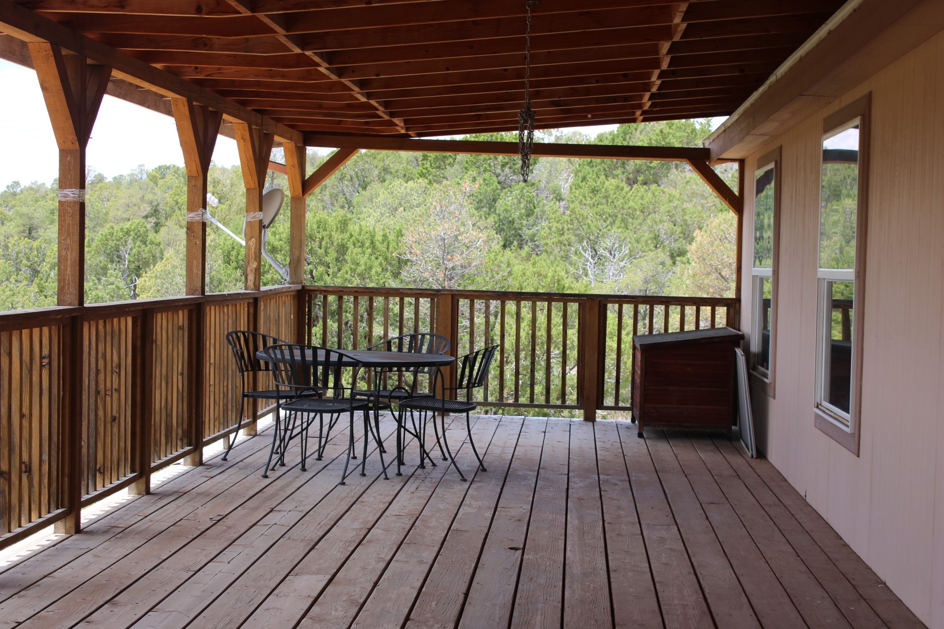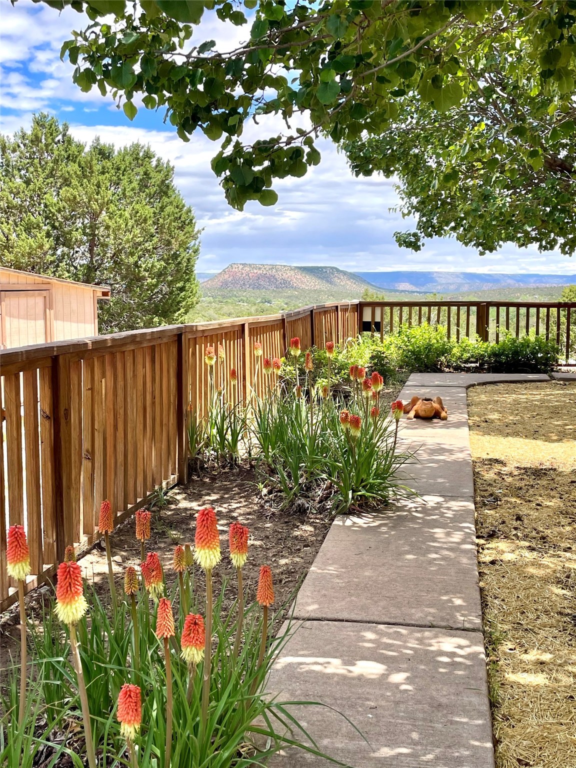 Breathtaking 360 degree views, including the famous Starvation Peak, is what you will get to enjoy when you make this home yours! This immaculately maintained 4 bedroom, 2 full bathroom double wide manufactured sits on 2.86 incredibly scenic acres, with many trees and perennials. The home has too many upgrades to name including: huge wrap around covered deck, walk in pantry, en suite master bathroom with soaking garden tub, solid wood doors, newer Propanel roof with seamless gutters, 2 sheds, wood stove, solid wood louvered shutters, stainless kitchen appliances, washer and dryer, and central air conditioning. Wonderful floor plan: enter into the large living room which flows to the dining room, then kitchen with breakfast bar, tv room with wood stove, then large laundry room - all of these rooms have incredible views! From the living room you can go left to the private master bedroom and en suite bathroom, or you can go right to a hall that leads to the other full bathroom and 3 other bedrooms. Easy commute to Santa Fe or Las Vegas NM and so much recreation nearby including Montezuma Hot Springs, Hermits Peak, and Storrie Lake, but with views like this you won't want to leave home.