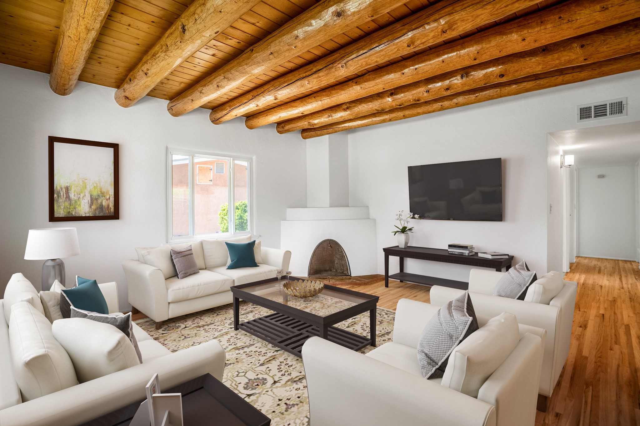 Stamm-built 3-br, 2-ba home located in highly sought-after Casa Solana. This 1,433 sf residence blends classic Santa Fe charm with fresh updates. Discover a warm & inviting interior featuring rich hardwood, slate & tile flooring. The living room centers around a Kiva fireplace, perfect for cozy evenings. With all-new lighting, fresh paint, the house is move-in ready! The kitchen has new appliances & both bathrooms have been redone. Outside, enjoy the clean look of new stucco. This property offers easy access to parks, trails, & all the culture & charm SF has to offer, as well as, close proximity to Casa Solana shopping ctr for grocery, restaurants, exercise & more.