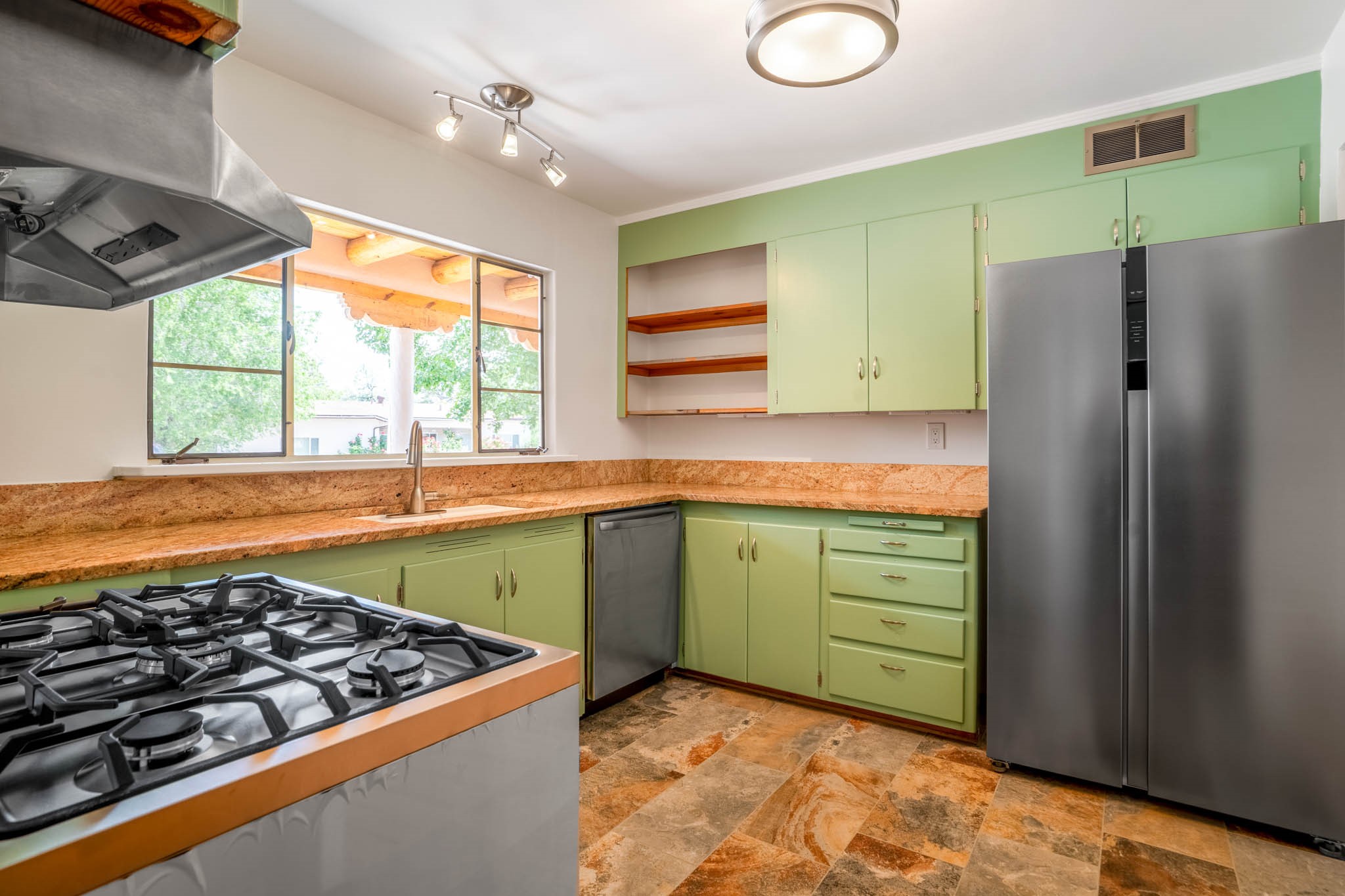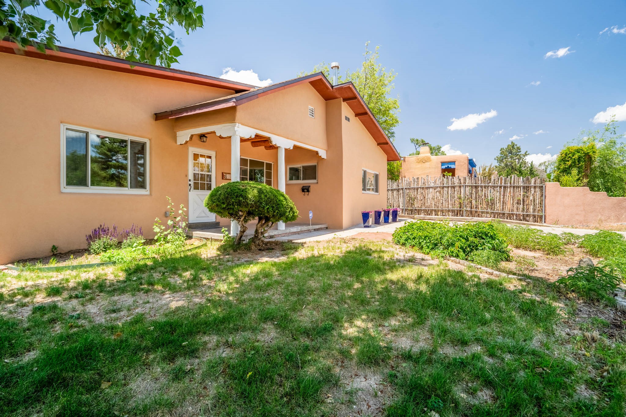Stamm-built 3-br, 2-ba home located in highly sought-after Casa Solana. This 1,433 sf residence blends classic Santa Fe charm with fresh updates. Discover a warm & inviting interior featuring rich hardwood, slate & tile flooring. The living room centers around a Kiva fireplace, perfect for cozy evenings. With all-new lighting, fresh paint, the house is move-in ready! The kitchen has new appliances & both bathrooms have been redone. Outside, enjoy the clean look of new stucco. This property offers easy access to parks, trails, & all the culture & charm SF has to offer, as well as, close proximity to Casa Solana shopping ctr for grocery, restaurants, exercise & more.
