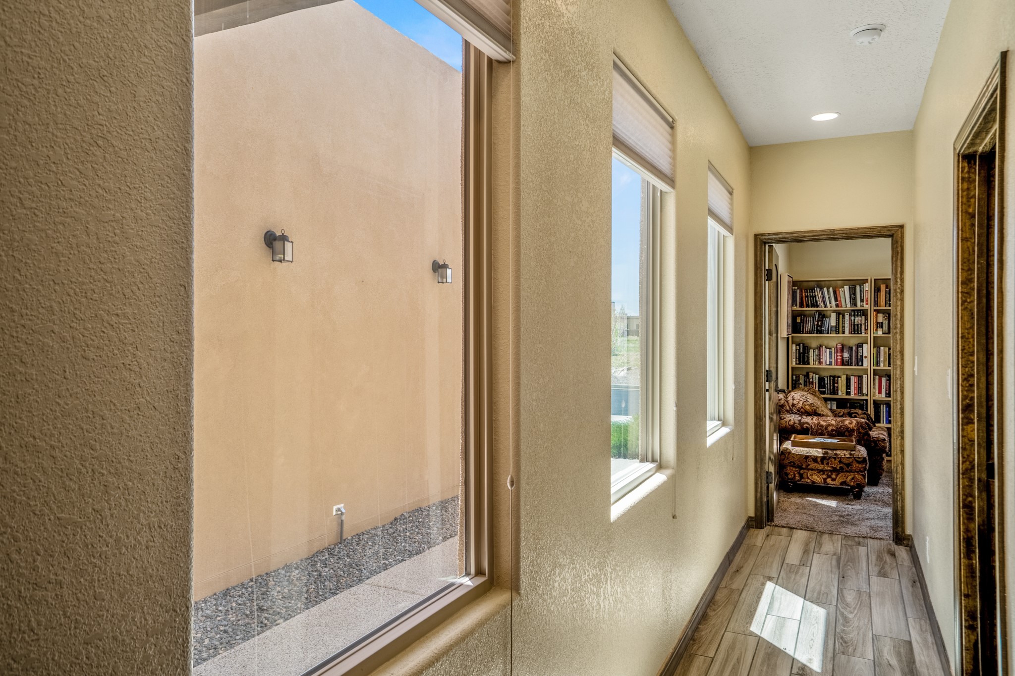 READY TO MOVE IN! Experience modern living in this beautiful La Pradera home! An open floor plan with high ceilings welcomes you into a space designed for comfort and style. The stunning kitchen, complete with a walk-in pantry, white cabinetry, granite countertops, and stainless steel appliances, is the true heart of the home, flowing effortlessly into the living and dining areas. Relax by the sleek gas fireplace or enjoy the refrigerated air on warm summer nights. Another bonus is the Kinetico water softener system. This home offers multiple outdoor spaces, including a charming interior courtyard. The primary suite is your private retreat with a luxurious bath featuring a separate tub and shower, plus a large walk-in closet. The three-car garage includes a durable epoxy floor, and the private backyard backs up to open space, offering the perfect setting for entertaining. This is a home you won't want to miss!