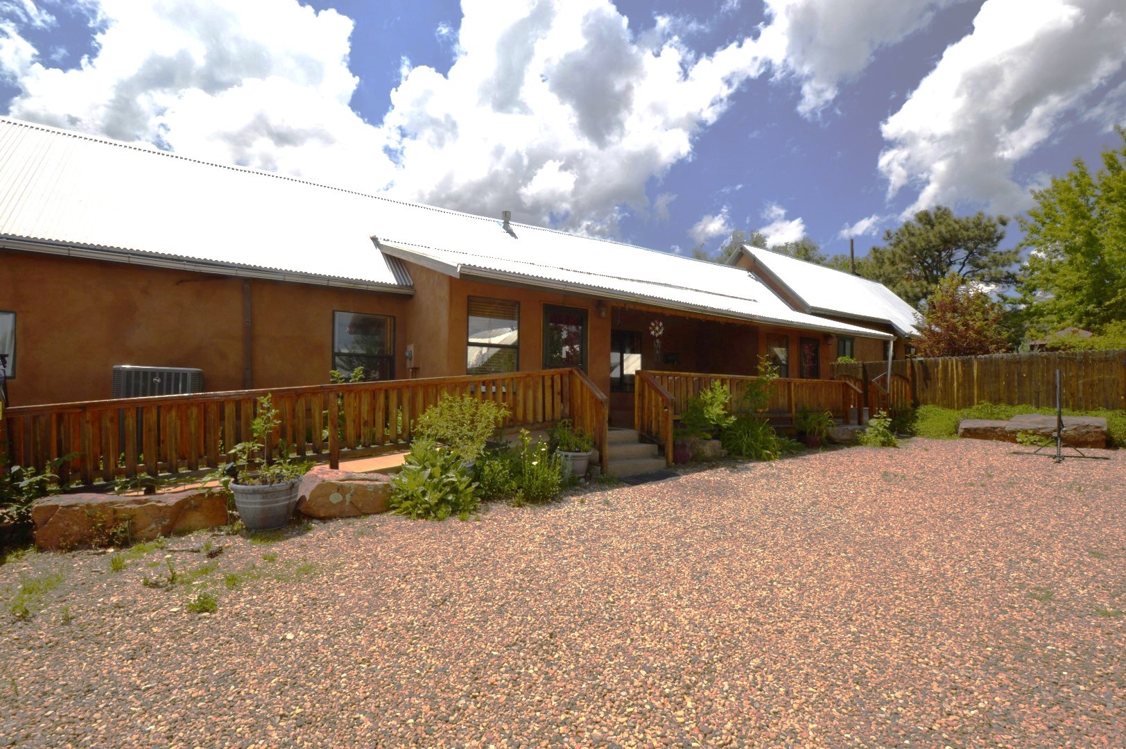 This fully renovated historic adobe compound is a one-of-a-kind dream property with 3 homes, and just 4 blocks from the Las Vegas Old Town Plaza! Part of the house date to the 1870s and 1880s. Hidden within garden walls is a lovingly crafted & spacious compound. All homes have plaster walls, beamed ceilings, private parking, & xeriscaped gardens. Main house is 2920sf, 3 B/4B home and includes a spacious master suite with walk in closet, full bathroom with dual sinks, attached office/sitting room, & direct access to a private walled garden. The main home also includes 2 guest suites w/private baths, an open concept kitchen/dining area, living room w/wet bar, powder room, & a spacious laundry/pantry. A large back patio was enclosed by owners and leads to lovely gardens, studio, green house, workshop & ample storage. Also part of the main house is a potential separate third rental with kitchen and bedroom; a large unheated storage room; and a greenhouse, which is in a second back yard area with separate vehicle entry gate. House 2 is a 1019sf, 2 bedrooms, 1 bath home with living room, kitchen, & laundry hookups. House 3 is 792sf with 2 bedrooms, 1 bath, living room, kitchen & laundry. Potential family compound, artist retreat, B&B or single-family w/rentals. There are too many wonderful features to list here. Check attachments for upgrades and special features.