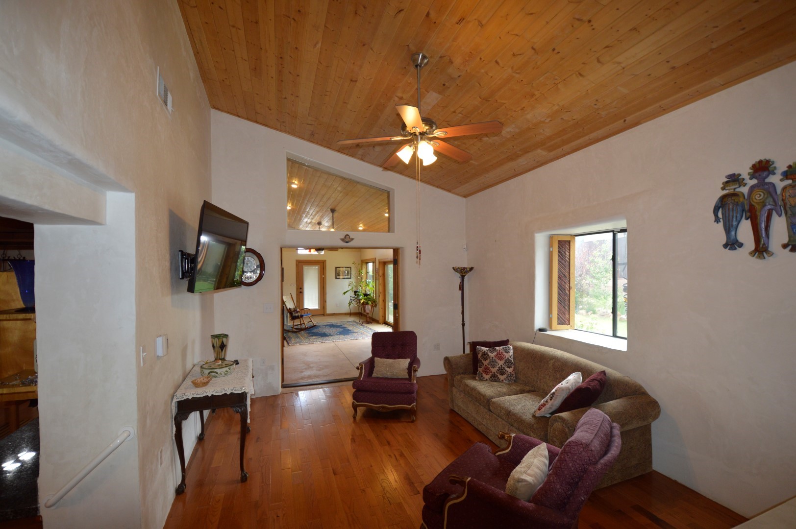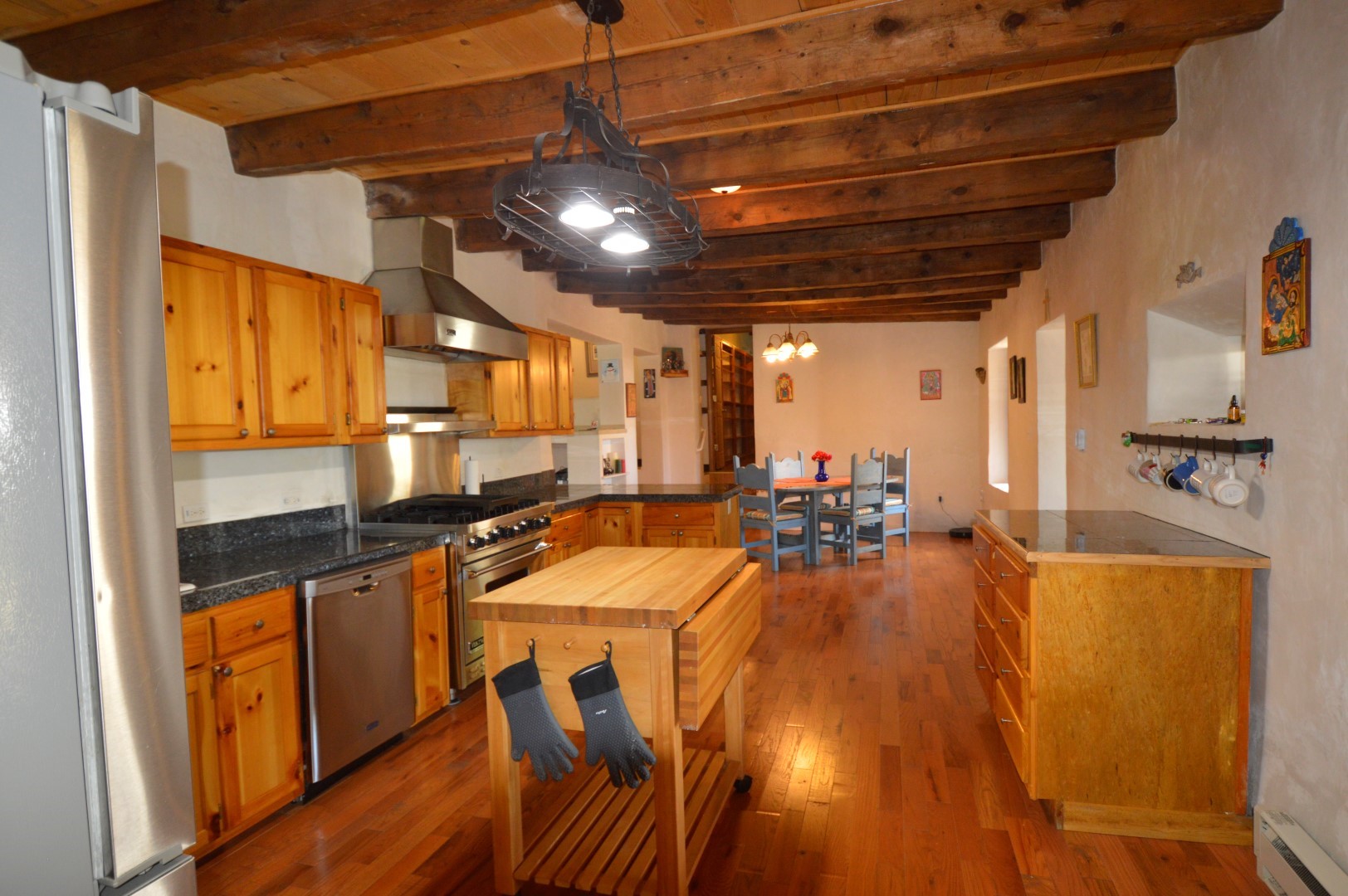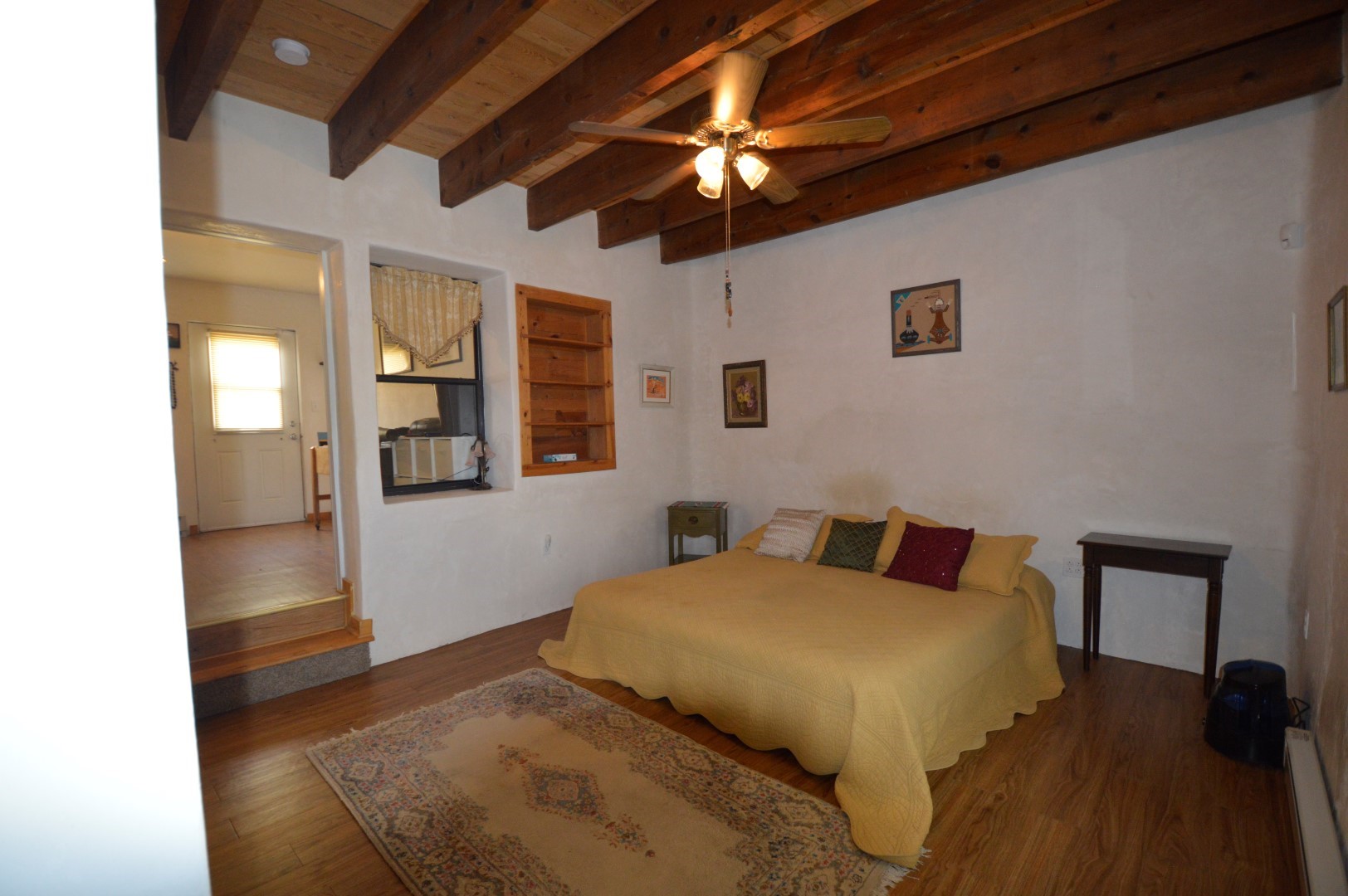 This fully renovated historic adobe compound is a one-of-a-kind dream property with 3 homes, and just 4 blocks from the Las Vegas Old Town Plaza! Part of the house date to the 1870s and 1880s. Hidden within garden walls is a lovingly crafted & spacious compound. All homes have plaster walls, beamed ceilings, private parking, & xeriscaped gardens. Main house is 2920sf, 3 B/4B home and includes a spacious master suite with walk in closet, full bathroom with dual sinks, attached office/sitting room, & direct access to a private walled garden. The main home also includes 2 guest suites w/private baths, an open concept kitchen/dining area, living room w/wet bar, powder room, & a spacious laundry/pantry. A large back patio was enclosed by owners and leads to lovely gardens, studio, green house, workshop & ample storage. Also part of the main house is a potential separate third rental with kitchen and bedroom; a large unheated storage room; and a greenhouse, which is in a second back yard area with separate vehicle entry gate. House 2 is a 1019sf, 2 bedrooms, 1 bath home with living room, kitchen, & laundry hookups. House 3 is 792sf with 2 bedrooms, 1 bath, living room, kitchen & laundry. Potential family compound, artist retreat, B&B or single-family w/rentals. There are too many wonderful features to list here. Check attachments for upgrades and special features.