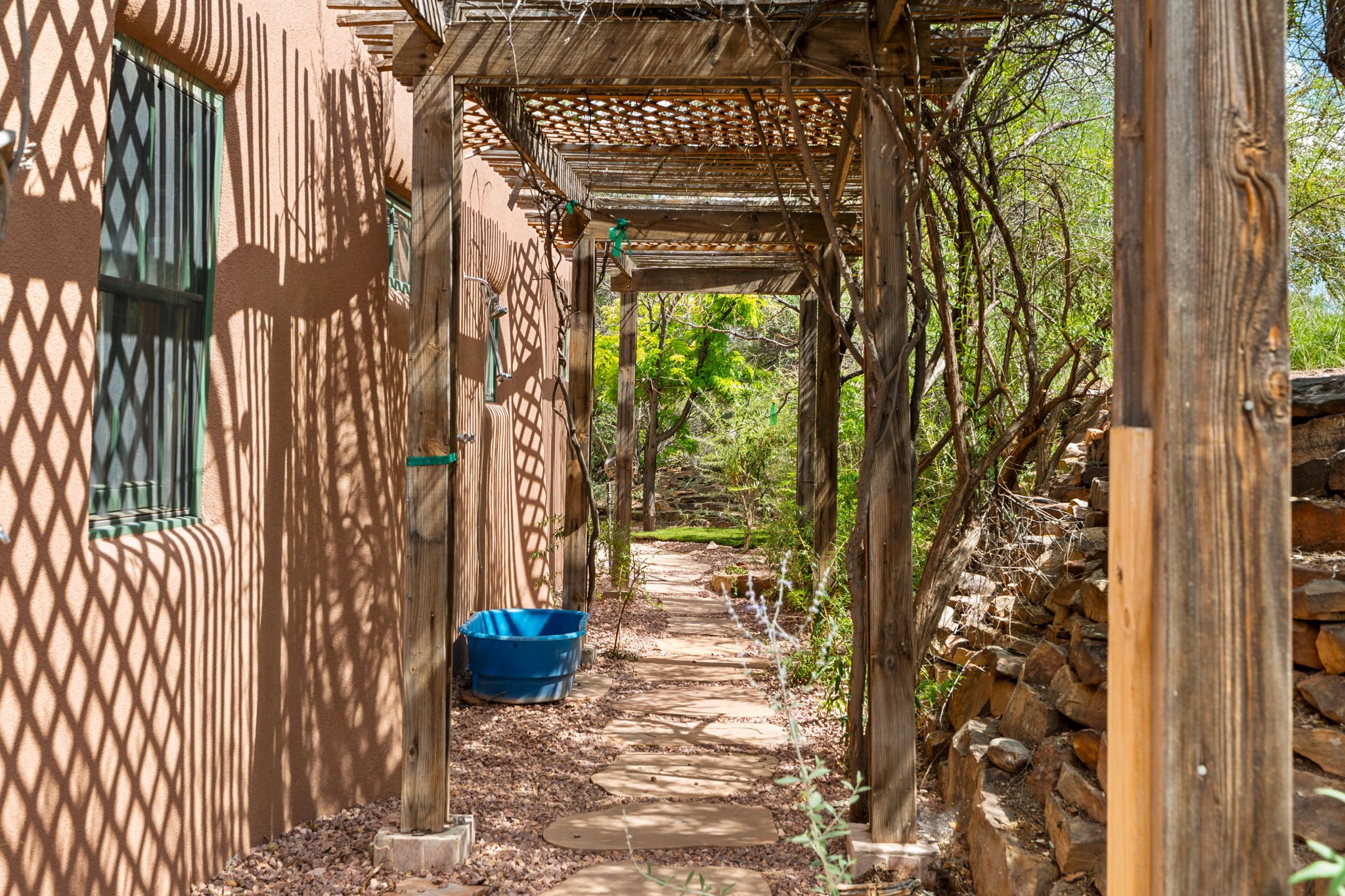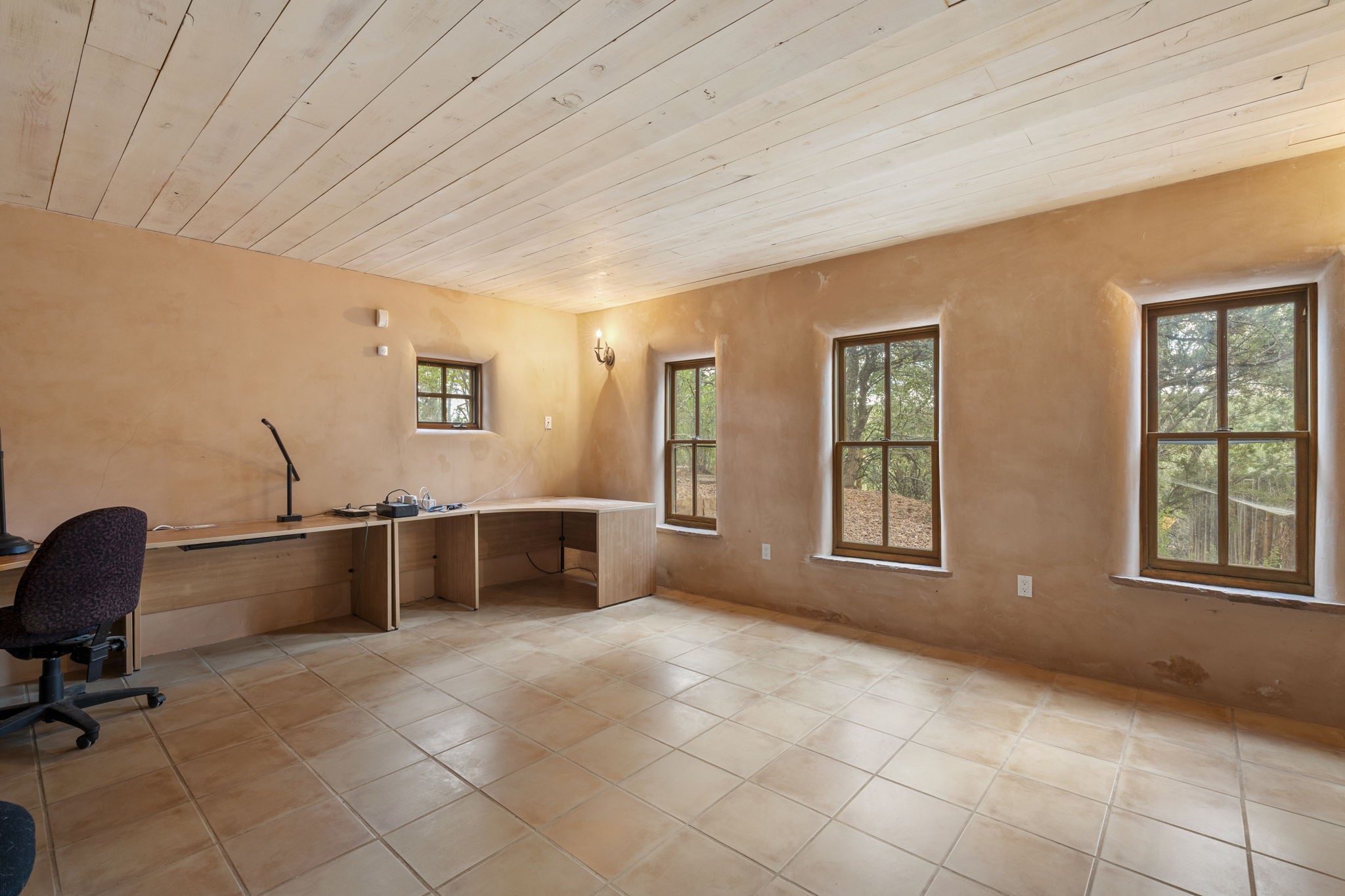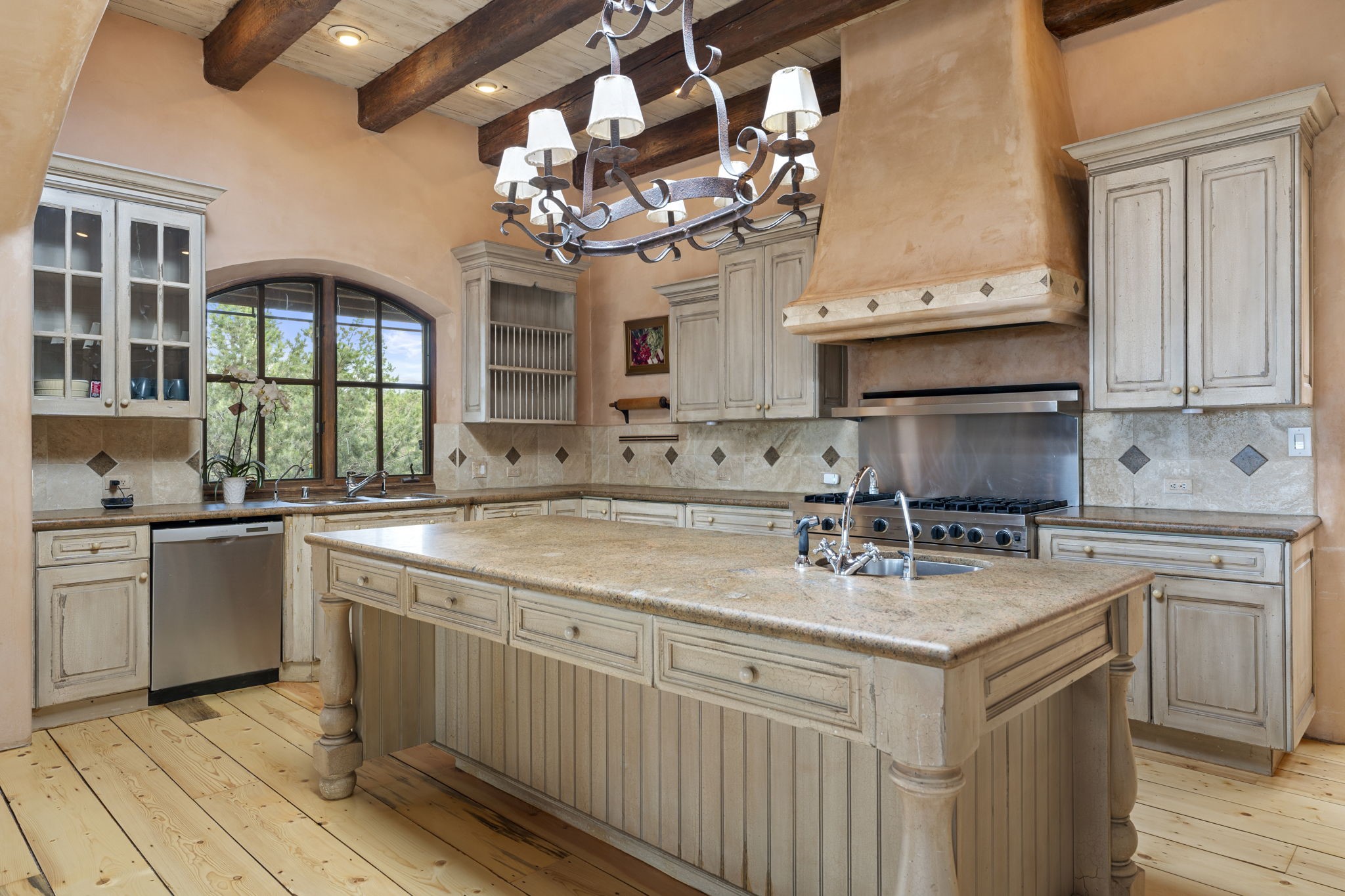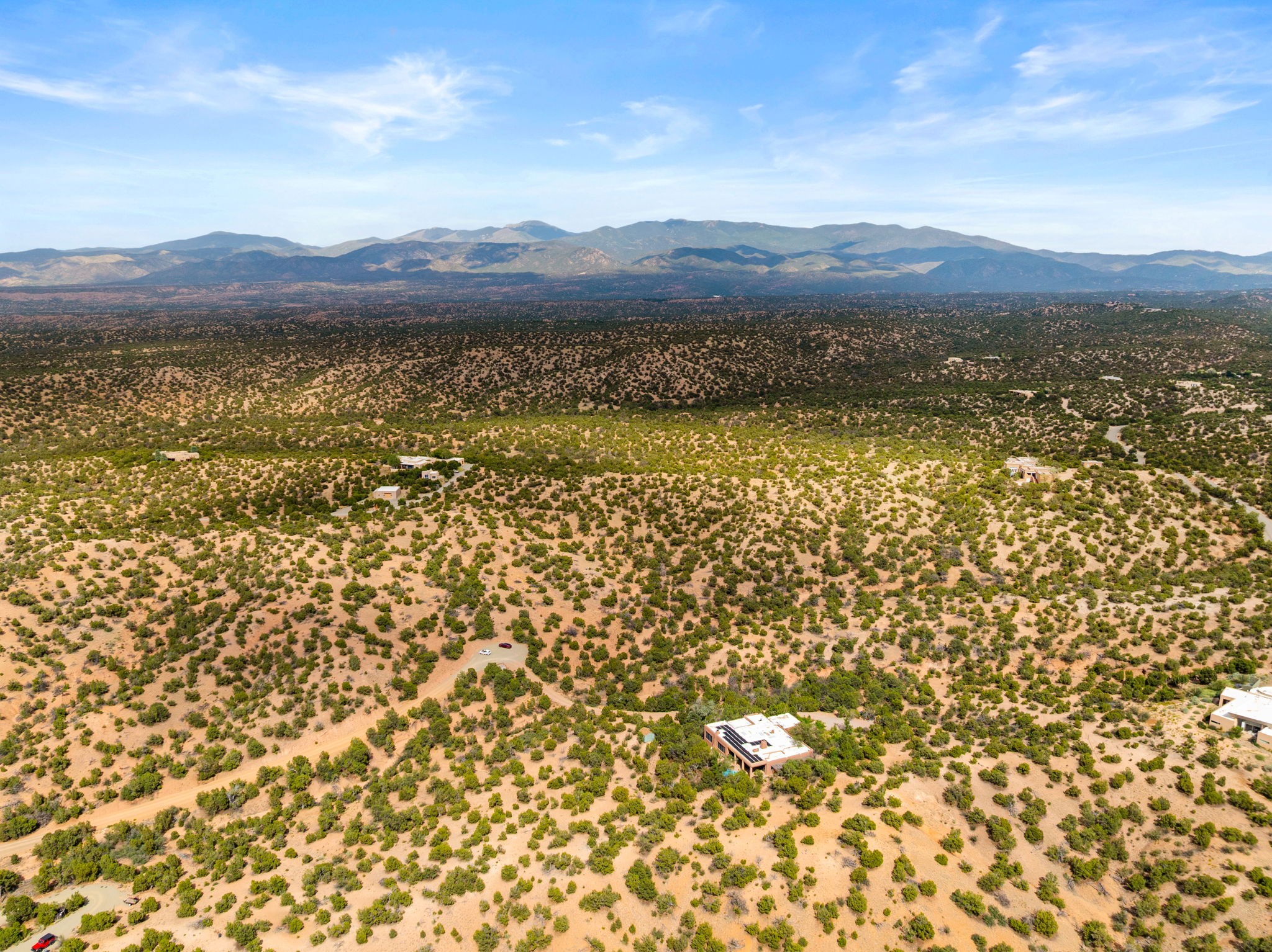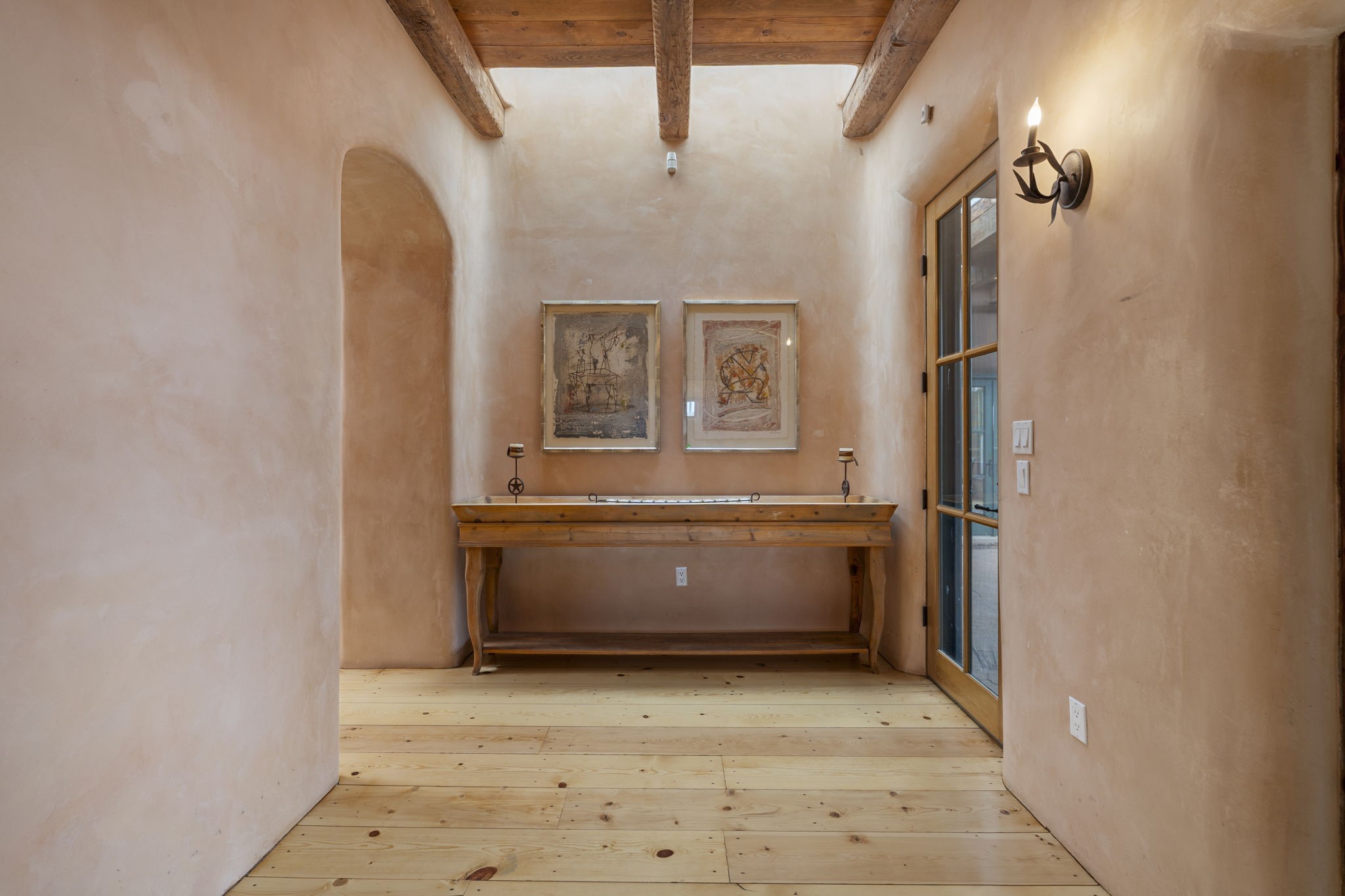 What kind of story are you ready for?? Santa Fe style meets European Country Estate! This 4 bedroom, 4 bathroom, high-quality Rastra construction features soaring ceilings, hand carved vigas, and far-reaching mountain views. Walking into the grand entrance, you are greeted by voluminous curved walls, golden-soft natural light, wide-plank pine floors, and a stately fireplace, which set the stage for an elegant Santa Fe lifestyle. The open concept French country kitchen faces a spacious den with views framed by large picture windows, and features an oversized island topped with granite. There is plenty of counter space for cooking and for entertaining guests. High-end appliances include a large Sub-Zero refrigerator, a six-burner Viking range, and a Bosch dishwasher. Additionally, this home's temperature-controlled wine cave accommodates 1500-2000 bottles for the serious aficionado. Relax in front of one of five fireplaces, and enjoy a large, formal dining room with views that will sweep guests off their feet! Or, linger over a morning cup of coffee on the grand portal overlooking the koi pond and the Jemez mountains. The lavish primary suite is on the main level and will have you living in luxury with a large deep, soaking tub, a private cedar-lined sauna, and a steam shower. There are several rooms downstairs (including a bathroom) which could be used as a mother-in-law suite, offices, or an artist studio. Complete with a TPO roof, an oversized two-car garage, and beautiful landscaping on drip irrigation, this is a timeless space you'll never want to leave. Rastra construction and owned solar panels create an extremely energy efficient environment, with almost non-existent electric bills. New stucco was done in 2025. Enjoy proximity to the club at Las Campanas, but without the high HOA fees. Don't miss this chance to live your dream Santa Fe lifestyle!