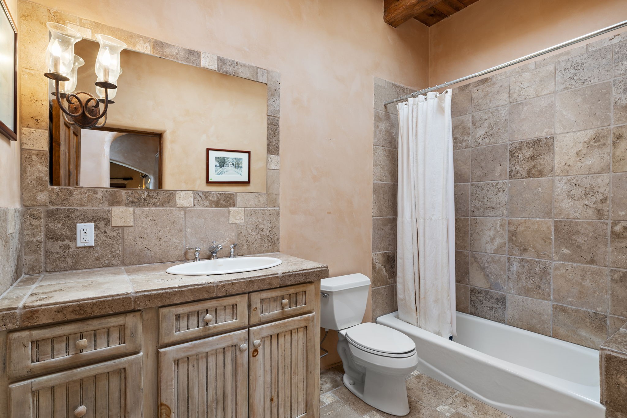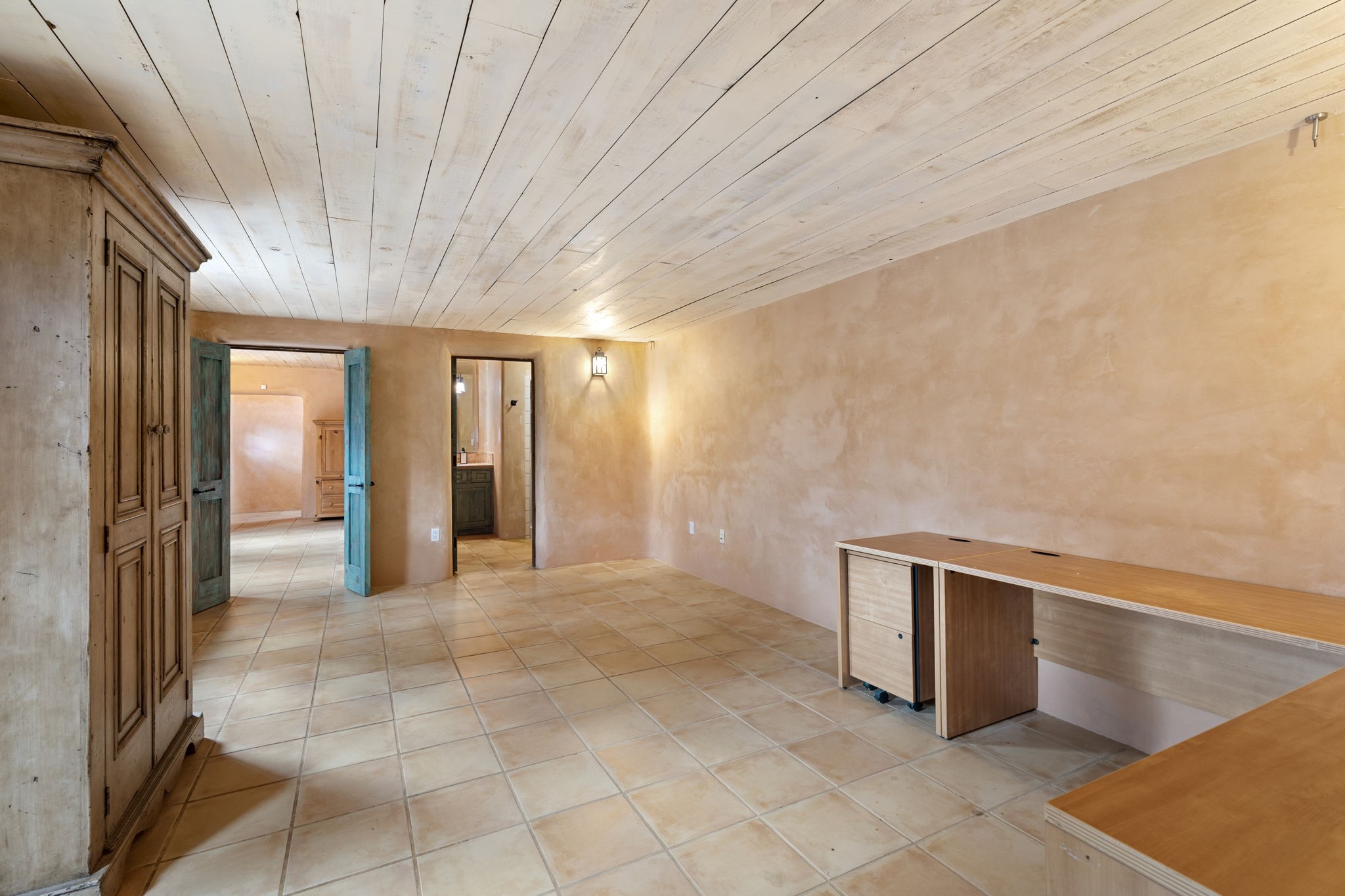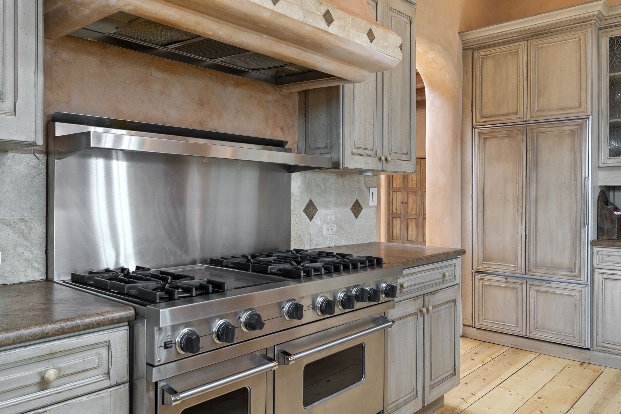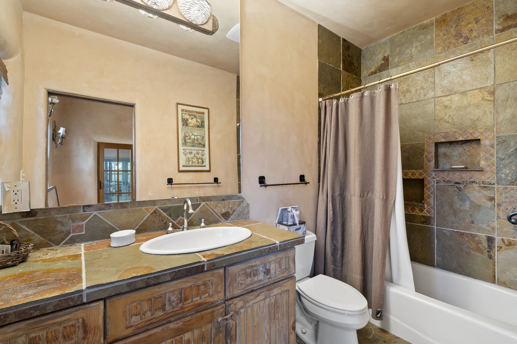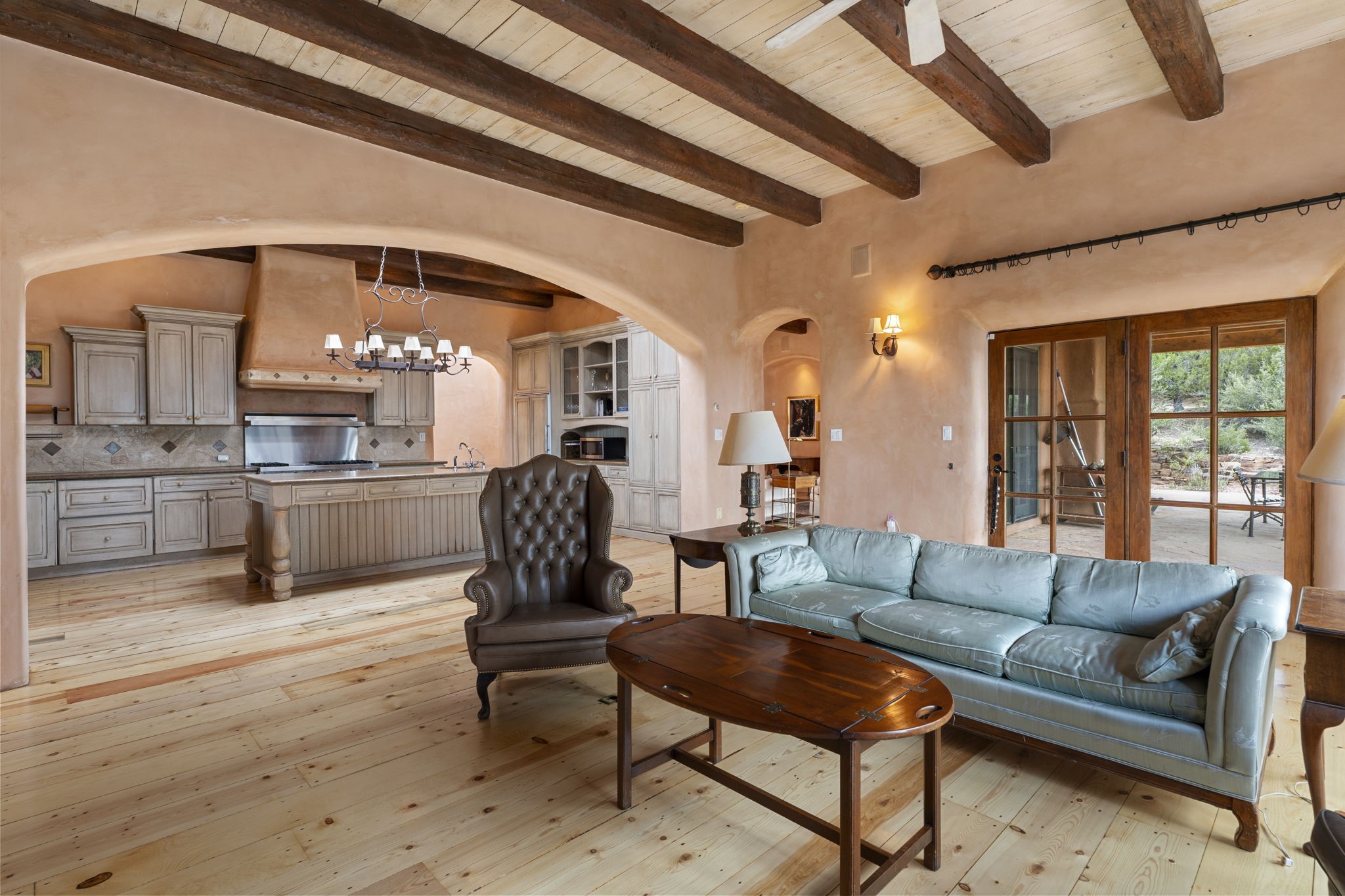 What kind of story are you ready for?? Santa Fe style meets European Country Estate! This 4 bedroom, 4 bathroom, high-quality Rastra construction features soaring ceilings, hand carved vigas, and far-reaching mountain views. Walking into the grand entrance, you are greeted by voluminous curved walls, golden-soft natural light, wide-plank pine floors, and a stately fireplace, which set the stage for an elegant Santa Fe lifestyle. The open concept French country kitchen faces a spacious den with views framed by large picture windows, and features an oversized island topped with granite. There is plenty of counter space for cooking and for entertaining guests. High-end appliances include a large Sub-Zero refrigerator, a six-burner Viking range, and a Bosch dishwasher. Additionally, this home's temperature-controlled wine cave accommodates 1500-2000 bottles for the serious aficionado. Relax in front of one of five fireplaces, and enjoy a large, formal dining room with views that will sweep guests off their feet! Or, linger over a morning cup of coffee on the grand portal overlooking the koi pond and the Jemez mountains. The lavish primary suite is on the main level and will have you living in luxury with a large deep, soaking tub, a private cedar-lined sauna, and a steam shower. There are several rooms downstairs (including a bathroom) which could be used as a mother-in-law suite, offices, or an artist studio. Complete with a TPO roof, an oversized two-car garage, and beautiful landscaping on drip irrigation, this is a timeless space you'll never want to leave. Rastra construction and owned solar panels create an extremely energy efficient environment, with almost non-existent electric bills. New stucco was done in 2025. Enjoy proximity to the club at Las Campanas, but without the high HOA fees. Don't miss this chance to live your dream Santa Fe lifestyle!