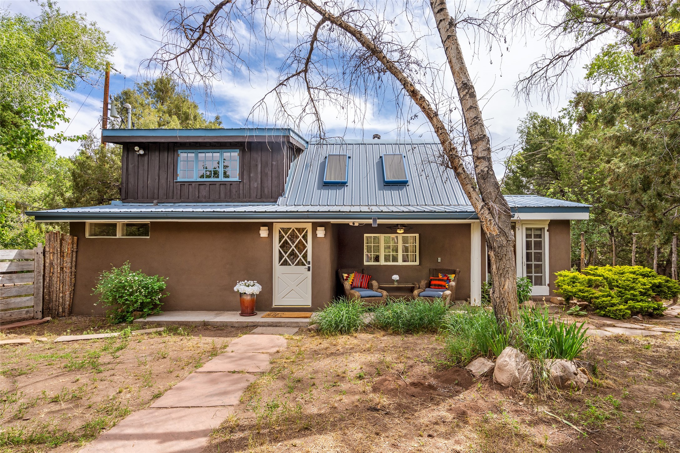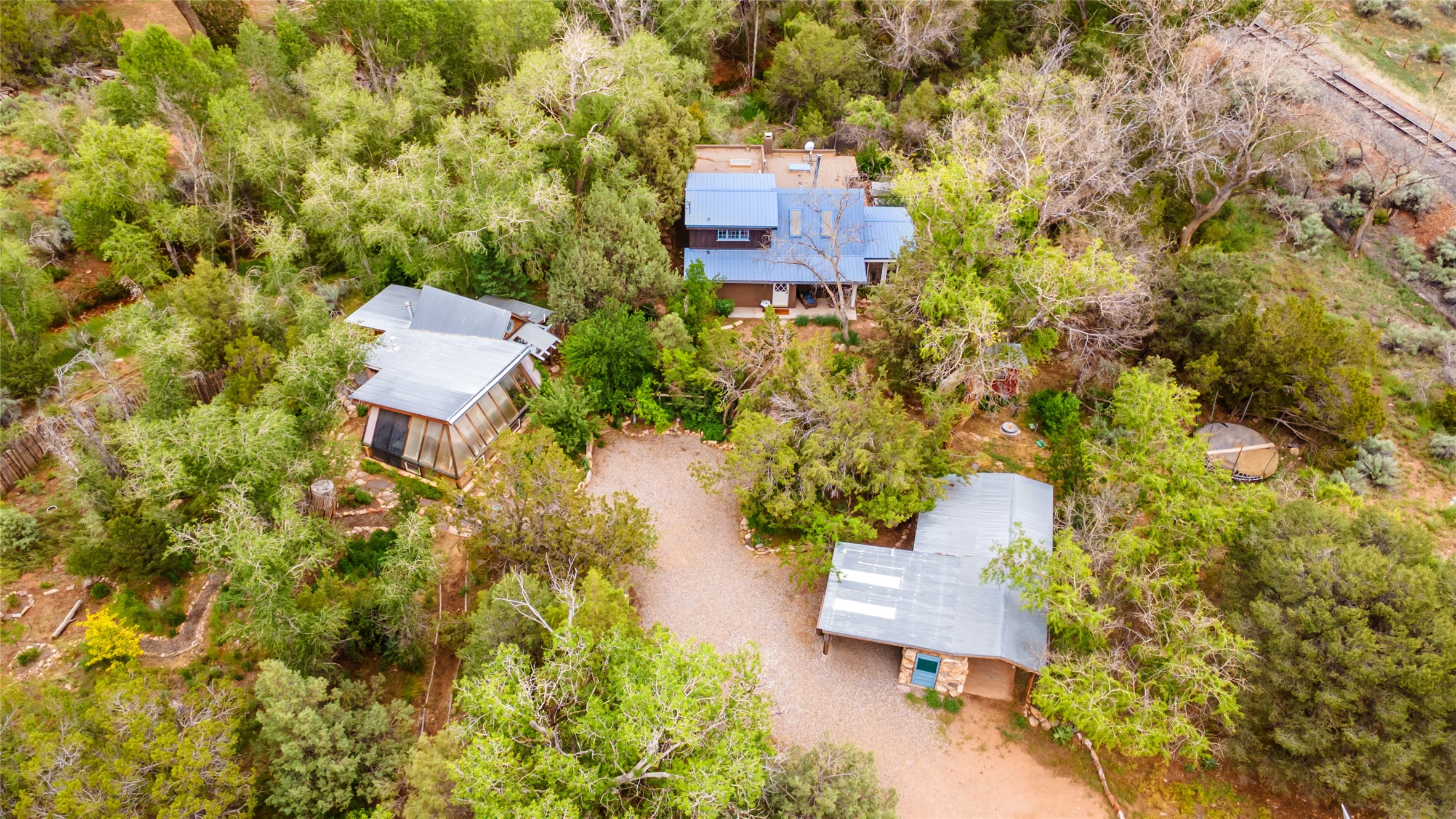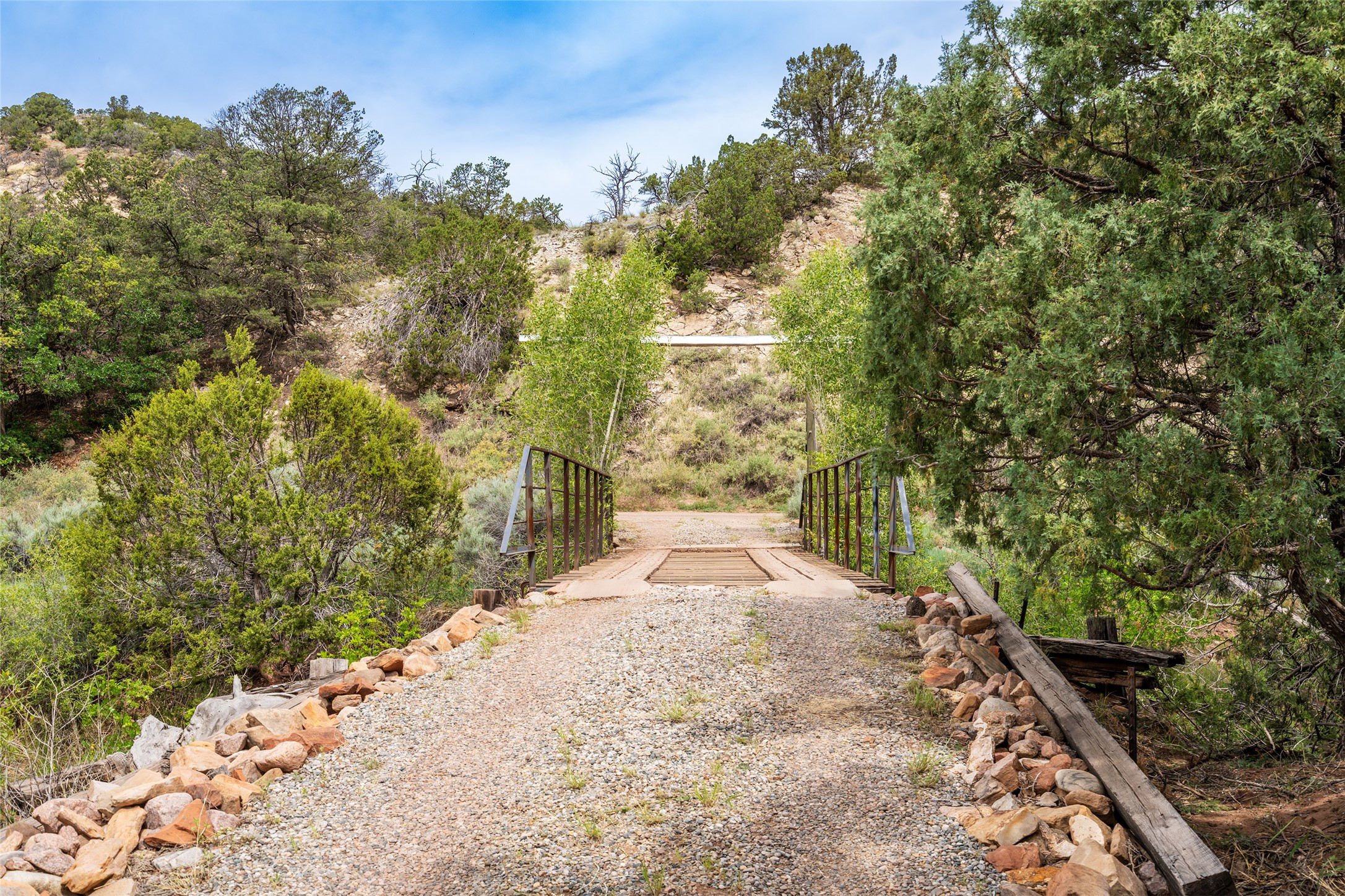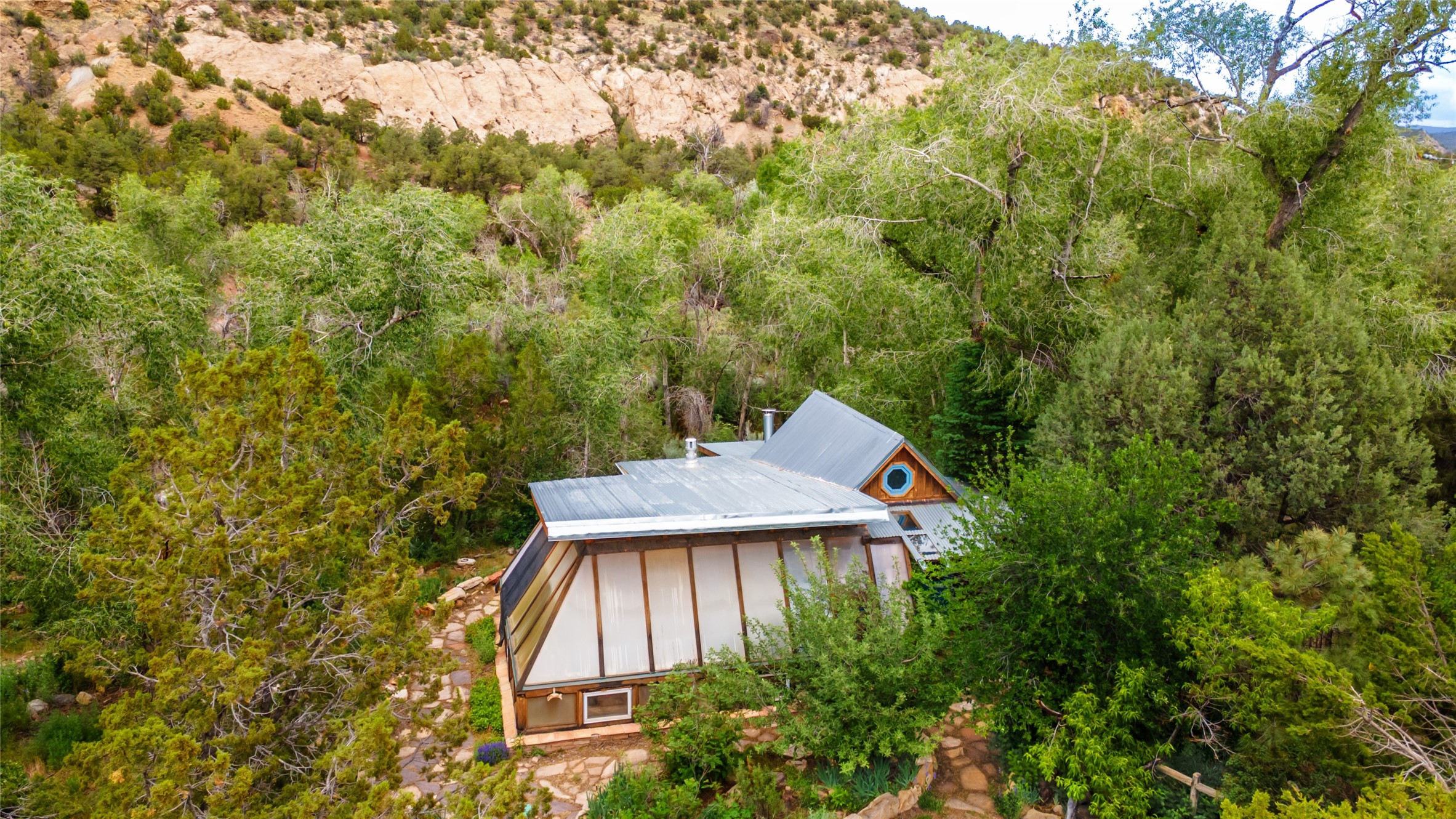Nature-lover's paradise on 6 Acres- Tucked beneath red rock hills--Cross the bridge from Sibley Road and enter your private sanctuary nestled on six acres of lush, mature land in the serene community of Caoncito. This one-of-a-kind property features a thoughtfully updated three-bedroom, two-bathroom adobe and frame main house that blends timeless charm with modern luxury. Highlights include fully renovated luxury bathrooms and a gourmet kitchen with artisan tile, locally crafted ironwork throughout, and new sustainable wood floors. The home showcases diamond finish plaster and low-VOC finishes, ensuring both beauty and environmental consciousness. The hand-built guest house, perfect for visitors, rental income, or a creative studio, includes a cozy bedroom, bath, kitchenette, and a loft. Attached is a greenhouse for year-round gardening. Outdoors, you'll find a detached carport/shop featuring stonework sourced from the nearby Glorieta Mesa, which doubles as an open-air workspace or additional storage. A traditional underground kiva structure provides a private ceremonial space.The grounds are a horticultural haven with old-growth cottonwoods, pions, and raised garden beds. A private well adds to the property's potential for self-sufficient living. Whether you're a homesteader, gardener, artist, or seeking a peaceful retreat, this property offers the perfect setting.Set in a classic rural NM neighborhood, the house sits on three acres fenced in with coyote fencing, providing safety and privacy. An additional three acres remain wild, with a neighborhood path leading you to public hiking trails and sunset views. Located just 25 minutes from downtown Santa Fe, this tranquil retreat offers the best of both worlds: a private haven with access to the vibrant city. With its artisanal remodel and high desert landscape, this property is an extraordinary opportunity for those seeking comfort, luxury, and self-sufficient living.