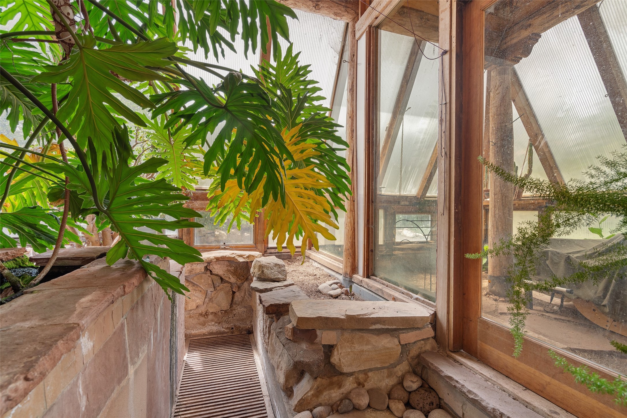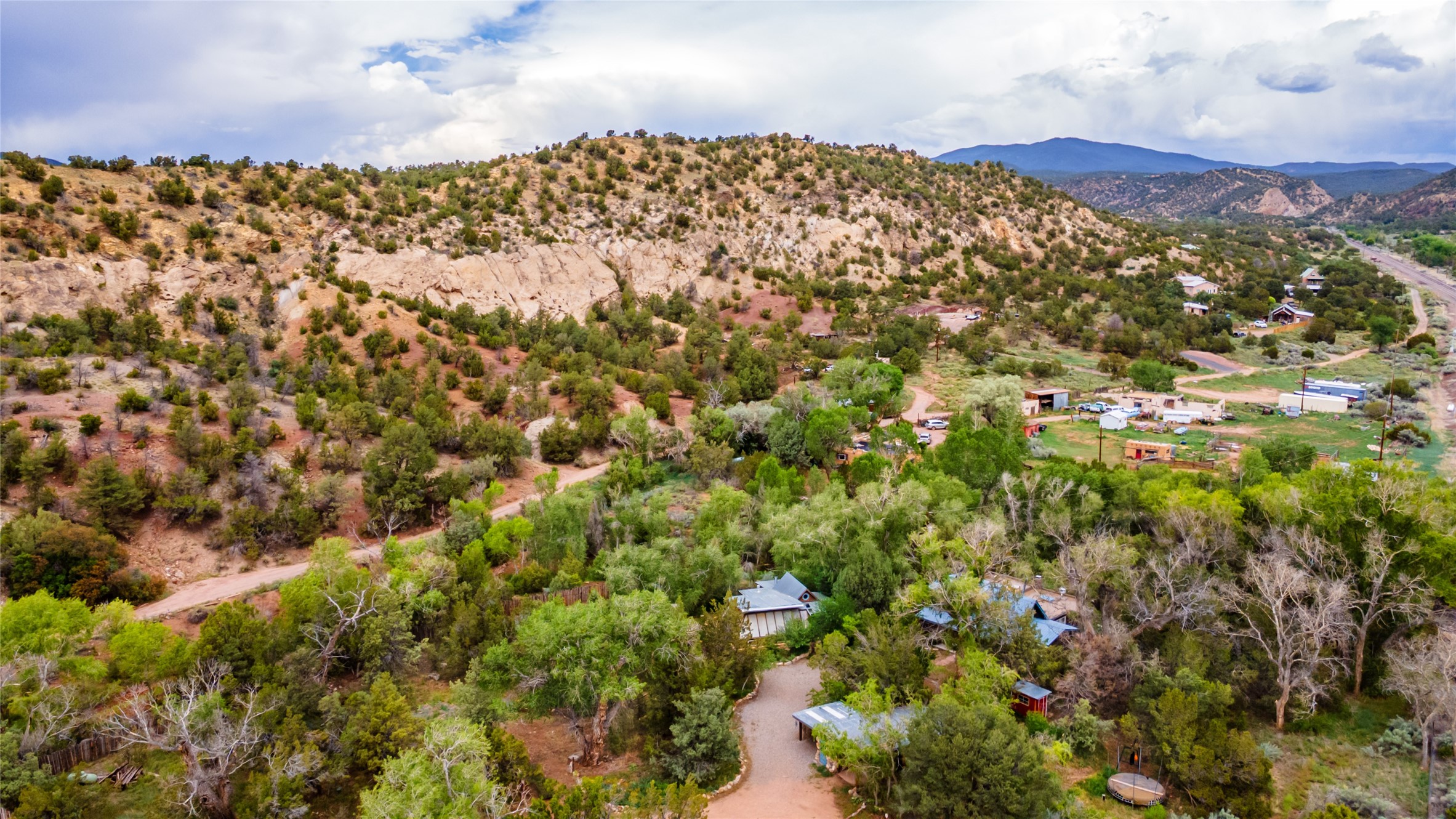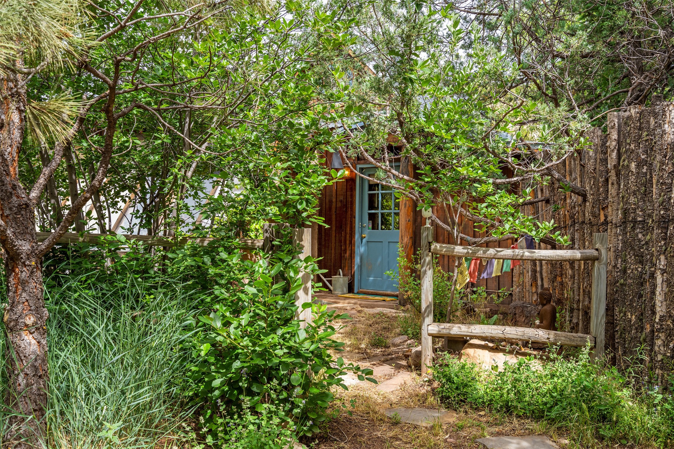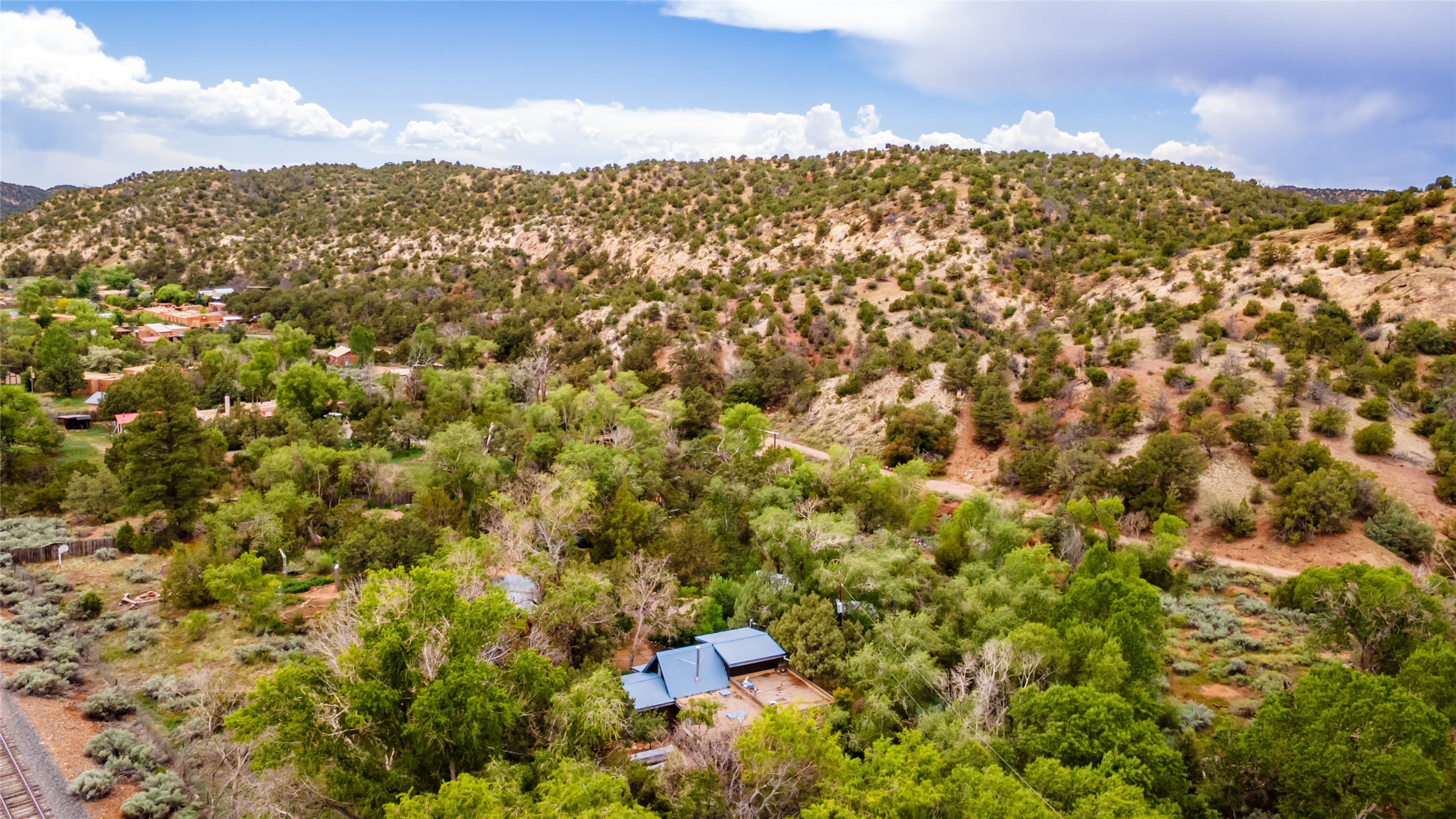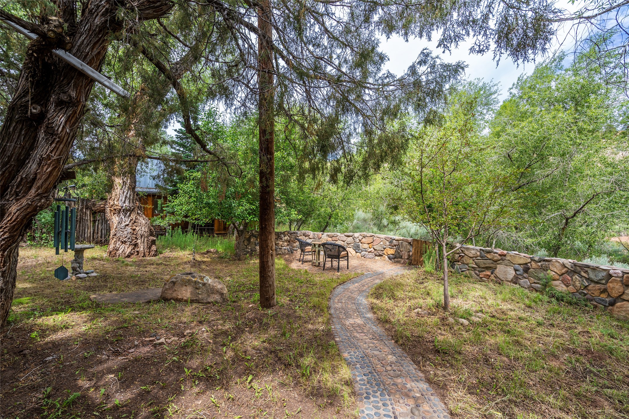 Nature-lover's paradise on 6 Acres- Tucked beneath red rock hills--Cross the bridge from Sibley Road and enter your private sanctuary nestled on six acres of lush, mature land in the serene community of Caoncito. This one-of-a-kind property features a thoughtfully updated three-bedroom, two-bathroom adobe and frame main house that blends timeless charm with modern luxury. Highlights include fully renovated luxury bathrooms and a gourmet kitchen with artisan tile, locally crafted ironwork throughout, and new sustainable wood floors. The home showcases diamond finish plaster and low-VOC finishes, ensuring both beauty and environmental consciousness. The hand-built guest house, perfect for visitors, rental income, or a creative studio, includes a cozy bedroom, bath, kitchenette, and a loft. Attached is a greenhouse for year-round gardening. Outdoors, you'll find a detached carport/shop featuring stonework sourced from the nearby Glorieta Mesa, which doubles as an open-air workspace or additional storage. A traditional underground kiva structure provides a private ceremonial space.The grounds are a horticultural haven with old-growth cottonwoods, pions, and raised garden beds. A private well adds to the property's potential for self-sufficient living. Whether you're a homesteader, gardener, artist, or seeking a peaceful retreat, this property offers the perfect setting.Set in a classic rural NM neighborhood, the house sits on three acres fenced in with coyote fencing, providing safety and privacy. An additional three acres remain wild, with a neighborhood path leading you to public hiking trails and sunset views. Located just 25 minutes from downtown Santa Fe, this tranquil retreat offers the best of both worlds: a private haven with access to the vibrant city. With its artisanal remodel and high desert landscape, this property is an extraordinary opportunity for those seeking comfort, luxury, and self-sufficient living.