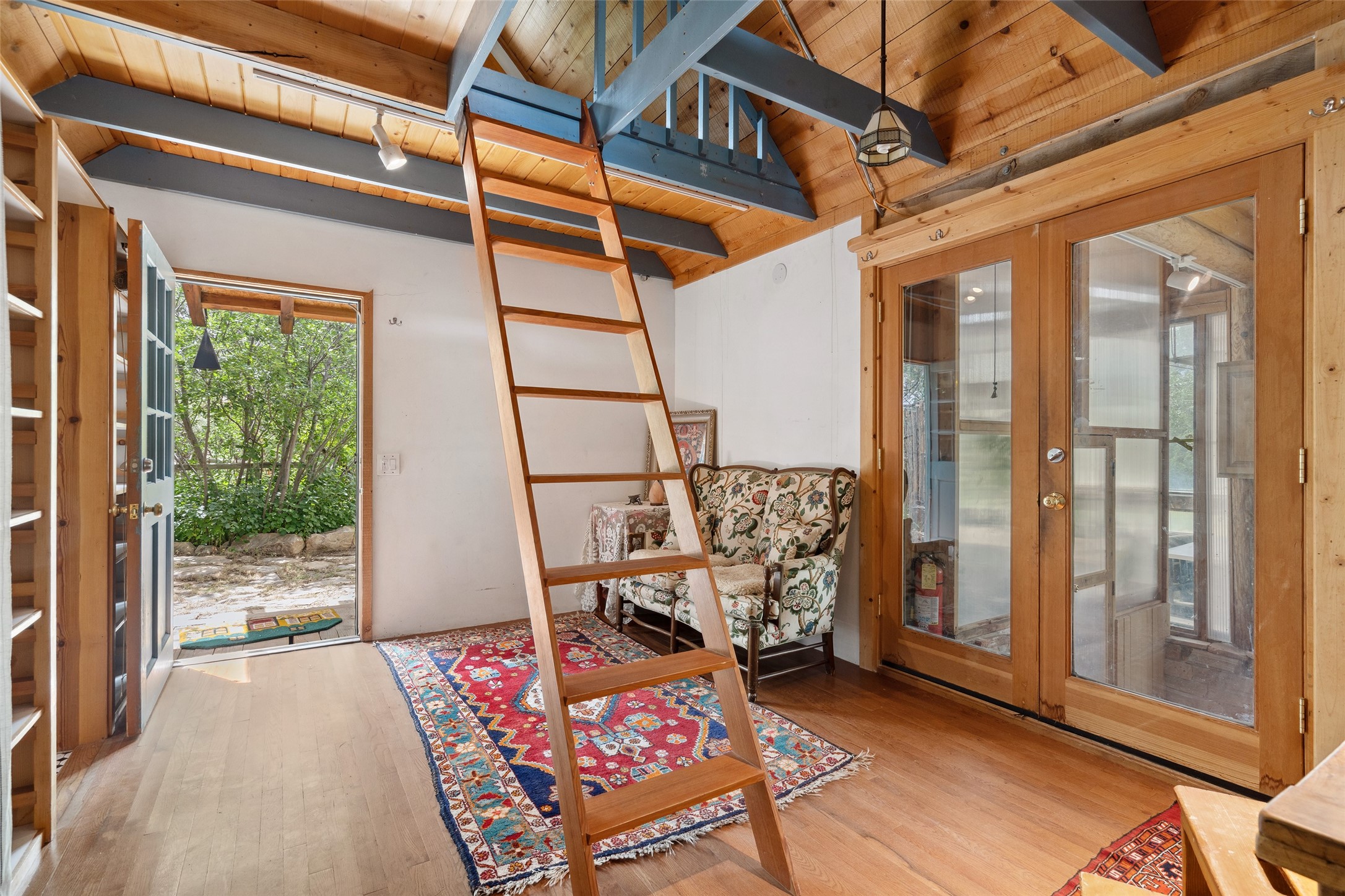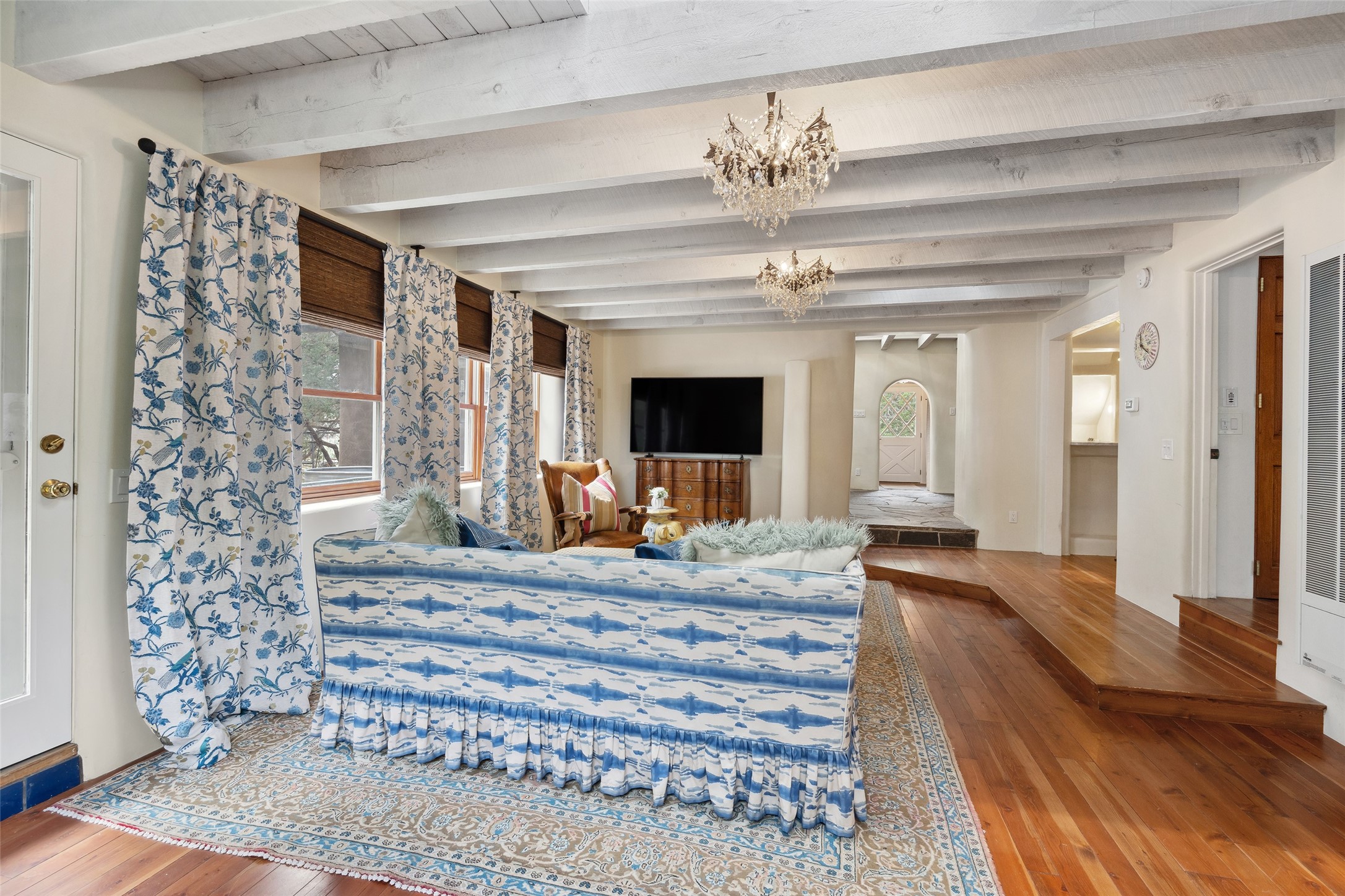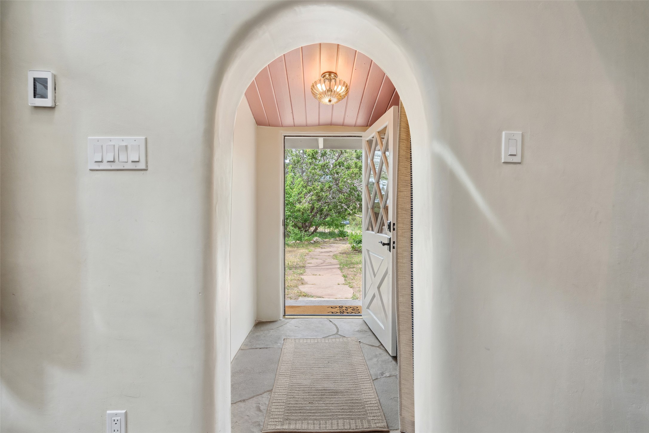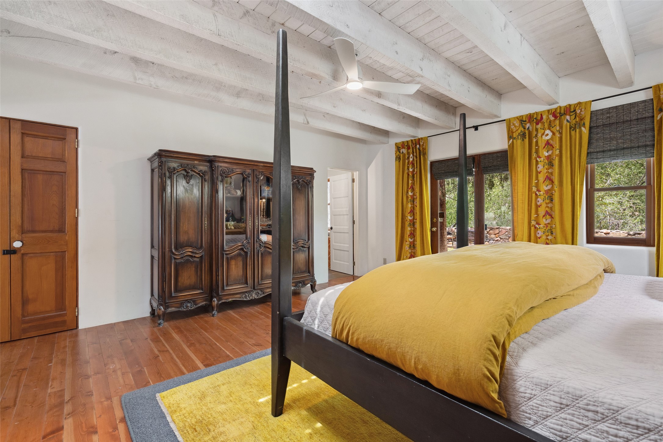 Nature-lover's paradise on 6 Acres- Tucked beneath red rock hills--Cross the bridge from Sibley Road and enter your private sanctuary nestled on six acres of lush, mature land in the serene community of Caoncito. This one-of-a-kind property features a thoughtfully updated three-bedroom, two-bathroom adobe and frame main house that blends timeless charm with modern luxury. Highlights include fully renovated luxury bathrooms and a gourmet kitchen with artisan tile, locally crafted ironwork throughout, and new sustainable wood floors. The home showcases diamond finish plaster and low-VOC finishes, ensuring both beauty and environmental consciousness. The hand-built guest house, perfect for visitors, rental income, or a creative studio, includes a cozy bedroom, bath, kitchenette, and a loft. Attached is a greenhouse for year-round gardening. Outdoors, you'll find a detached carport/shop featuring stonework sourced from the nearby Glorieta Mesa, which doubles as an open-air workspace or additional storage. A traditional underground kiva structure provides a private ceremonial space.The grounds are a horticultural haven with old-growth cottonwoods, pions, and raised garden beds. A private well adds to the property's potential for self-sufficient living. Whether you're a homesteader, gardener, artist, or seeking a peaceful retreat, this property offers the perfect setting.Set in a classic rural NM neighborhood, the house sits on three acres fenced in with coyote fencing, providing safety and privacy. An additional three acres remain wild, with a neighborhood path leading you to public hiking trails and sunset views. Located just 25 minutes from downtown Santa Fe, this tranquil retreat offers the best of both worlds: a private haven with access to the vibrant city. With its artisanal remodel and high desert landscape, this property is an extraordinary opportunity for those seeking comfort, luxury, and self-sufficient living.