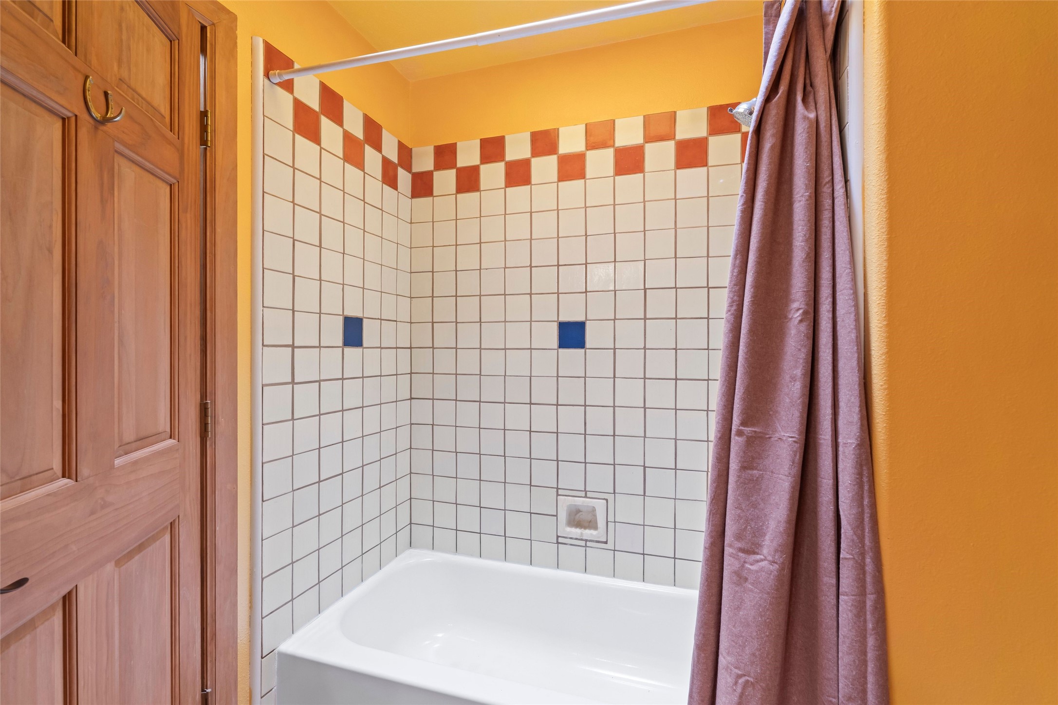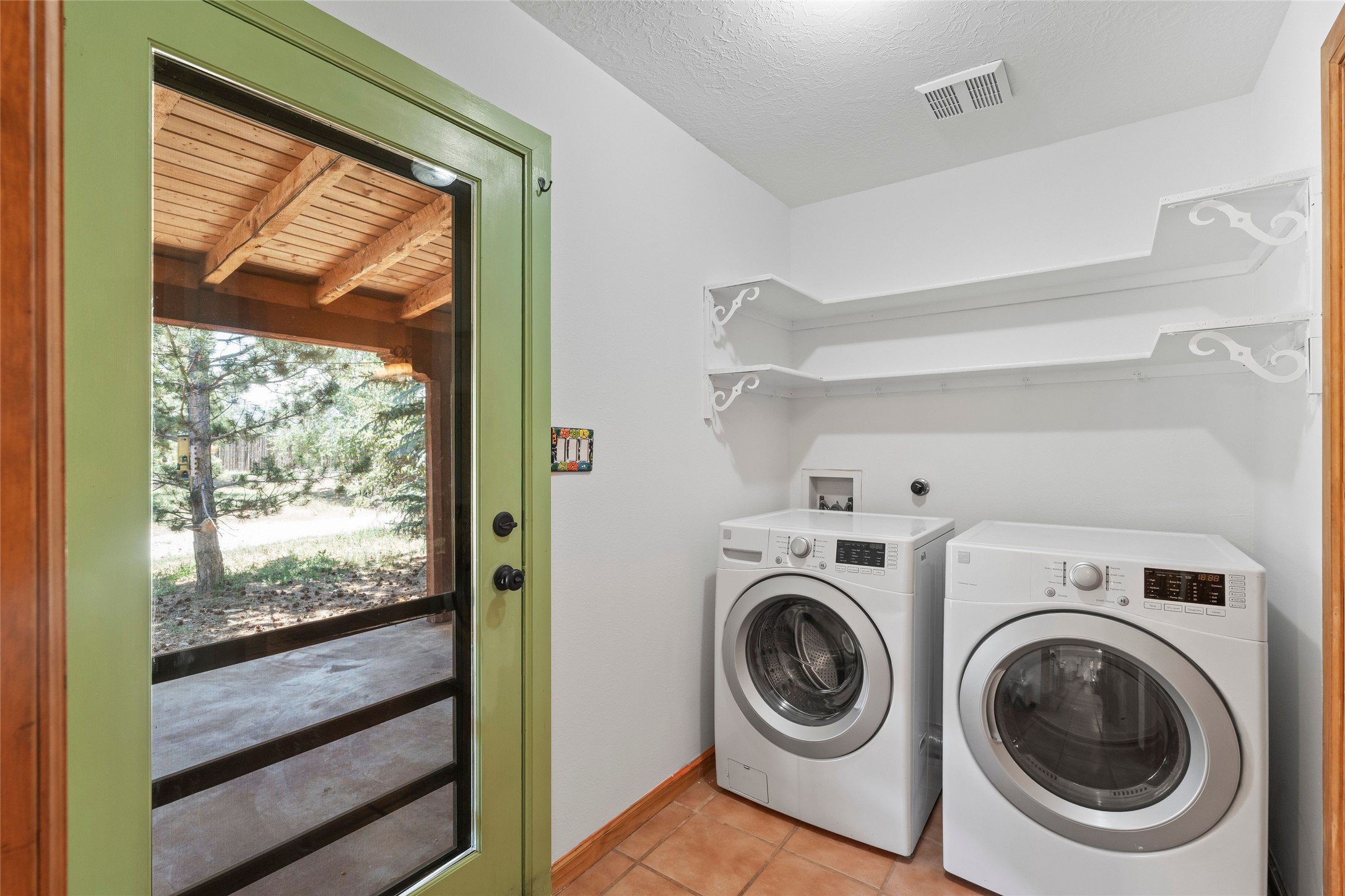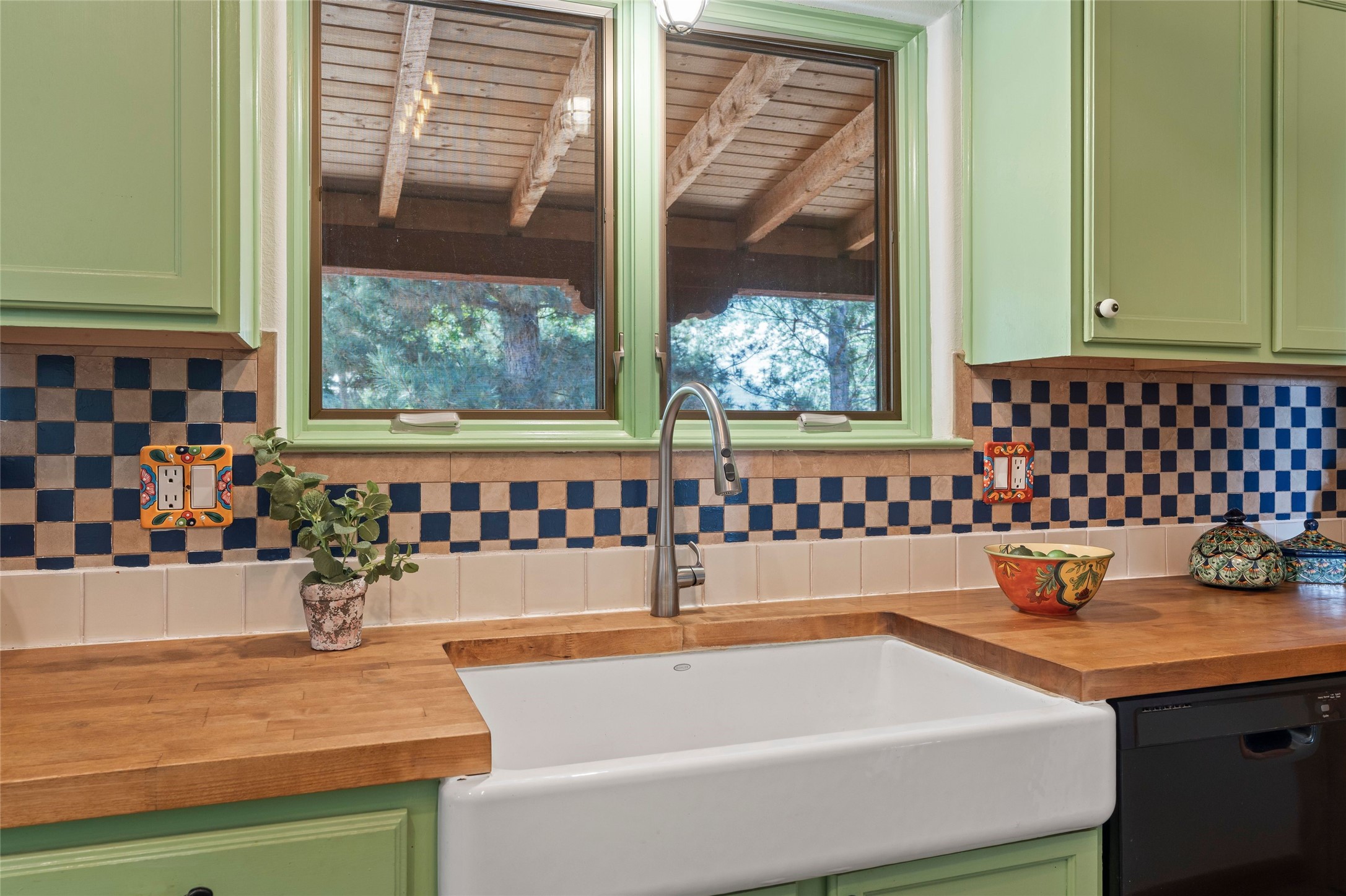 Here's the beautiful setting and property you've been looking for in Taos! An acre with great views and lots of big trees affords wonderful outdoor living, and there's a fabulous huge portal wrapping around the home. The residence is full of charm, light and bright with a very comfortable open floor plan, and the colorfully updated kitchen and bathrooms are quite appealing. The portal offers plenty of space for seating and dining, and it includes your own home spa with a new hot tub and large Finnleo sauna. The bonus is an outbuilding with a big six-car carport, plus two nice workshops, and a small storage/studio area. About three quarters of the lot is enclosed with coyote fencing and an electronically-controlled gate. The property is just a short distance to lots of hiking, biking, or horseback riding trails in the national forest. It's a convenient location close-in, yet with a lovely rural feeling, and the views of Taos Mountain and the Sangre de Cristo foothills are gorgeous!