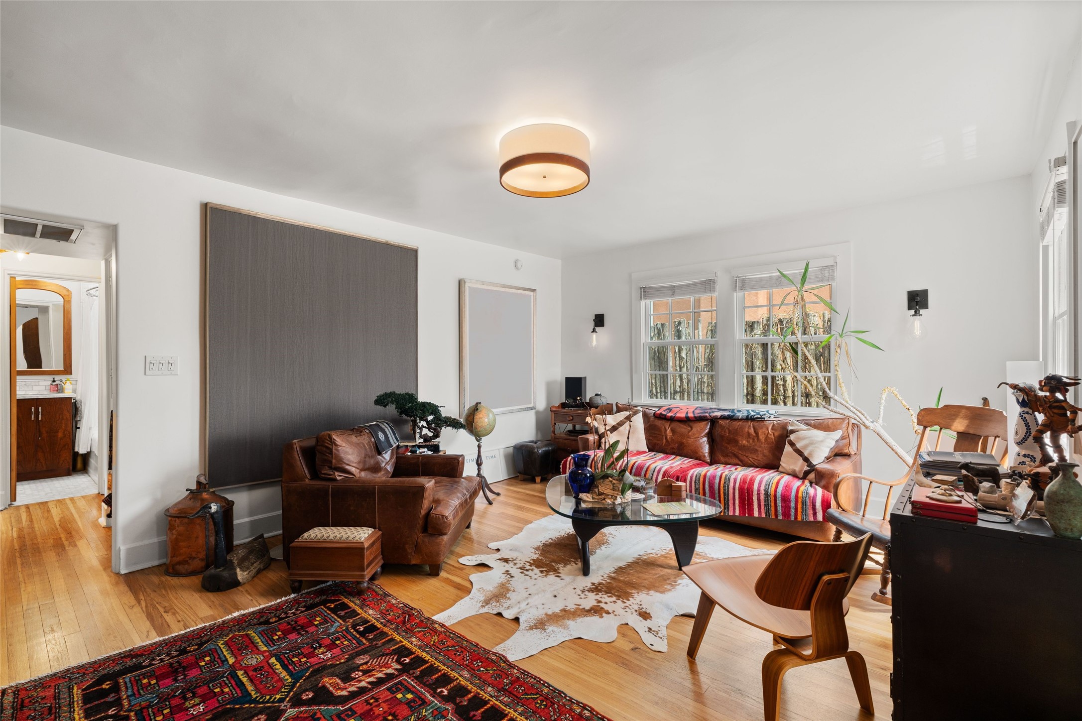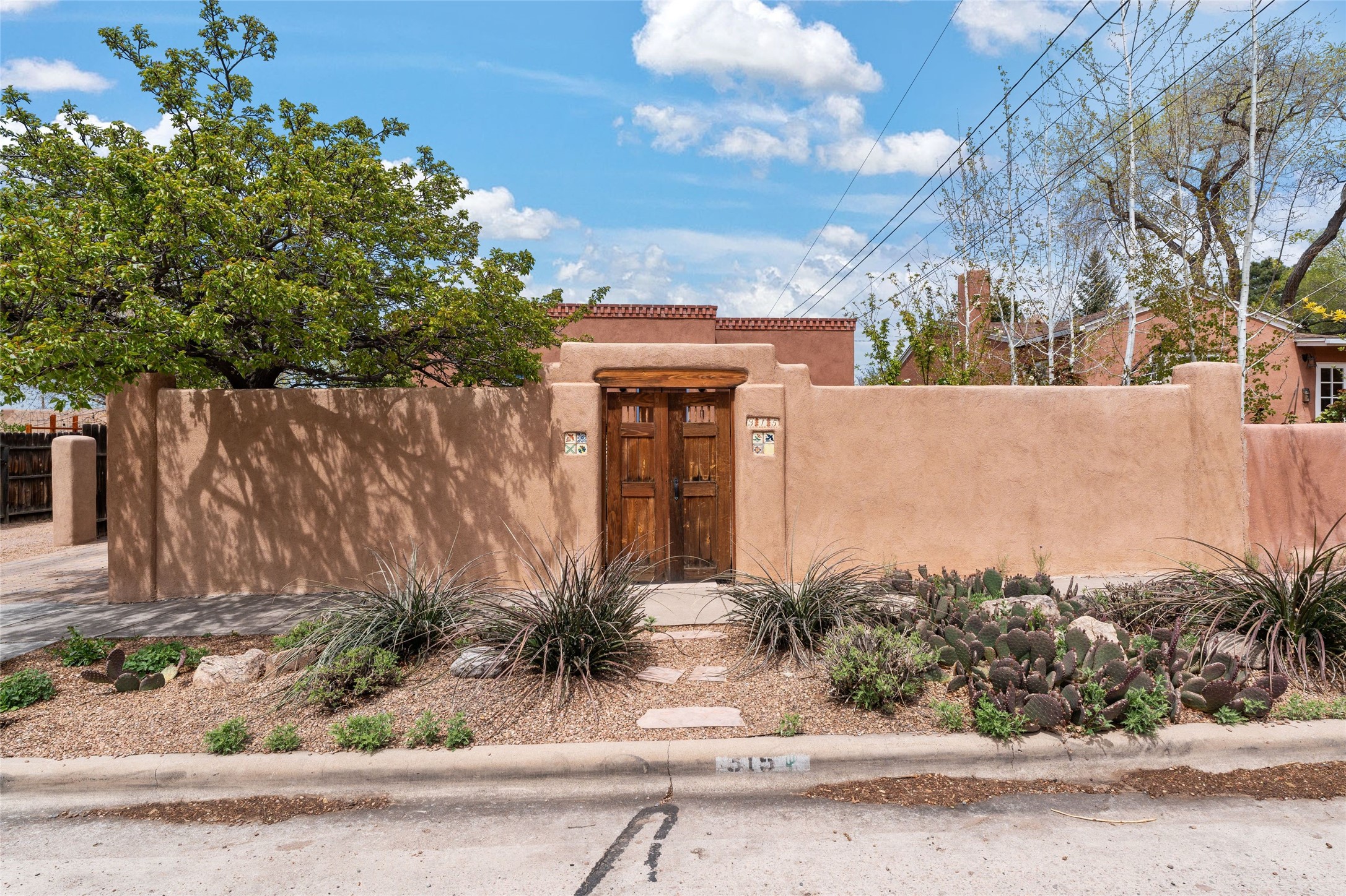 Perfect downtown pied--terre located in the heart of Santa Fe's South Capitol neighborhood. This residence combines classic architecture with modern amenities, creating an inviting atmosphere in a sought-after area. With 1,273 square feet, the main house features a thoughtfully designed layout that includes two spacious bedrooms and two bathrooms. The separate dining room offers an ideal space for gatherings, while the primary suite is a true highlight, complete with its own fireplace and French doors that open to a picturesque courtyard. Culinary enthusiasts will appreciate the well-appointed kitchen, which features a Wolf range and a built-in refrigerator. The charm extends beyond the main house with a detached guesthouse, offering 390 square feet of additional living space. This cozy retreat includes a kitchenette and a full bath, perfect for hosting visitors or enjoying personal time. Outside, the private courtyard showcases lush landscaping, featuring fruit trees that invites relaxation. It serves as a serene escape, ideal for unwinding amidst nature's beauty. An extra bonus is a basement with a washer/dryer and additional storage space. Off street parking for one car. Conveniently positioned in Santa Fe's Historic District, this property is just a stone's throw away from notable attractions, including the Roundhouse, Whole Foods, the Railyard, the Farmers Market, and the lively Santa Fe Plaza.