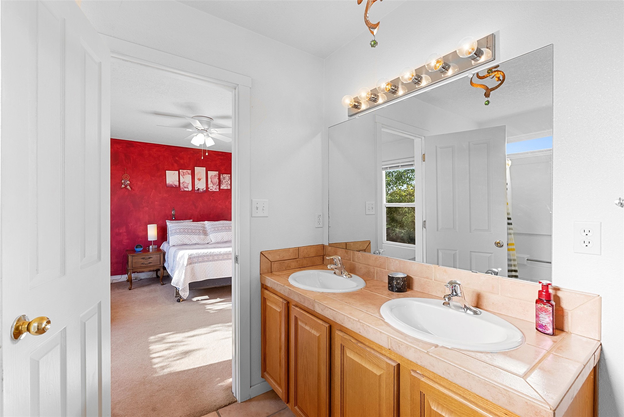 Affordable Santa Fe living with flexible space! This charming home offers 4 bedrooms and 2 full baths, with one bedroom currently being used as an office--ideal for remote work or creative pursuits. Bright and welcoming, the interior is filled with natural light. The living room features a cozy gas fireplace, and the spacious eat-in kitchen includes a large pantry/laundry room, offering excellent flow for both everyday living and entertaining. The primary suite boasts a walk-in closet and double sinks, while the other bedrooms offer generous closets and share a full bath with dual sinks. Step outside to a beautifully landscaped, walled backyard with Southwest-style touches, synthetic lawn, roses, Russian sage, and no immediate neighbor behind--perfect for peaceful mornings or evening gatherings under the New Mexico sky. Located in the desirable Tierra Contenta neighborhood, with easy access to parks, trails, schools, libraries, and Veterans Memorial Highway, this home is a fantastic opportunity to own in Santa Fe at an accessible price!