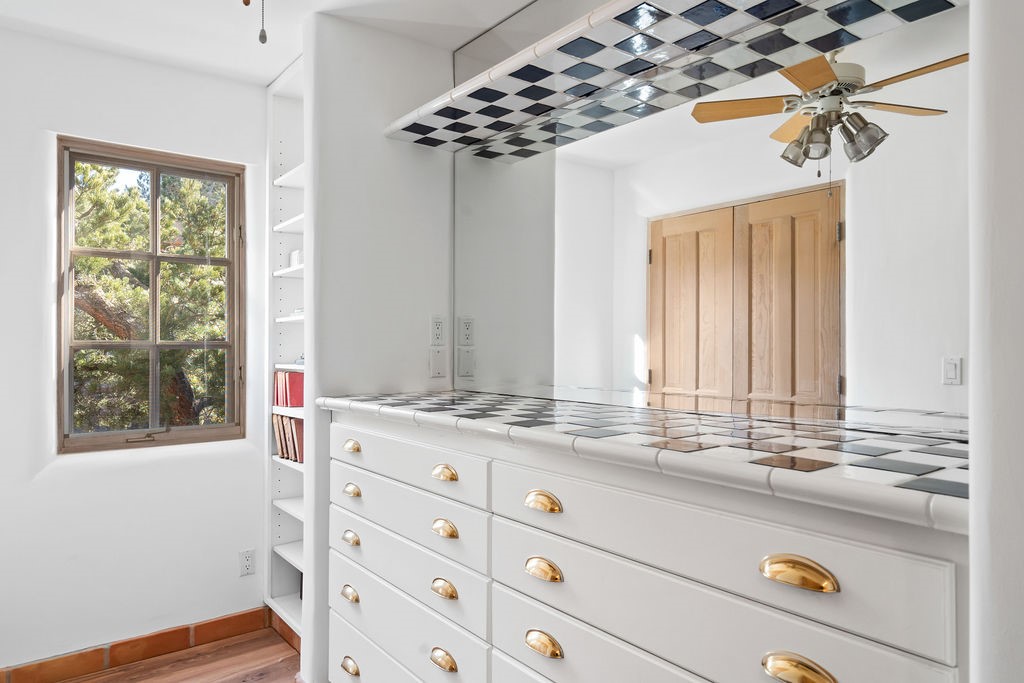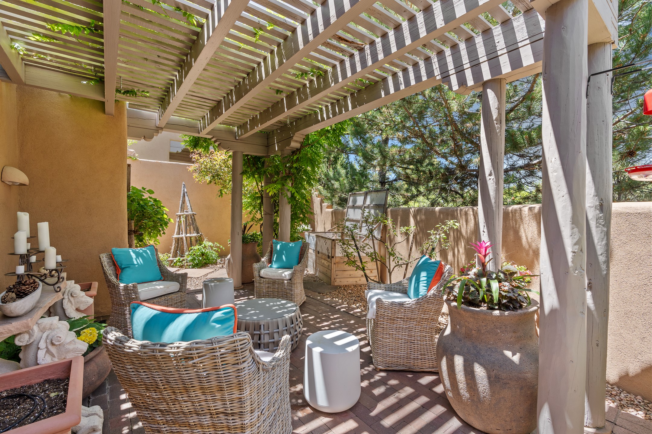 Cradled in one of Quail Run's most desirable locations, this exceptional residence offers the sought-after Pinon C floor plan with a distinctive European flair. Featuring two bedrooms, an office, and stunning decorative details, this home exudes timeless elegance reminiscent of Parisian style. Beautifully designed tilework and thoughtfully curated architectural build-outs create a warm and inviting ambiance. The home boasts enchanting outdoor spaces, including a serene front courtyard and a lush backyard oasis adorned with mature aspenTrees. Experience the perfect blend of sophistication and comfort in this truly unique property.