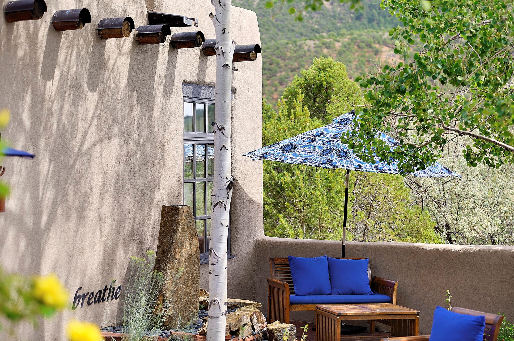 Nestled in the foothills of the Sangre de Cristos Mountains, this property offers a rareblend of serenity and convenience-just minutes from Santa Fe's historic Plaza. Set on over an acre ofbeautifully treed land, the walled courtyard welcomes you to the entry of this light filled 3 bedroom3 bath (2384 sq ft)home full of unique architectural details. The 1 bedroom 1 bath (768 sq ft) guest house is equipped with a full kitchen and mini split offering year round comfort. This property presents a rare chance to own close to town as well as many hiking/biking trails that are right out your front door. Its perfect for the active lifestyle.