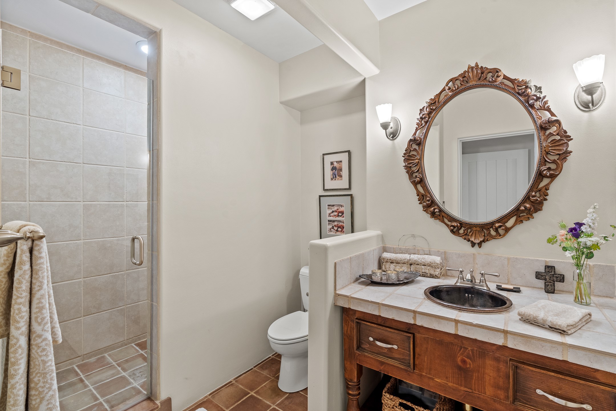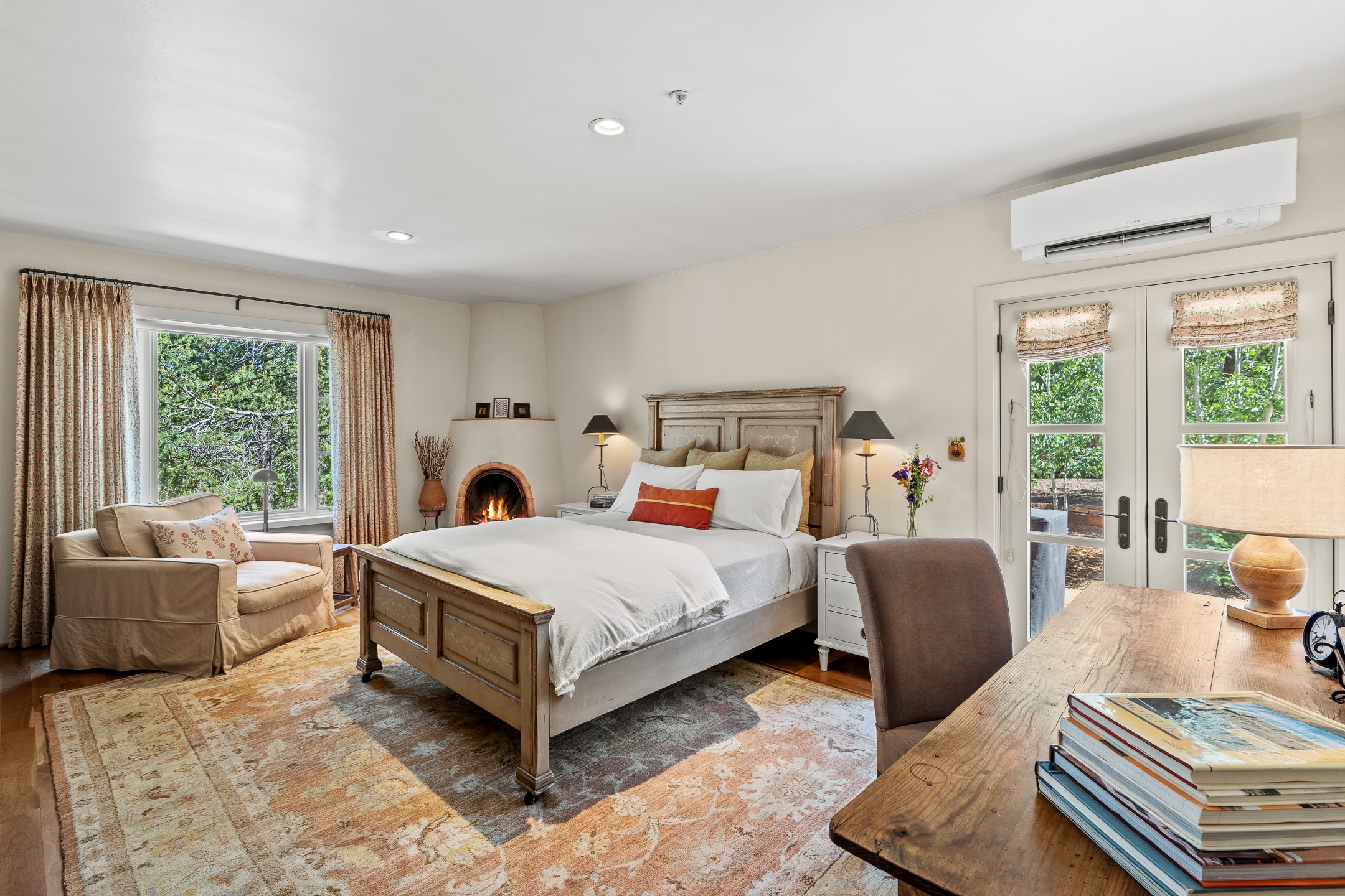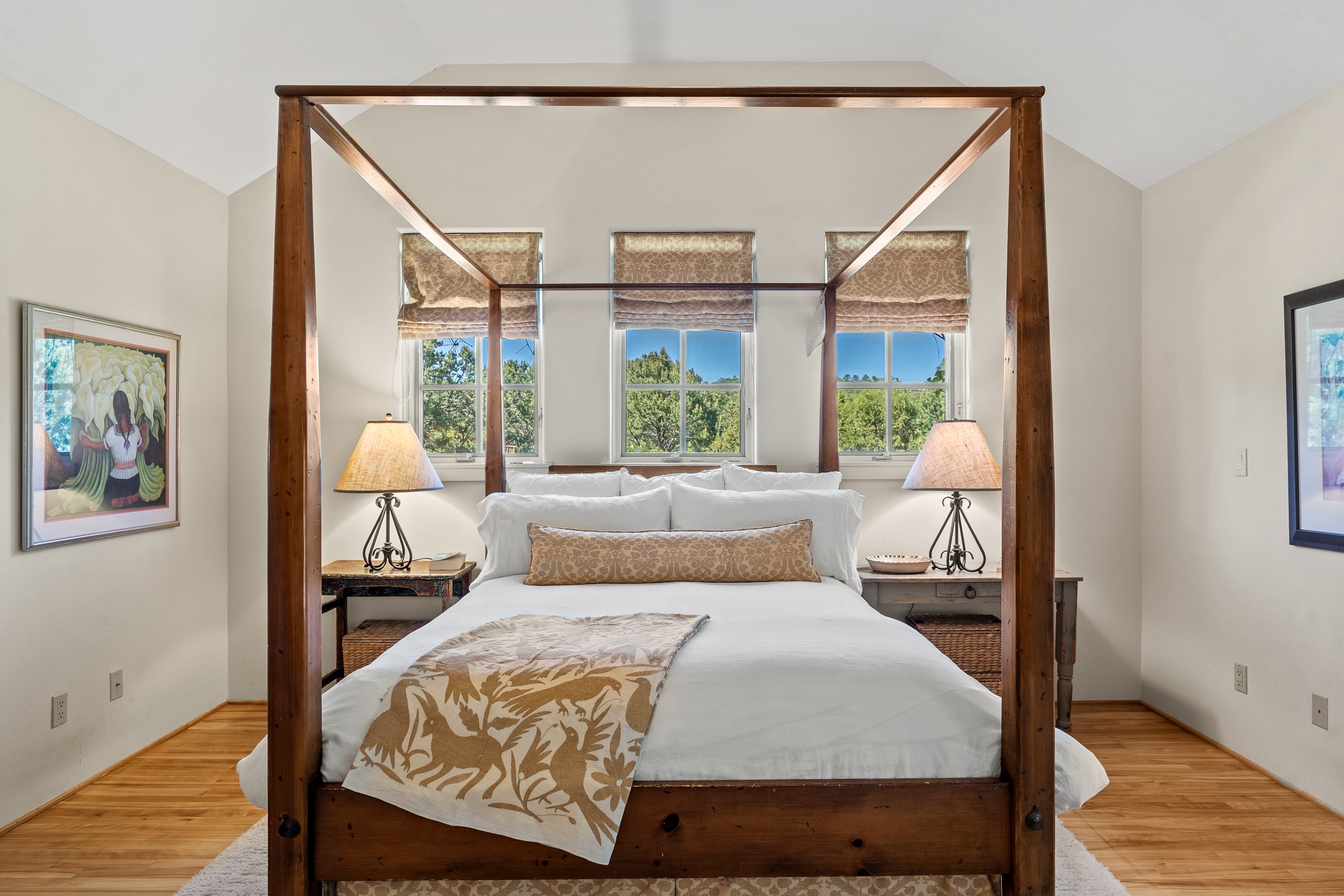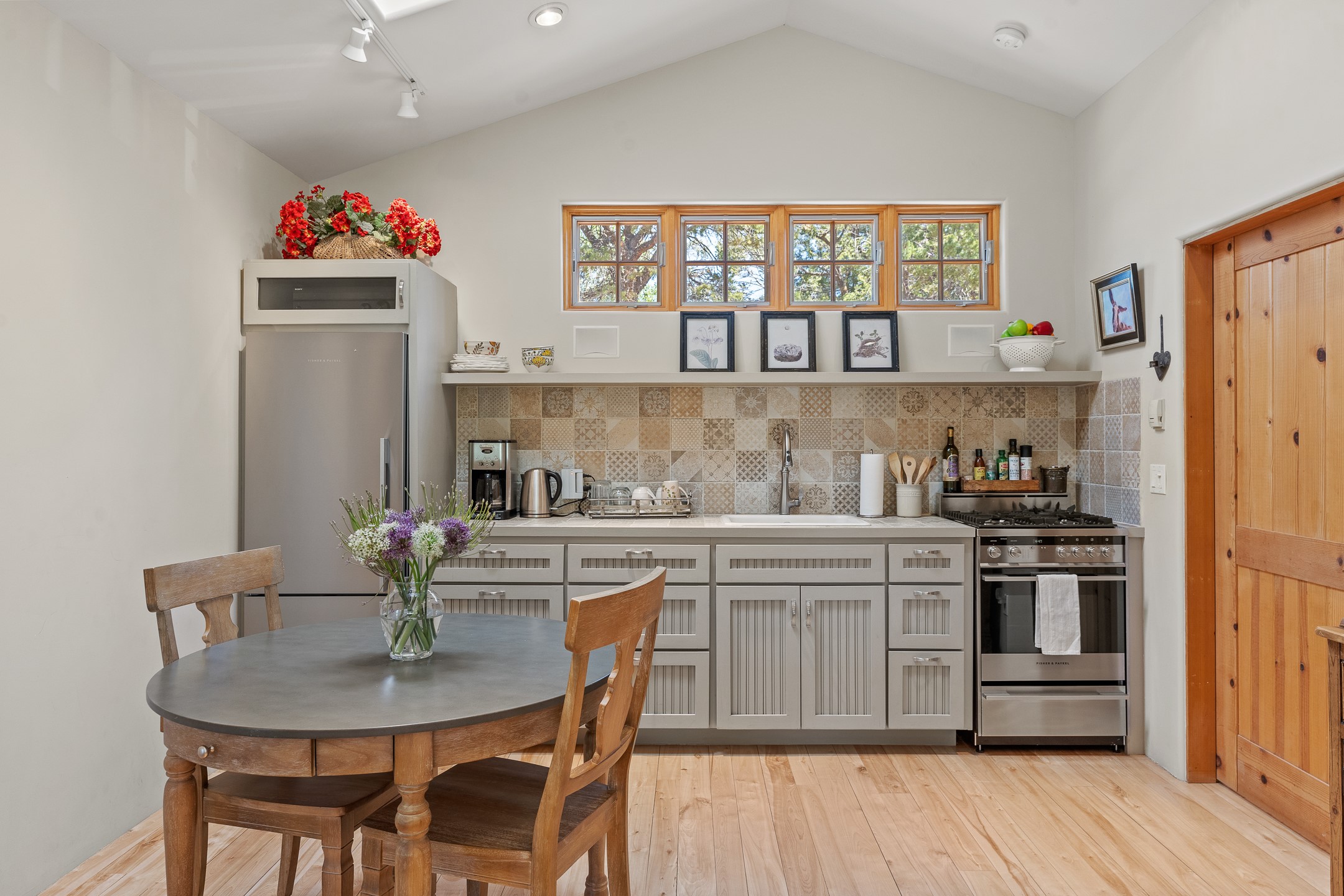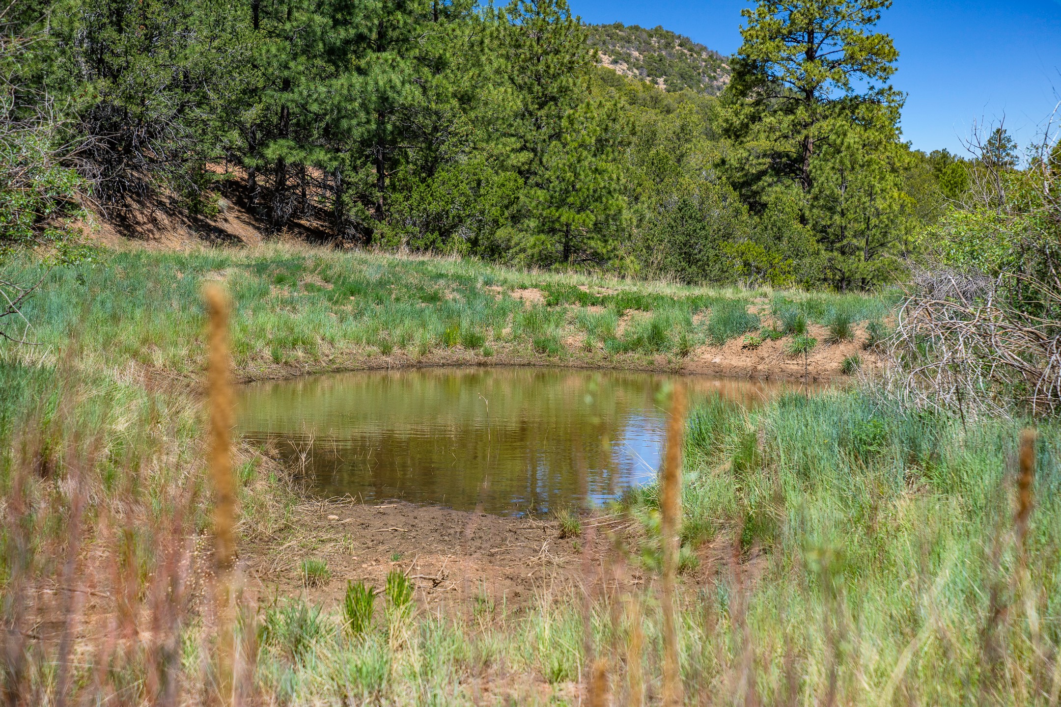 Just 15 minutes from the Santa Fe Plaza, this hidden gem is nestled on 5 acres in a lush, private valley bordering the Santa Fe National Forest. Surrounded by towering aspens, mature ponderosa pines, pions, fruit trees, and established gardens, the property offers rare seclusion, natural beauty, and immediate access to the outdoors. The 2,150 sq ft main residence features a pitched Northern New Mexico roof, radiant heat, mini splits, and a beautifully renovated kitchen with Wolf appliances. Hand-carved granite walls and flagstone patios add timeless character. A detached 625 sq ft one-bedroom guesthouse--fully licensed as a short-term rental--offers privacy for visitors or turn-key income potential. The Dale Ball Trail system--Santa Fe's most beloved network of hiking and biking trails--runs directly through the property, offering unmatched access to miles of scenic exploration right from your door. A large reclaimed seasonal pond adds to the magic of this serene landscape, with endless stargazing by night and wildlife by day. Additional highlights include a 2-car garage (1 bay heated), natural gas utilities, large cistern, and 18-station irrigation system powered by a shared well with 1.5 acre feet of water. The property is part of a small, well-run HOA with low dues and a friendly community. Gated access via Double Arrow ensures privacy and peace of mind. 53 Hidden Valley is a rare opportunity to live immersed in nature--with starry skies above, trails beneath your feet, and Santa Fe's rich culture just minutes away.