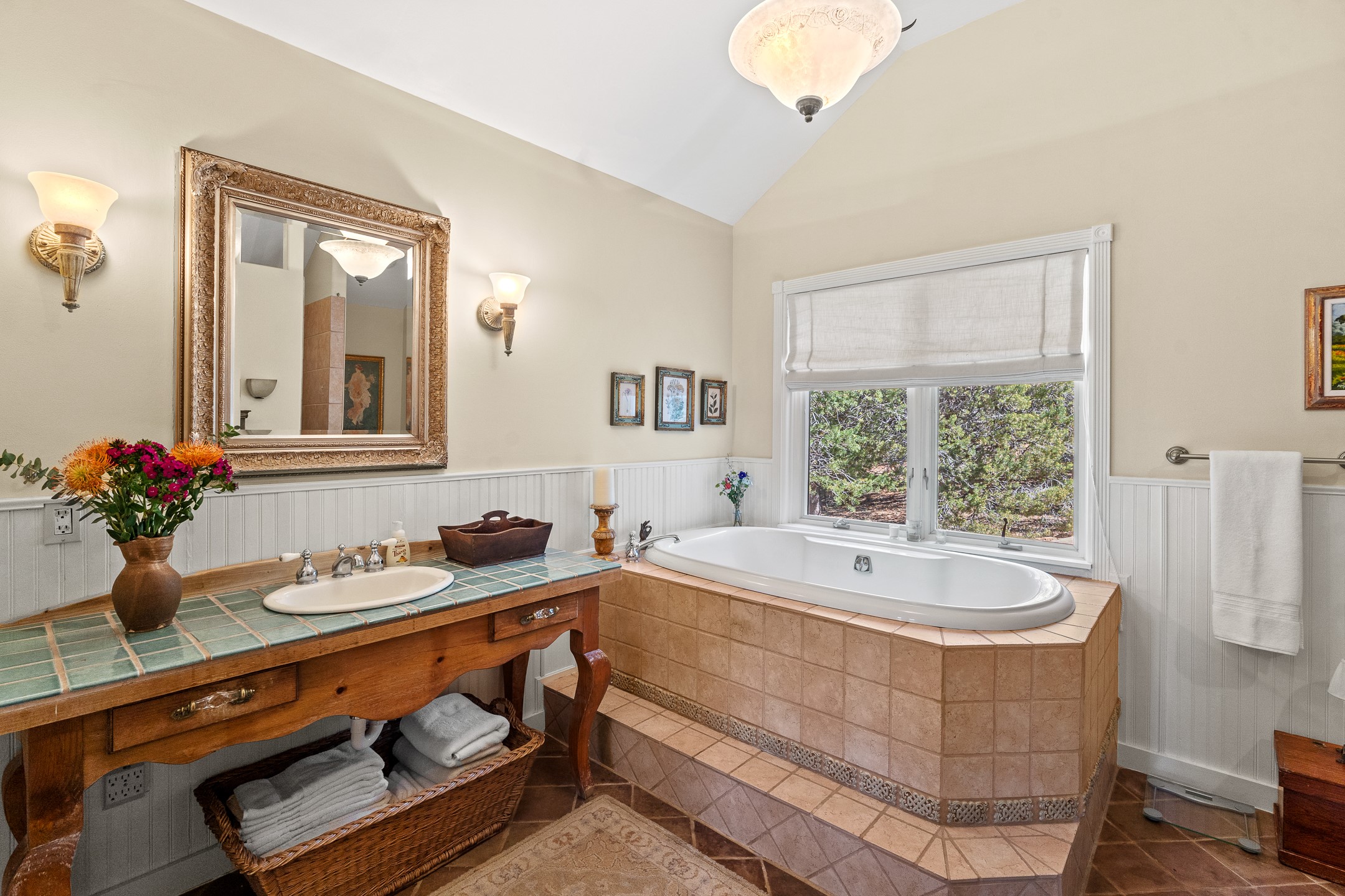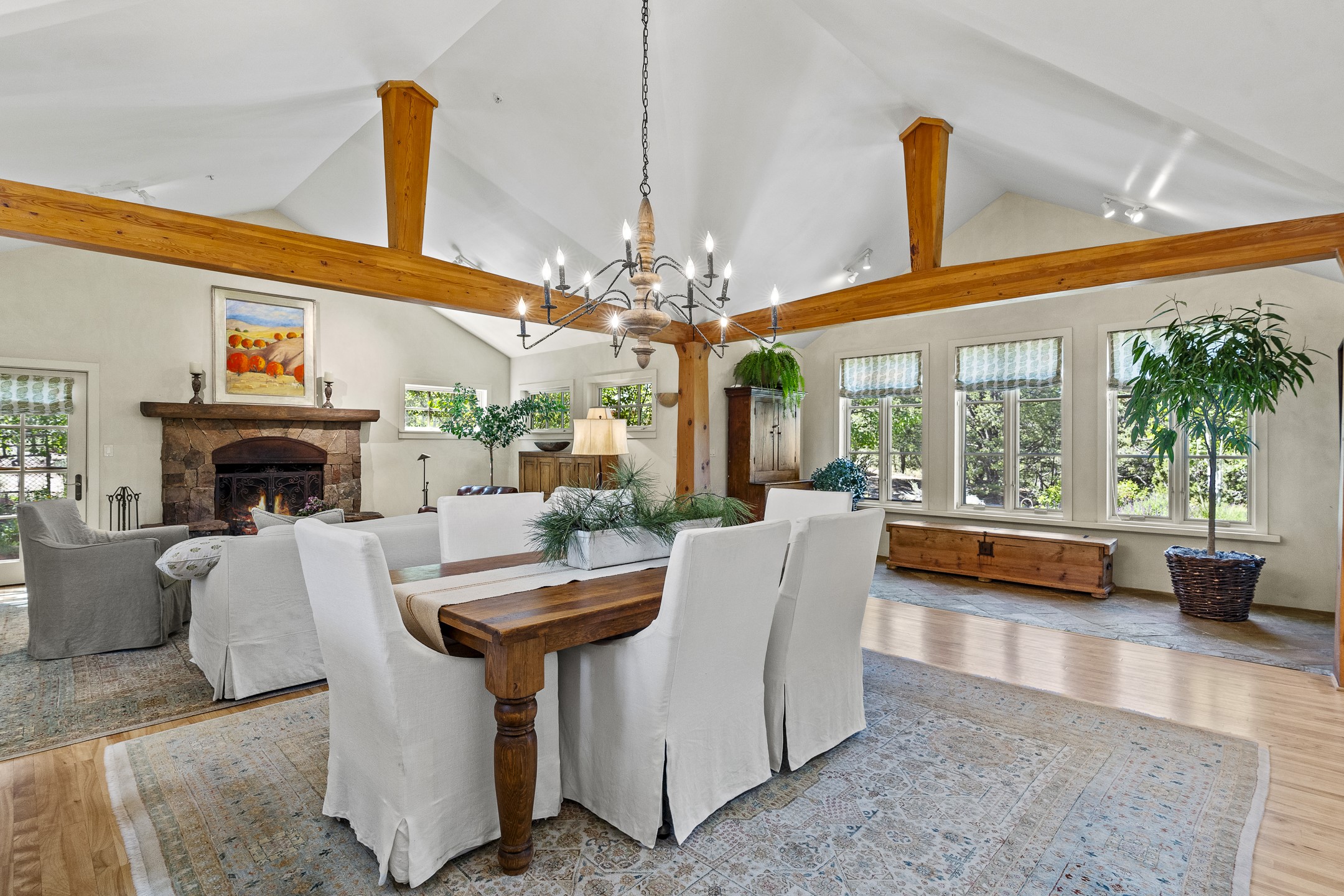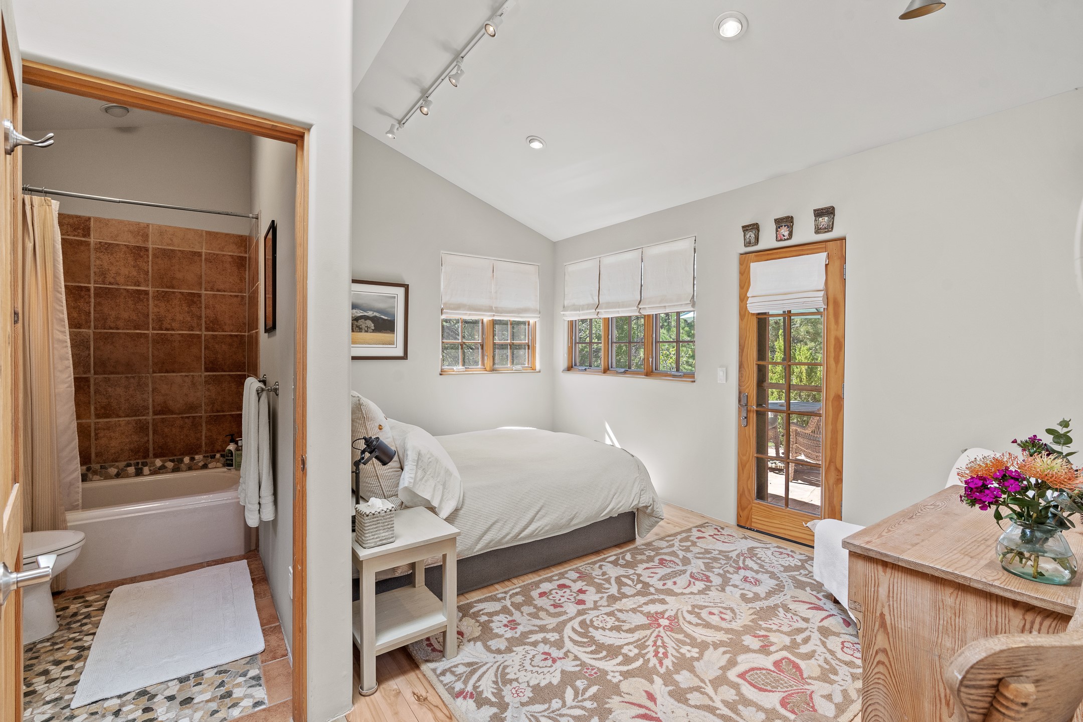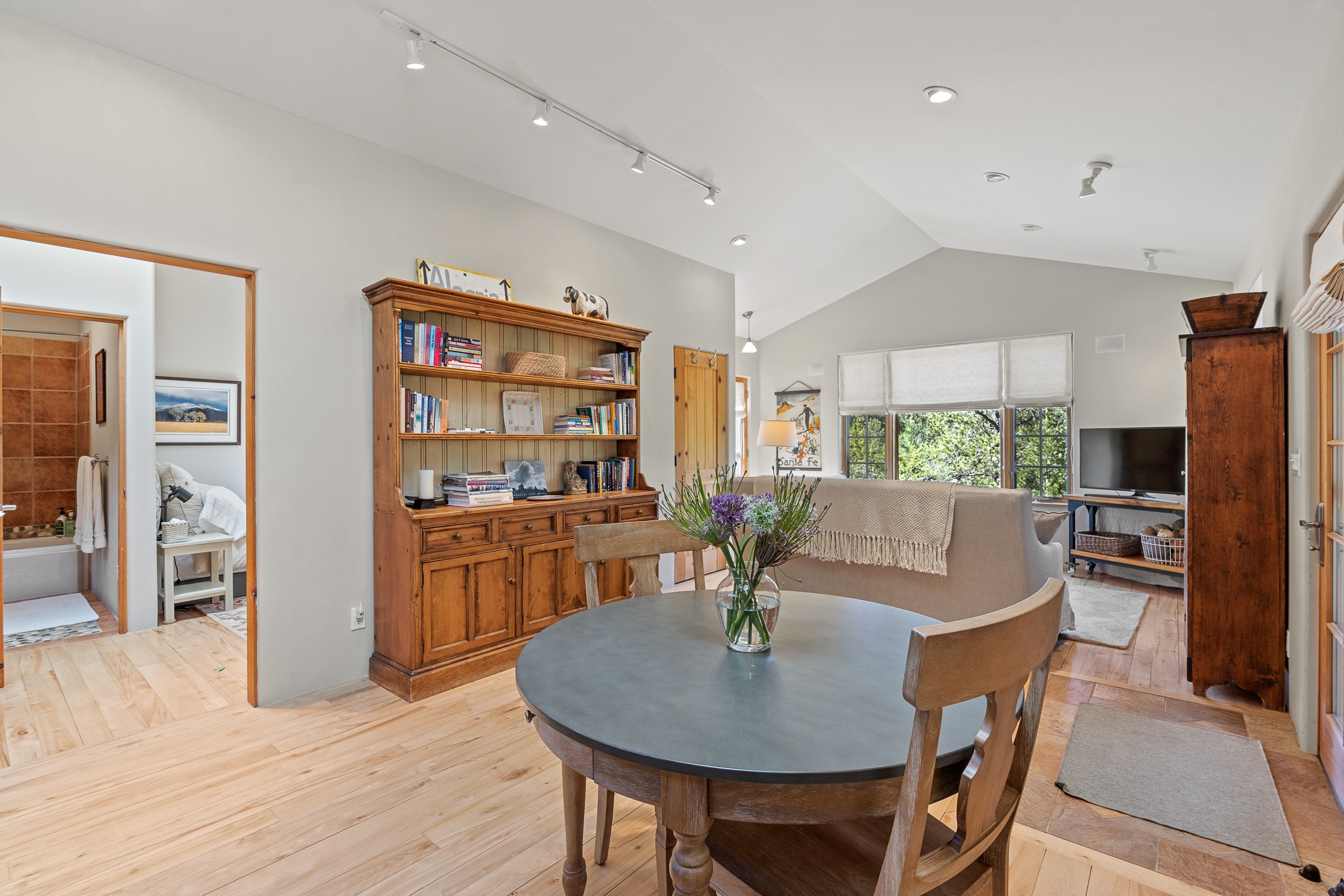 Just 15 minutes from the Santa Fe Plaza, this hidden gem is nestled on 5 acres in a lush, private valley bordering the Santa Fe National Forest. Surrounded by towering aspens, mature ponderosa pines, pions, fruit trees, and established gardens, the property offers rare seclusion, natural beauty, and immediate access to the outdoors. The 2,150 sq ft main residence features a pitched Northern New Mexico roof, radiant heat, mini splits, and a beautifully renovated kitchen with Wolf appliances. Hand-carved granite walls and flagstone patios add timeless character. A detached 625 sq ft one-bedroom guesthouse--fully licensed as a short-term rental--offers privacy for visitors or turn-key income potential. The Dale Ball Trail system--Santa Fe's most beloved network of hiking and biking trails--runs directly through the property, offering unmatched access to miles of scenic exploration right from your door. A large reclaimed seasonal pond adds to the magic of this serene landscape, with endless stargazing by night and wildlife by day. Additional highlights include a 2-car garage (1 bay heated), natural gas utilities, large cistern, and 18-station irrigation system powered by a shared well with 1.5 acre feet of water. The property is part of a small, well-run HOA with low dues and a friendly community. Gated access via Double Arrow ensures privacy and peace of mind. 53 Hidden Valley is a rare opportunity to live immersed in nature--with starry skies above, trails beneath your feet, and Santa Fe's rich culture just minutes away.
