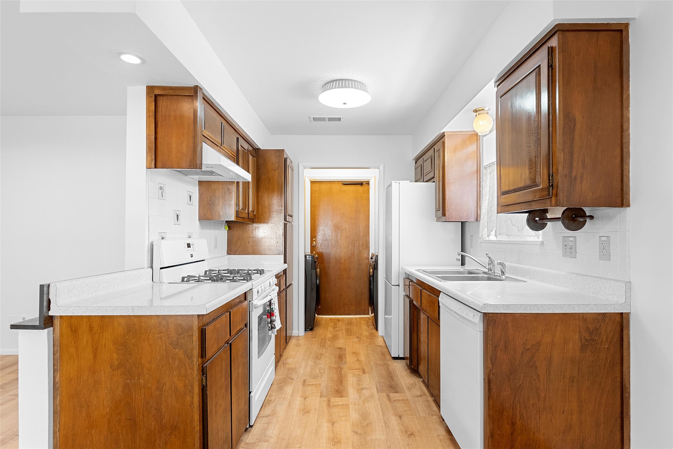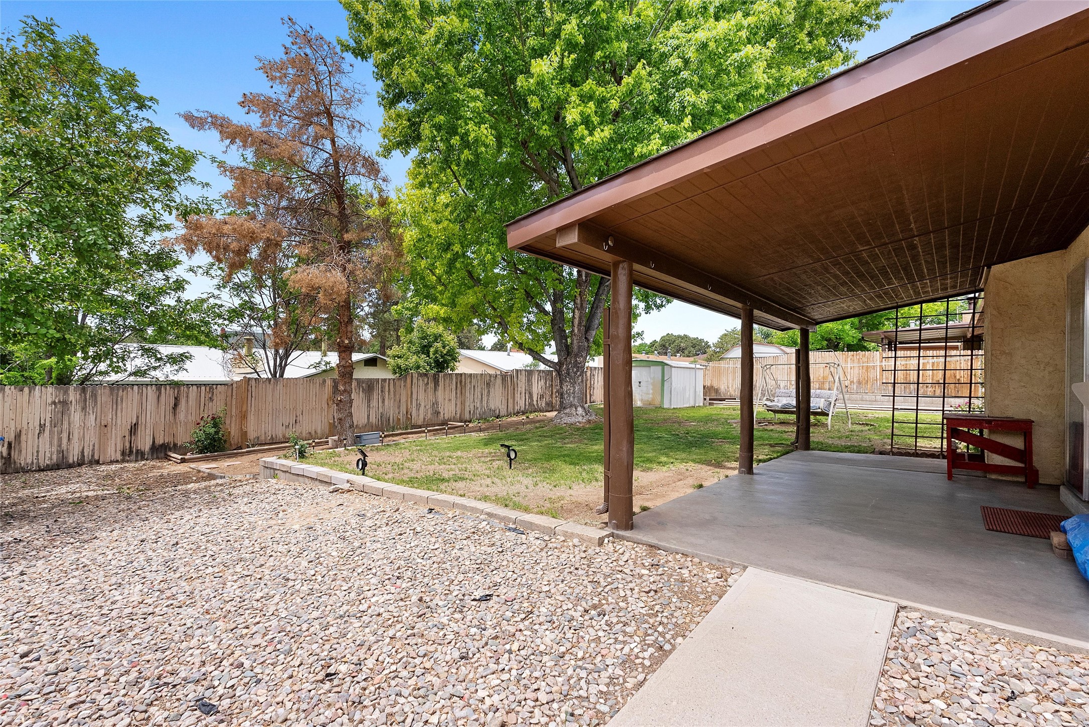 Beautifully 4-Bedroom Home with Dual Living Areas & Backyard RetreatWelcome to this warm, inviting, and move-in-ready gem--packed with modern comforts, clever upgrades, and thoughtful touches throughout. This spacious home offers a flexible floor plan with two generous living areas, a dedicated dining space, and four well-sized bedrooms, including one with a brand-new, never-used Queen-size oak Murphy bed--perfect for hosting guests or creating a dual-purpose office space.You'll fall in love with the plank vinyl flooring that gives the rich look of wood without the maintenance, fresh interior paint, updated bathroom flooring, and contemporary light fixtures that elevate every room.The kitchen and laundry areas shine with upgrades, including a brand-new Hisense 17.2 cu. ft. top fridge/bottom freezer, and a GE Ultra Fresh Smart front-load washer and electric dryer with steam cycle. A wall-mounted 46" Philips flat-screen TV makes the living room ready for movie nights from day one.In the bathrooms, enjoy a large walk-in shower in the primary suite and modern glass sliding tub doors in the guest bath--all designed with comfort and style in mind.Step outside to your private backyard oasis: mature shade trees, a covered patio made for entertaining, and a garden shed for your tools and hobbies. The two-car garage adds bonus storage and functionality, while the new shingled roof with an extra layer of insulation boosts energy efficiency year-round. And yes, central A/C keeps it cool and breezy all summer long!This meticulously cared-for home blends space, modern style, and practical upgrades--making it a true standout. Come see it before it's gone!