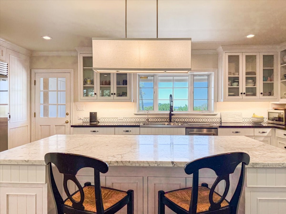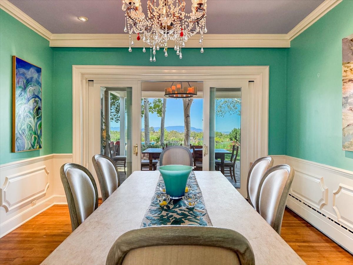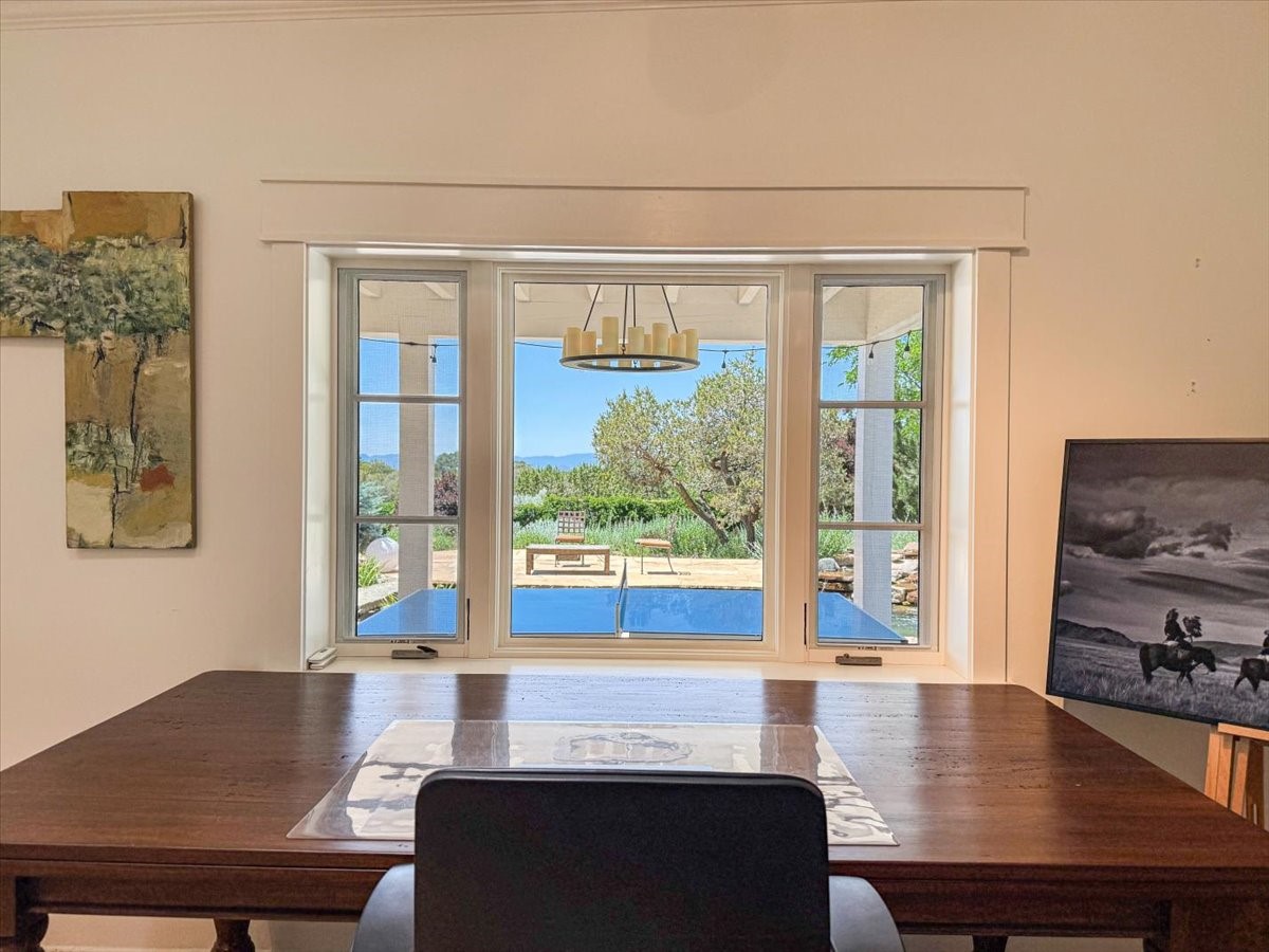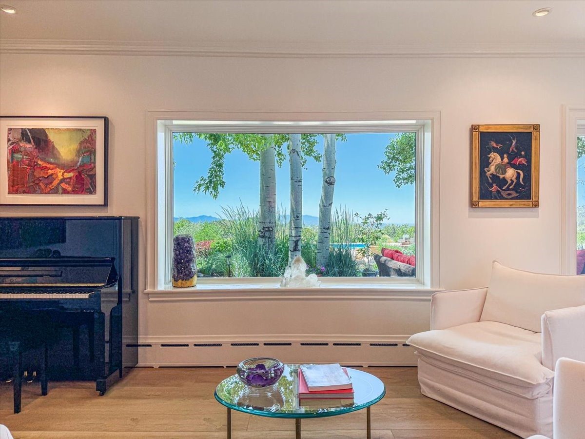 Elegant Territorial Estate in Santa Fe's Historic East Side. A rare territorial-style gem on Santa Fe's historic East Side/Museum Hill district. Situated on a tranquil 3.1-acre estate lot with a distinctly resort feel, this single-level home is gated and completely fenced for maximal privacy and security. This extraordinary estate offers gracious natural beauty and refined living. The home is walking distance to Canyon Road, the Plaza, and mere blocks to the Wheelwright Museum of the American Indian, the Santa Fe Botanical Garden, the Museum of International Folk Art, the Museum of Indian Arts & Culture, and the Nuevo Mexicano Heritage Arts Museum. This beautiful home provides easy access to shops, restaurants, and all that Santa Fe has to offer. It is also near numerous local hiking trails and offers close proximity to Santa Fe Preparatory School (Santa Fe Prep), two elementary schools, and St. John's College. The property boasts lush gardens, specimen trees, including aspens, throughout the property and magnificent panoramic views of sunsets over the Sangre de Cristo Mountains, the Galisteo Basin, the Ortiz and Manzano Mountains. Rare for Santa Fe, the property has a recently added 35-foot-long swimming pool and spa set into artisan-crafted sandstone. Among other water features on the property is a beautiful 3000-gallon koi pond with a fountain. These are fed by both city utilities and a private irrigation well (50+ gallons/minute), which also feeds a sprinkler system throughout the property. The house has a large family room/home theater with surround sound, an attached casita/dwelling unit, and an oversized two-car garage with an attached workshop/artist's studio. The gourmet kitchen features a large marble-topped center island, a large Sub-Zero refrigerator, and a six-burner, two-oven Wolf range.This elegant yet family-friendly home has hardwood floors and crown moldings throughout as well as many skylights.