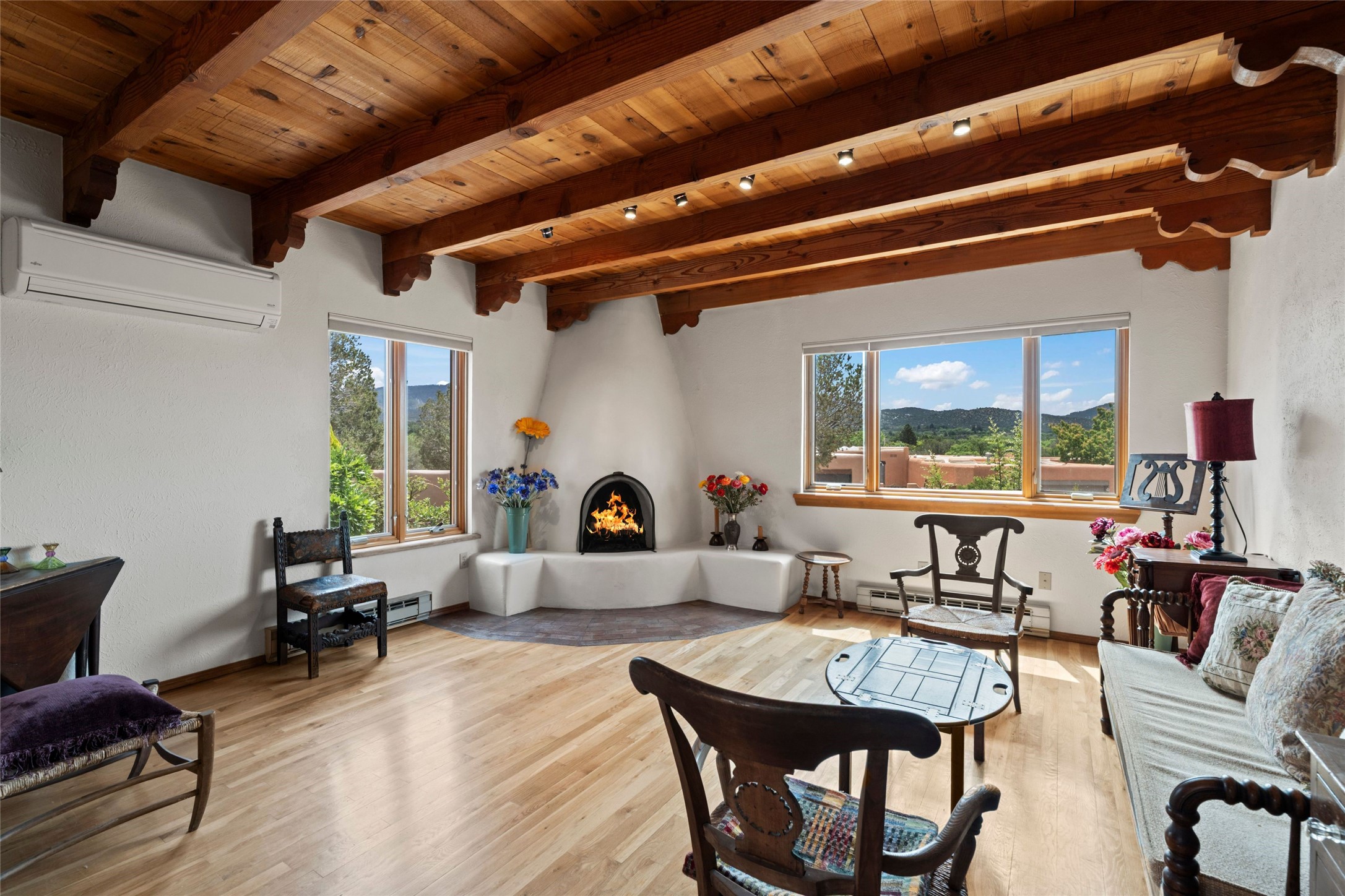 Nestled in a serene enclave with views of Sun and Moon Mountain, this charming 2-bedroom, 2-bath townhouse radiates timeless charm with wood floors, rustic ceiling beams, and authentic Southwestern character throughout.Located in the heart of Santa Fe in the Wood-Gormley School district, you're minutes from the historic Plaza, Museum Hill, and neighborhood cafes. The attached two-car garage provides convenient parking and storage, while mini-splits ensure year-round comfort.Complete with two wood-burning Kiva fireplaces and an attached 2-car garage offering ample storage, this home is a rare gem where charm meets functionality. Whether you're sipping coffee on the patio at sunrise or enjoying a sunset glow on the mountains, this is where desert beauty and refined living come together.