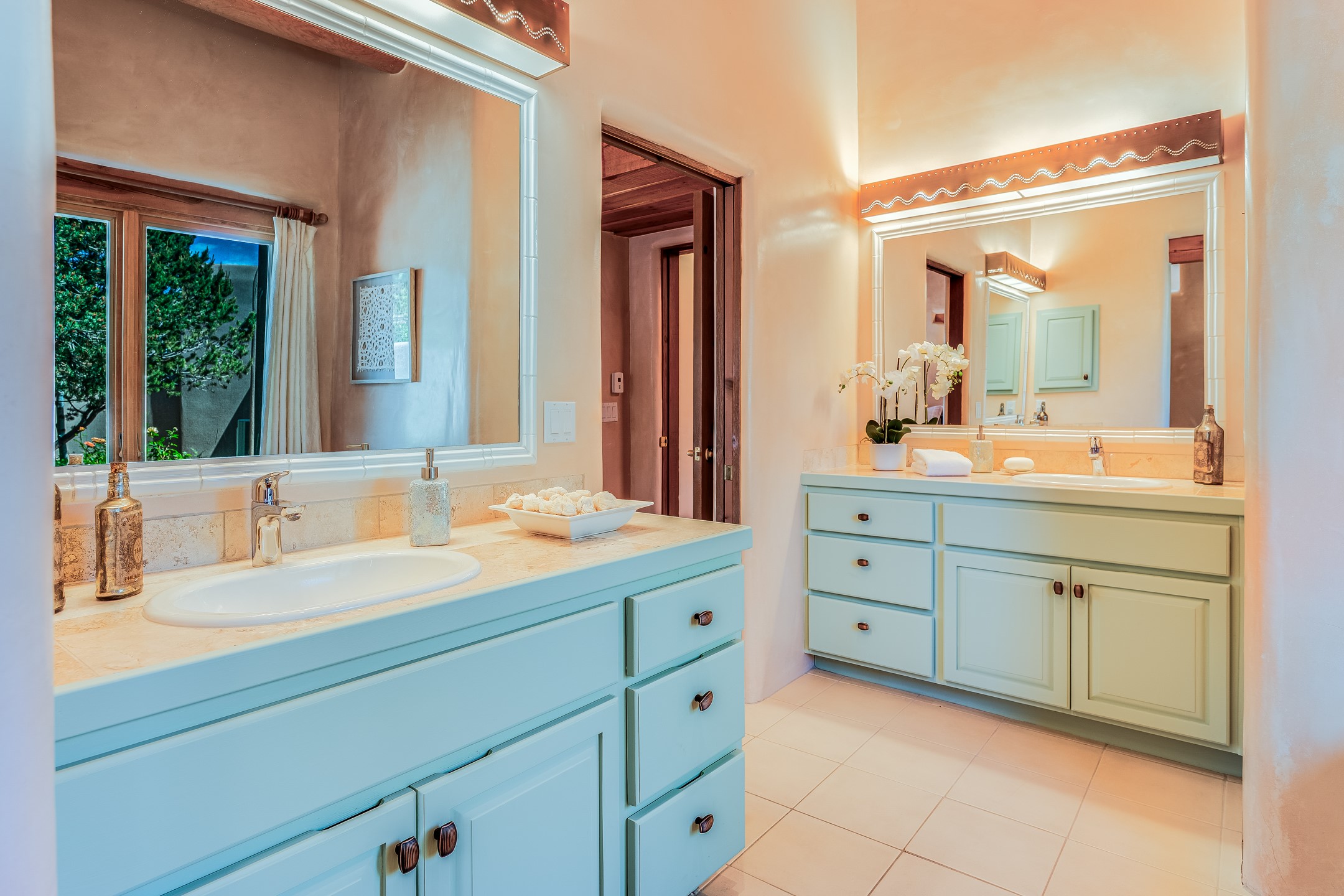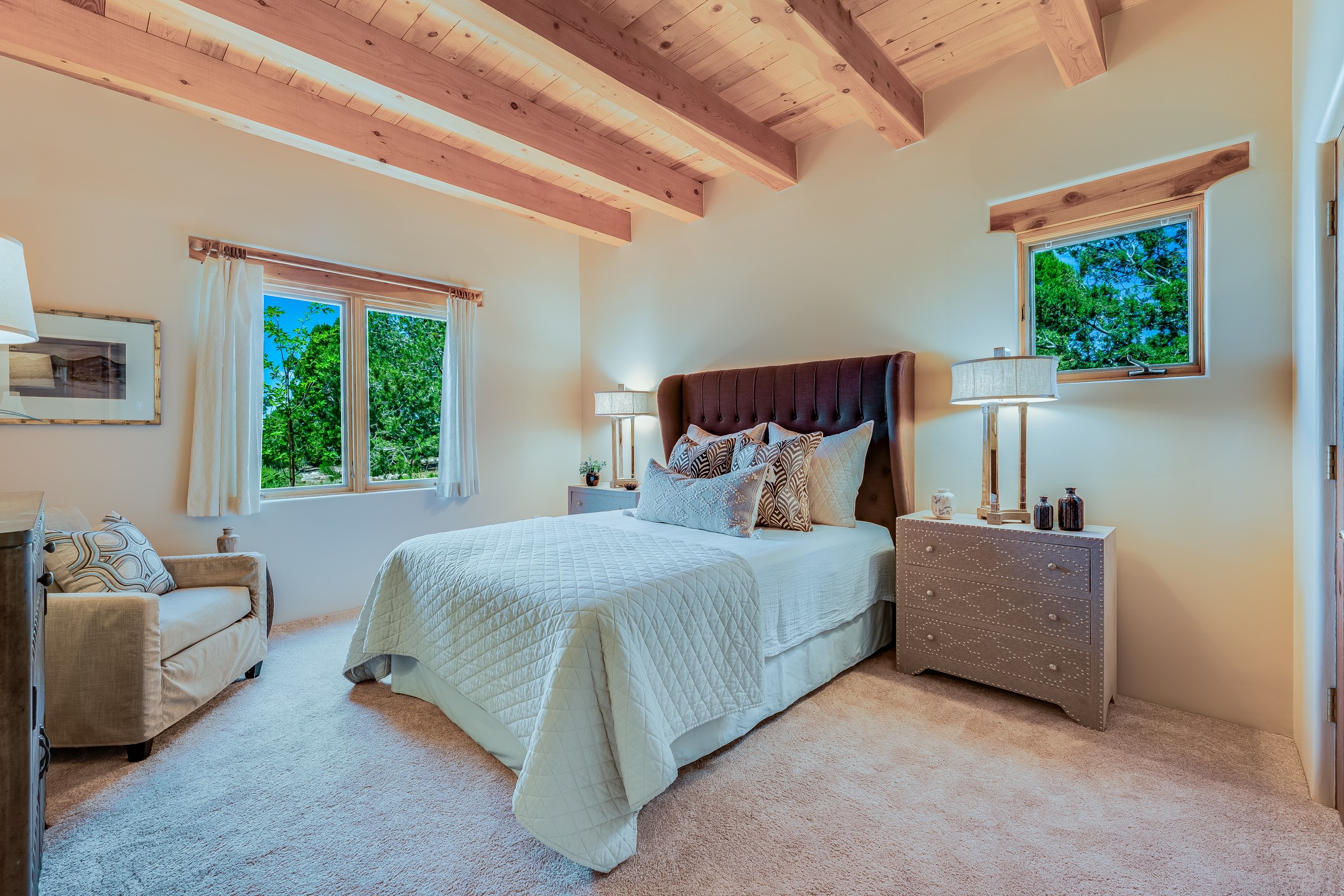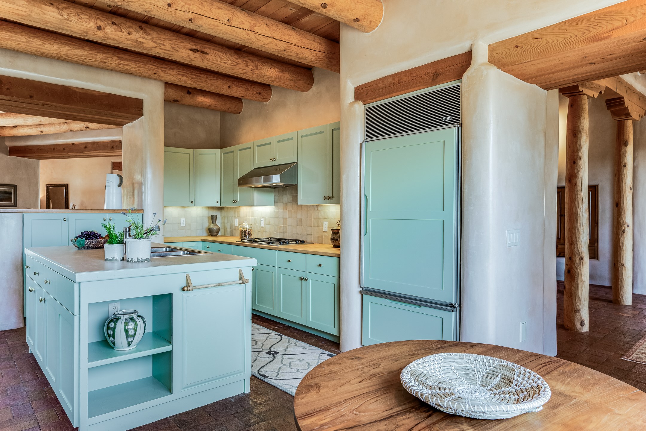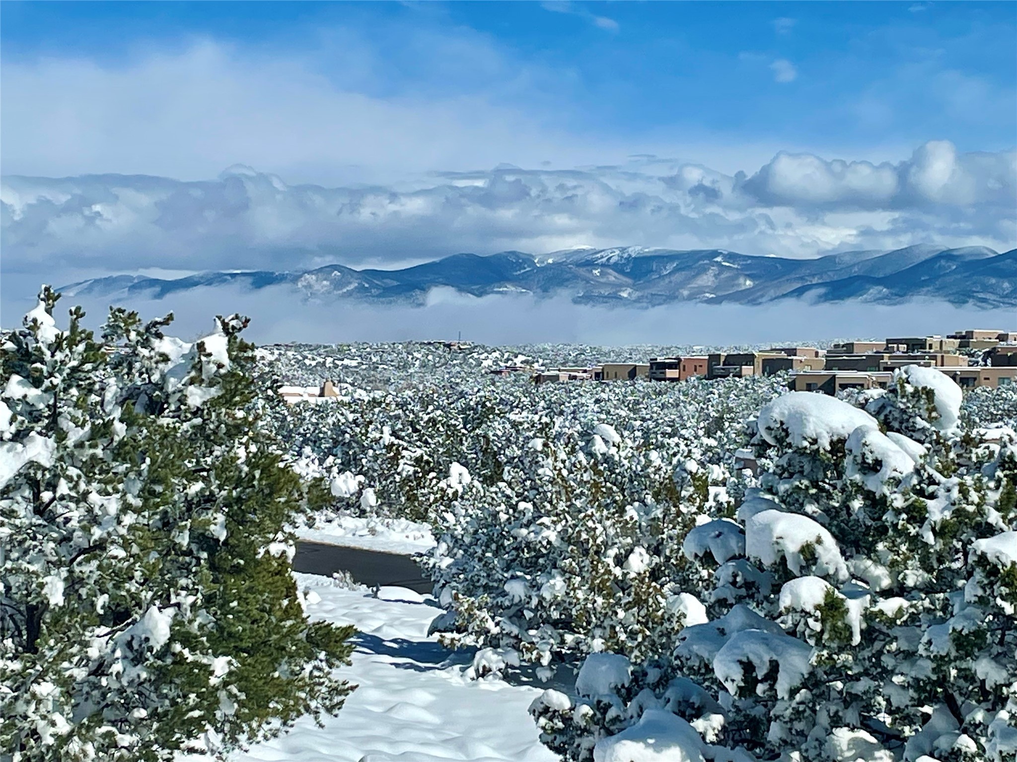 Located in Estates II at Las Campanas, this 3,267* sq. ft. home provides a split floor plan - master suite with a full bath, large walk-in closet, and private patio area separated from 2 guest rooms with 1 full bath. Living room, dining room, breakfast nook and kitchen in an open plan configuration. Office/den adjacent to living room. Four heating/cooling mini-splits, and radiant floor heating maintain a desirable level of comfort throughout. There's even a 220v outlet in the garage for your EV.With form and function seamlessly integrated, the sense of a relaxed elegance is promoted by the dwelling's creature comforts: tall ceilings, single-level open plan layout, large windows, natural materials, and strategically placed outdoor living areas. Contemporary touches, seen in the selections of materials, finishes, and fixtures, are balanced with the acknowledgement given toward "Santa Fe charm" through the use of plaster wall finishes, brick flooring material, and exposed kivas.Awesome views of Baldy and Sangre de Cristo mountains!