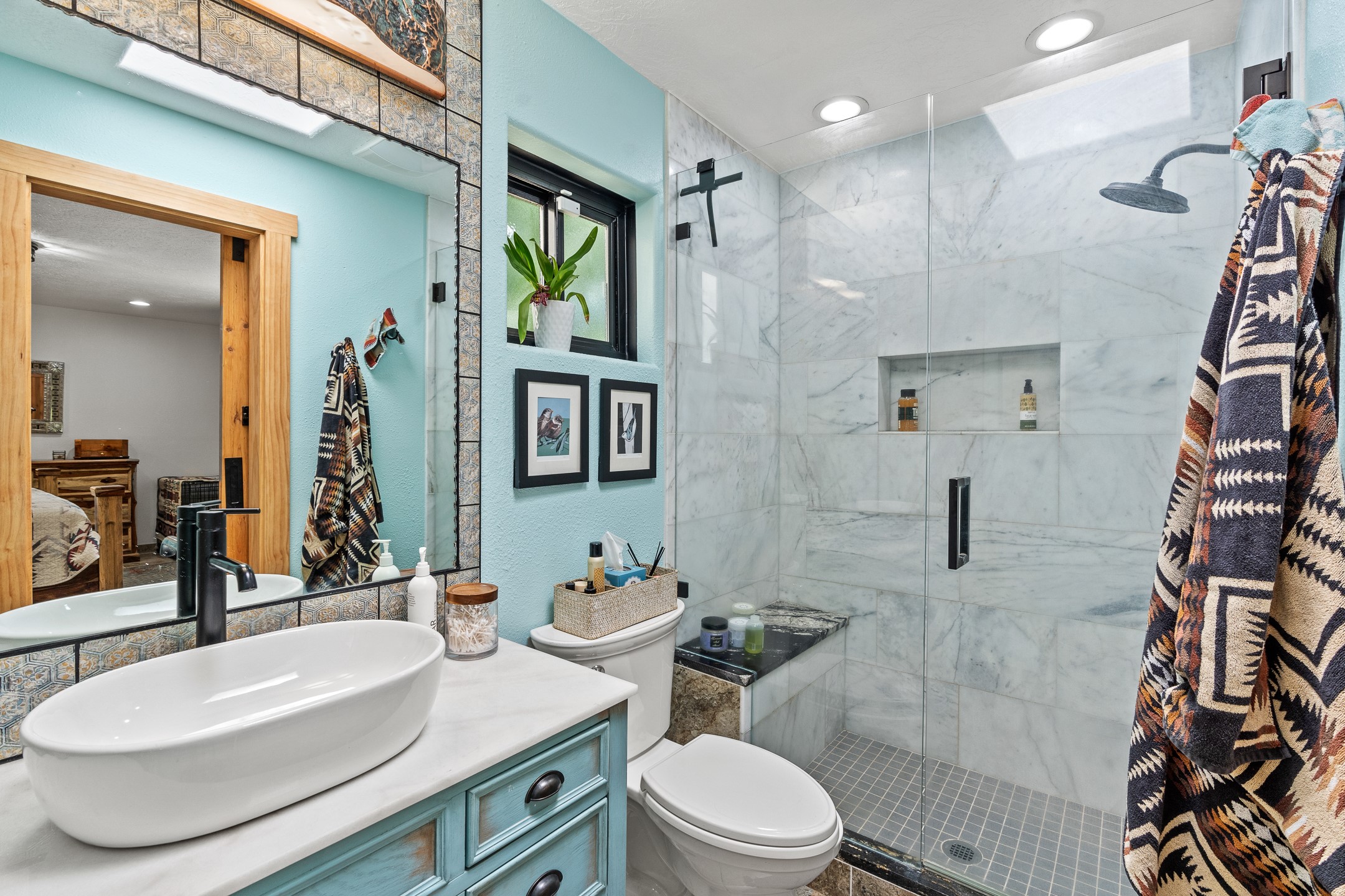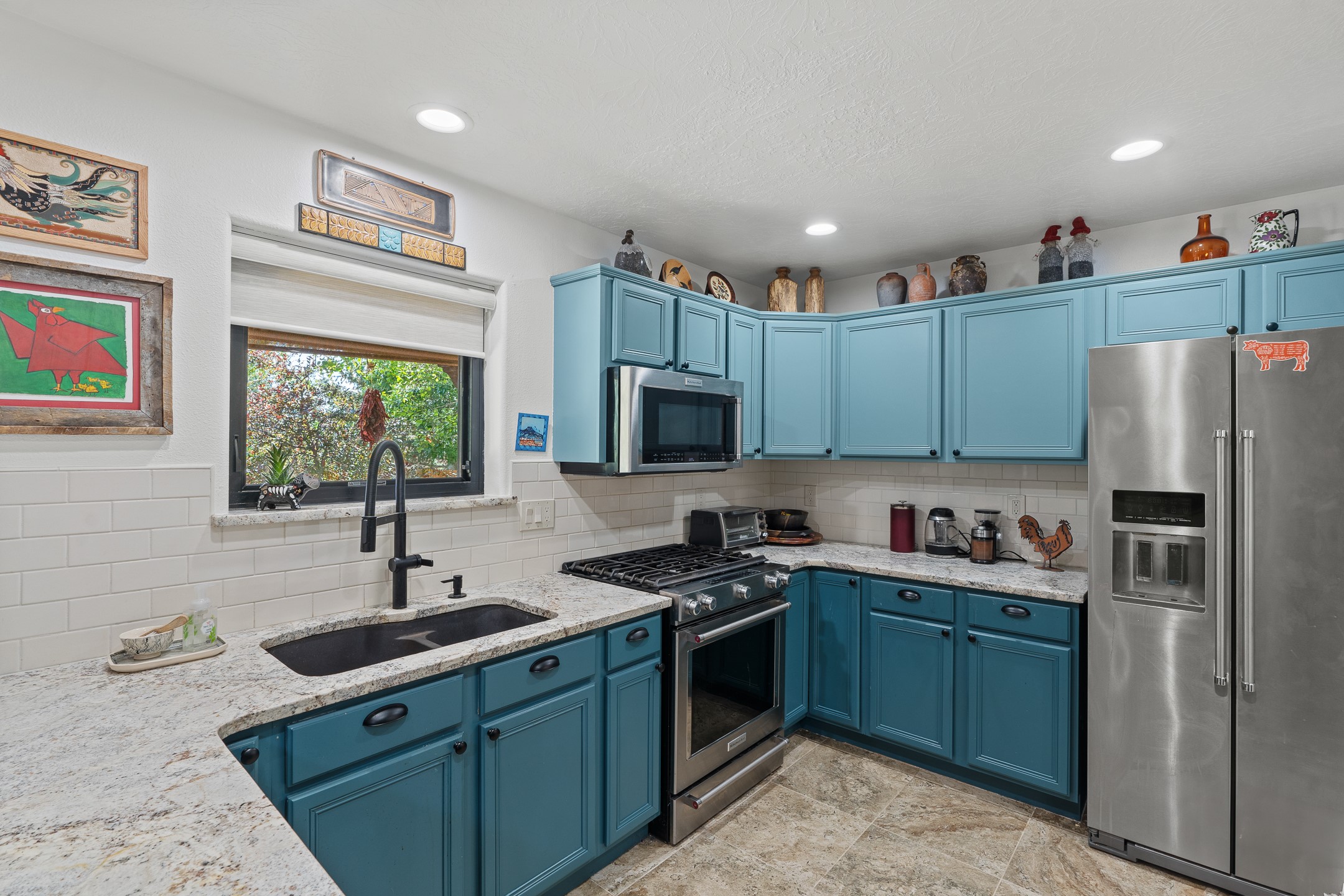 Welcome to 2944 Pueblo Alto, a beautifully updated 3-bedroom, 2-bathroom home located in the highly sought-after Pueblos del Sol neighborhood. Over the past two years, this home has undergone a series of high-quality renovations and upgrades, making it truly move-in ready.Notable improvements include a new TPO roof, new Pella windows, new high-efficiency gas boiler, new hot water heater, fully remodeled kitchen and bathrooms, and the addition of a welcoming foyer that enhances both function and flow. Comfort is key with the installation of efficient mini-split systems throughout the home, providing personalized heating and cooling in every room.Sustainability meets modern living with the addition of a new solar energy system, helping reduce utility costs and environmental impact. Step outside to enjoy extensive professional landscaping, creating a peaceful, low-maintenance outdoor retreat ideal for entertaining or quiet relaxation.With its ideal location near trails, parks, schools, and shopping, 2944 Pueblo Alto offers the perfect combination of style, comfort, and convenience in one of Santa Fe's most desirable communities.