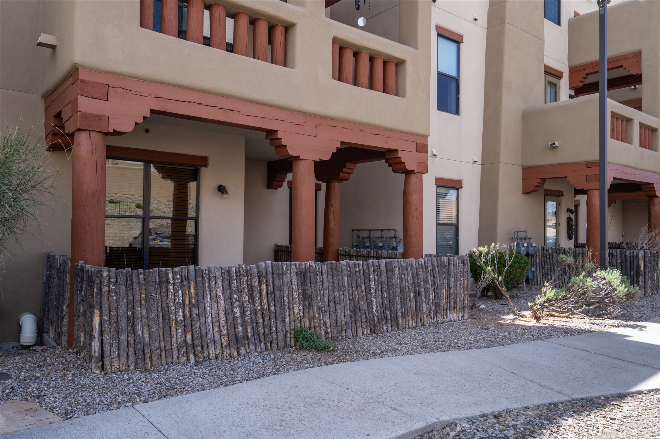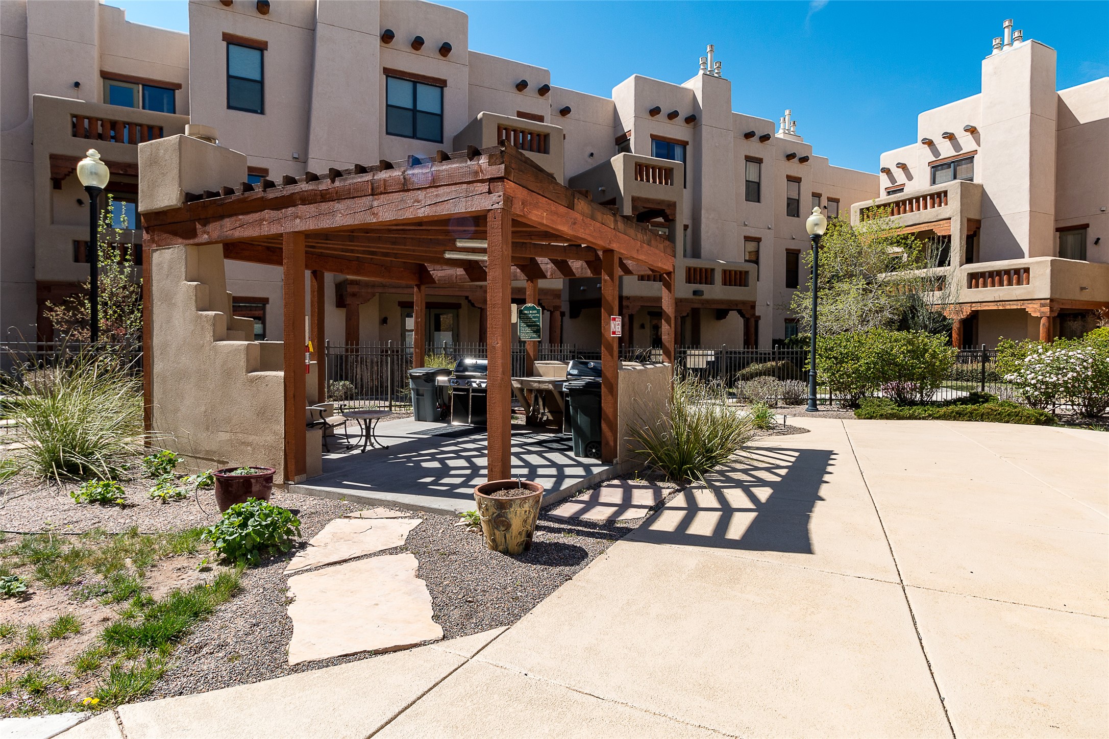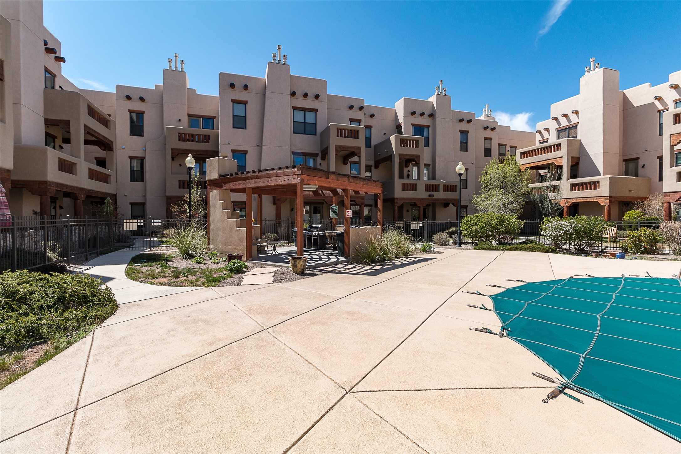 Welcome to 1405 Vegas Verdes #136, a beautifully maintained 1-bedroom, 1.5-bath condo located in the gated community of The Alameda. This ground-floor unit offers the perfect blend of Southwest character and everyday functionality, with features like wood vigas, a cozy corner fireplace, and a spacious open layout that flows from the kitchen to the living area. Step through the glass door to your private patio an ideal space for relaxing, dining al fresco, or unloading groceries. This unit has a storage unit as well, providing ample space for your vehicle, bikes, or extra belongings. Inside, you'll find a well-appointed kitchen with granite countertops and stainless steel appliances, a comfortable primary suite with full bath, and a separate powder room for guests. Additional conveniences include an in-unit washer and dryer, central air, and plenty of natural light throughout. Residents of The Alameda enjoy resort-style amenities including a swimming pool, fitness center, clubhouse, beautifully landscaped grounds, and secure gated access. Located near Santa Fe Place Mall, grocery stores, restaurants, and with easy access to Hwy 599, this condo offers low-maintenance living in one of Santa Fe's most desirable communities. Whether you're looking for a full-time residence, a lock-and-leave home, or a smart investment, this one has it all.